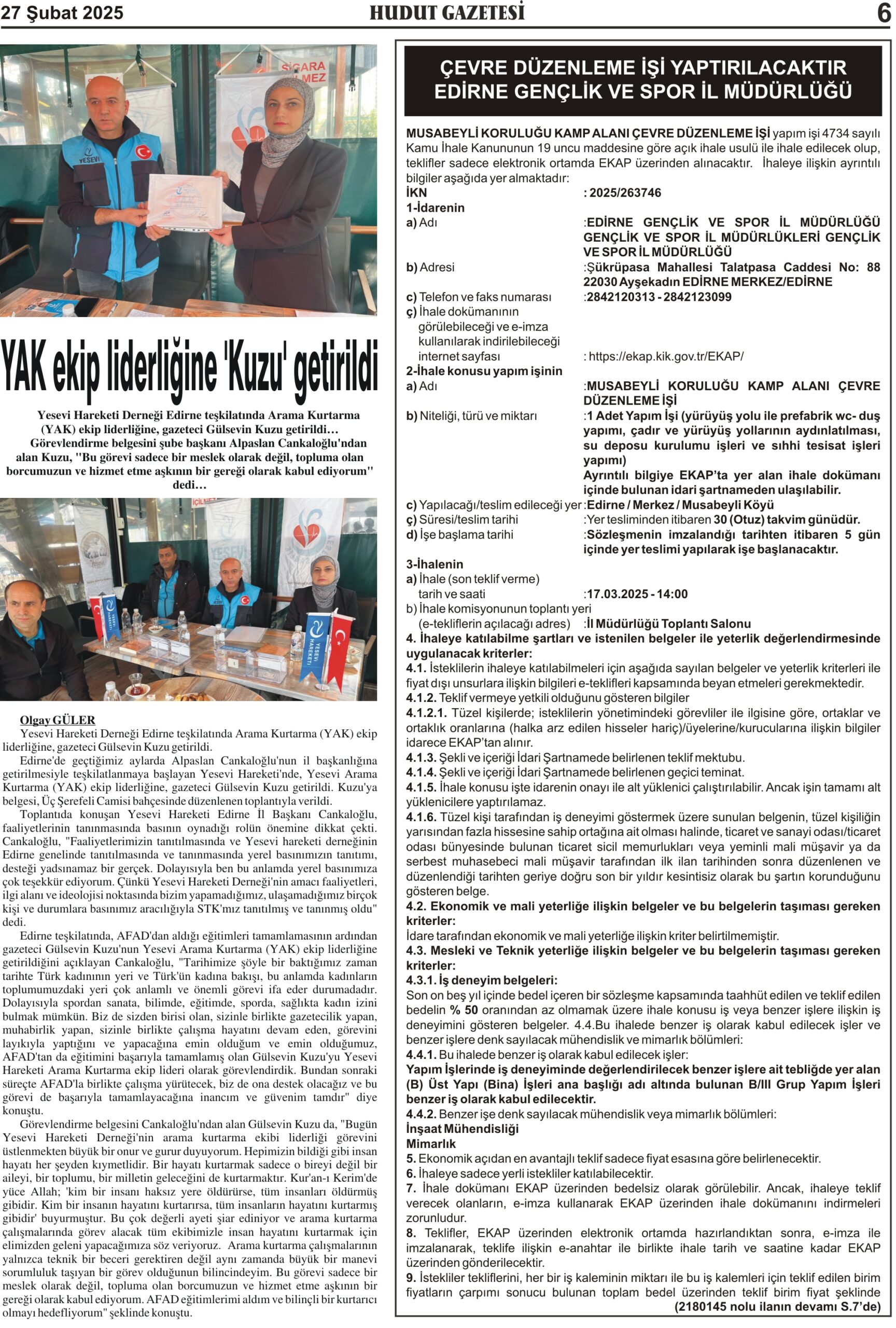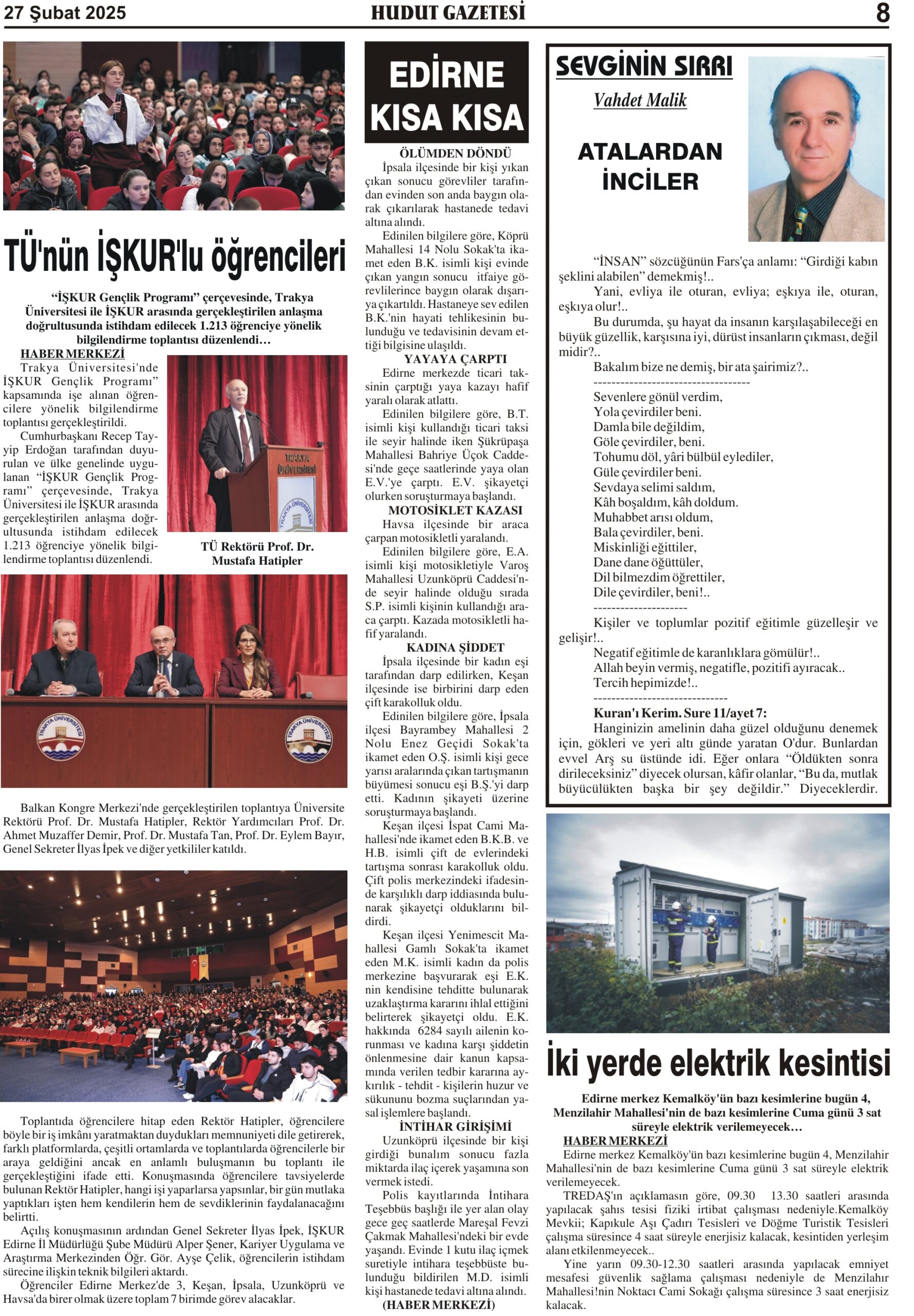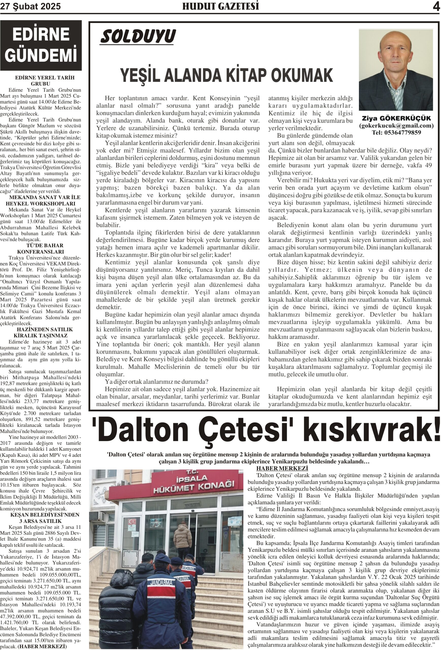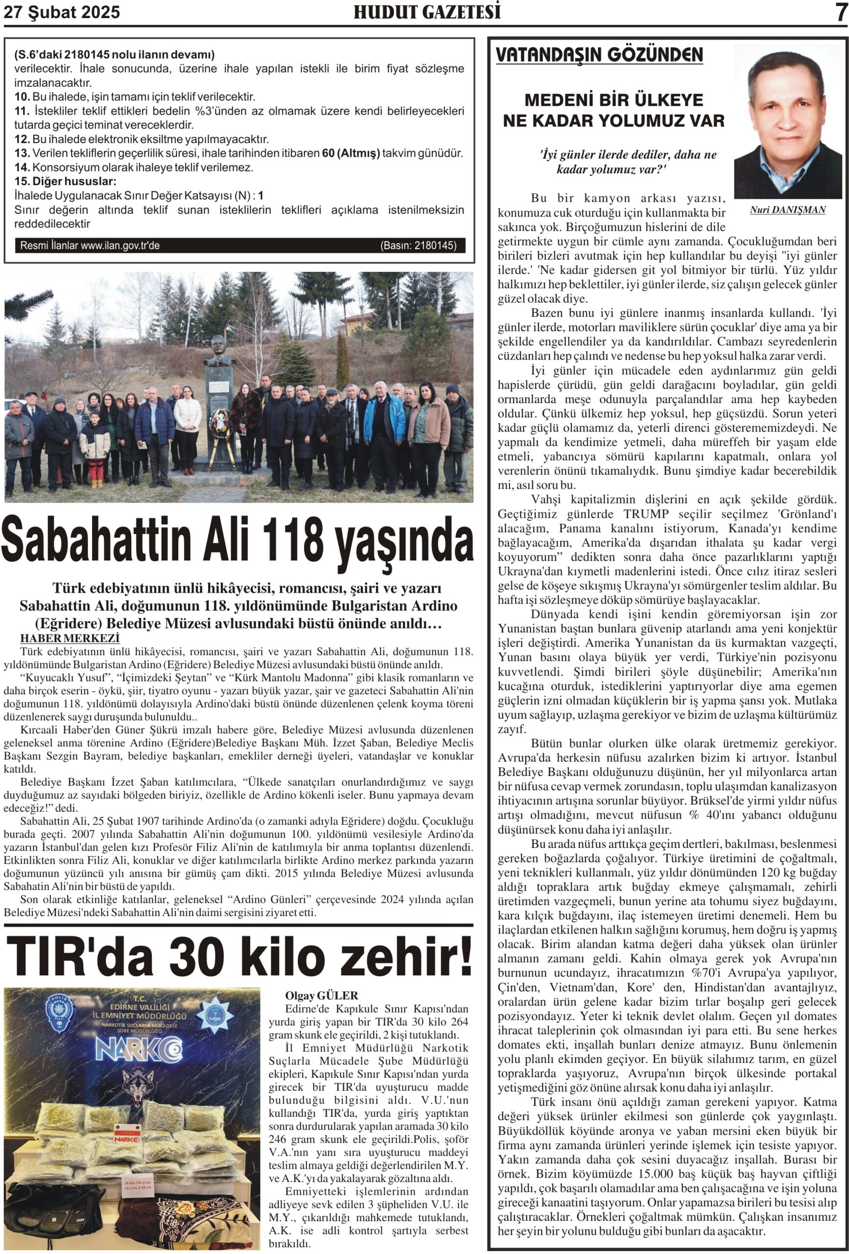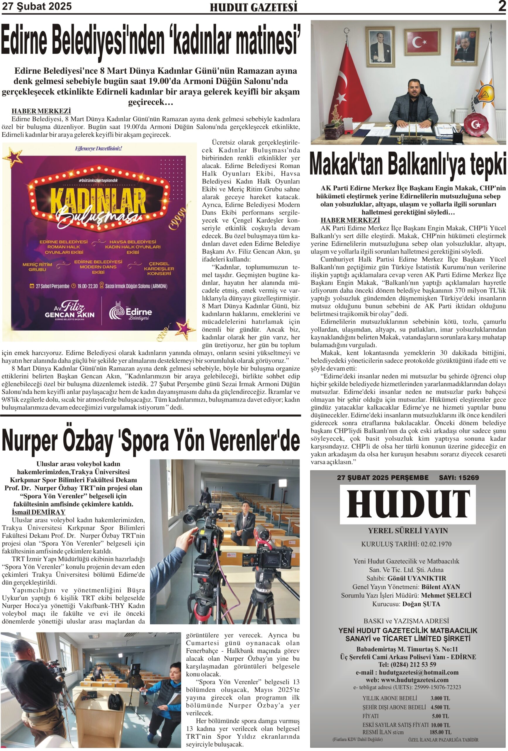 27 Şubat 2025 Perşembe Hudut Gazetesi