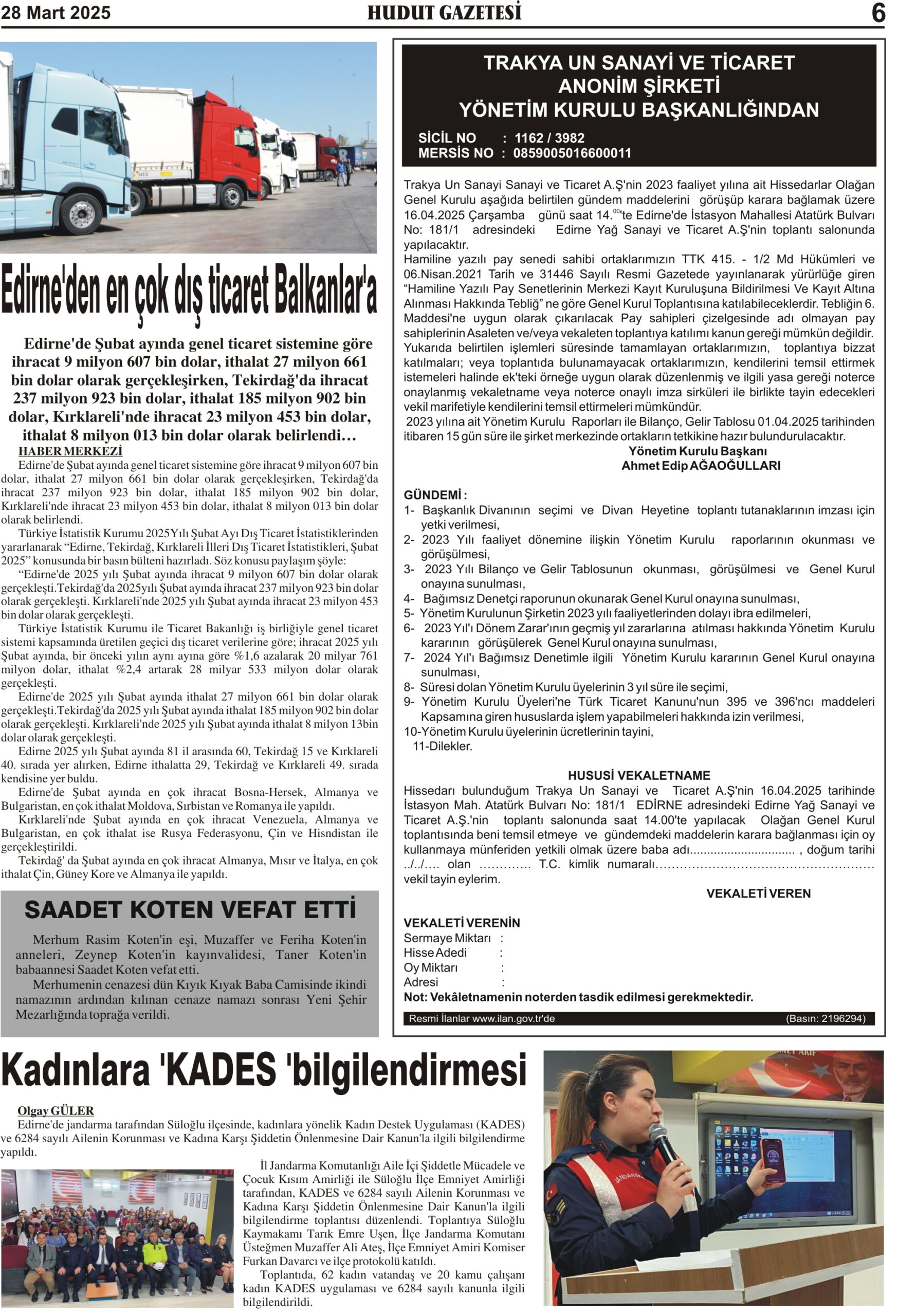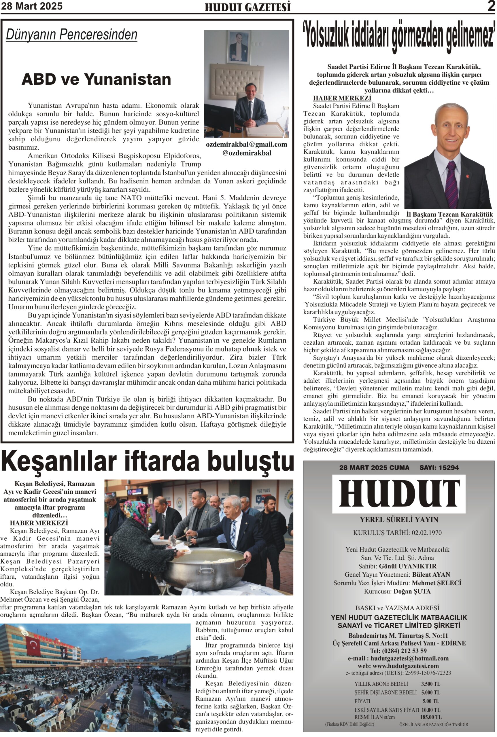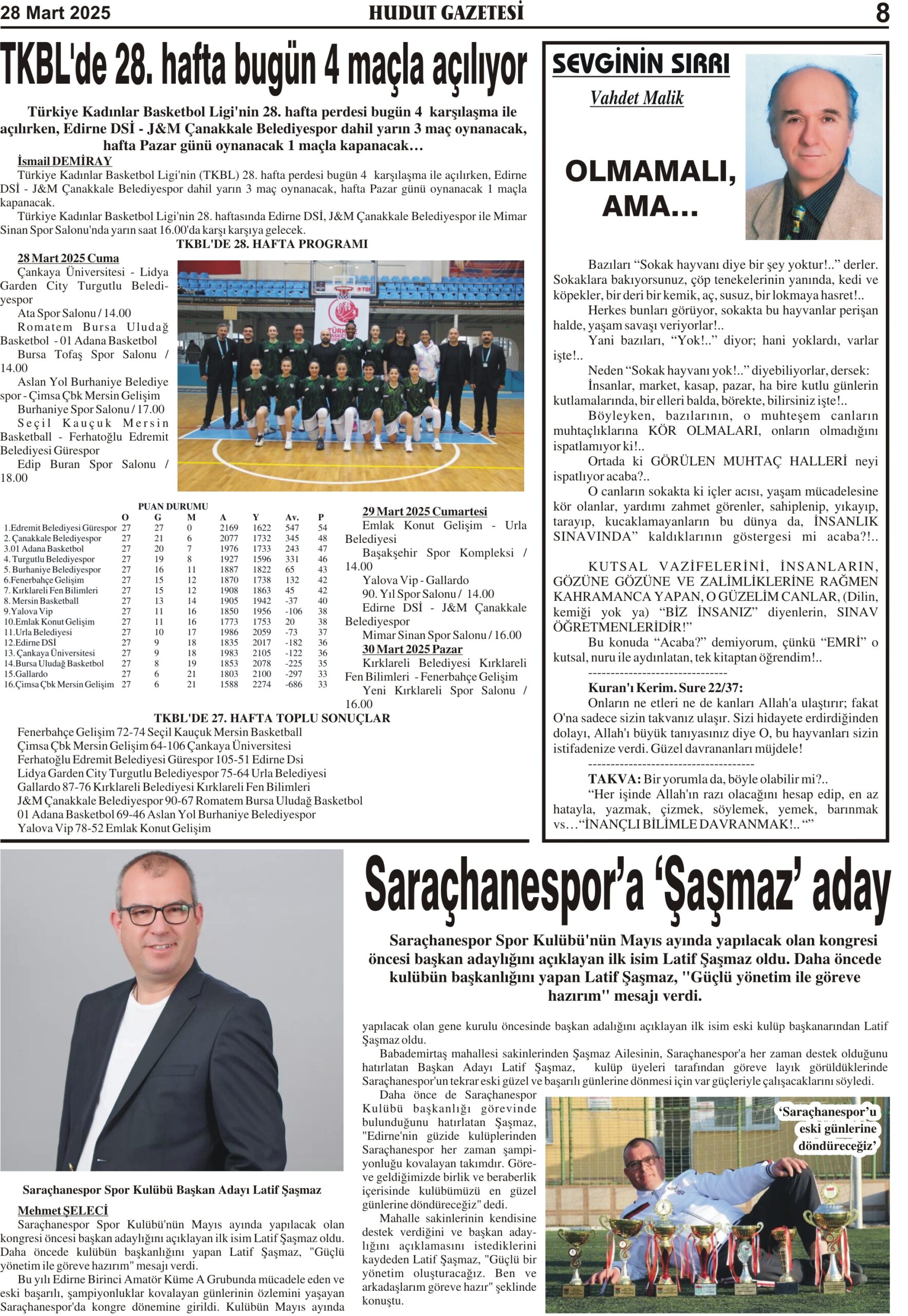 28 Mart 2025 Cuma Hudut Gazetesi