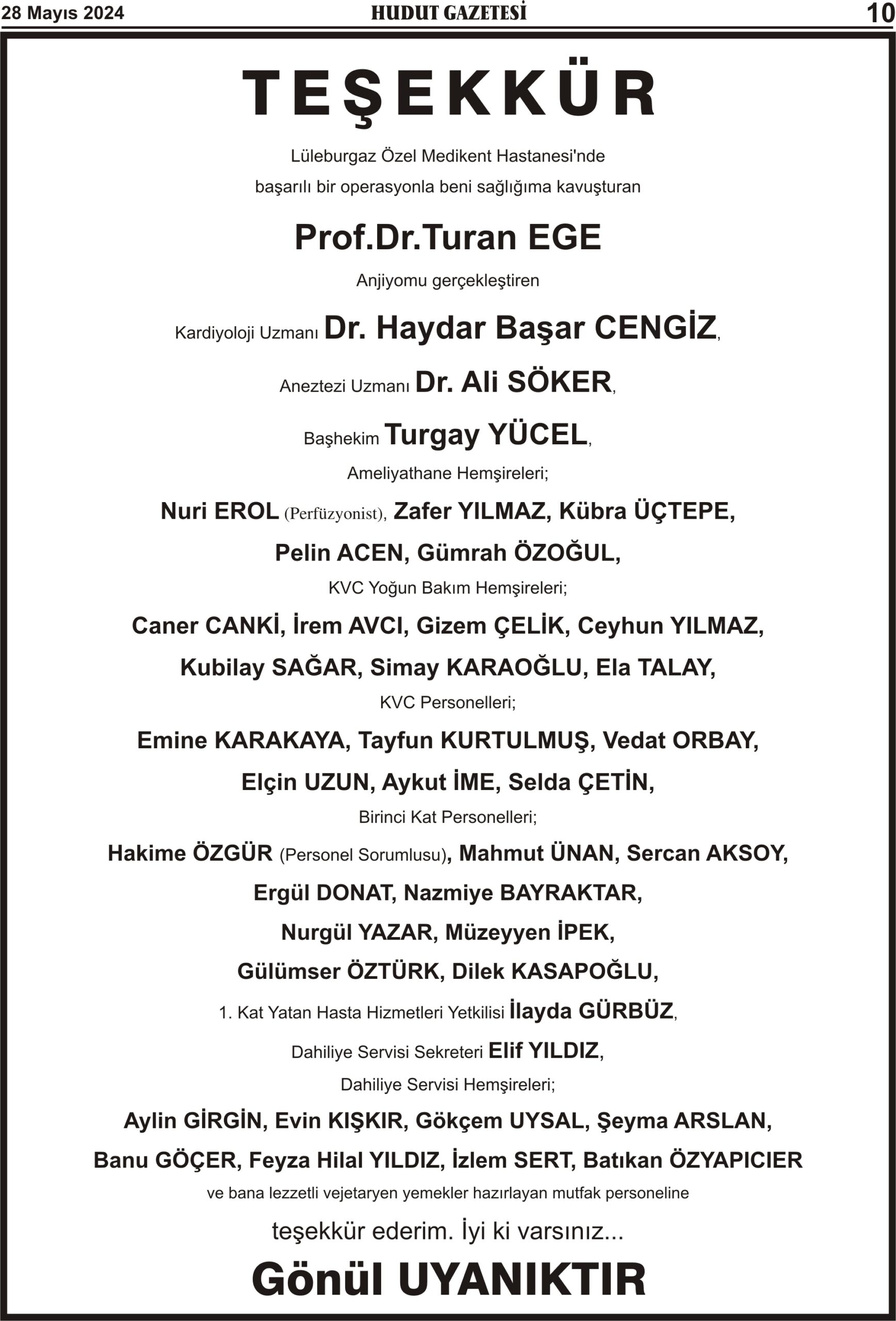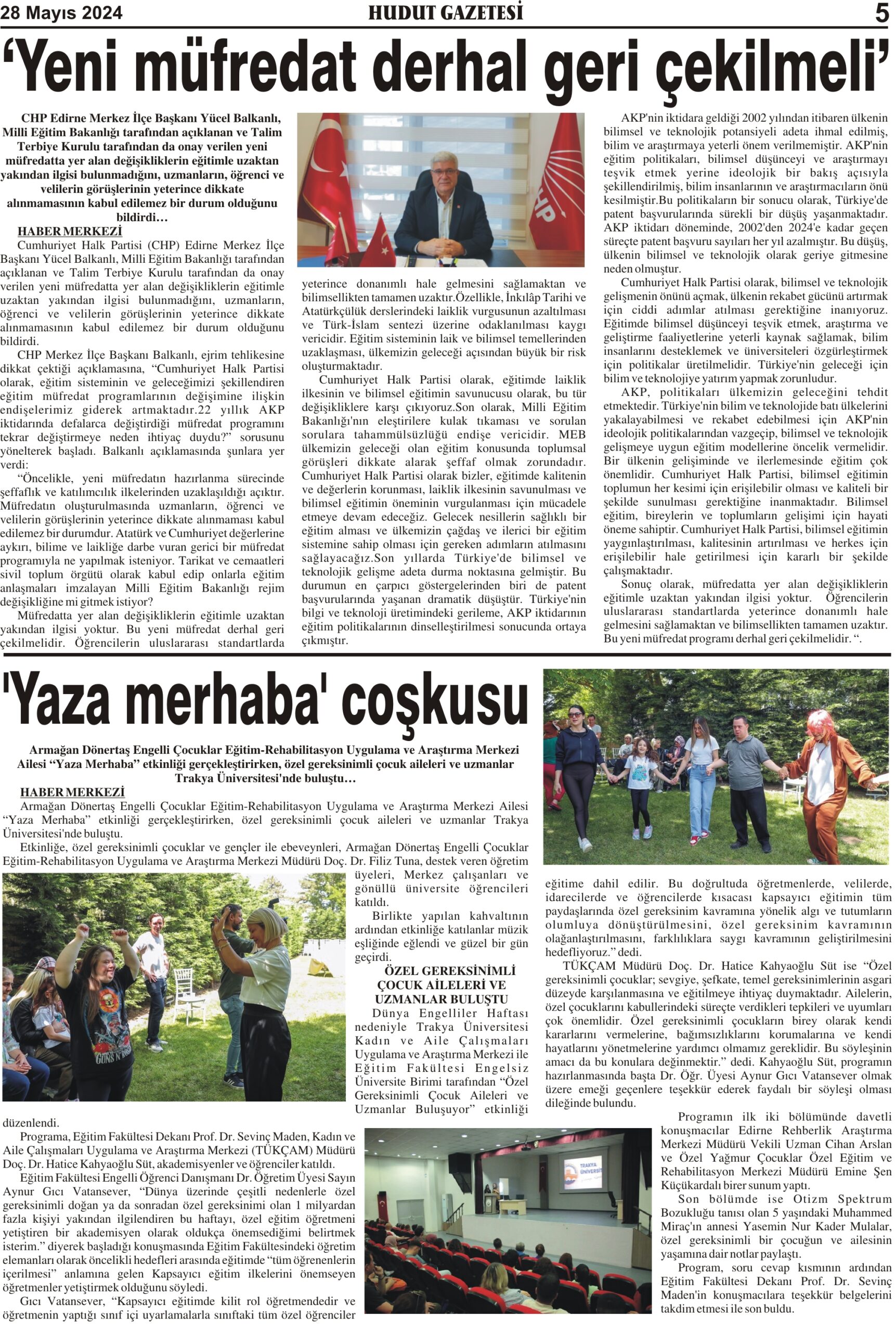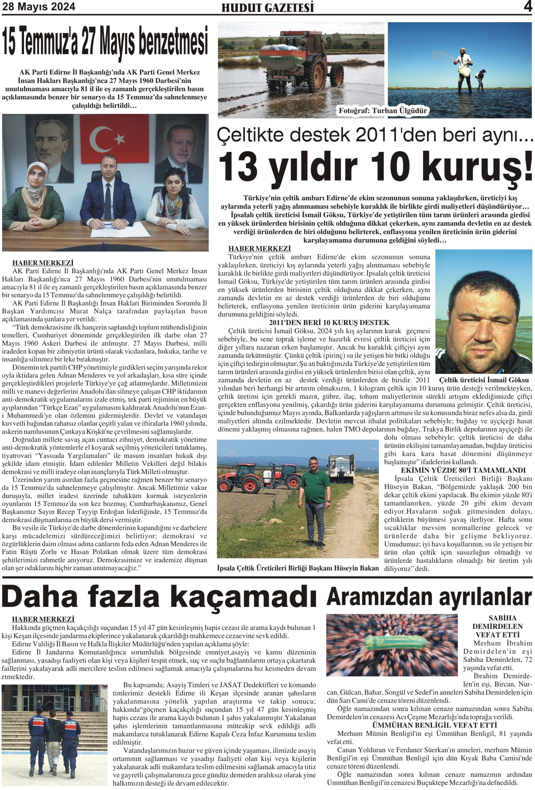 28 Mayıs 2024 Salı Hudut Gazetesi