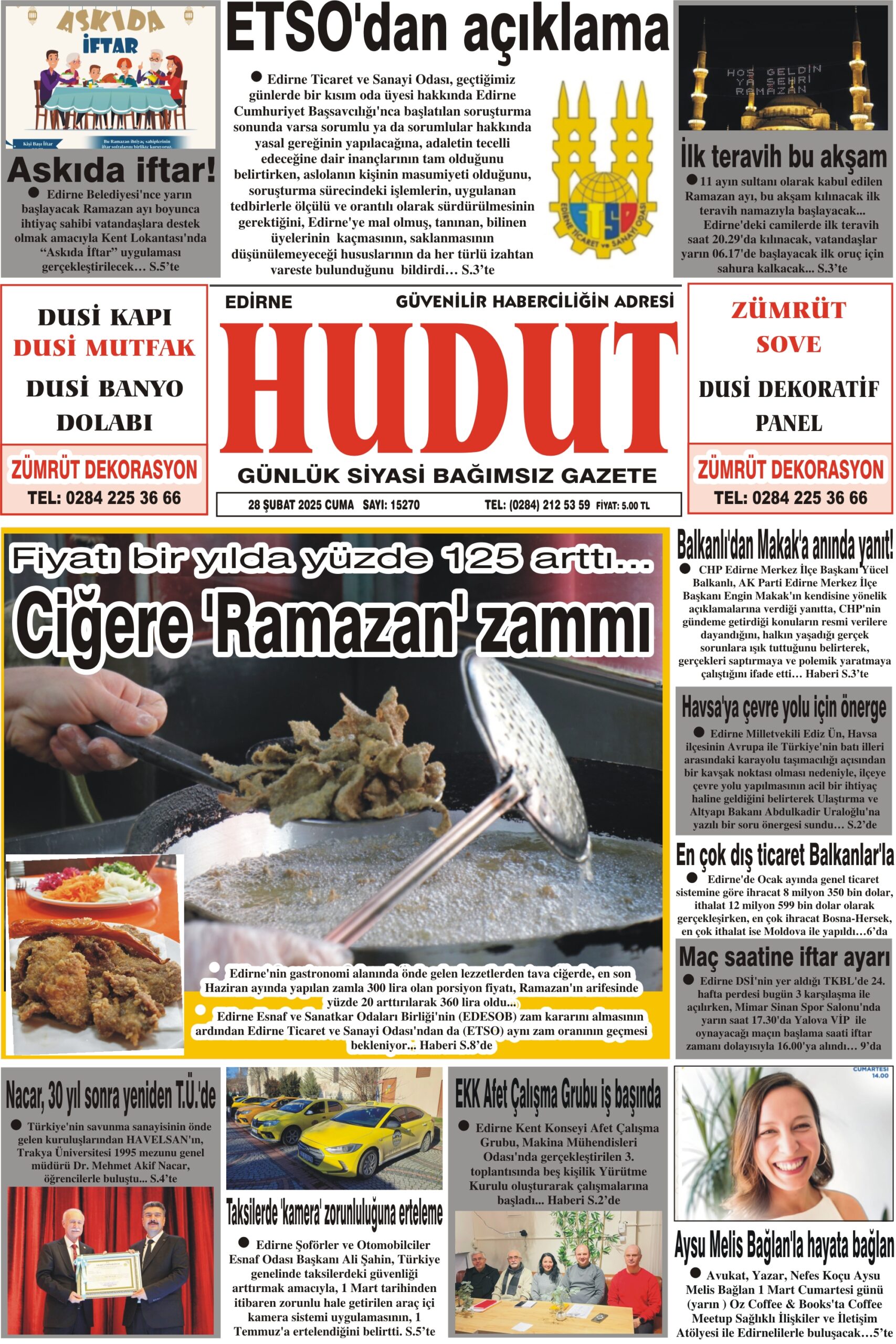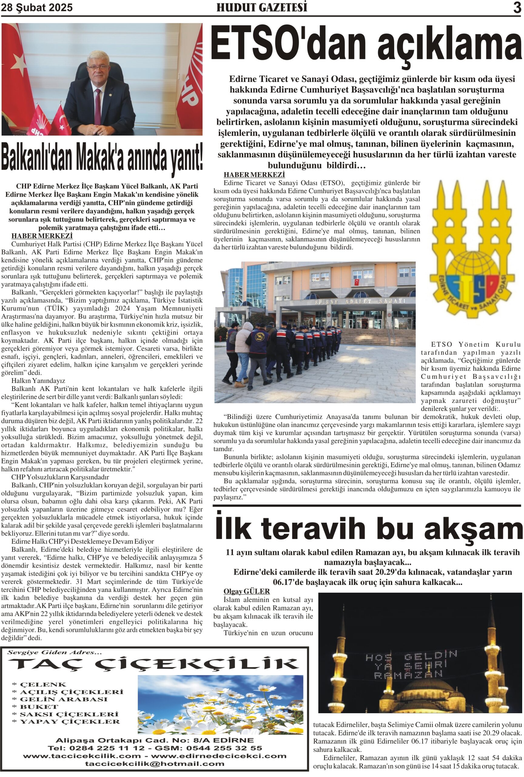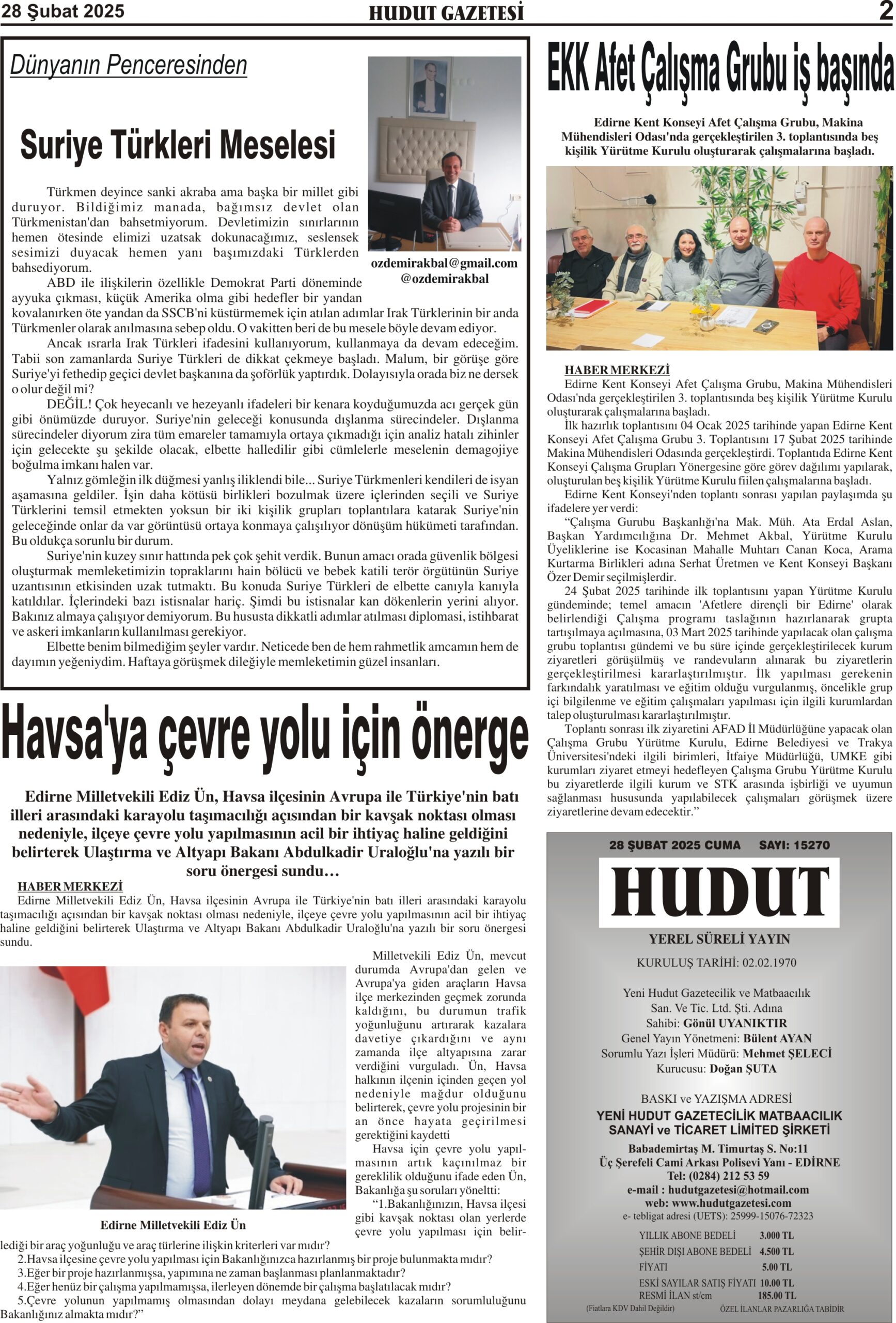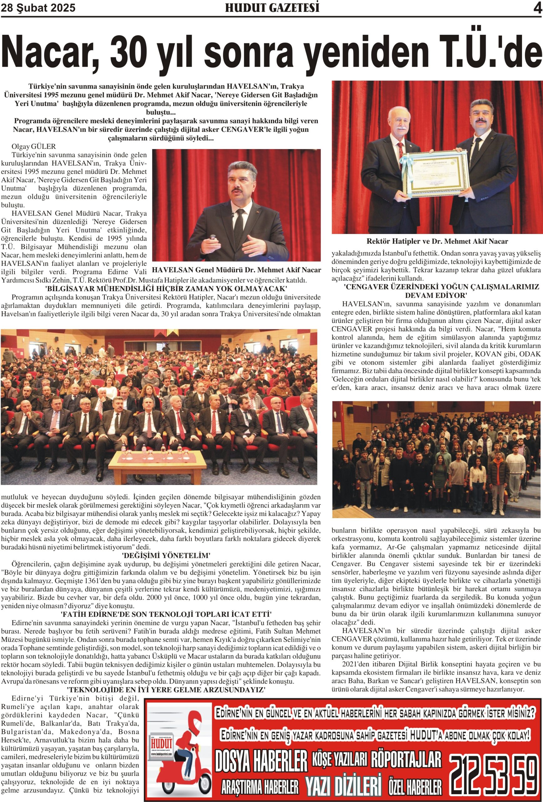 28 Şubat 2025 Cuma Hudut Gazetesi