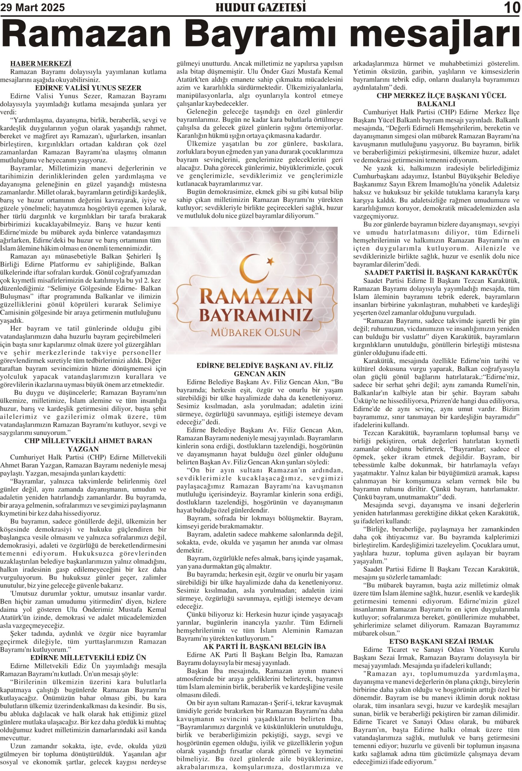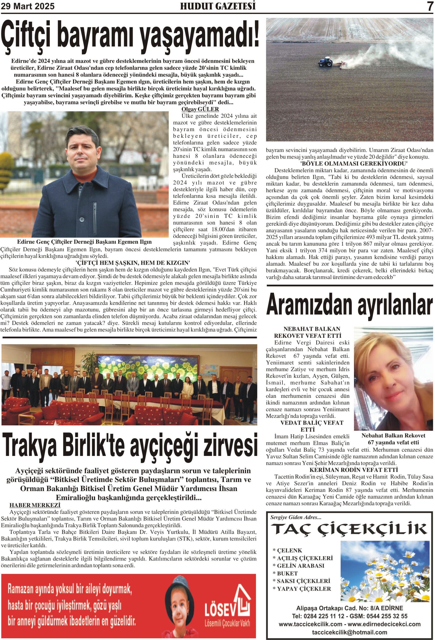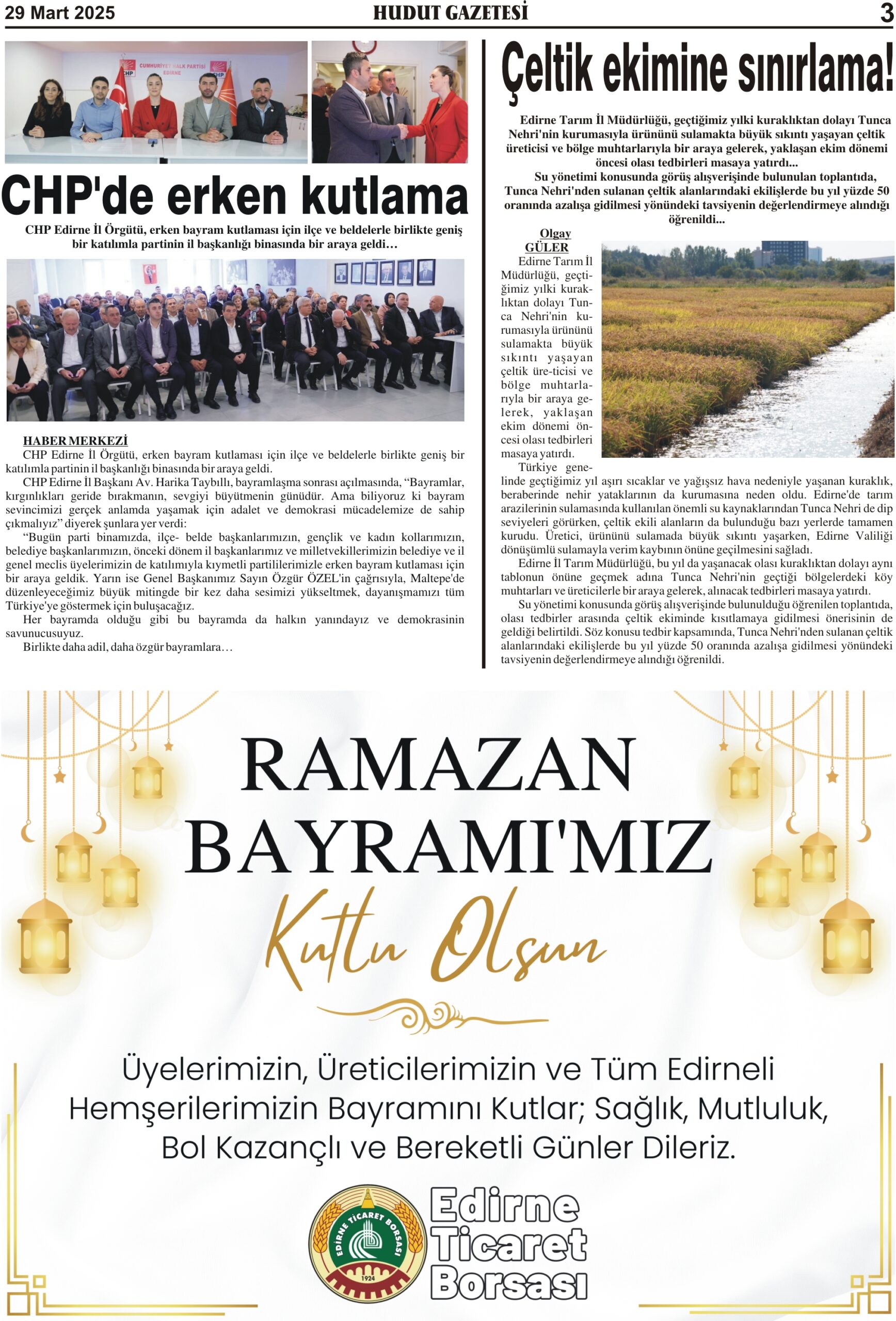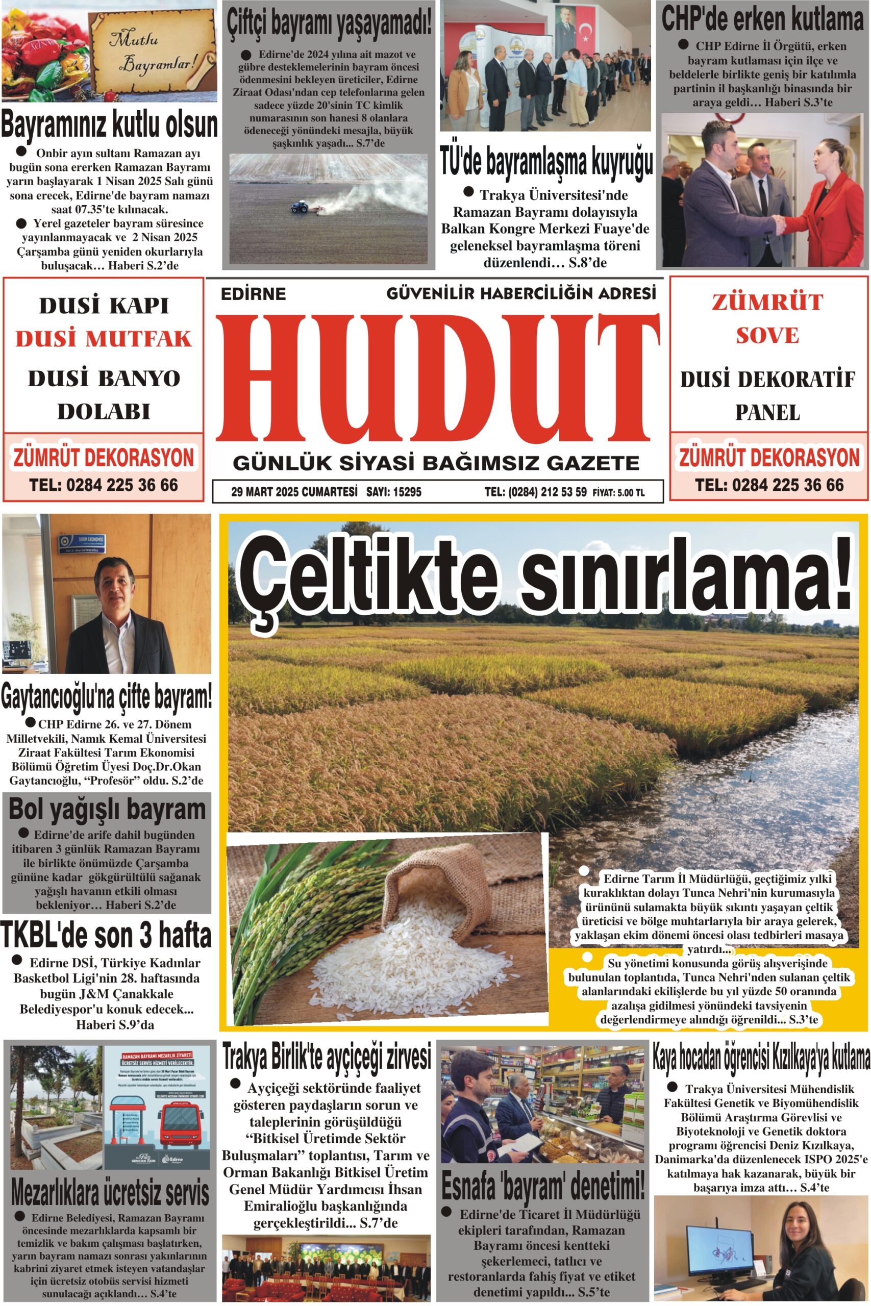 29 Mart 2025 Cumartesi Hudut Gazetesi