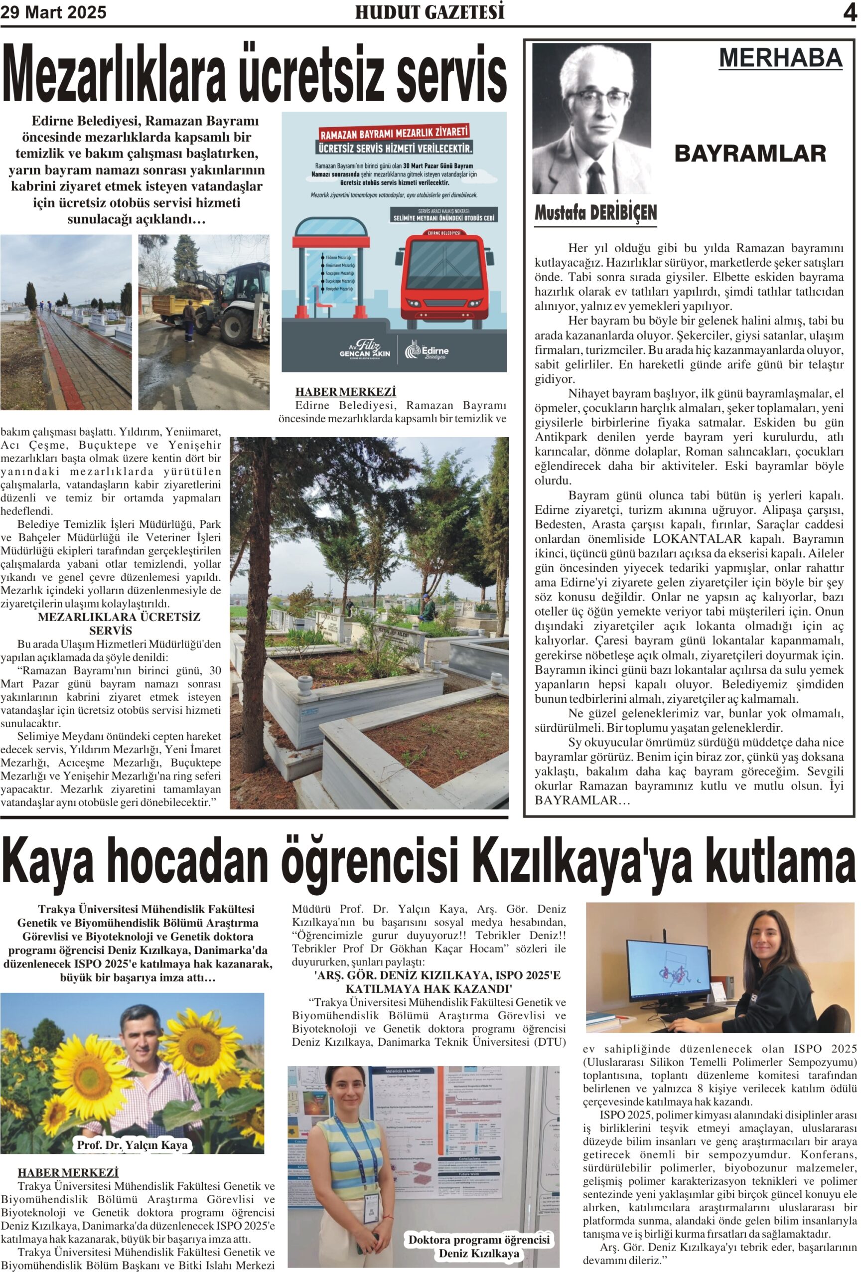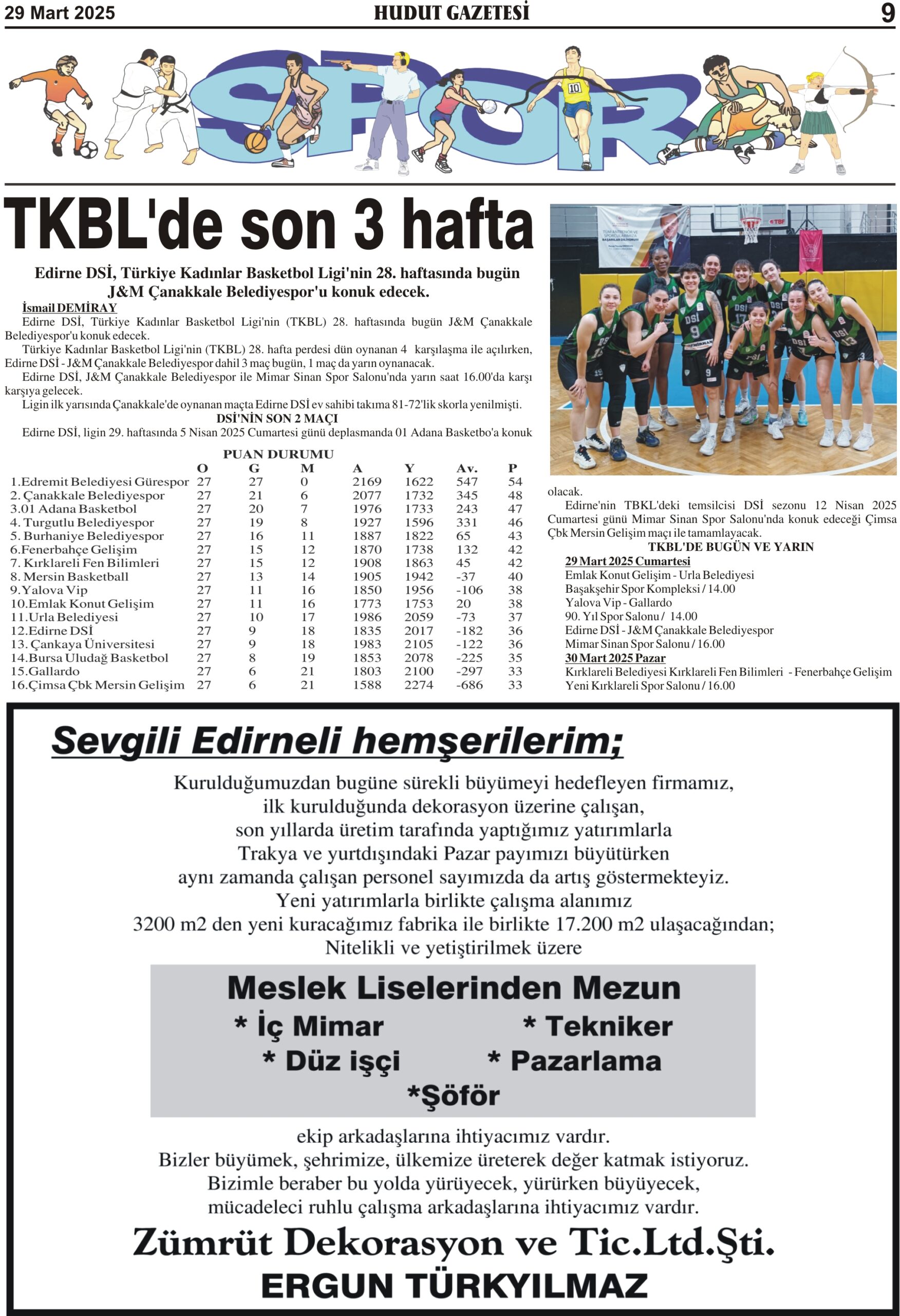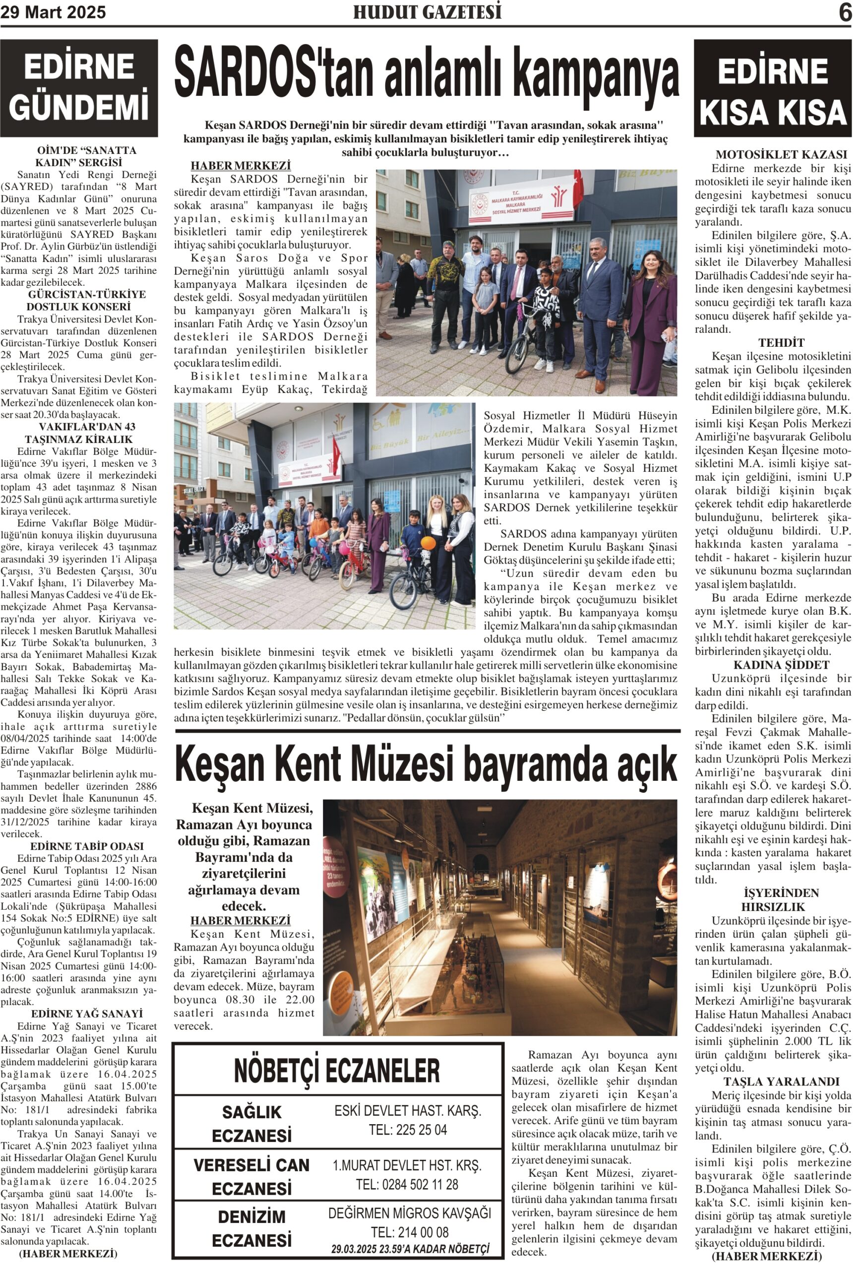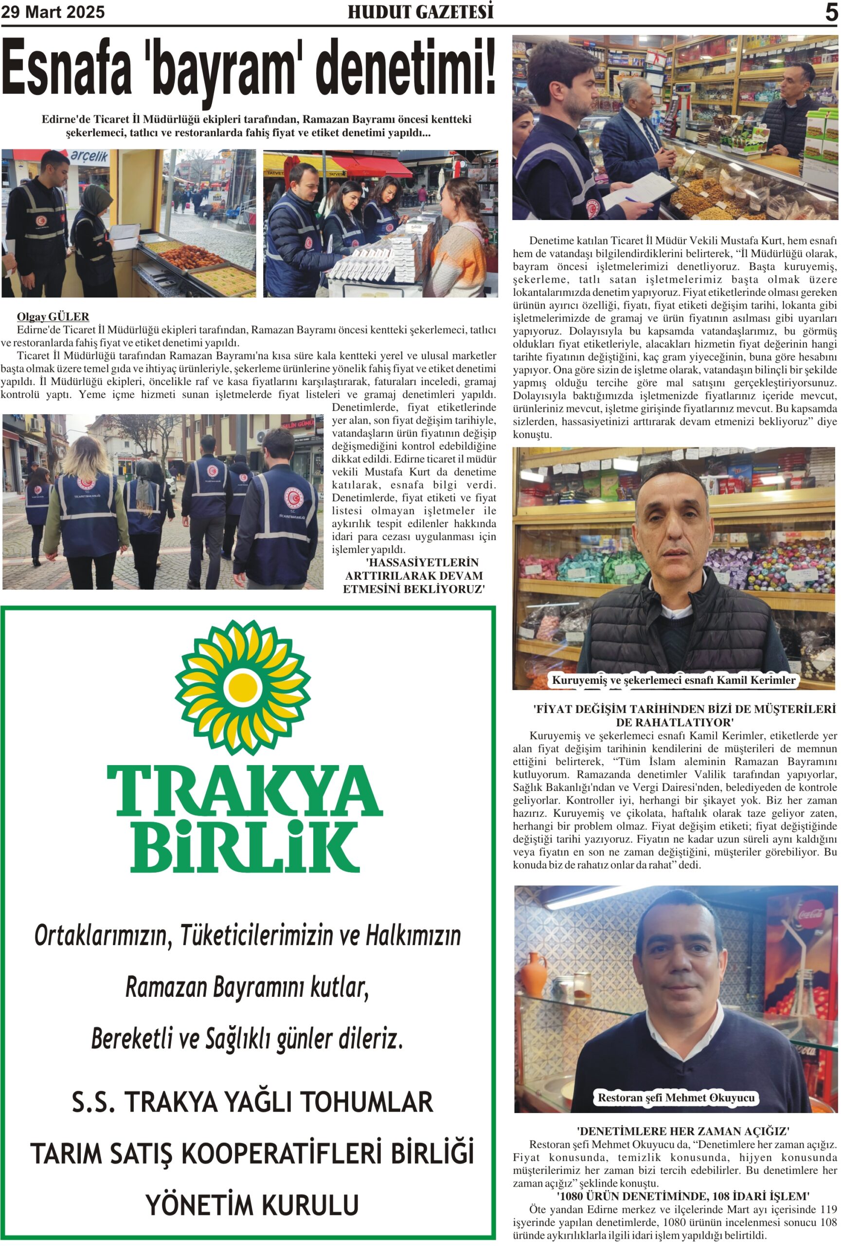 29 Mart 2025 Cumartesi Hudut Gazetesi
