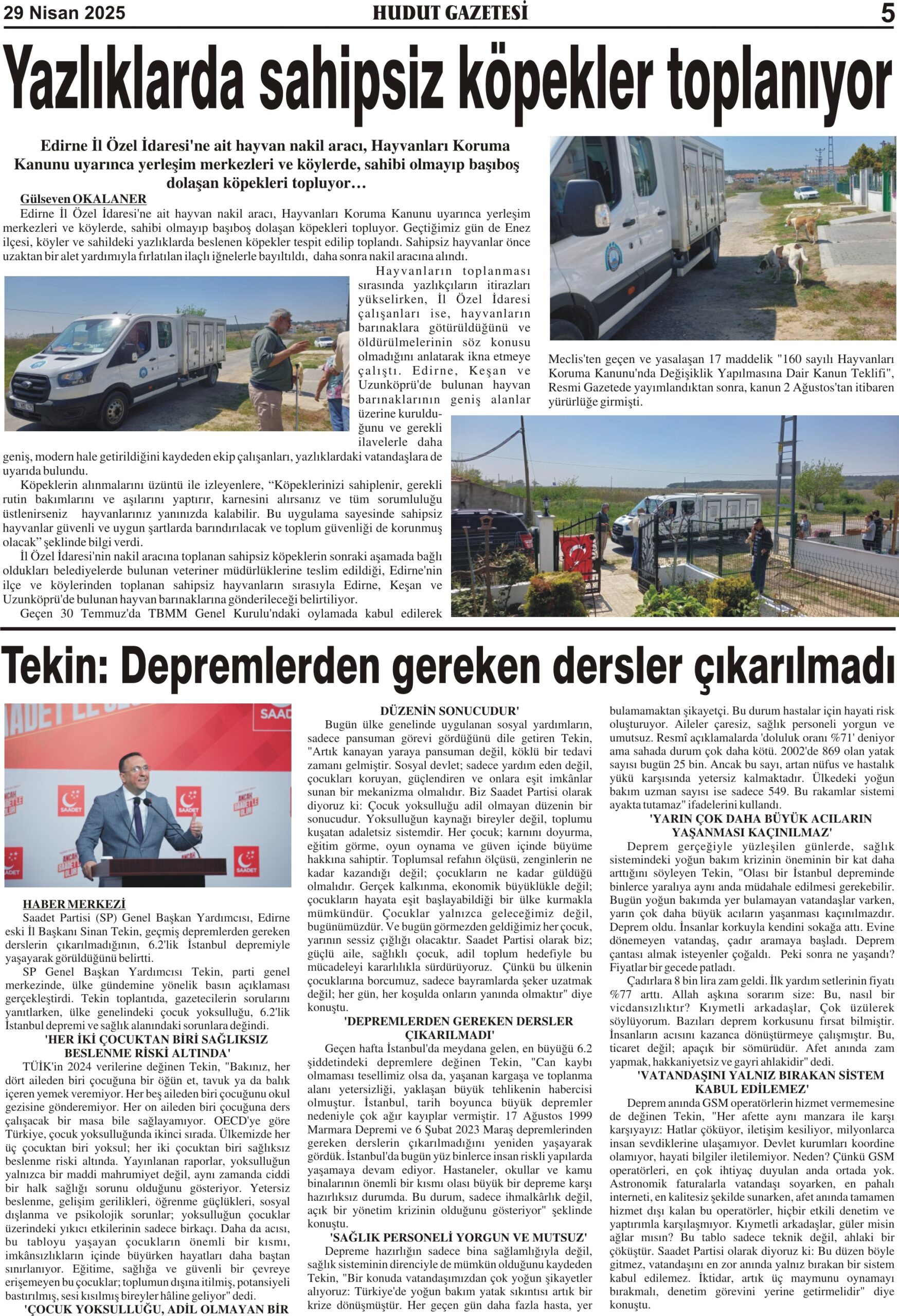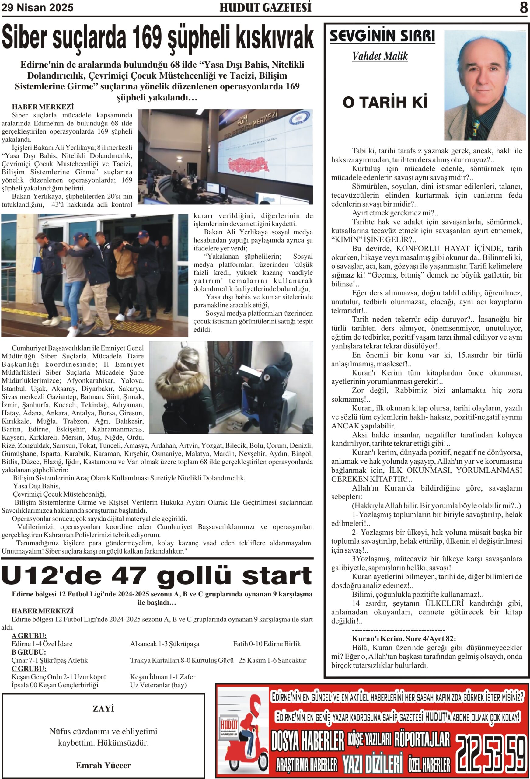 29 Nisan 2025 Salı Hudut Gazetesi