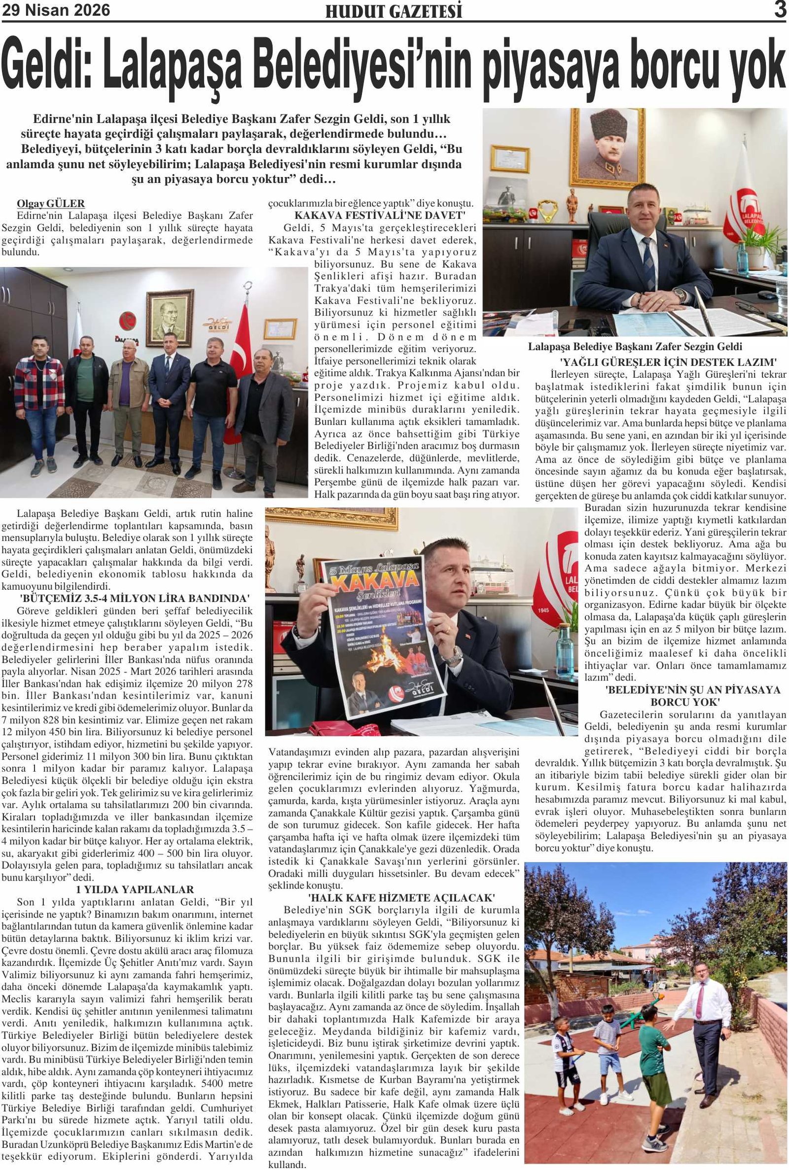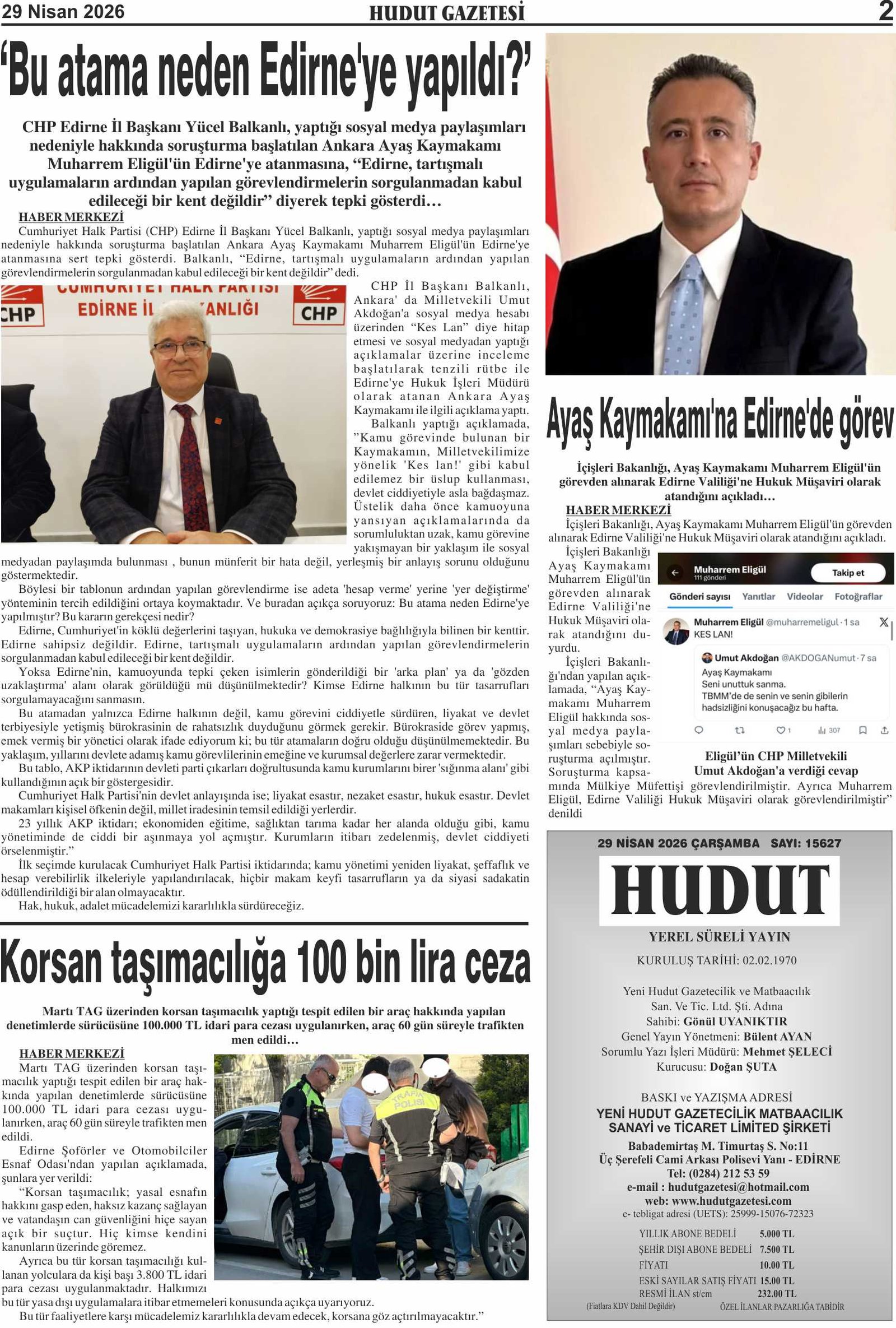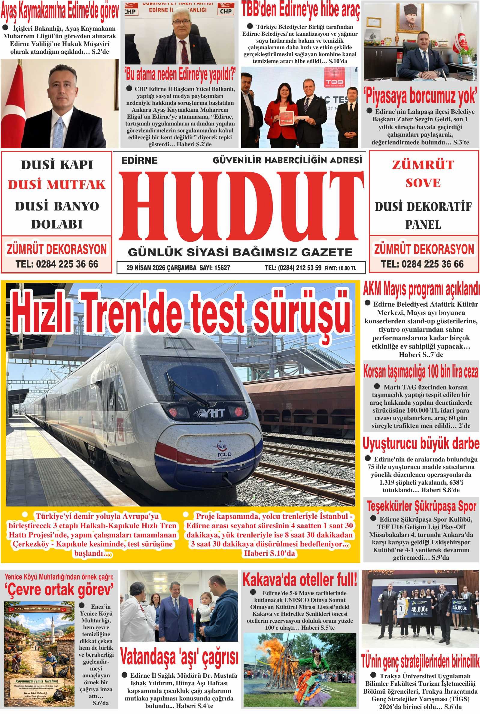 29 Nisan 2026 Çarşamba Hudut Gazetesi