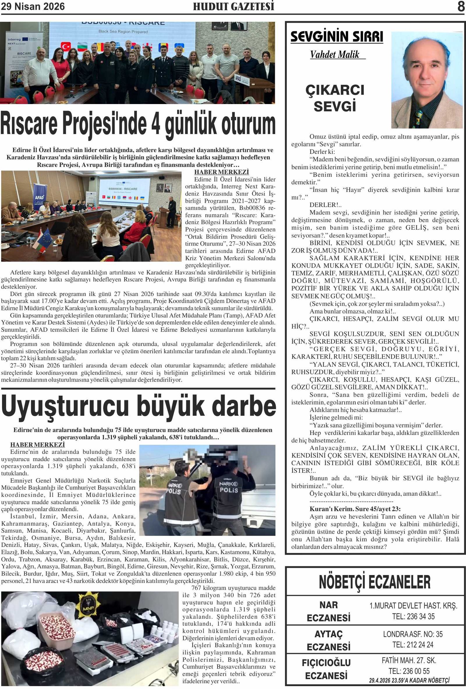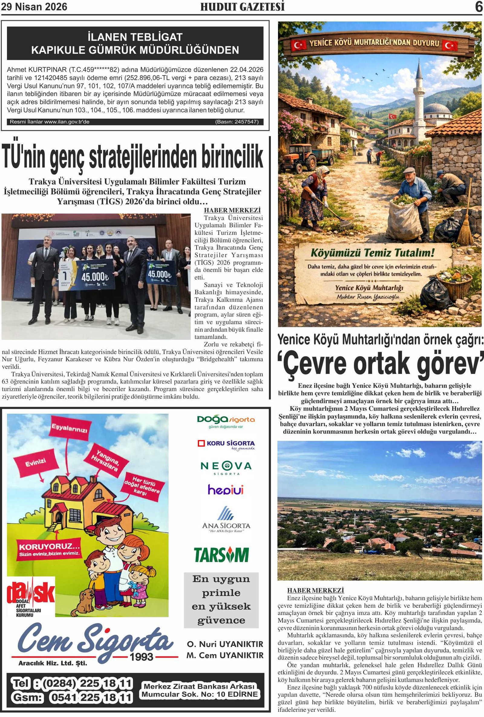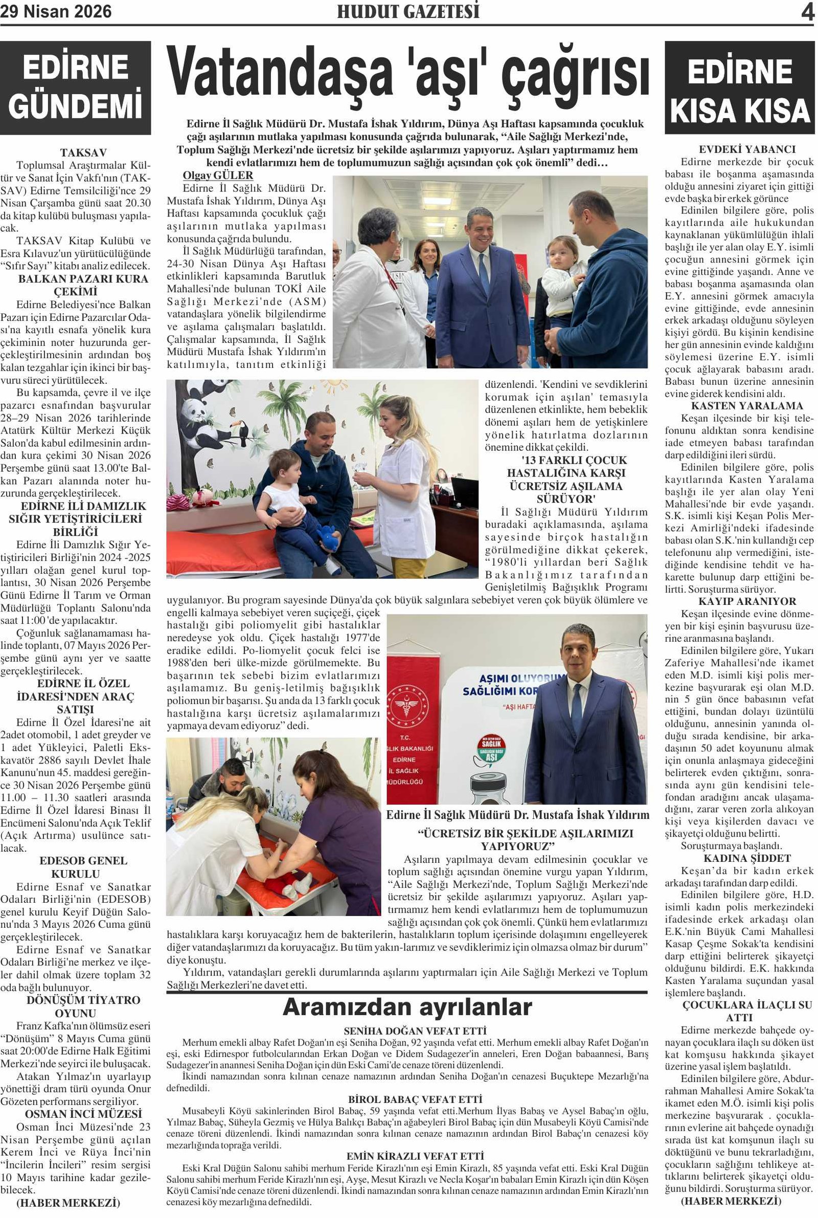 29 Nisan 2026 Çarşamba Hudut Gazetesi