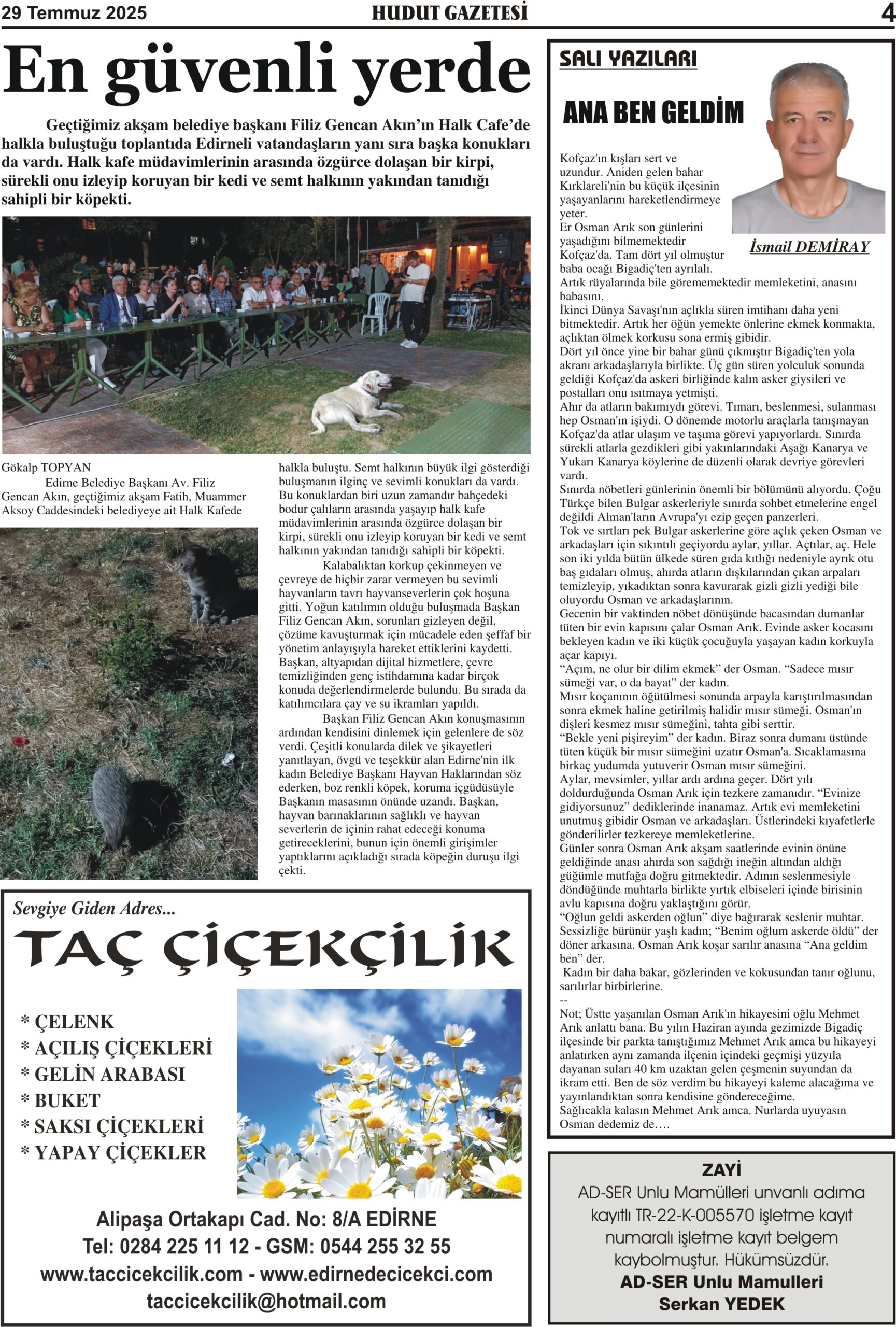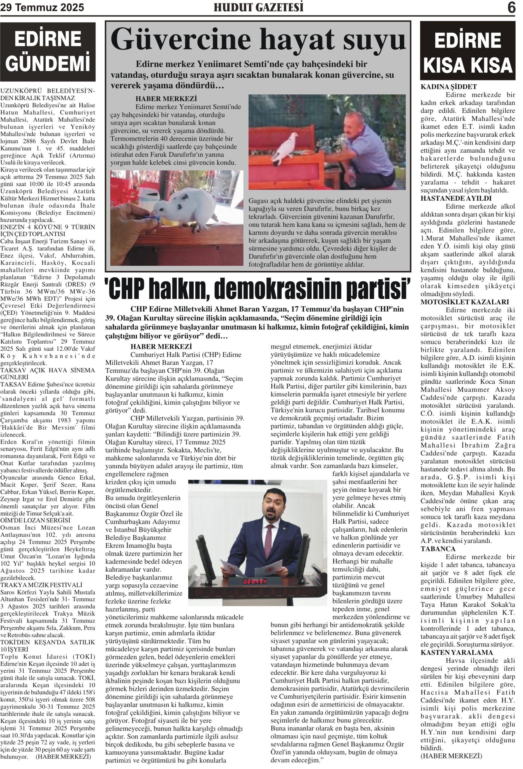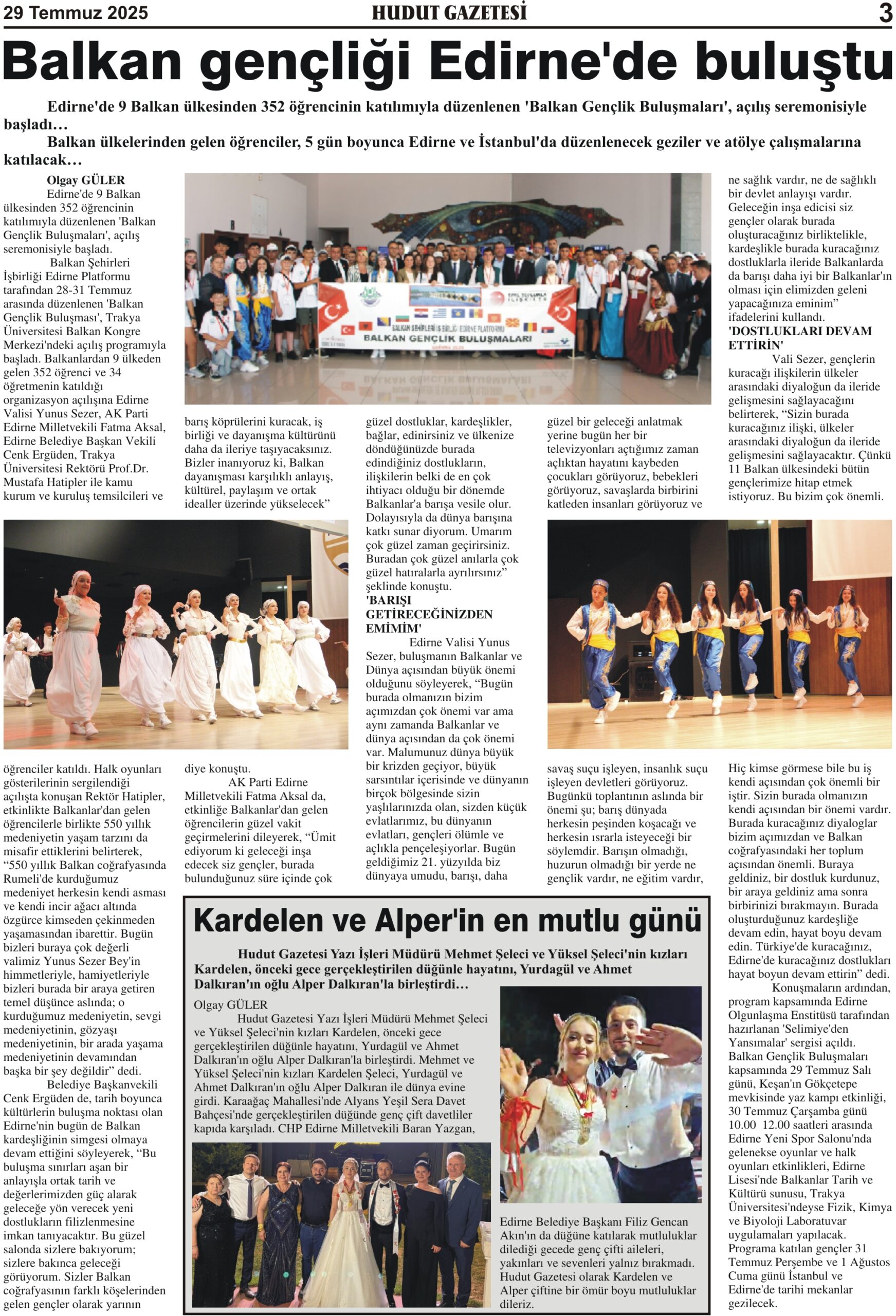 29 Temmuz 2025 Salı Hudut Gazetesi
