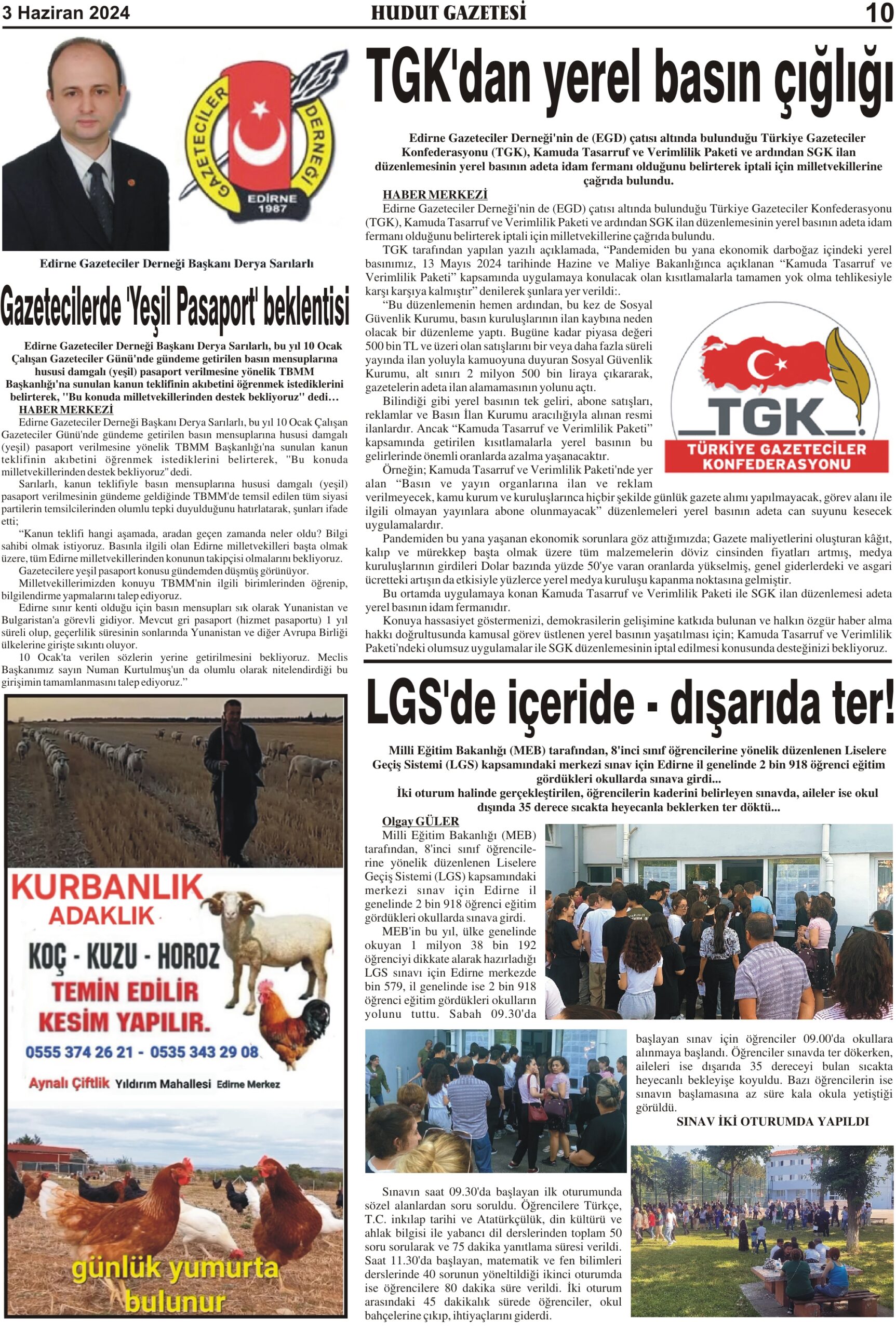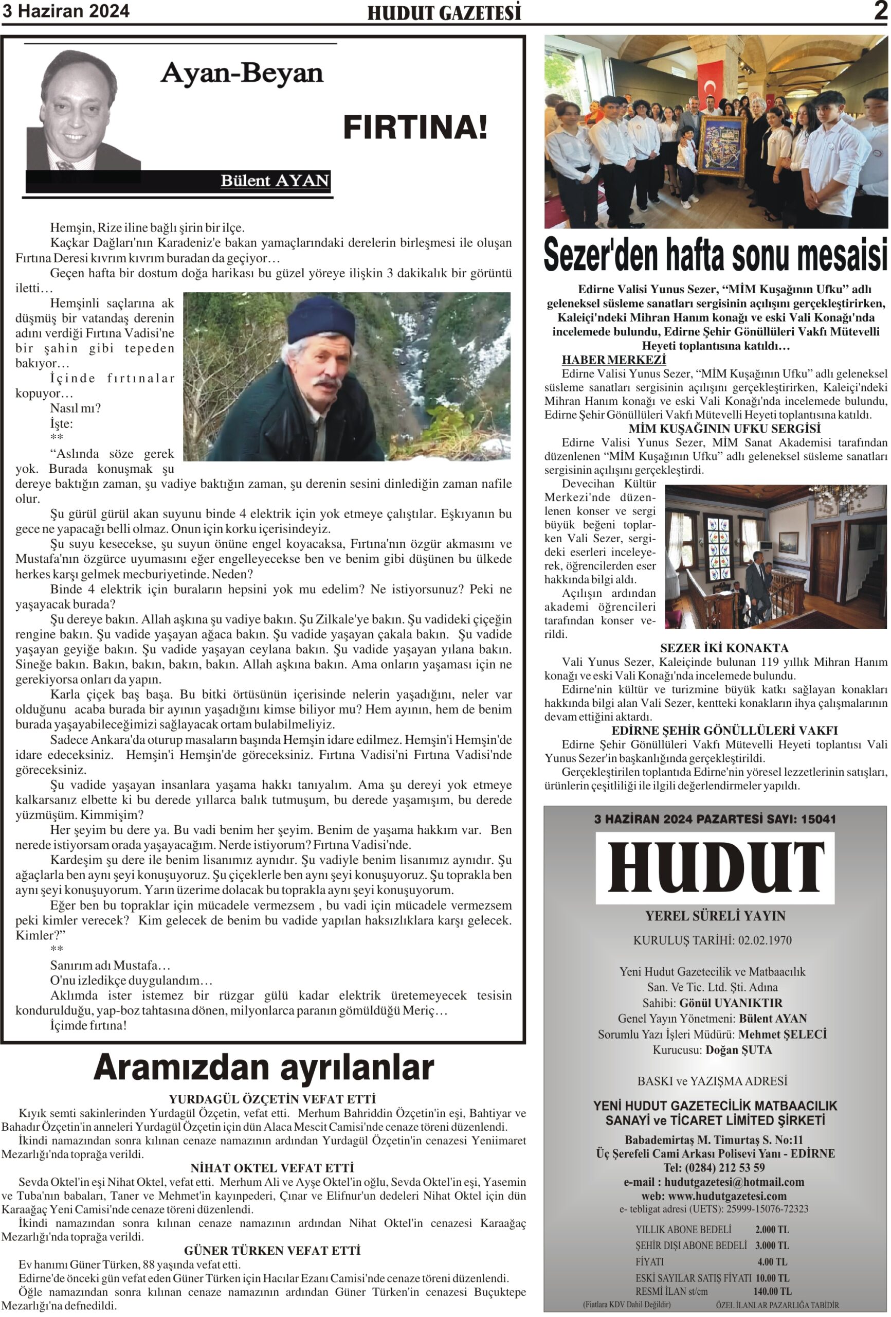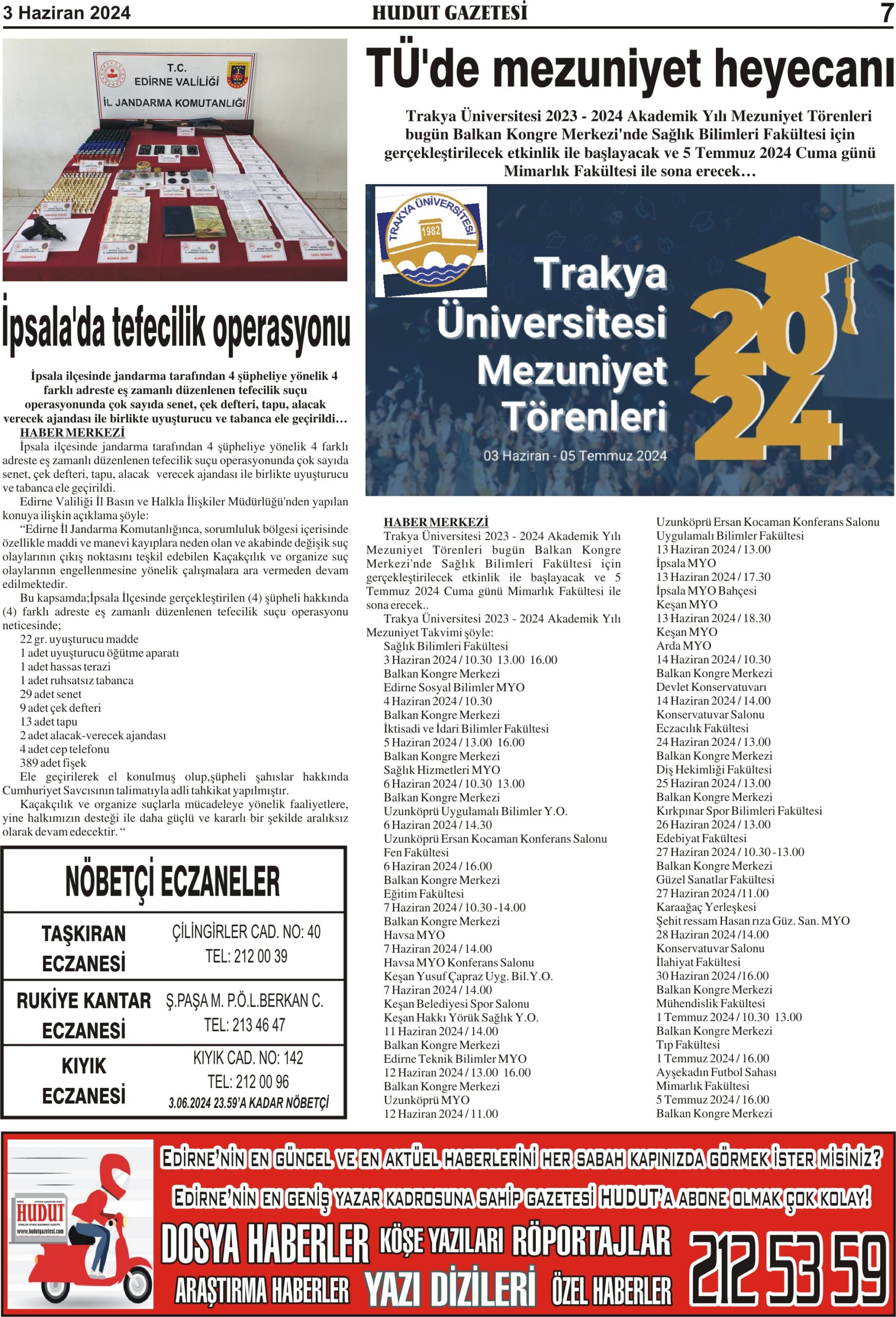 3 Haziran 2024 Pazartesi Hudut Gazetesi