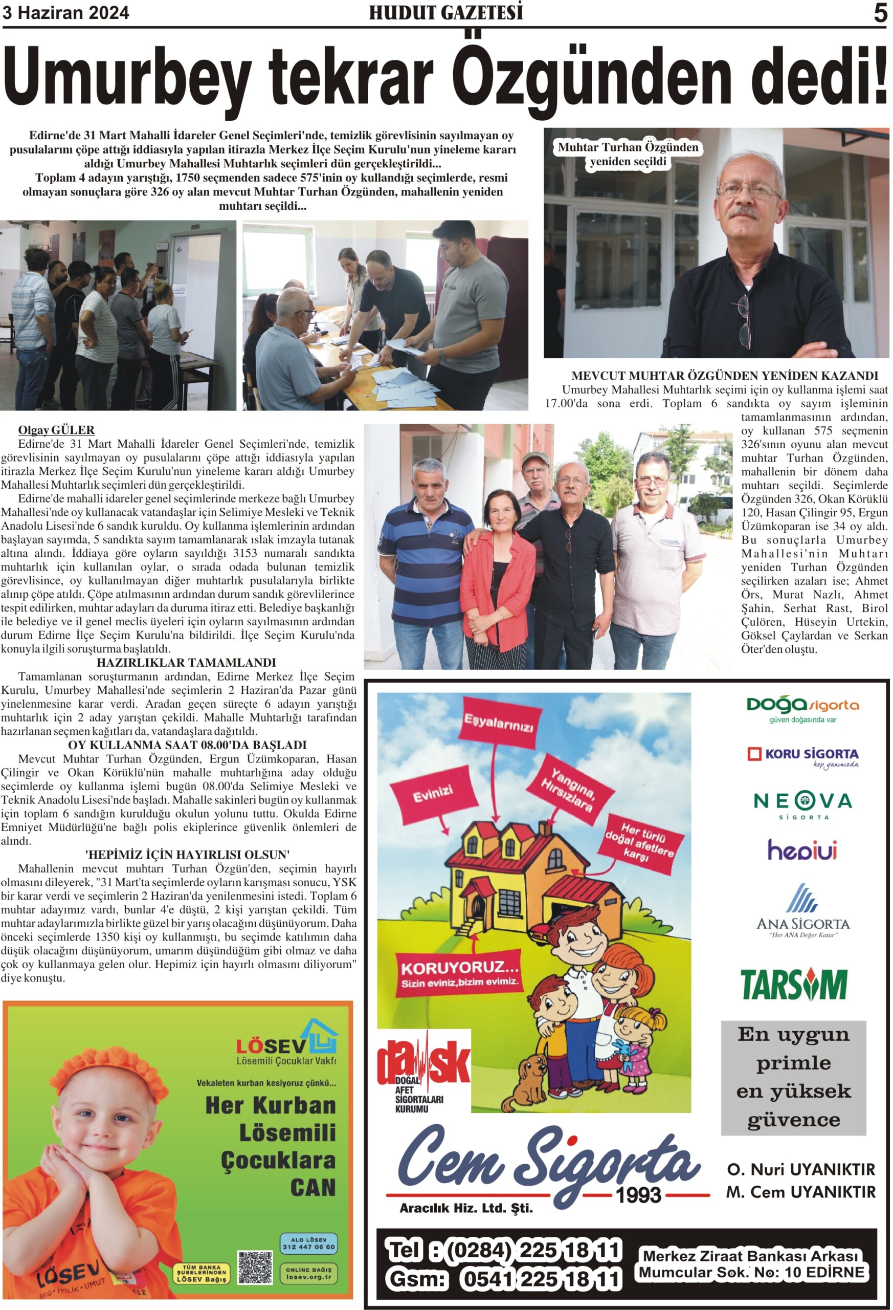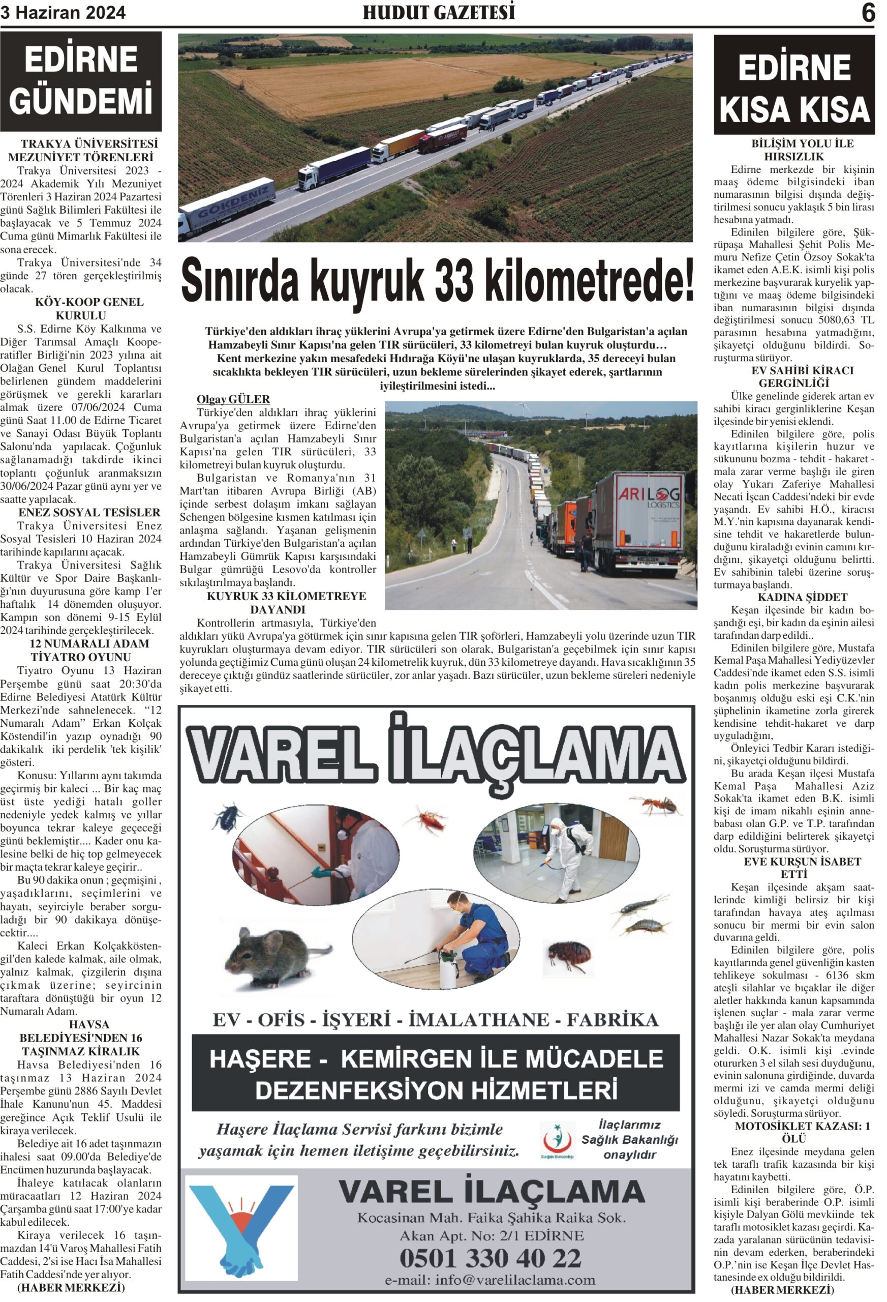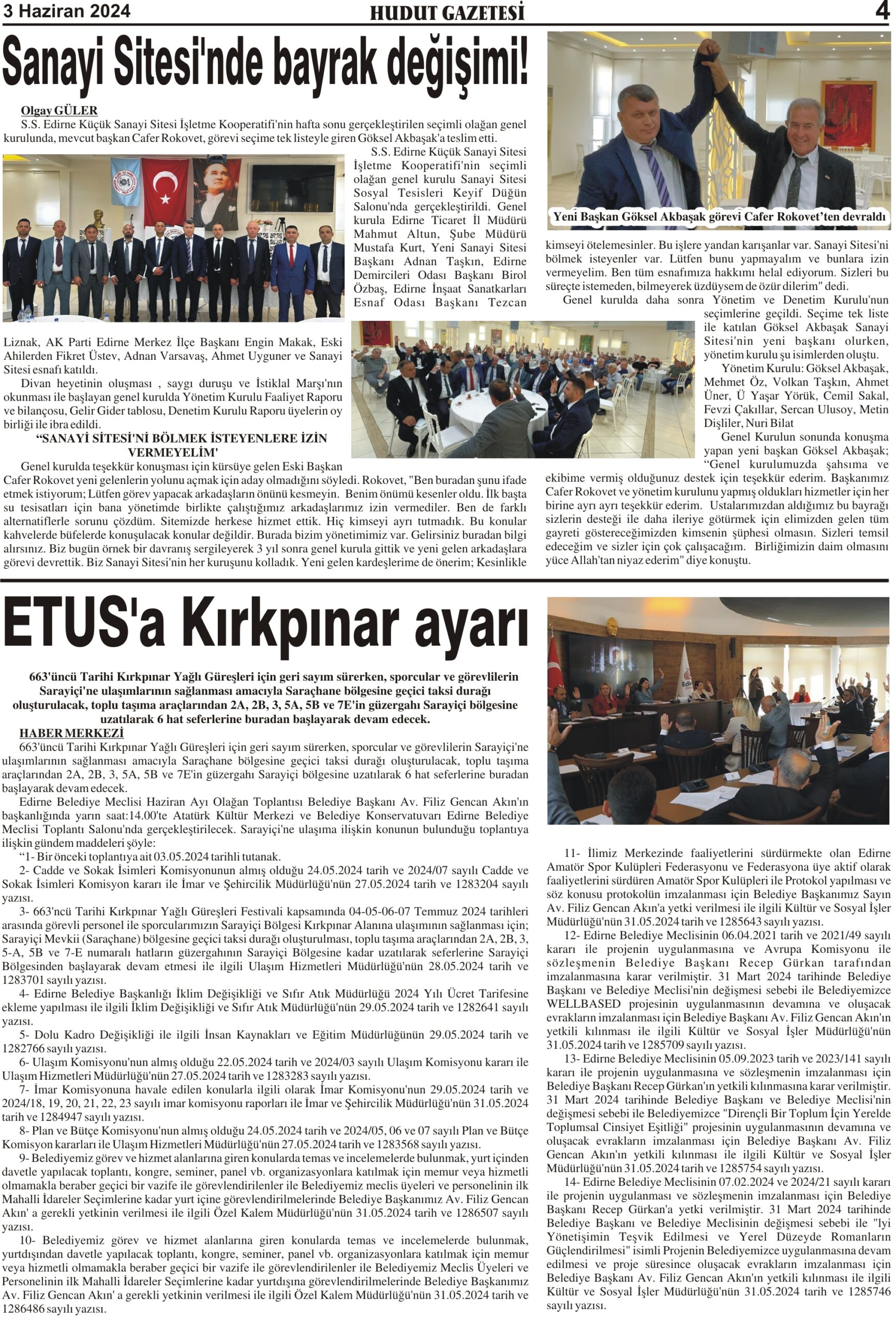 3 Haziran 2024 Pazartesi Hudut Gazetesi