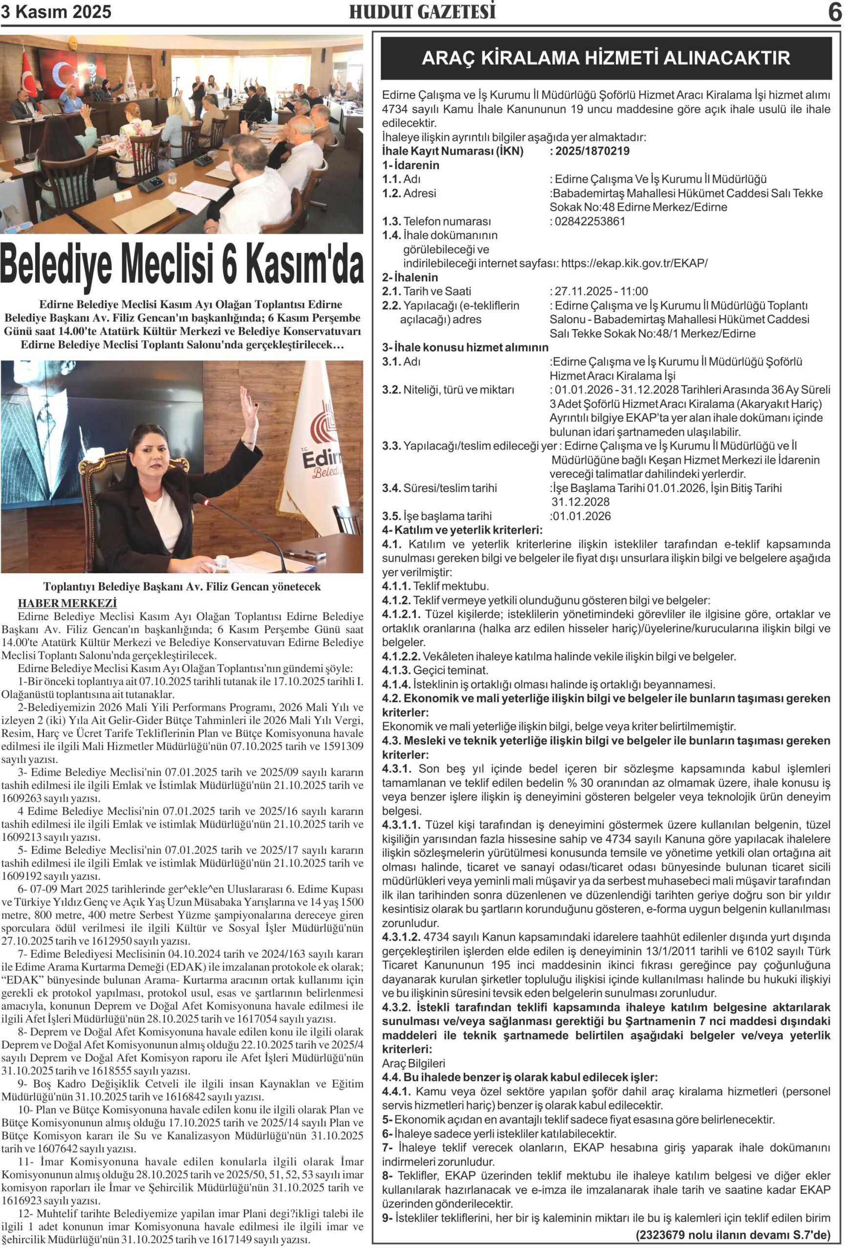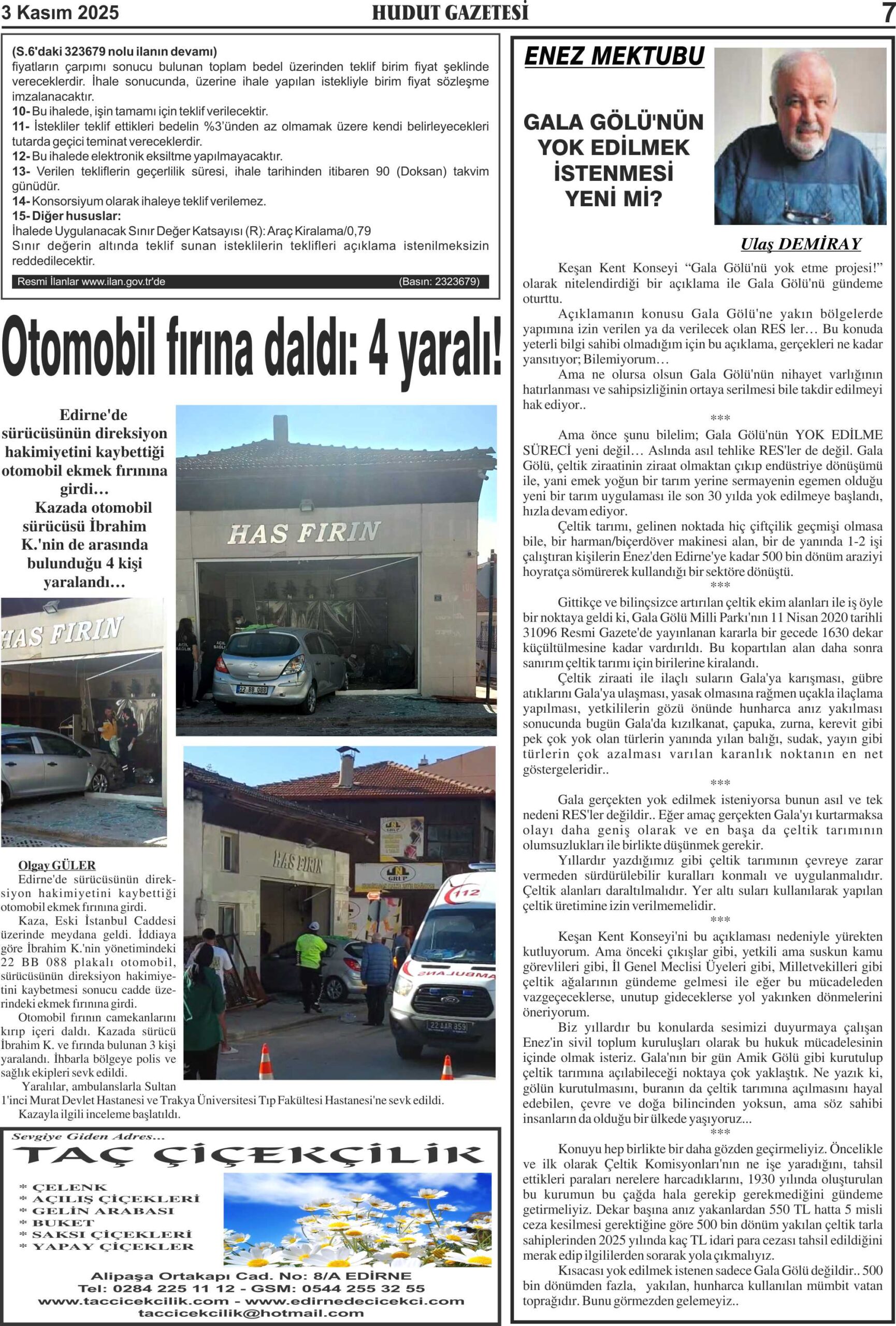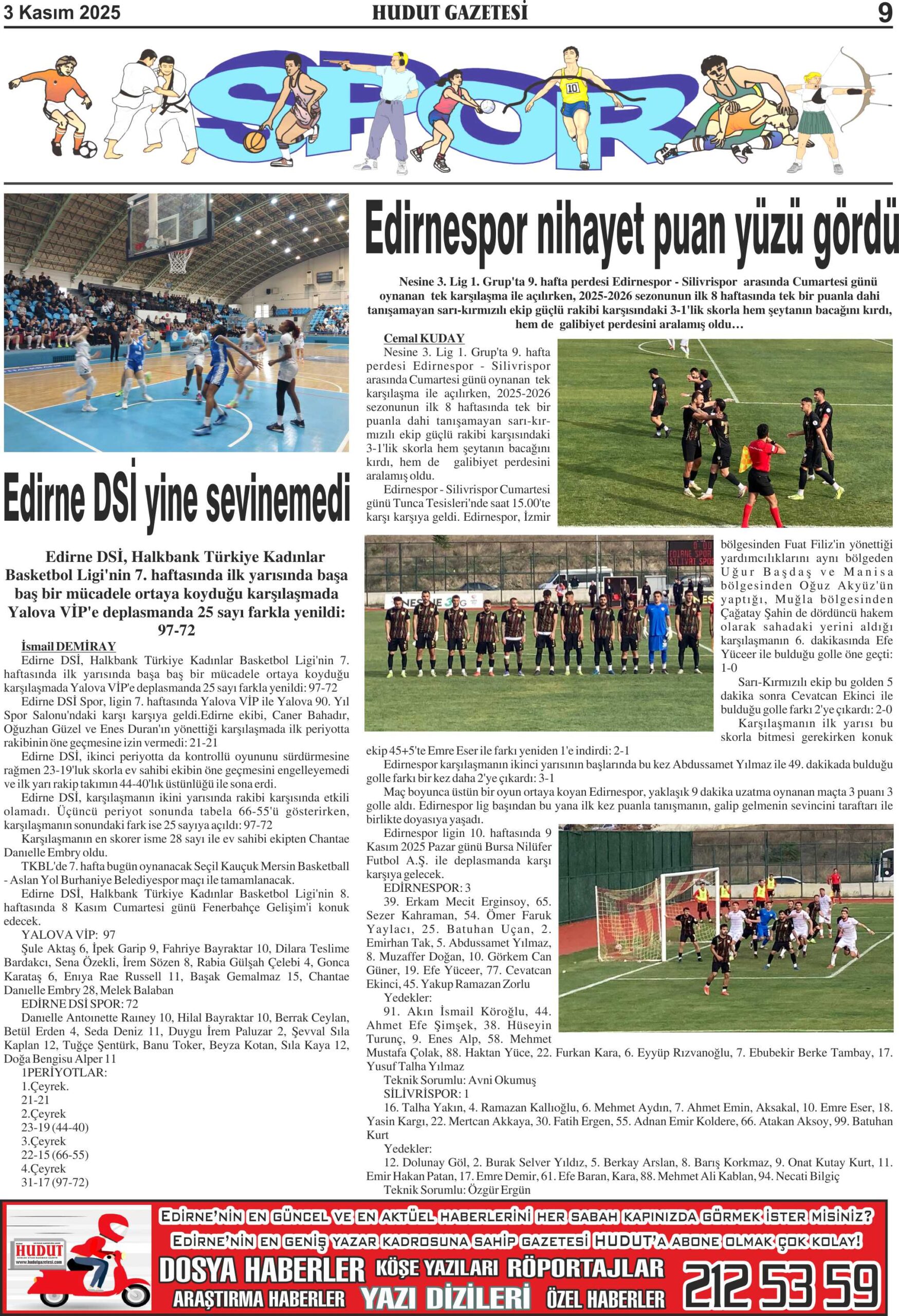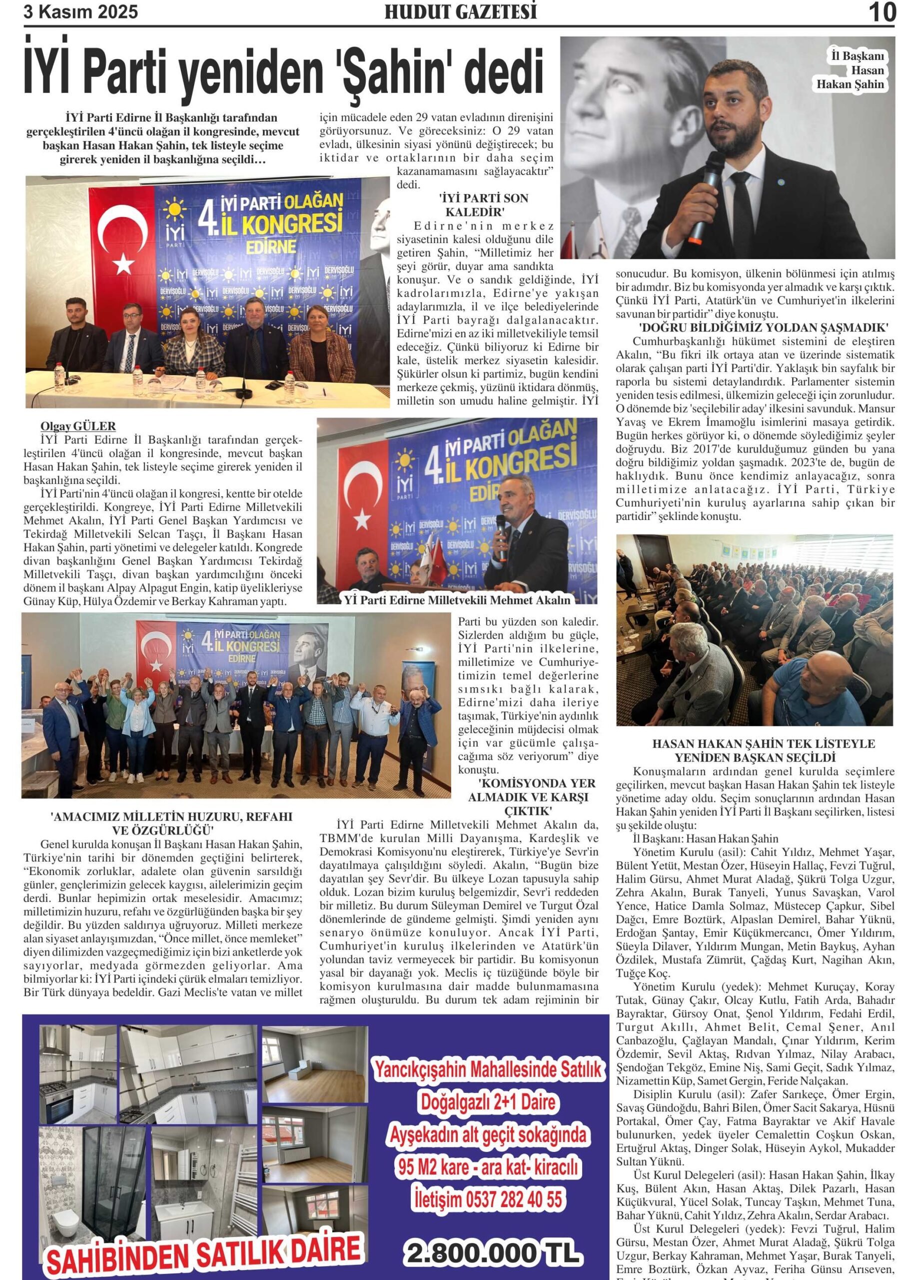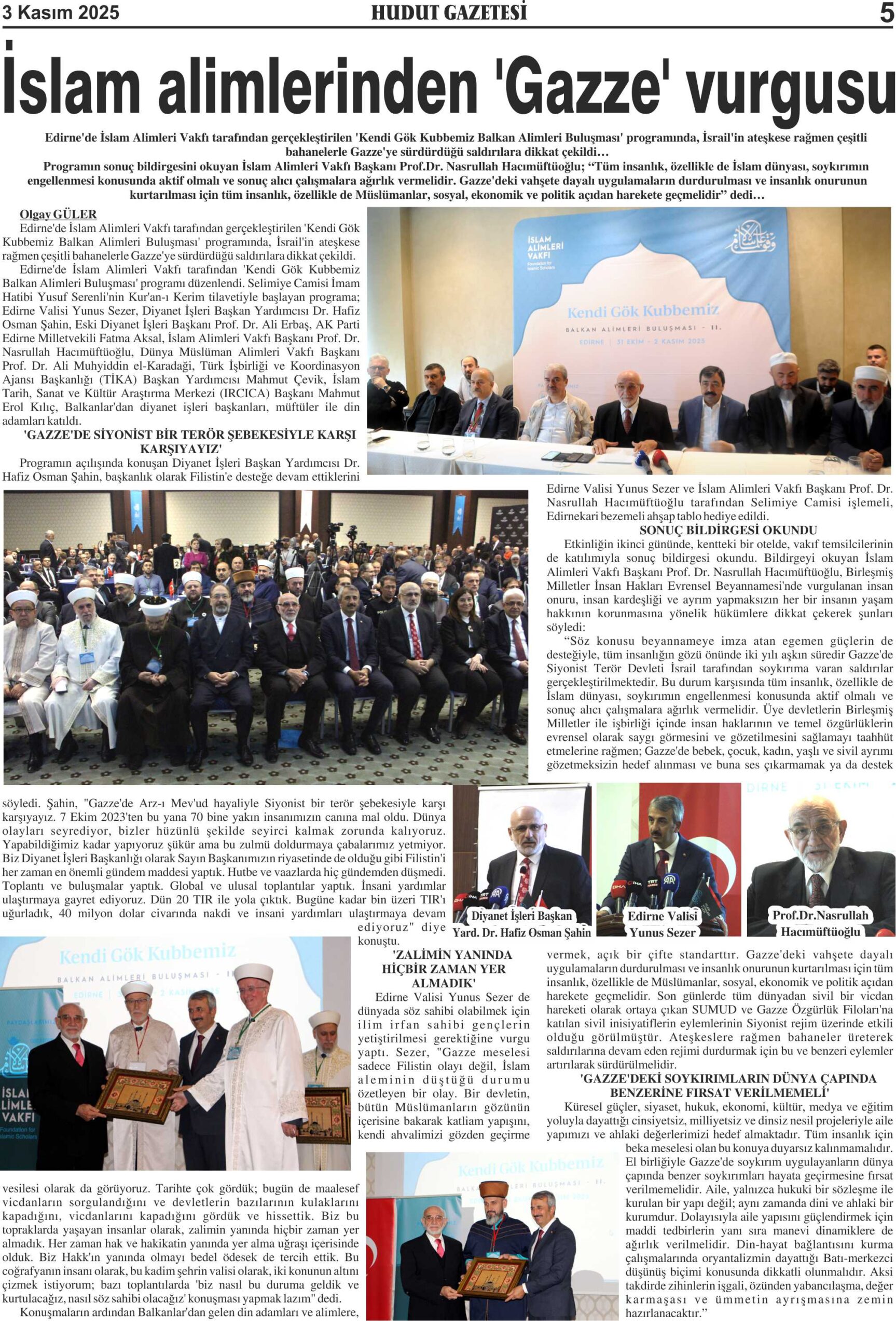 3 Kasım 2025 Pazartesi Hudut Gazetesi