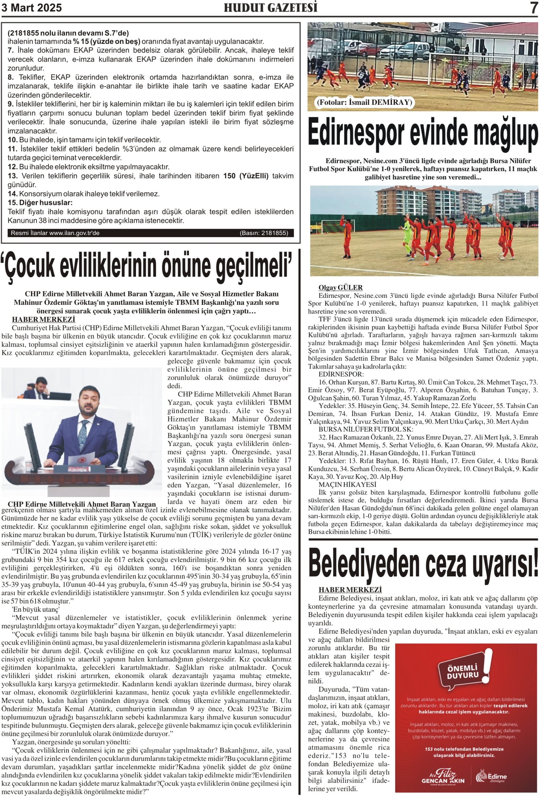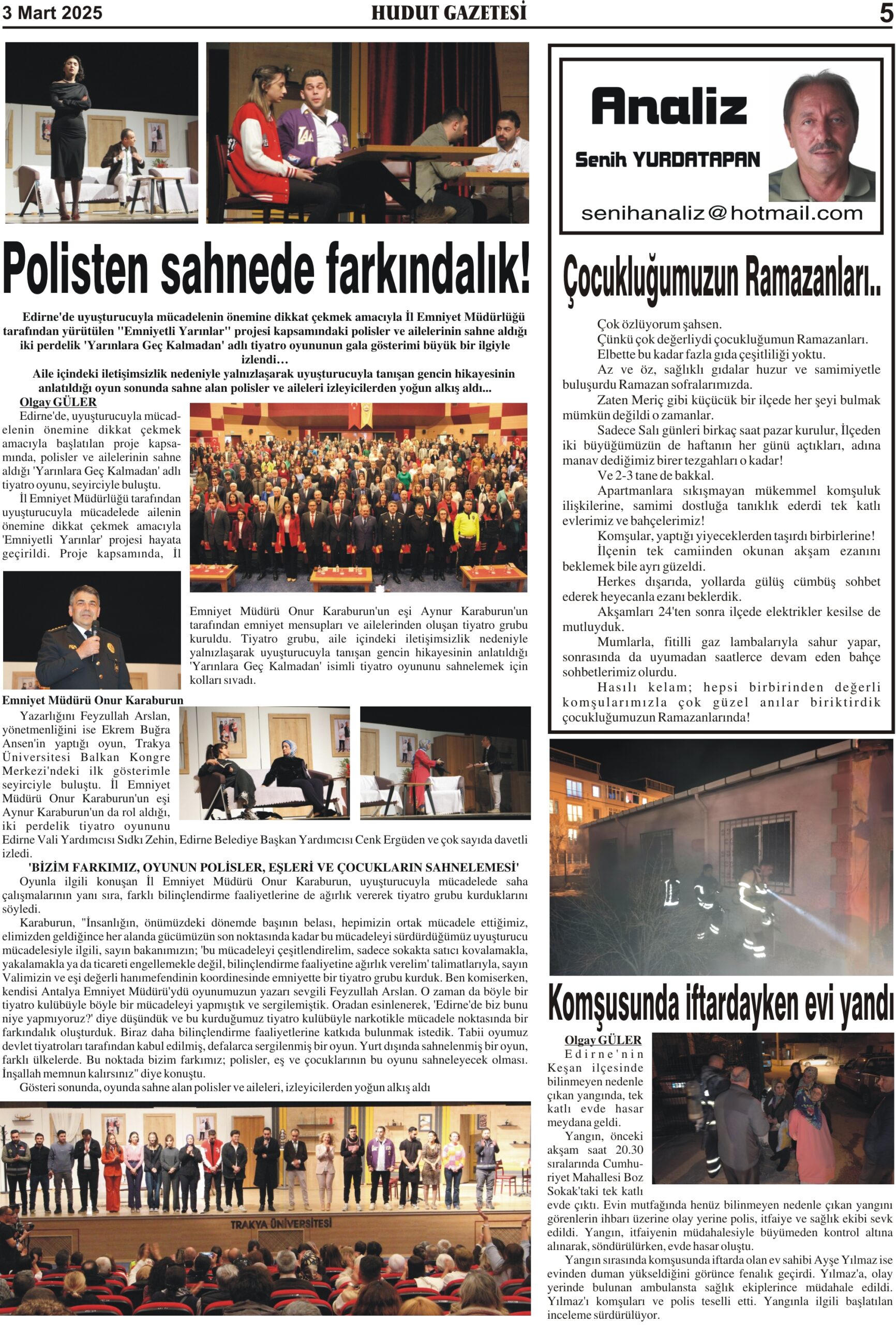 3 Mart 2025 Pazartesi Hudut Gazetesi