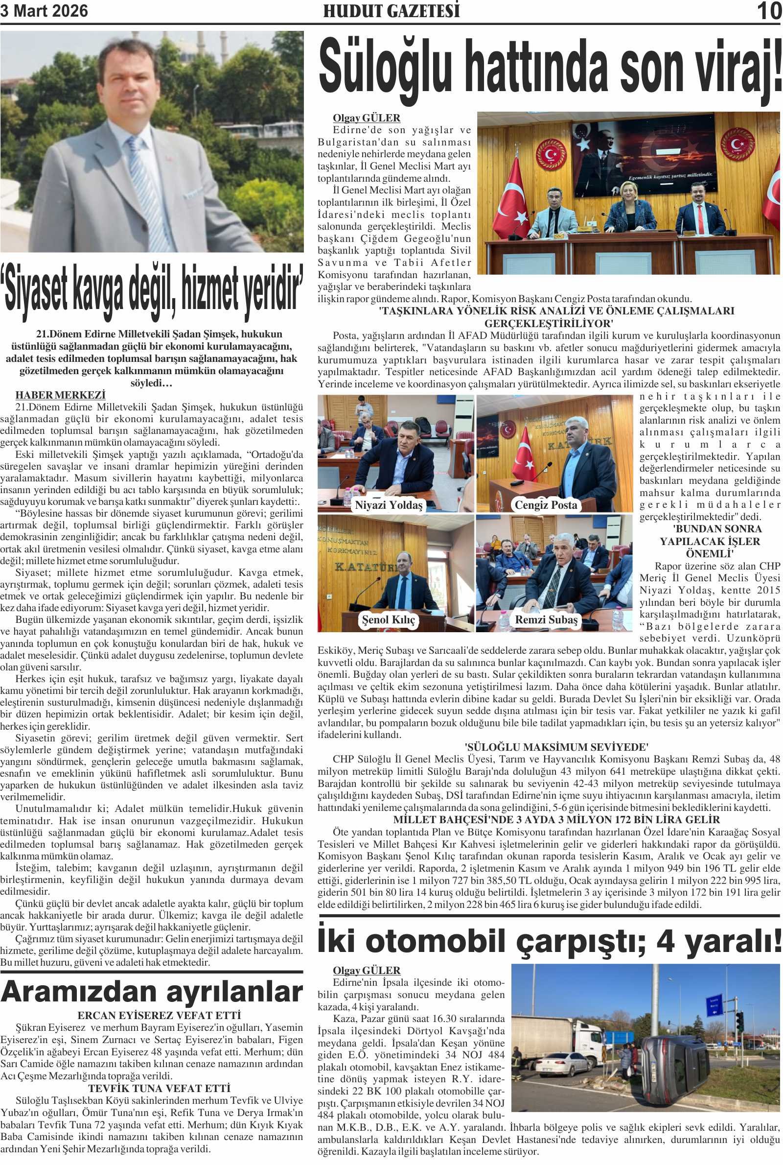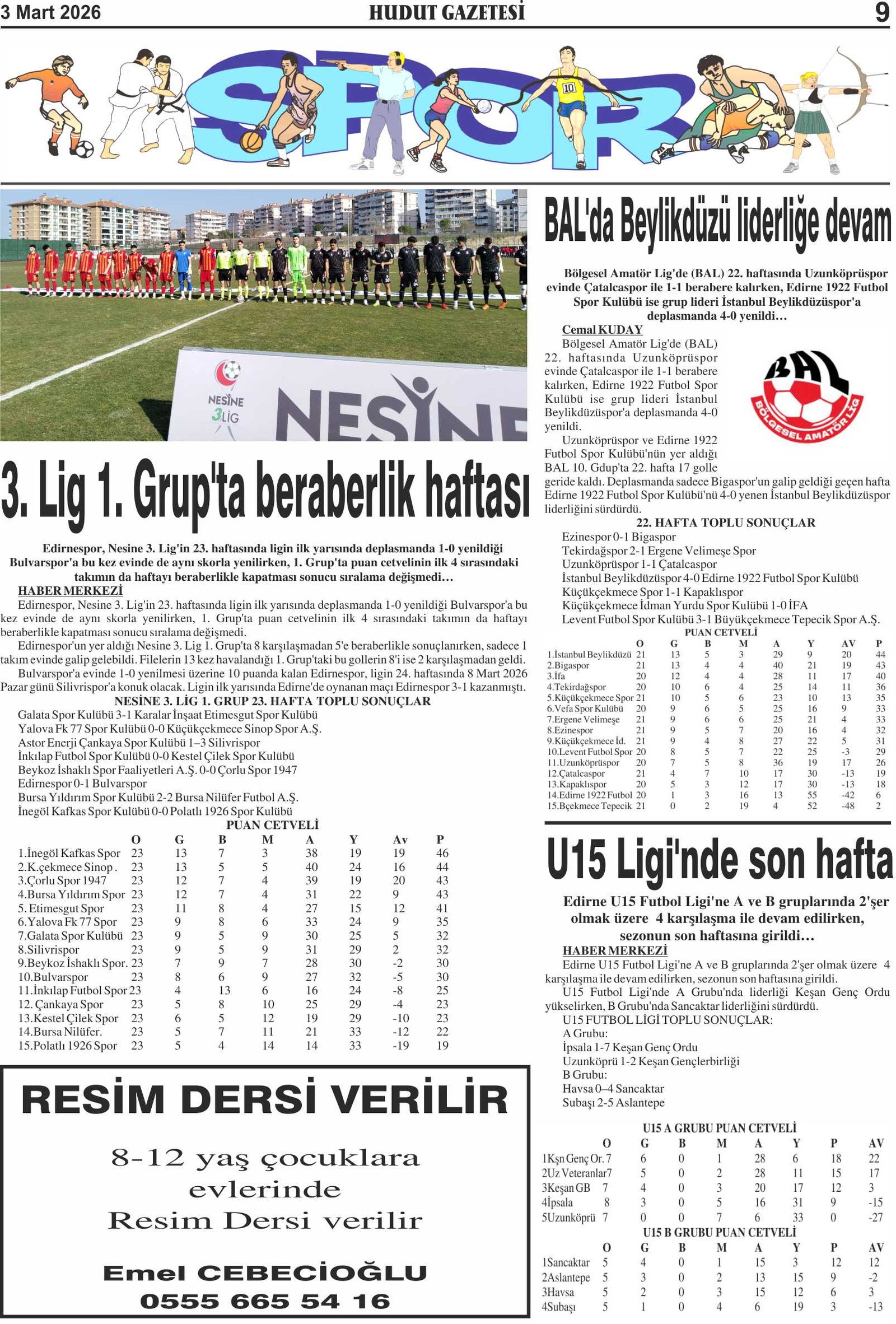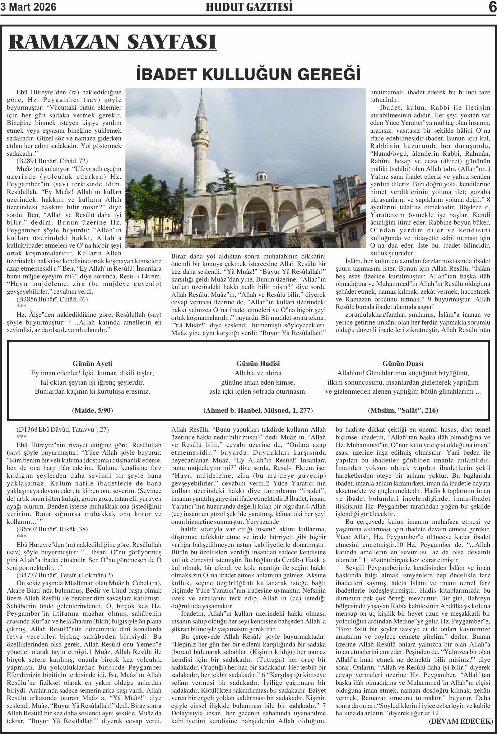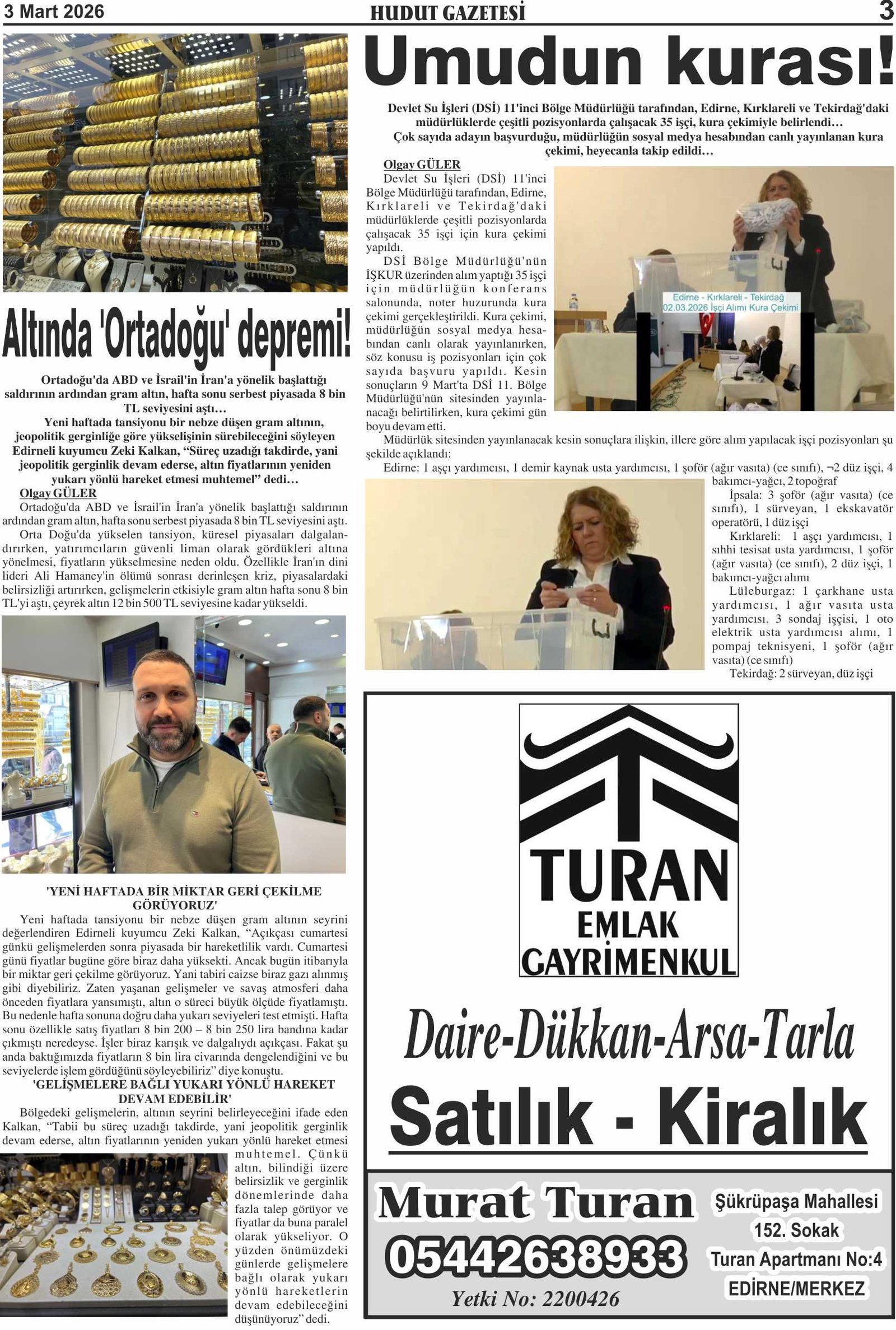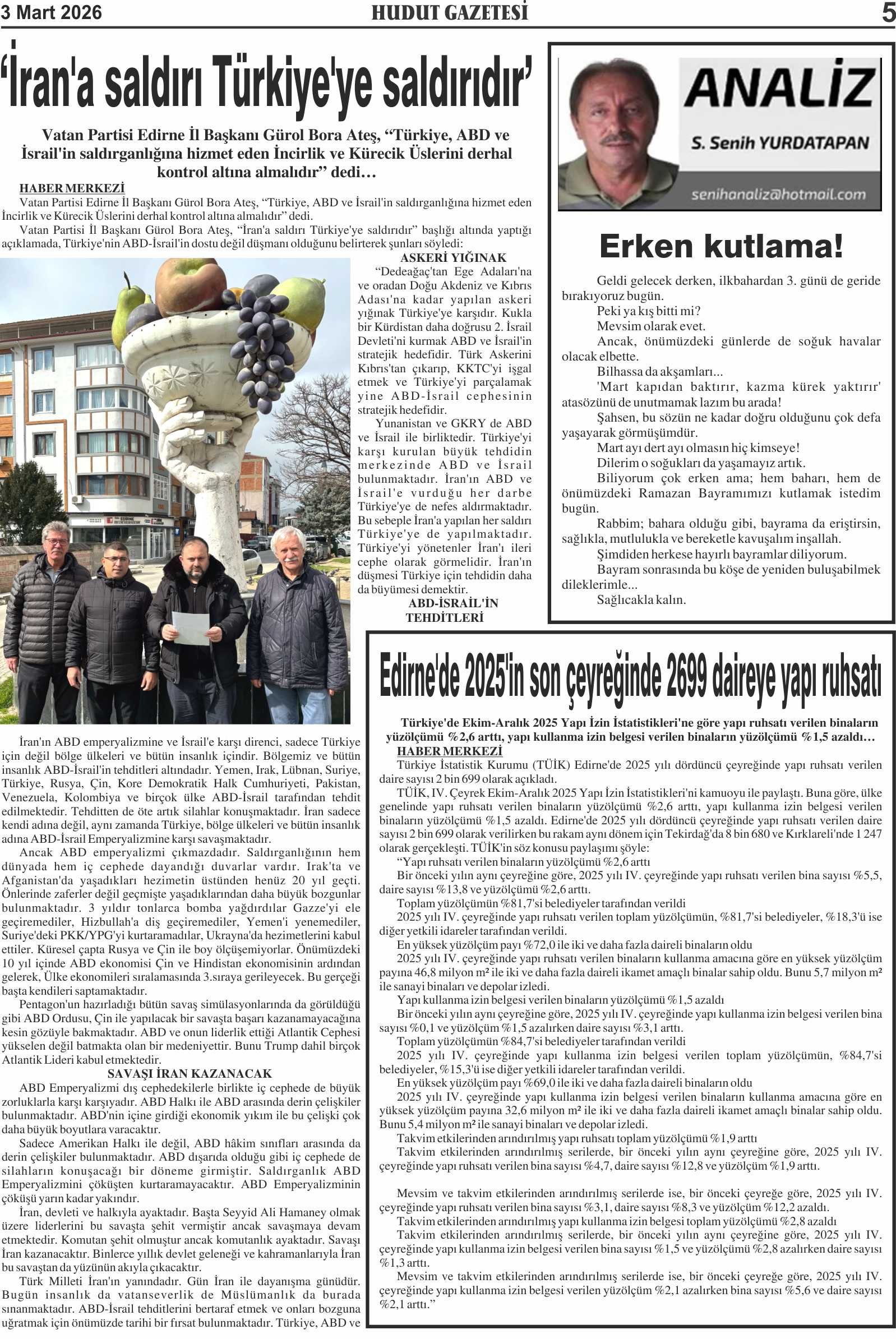 5 Mart 2026 Perşembe Hudut Gazetesi