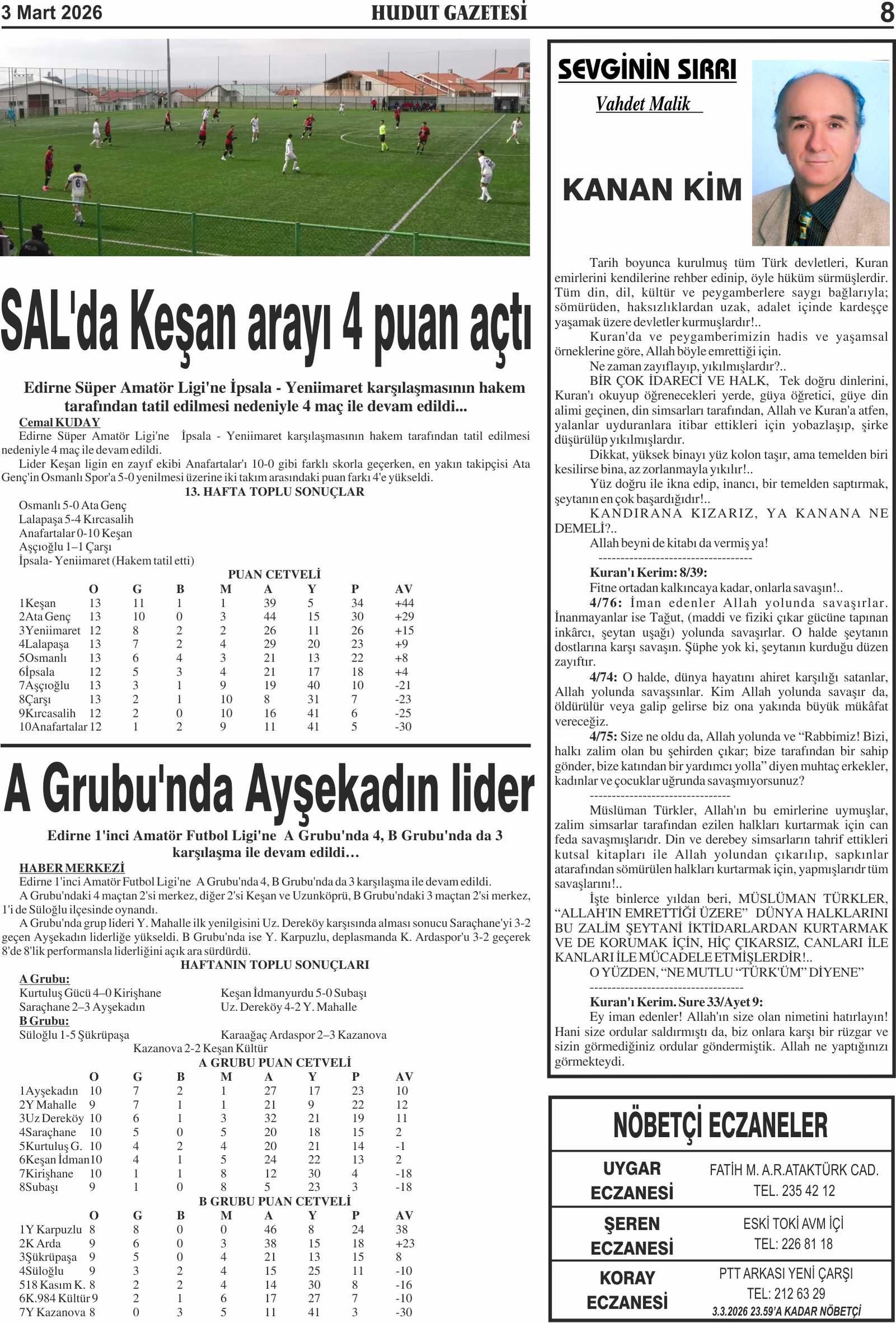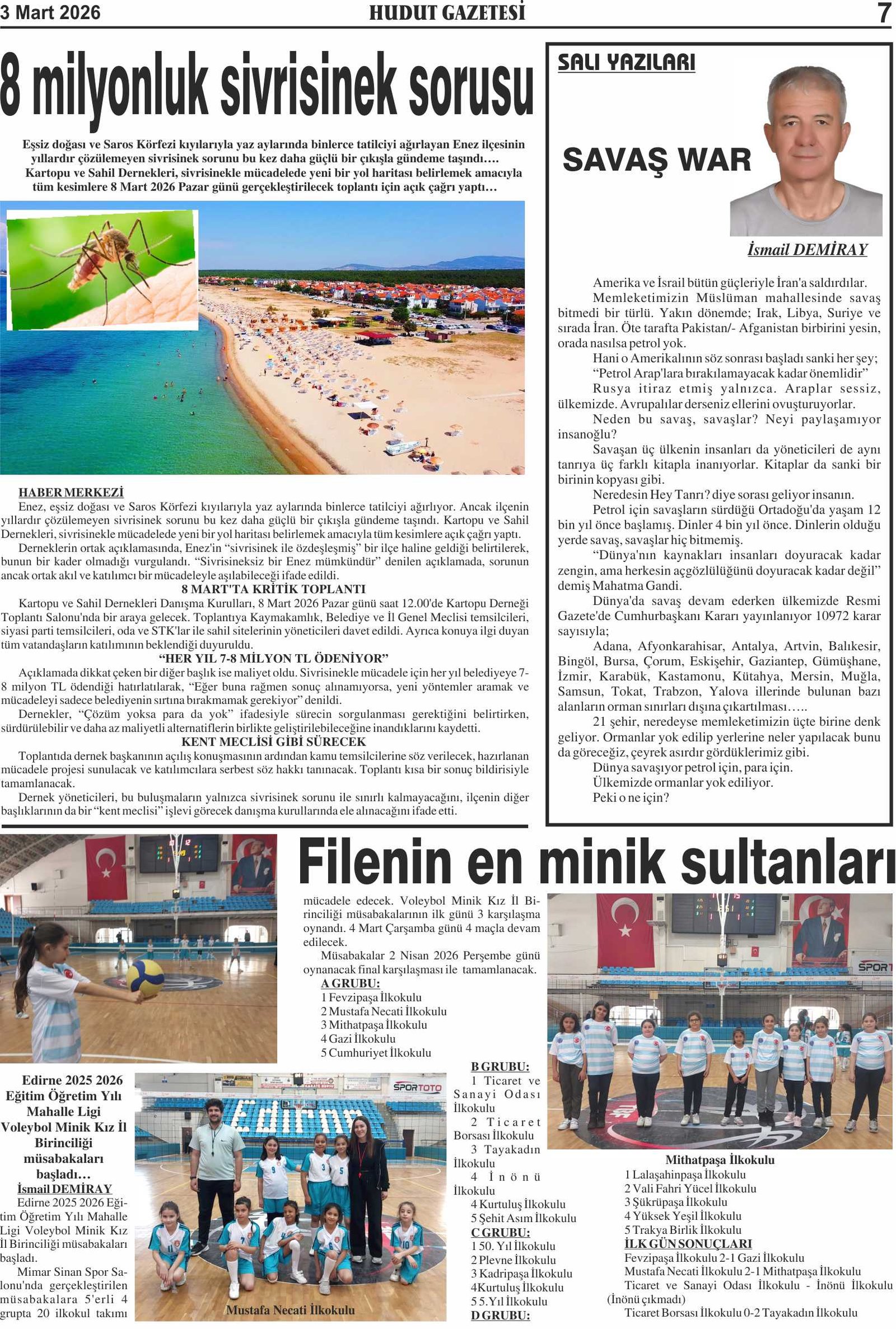 28 Şubat 2026 Cumartesi Hudut Gazetesi
