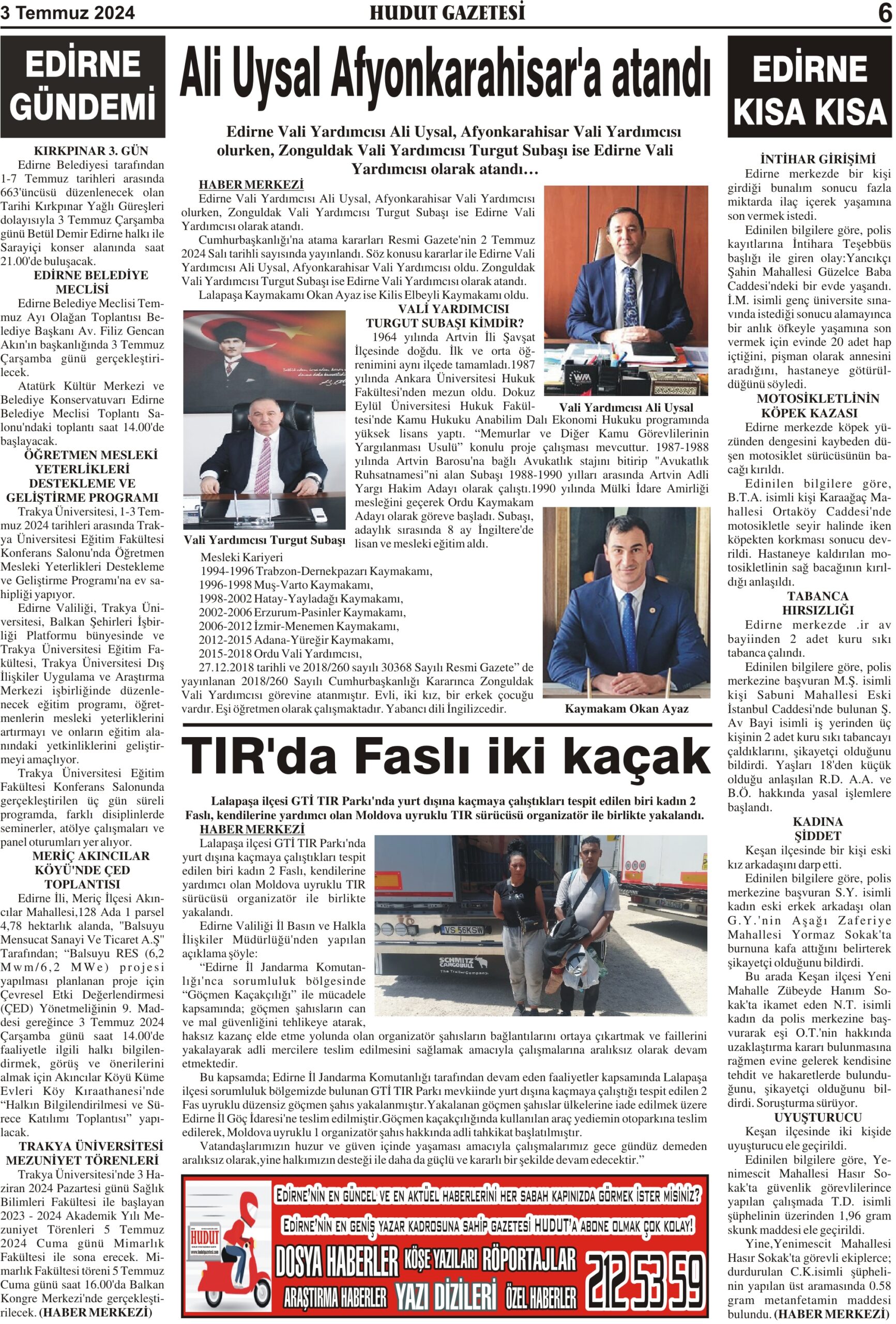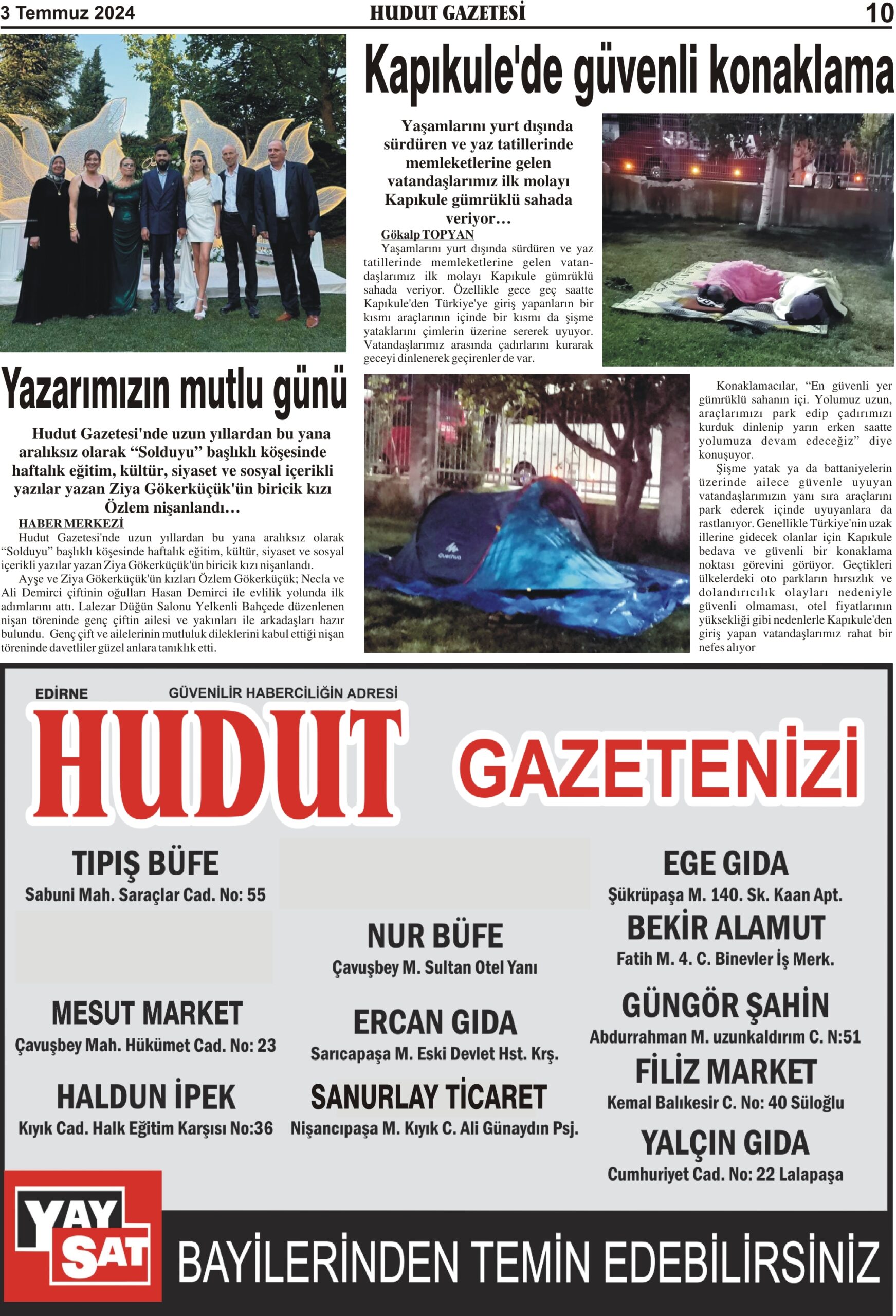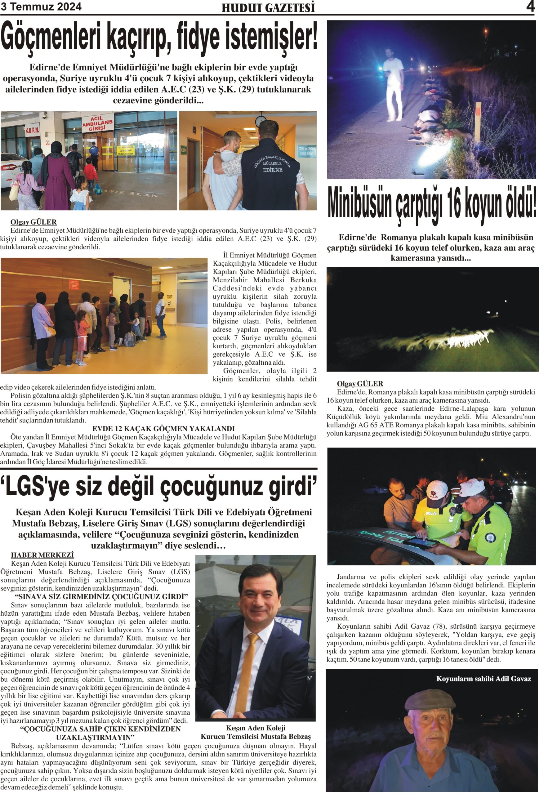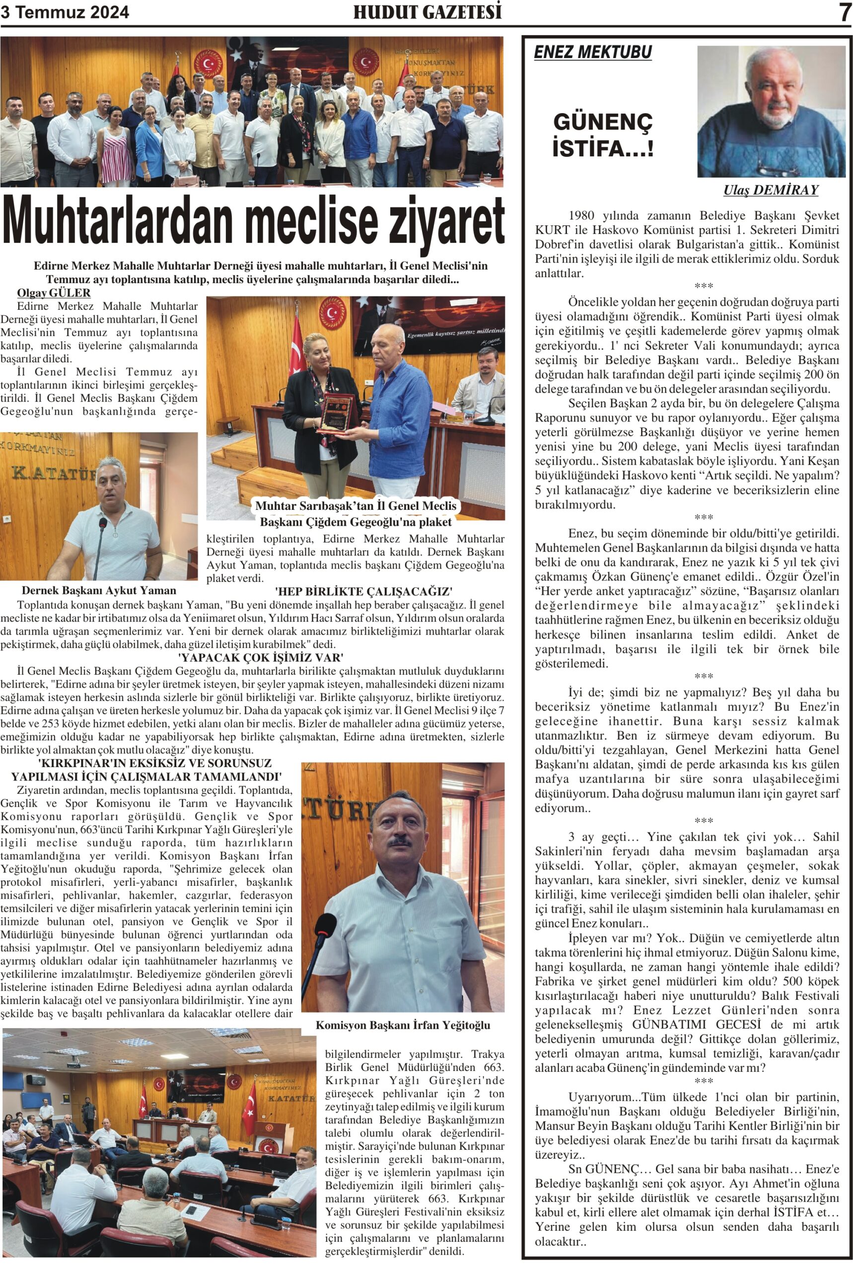 3 Temmuz 2024 Çarşamba Hudut Gazetesi