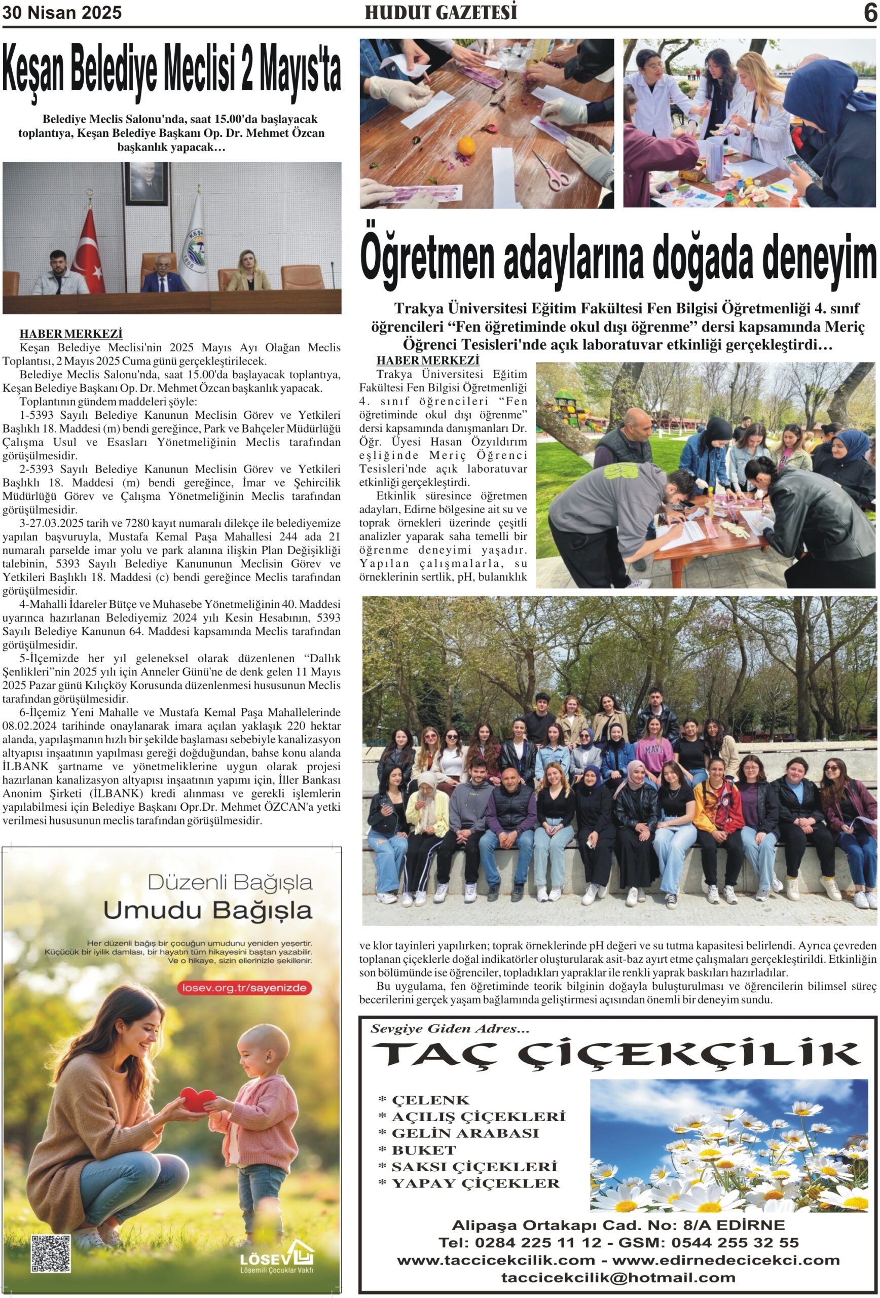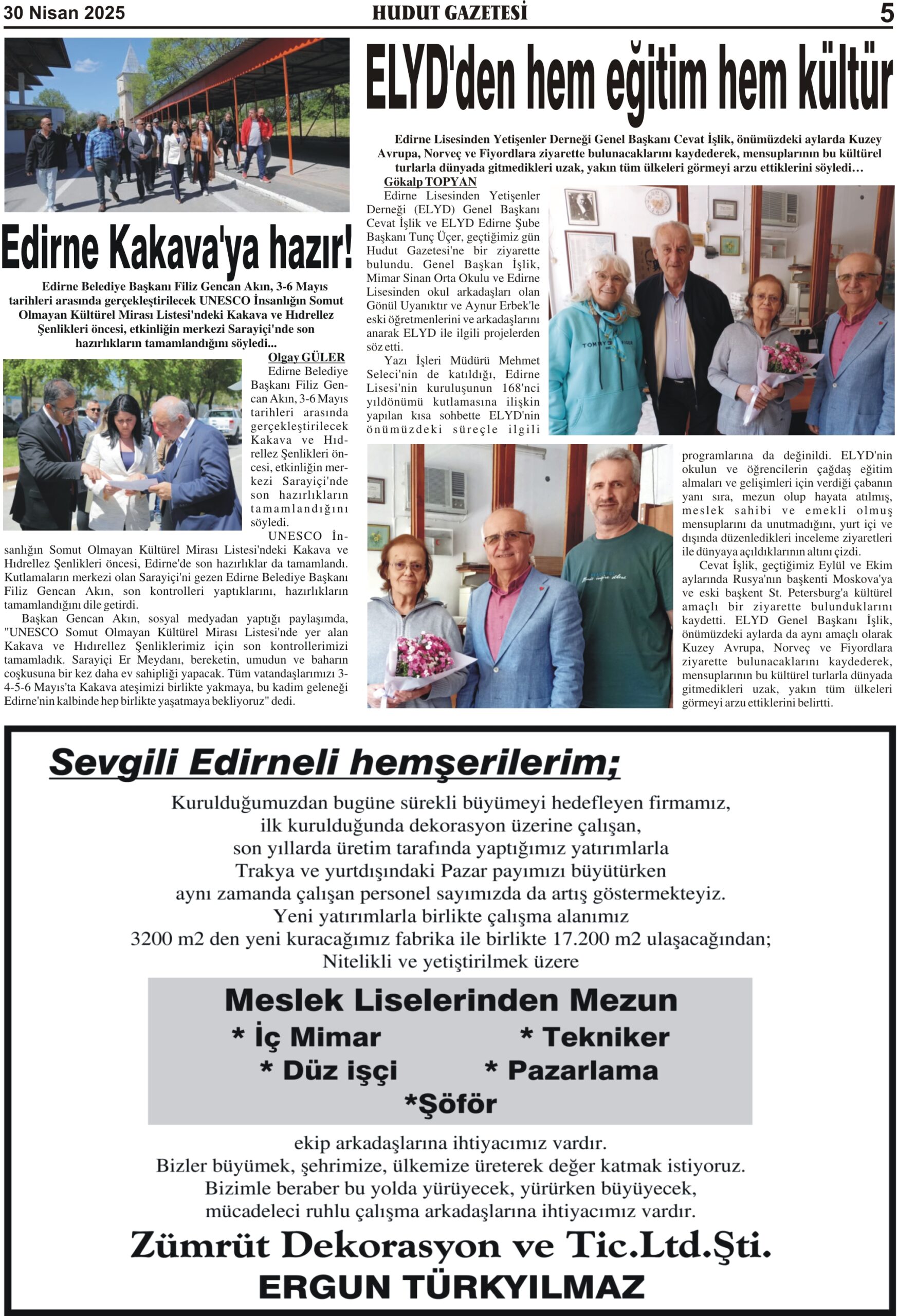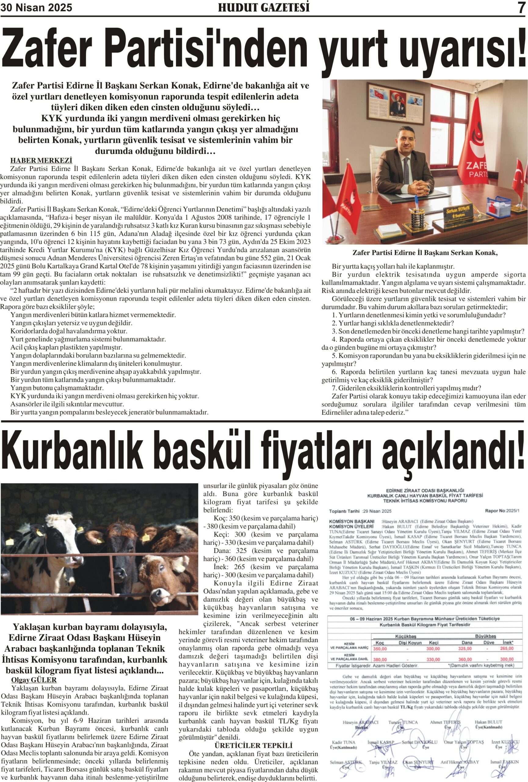 30 Nisan 2025 Çarşamba Hudut Gazetesi