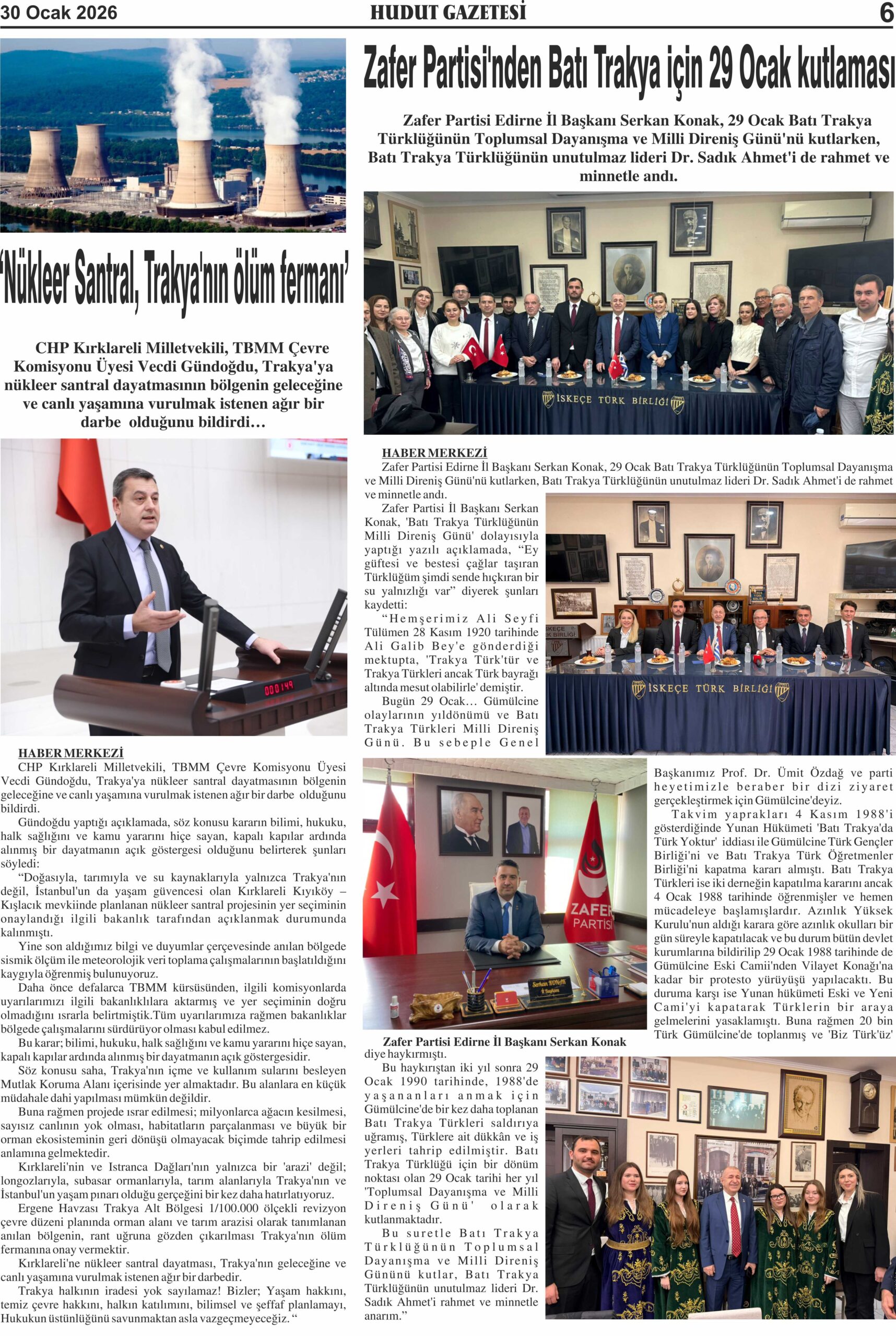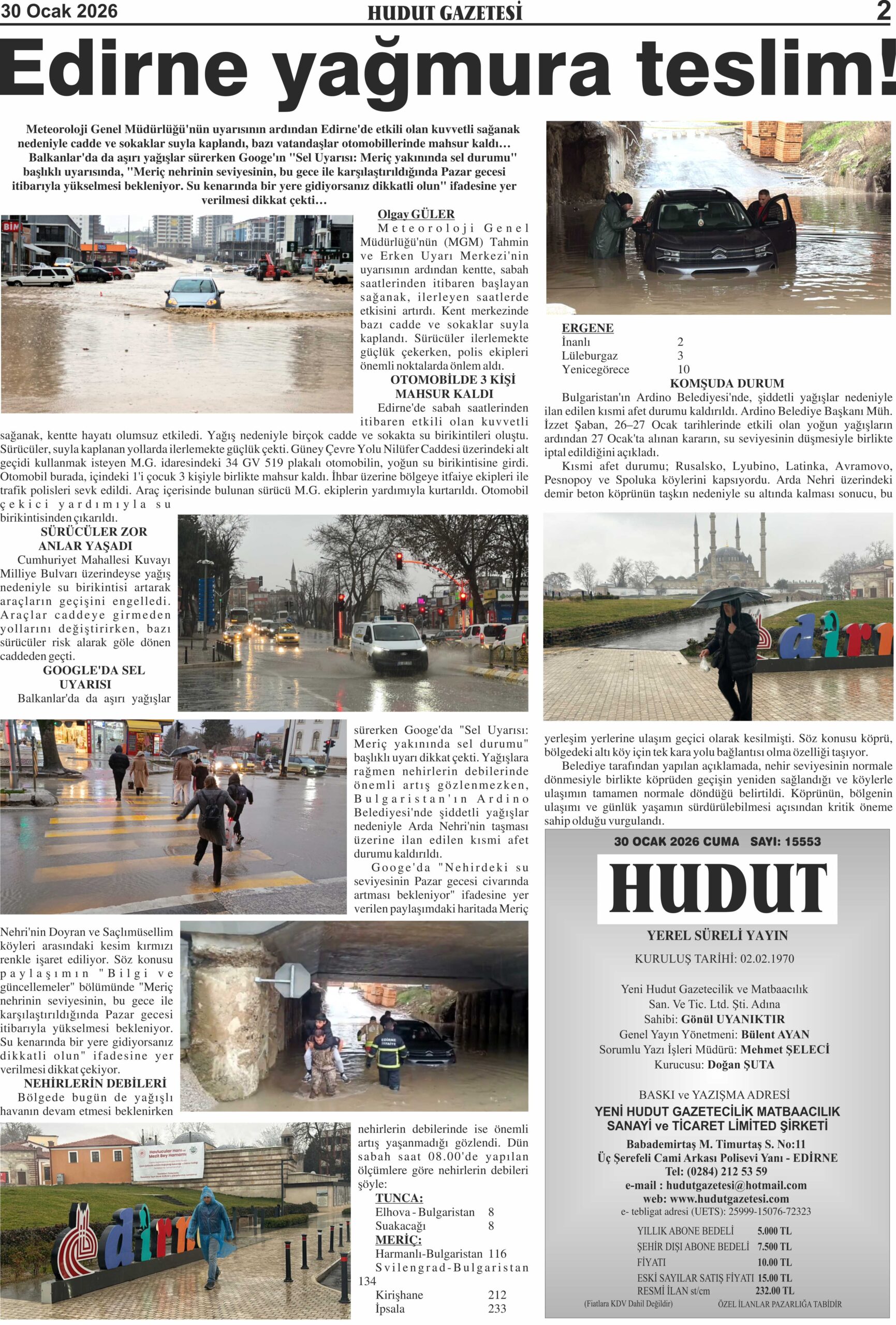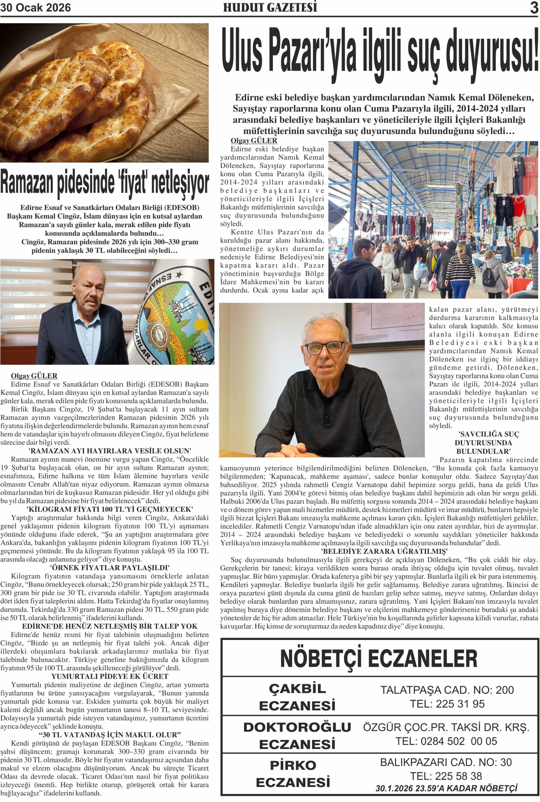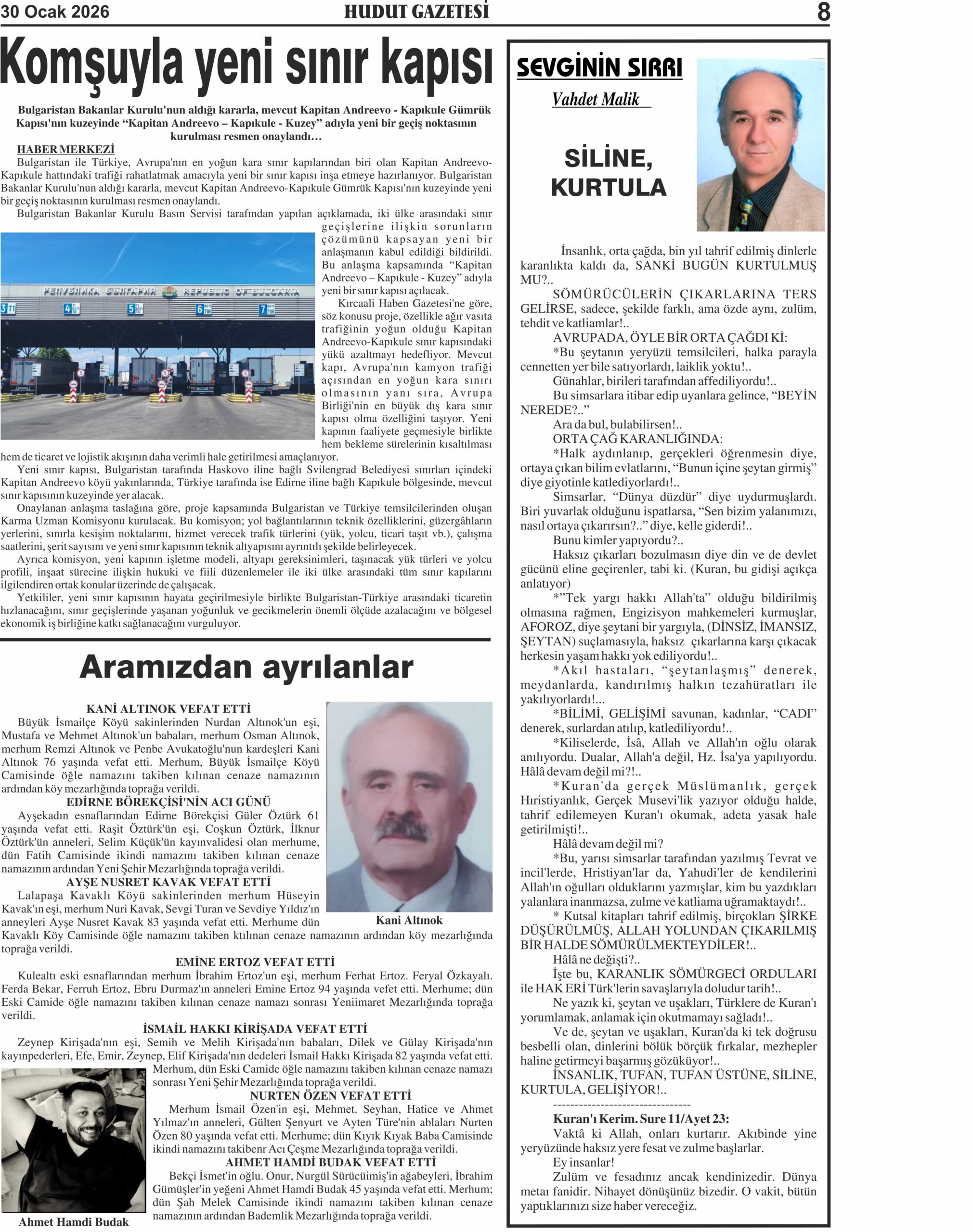 30 Ocak 2026 Cuma Hudut Gazetesi