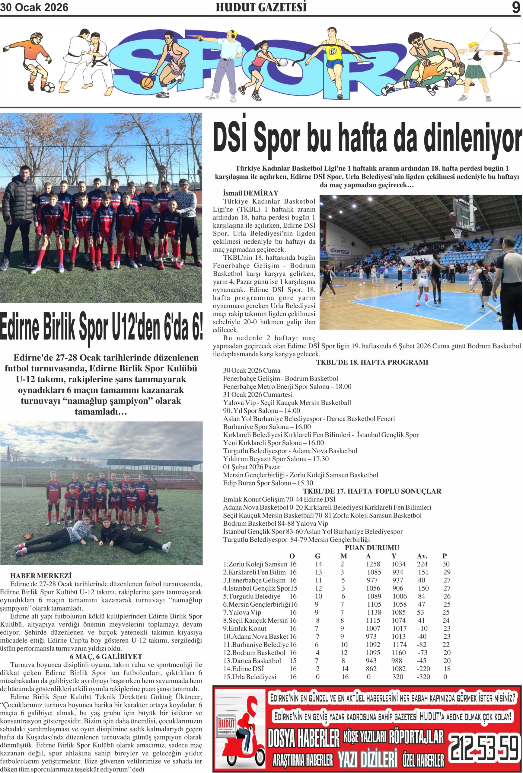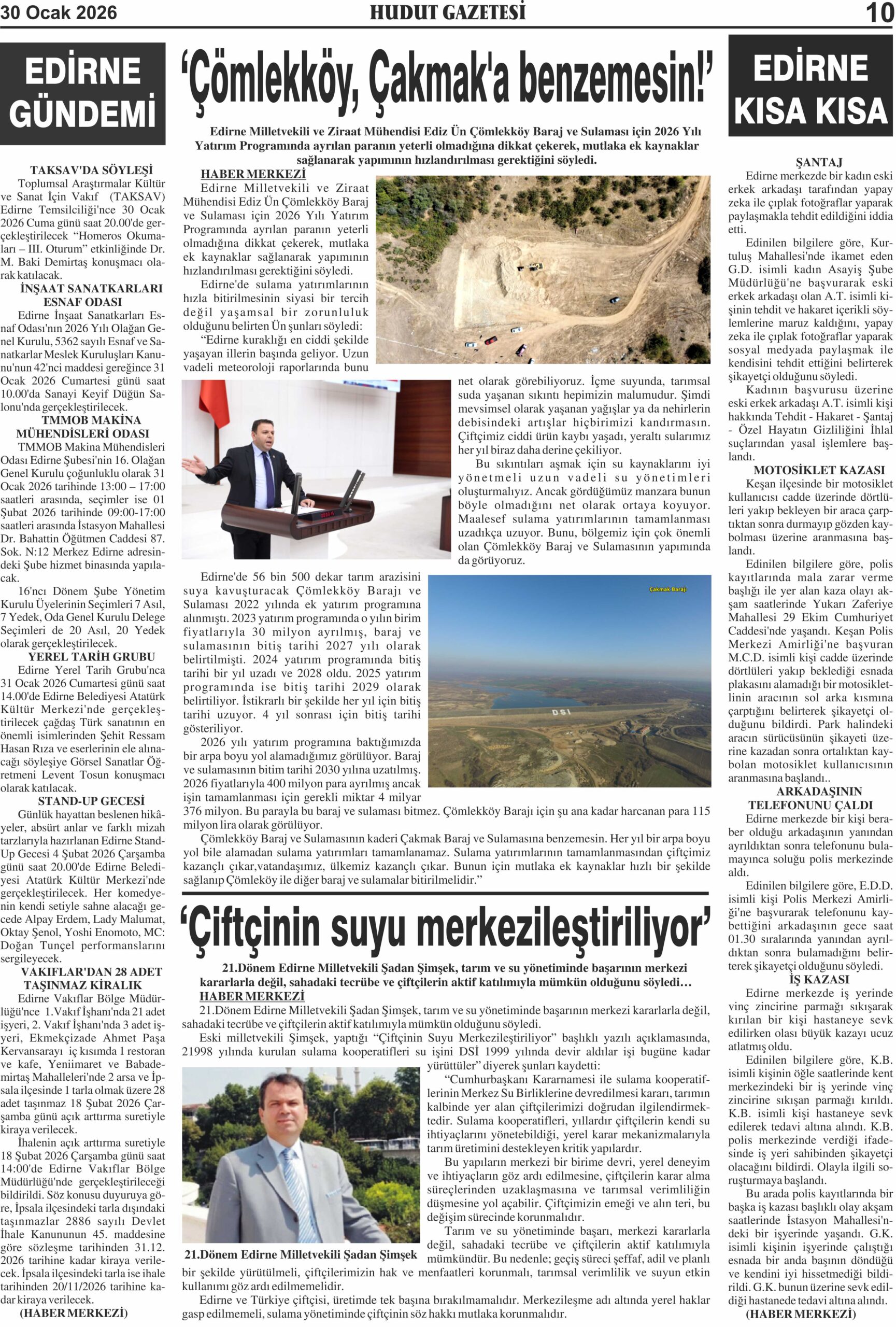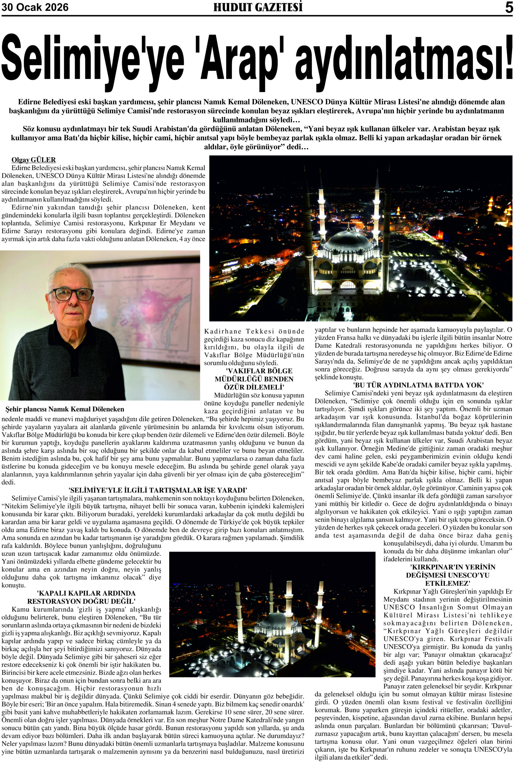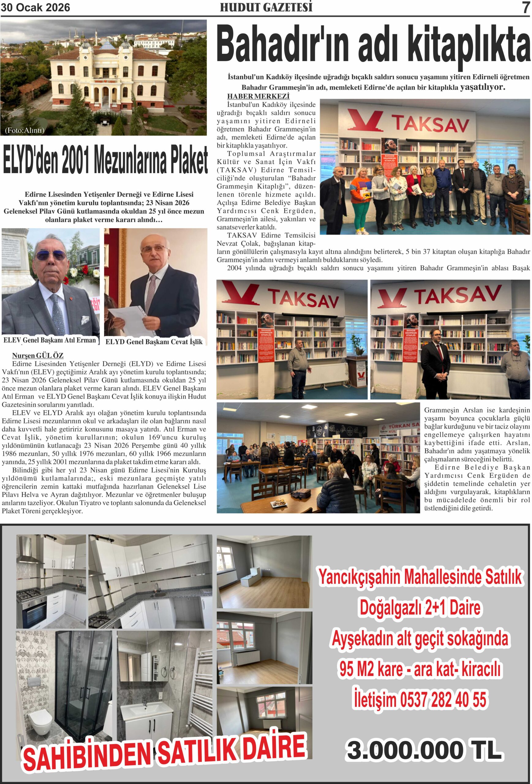 30 Ocak 2026 Cuma Hudut Gazetesi