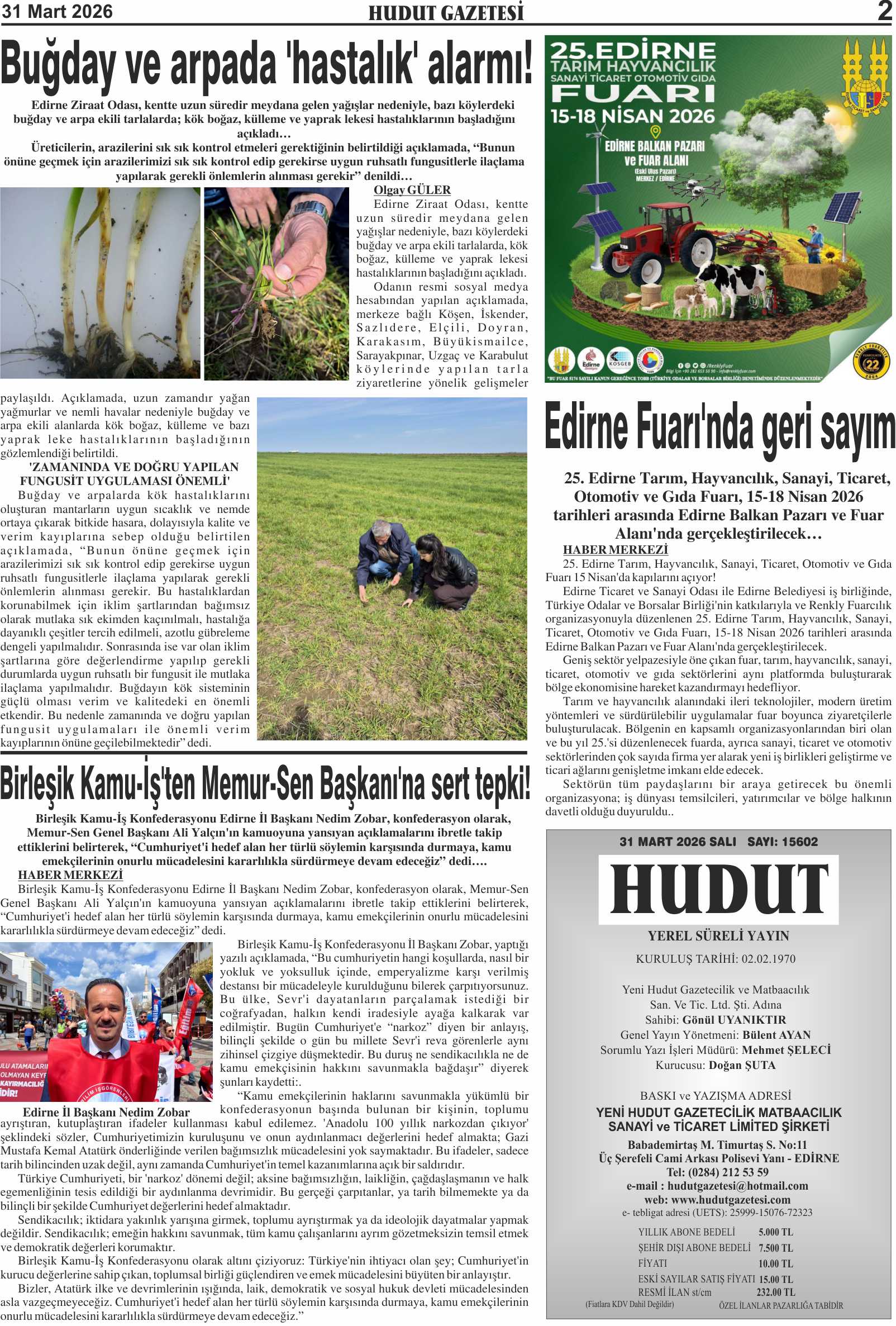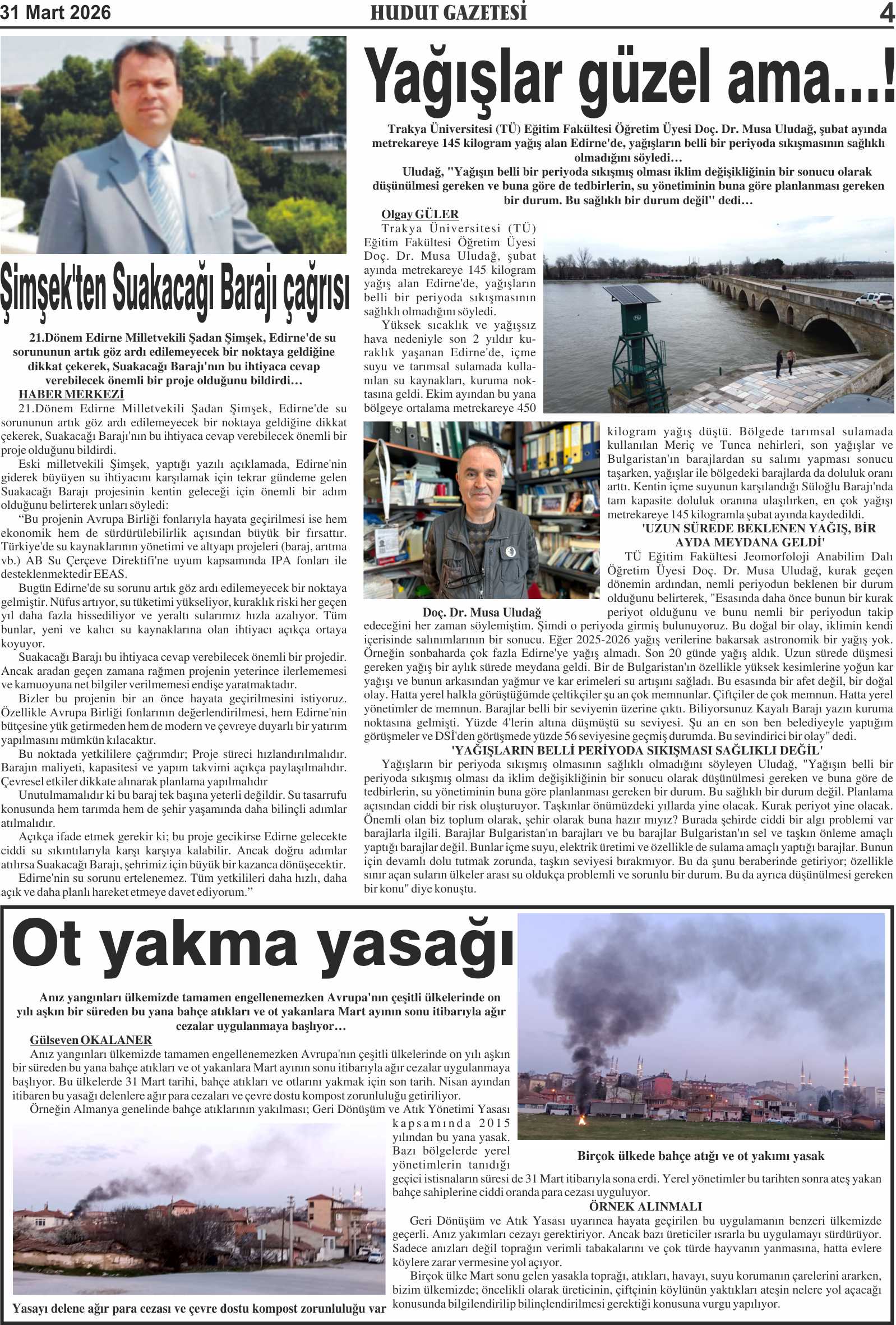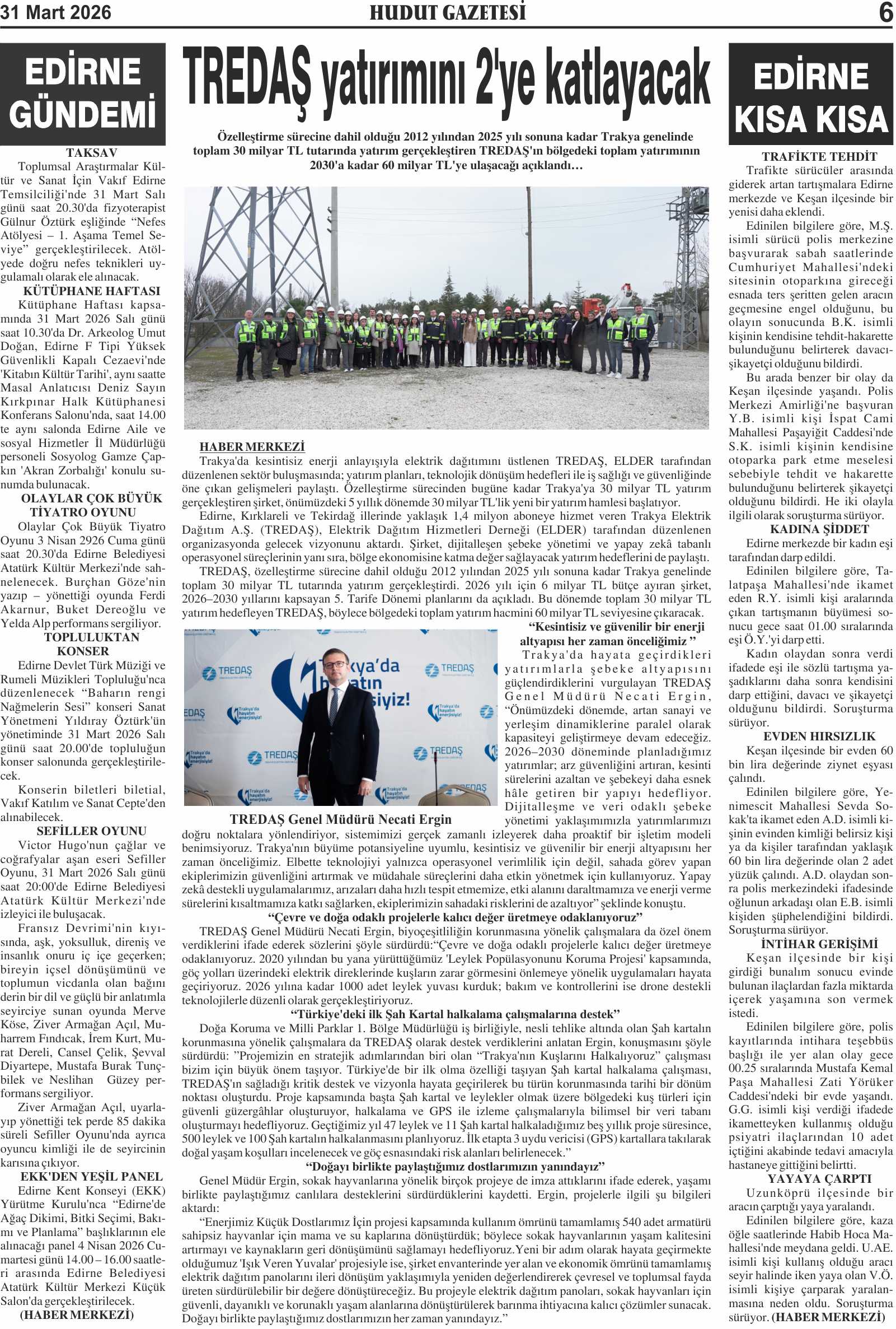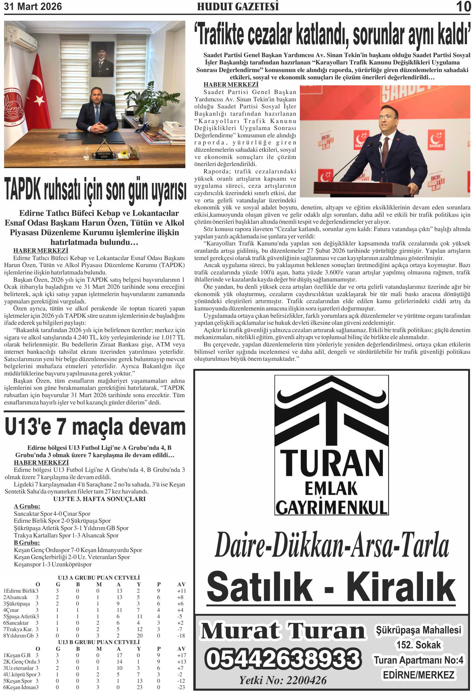 26 Mart 2026 Perşembe Hudut Gazetesi