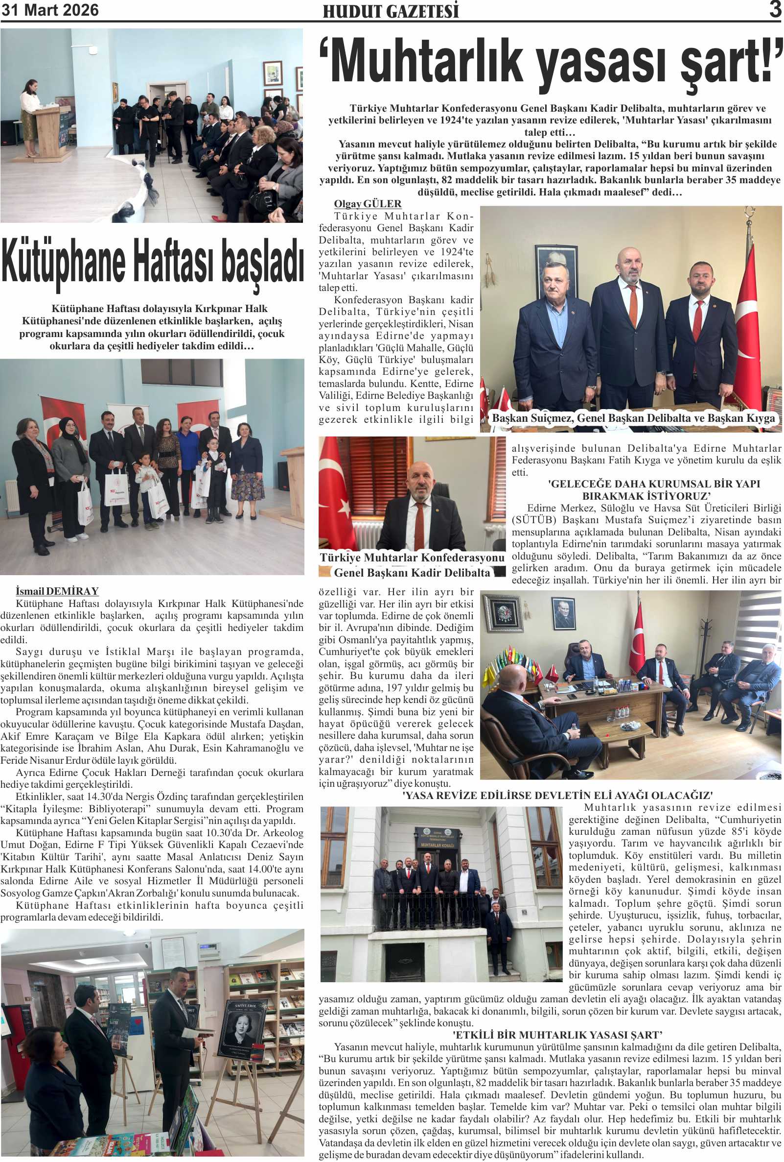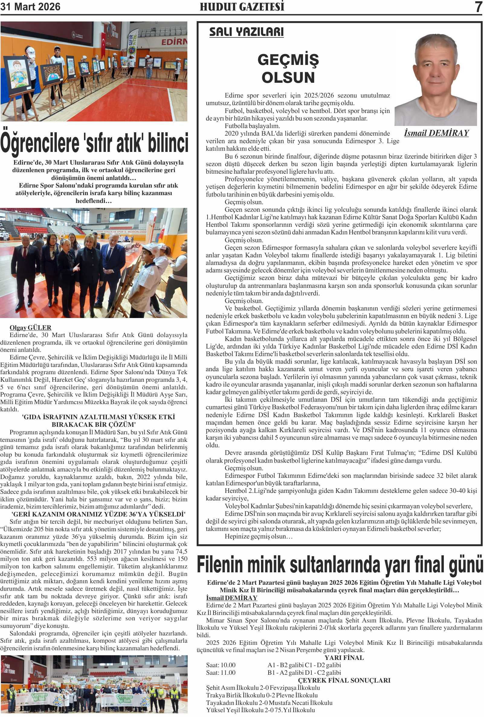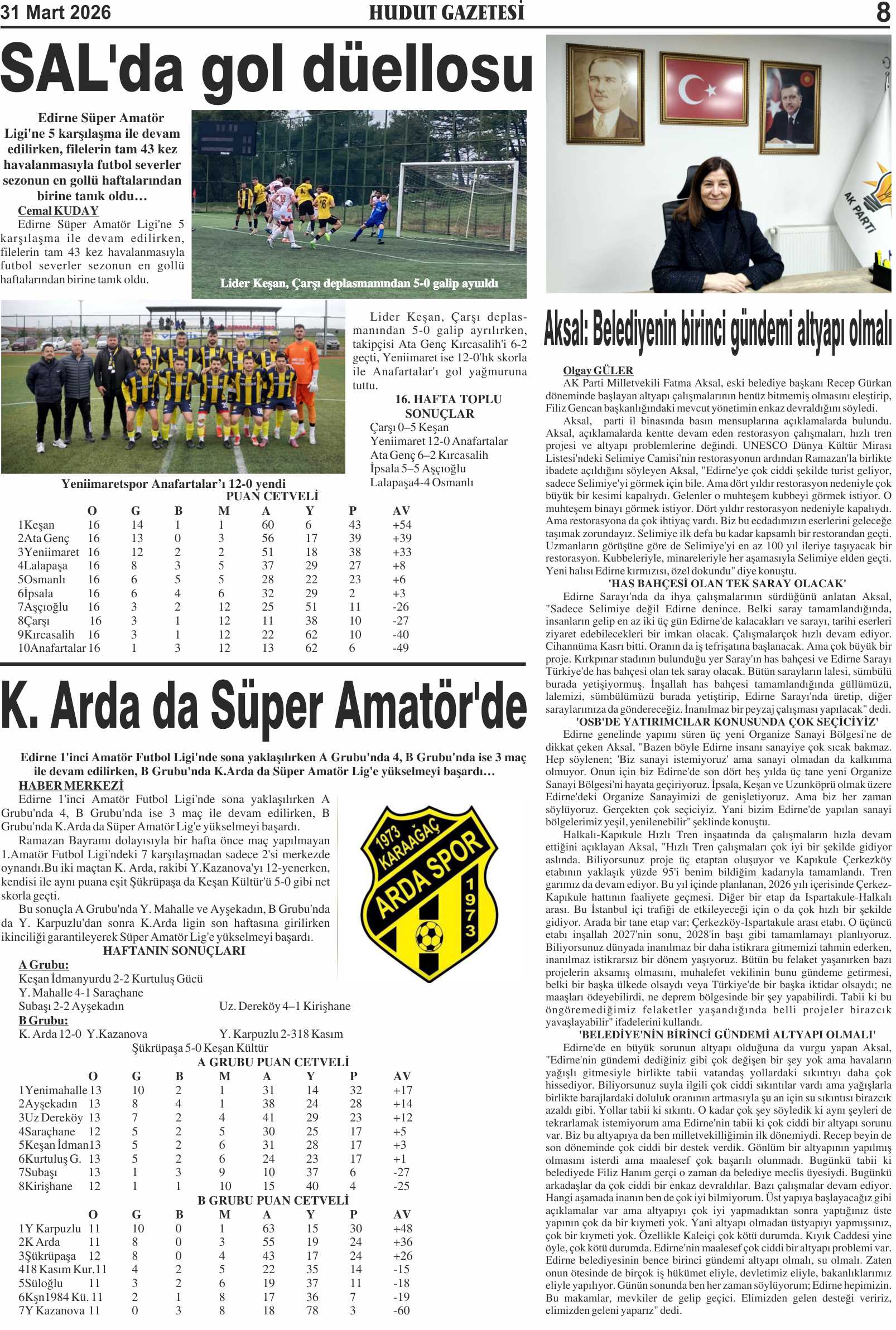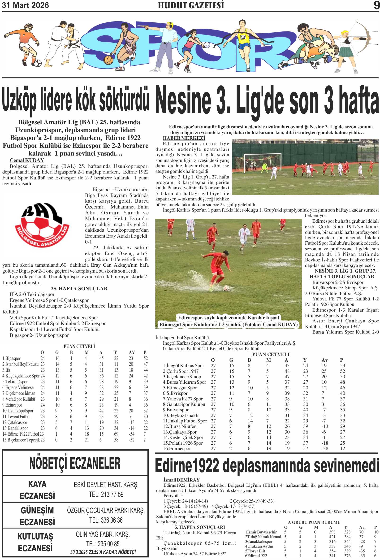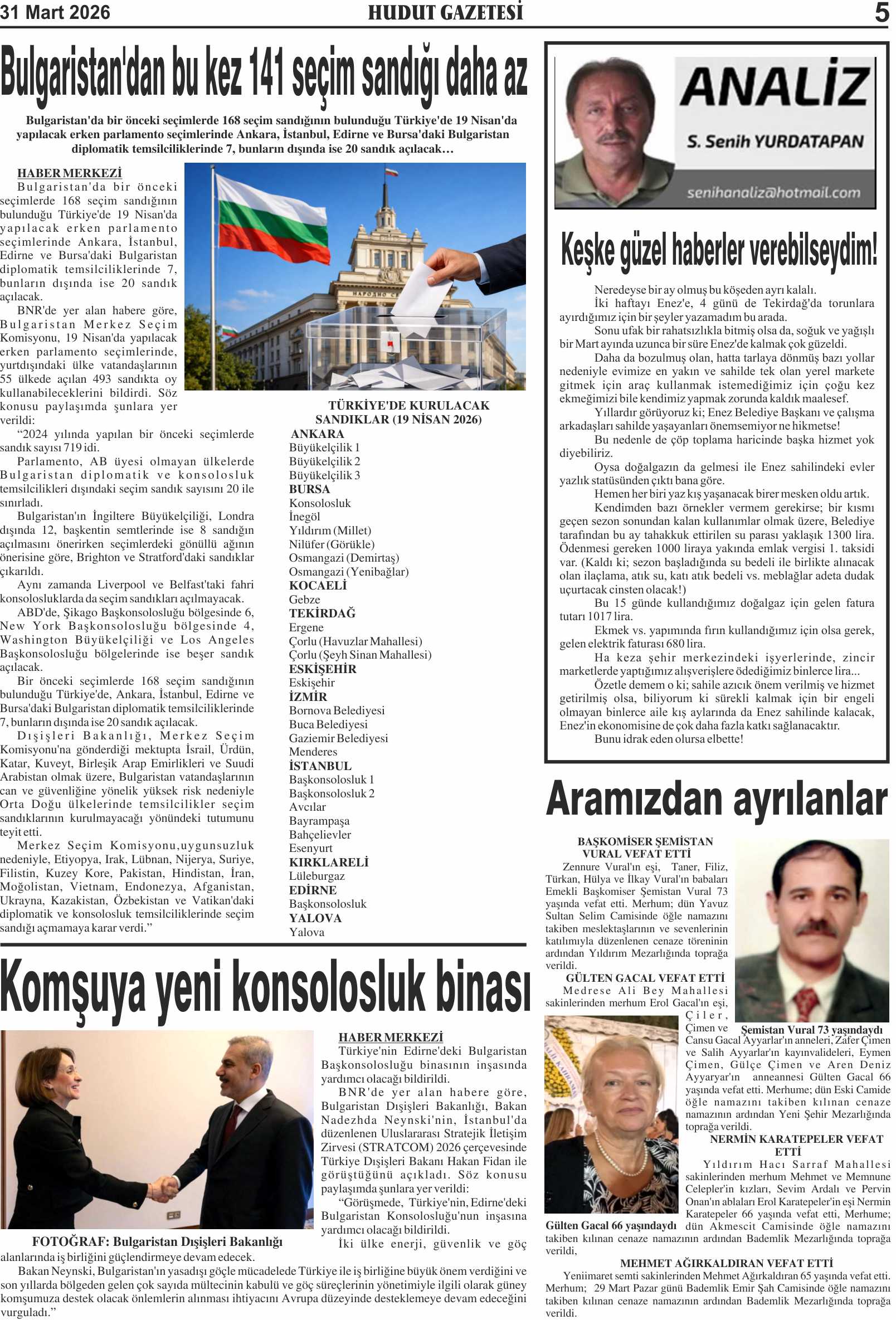 26 Mart 2026 Perşembe Hudut Gazetesi