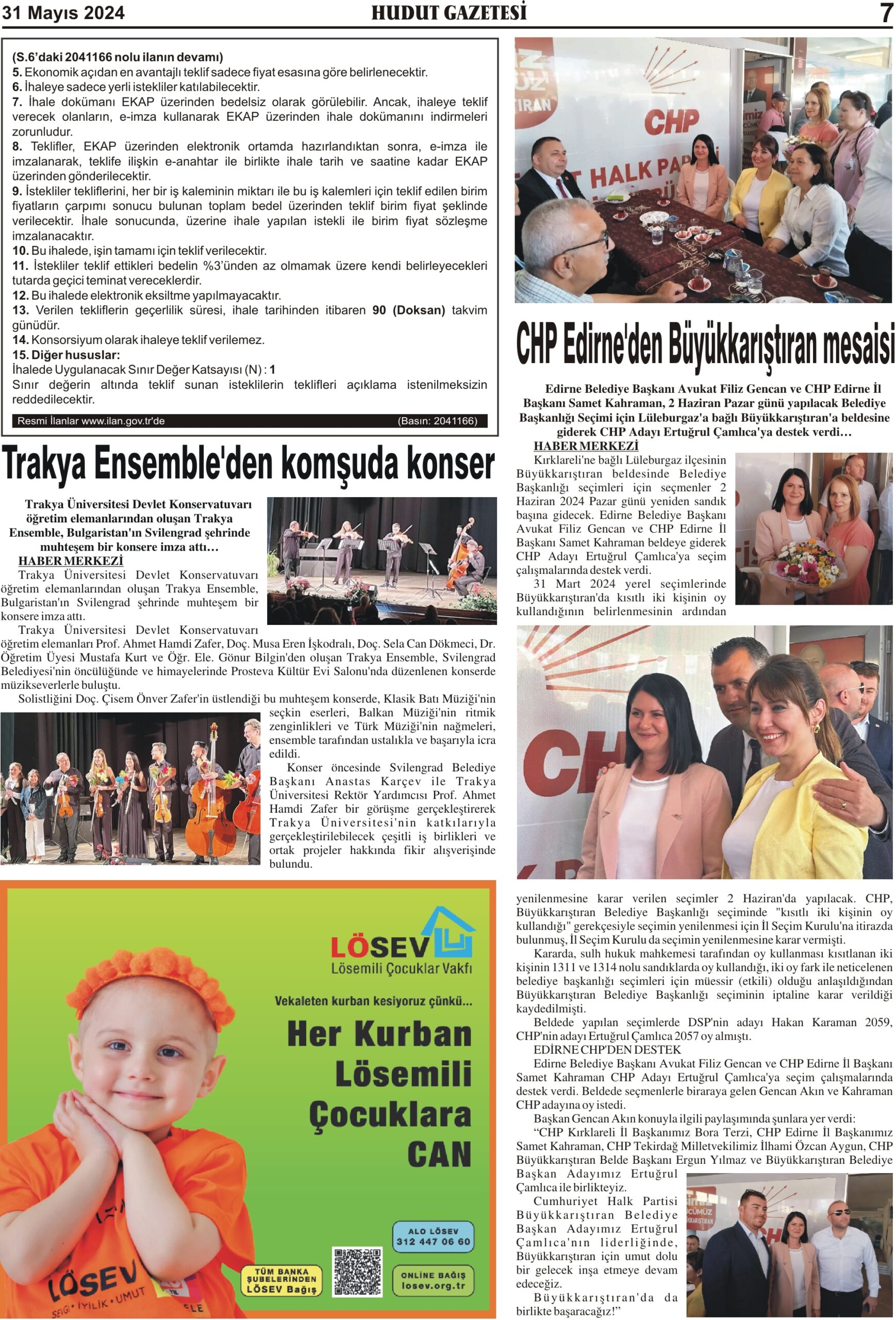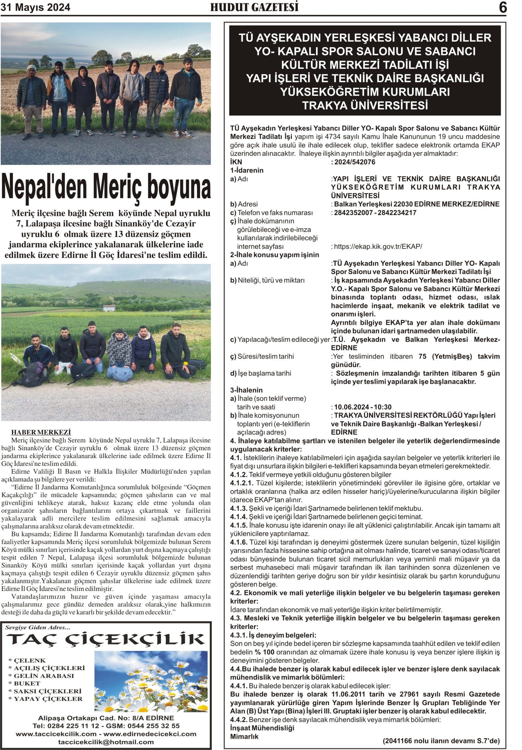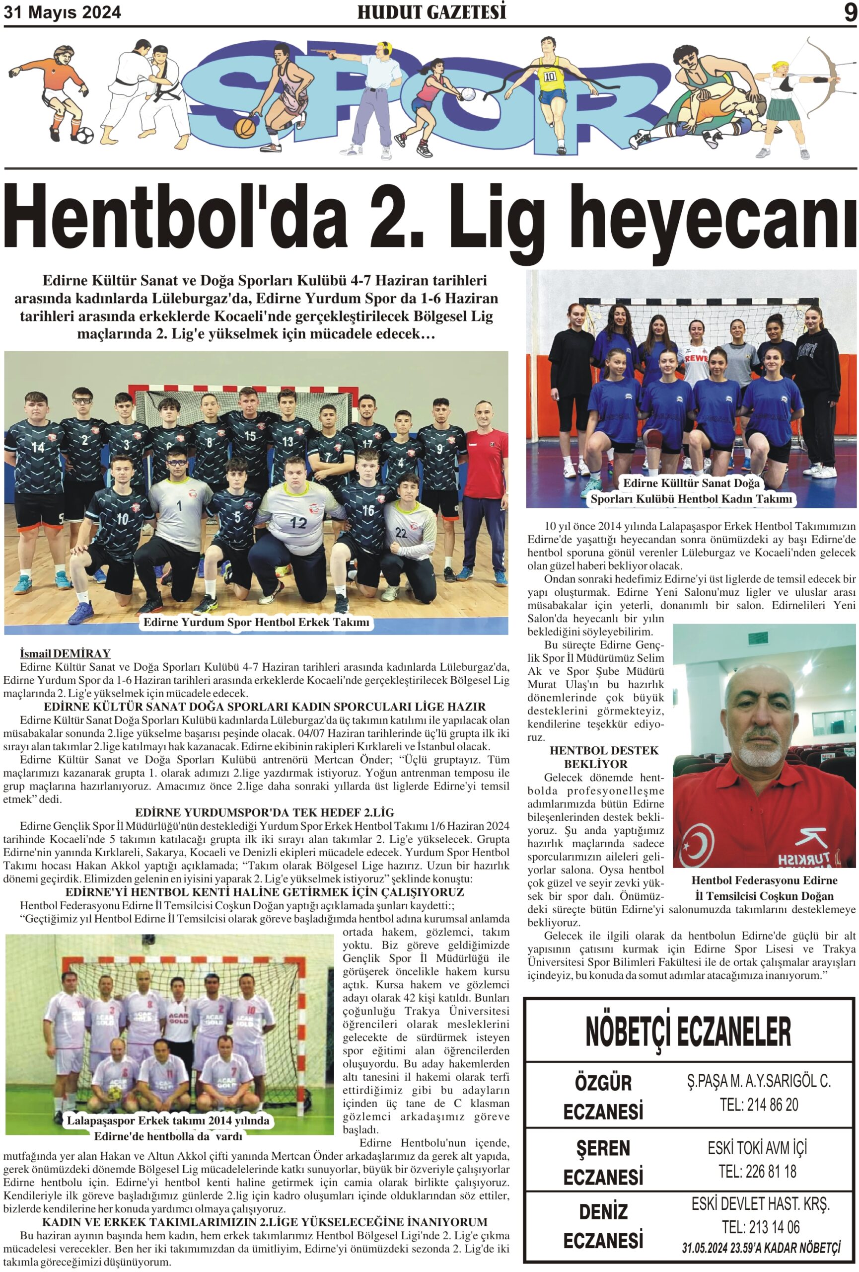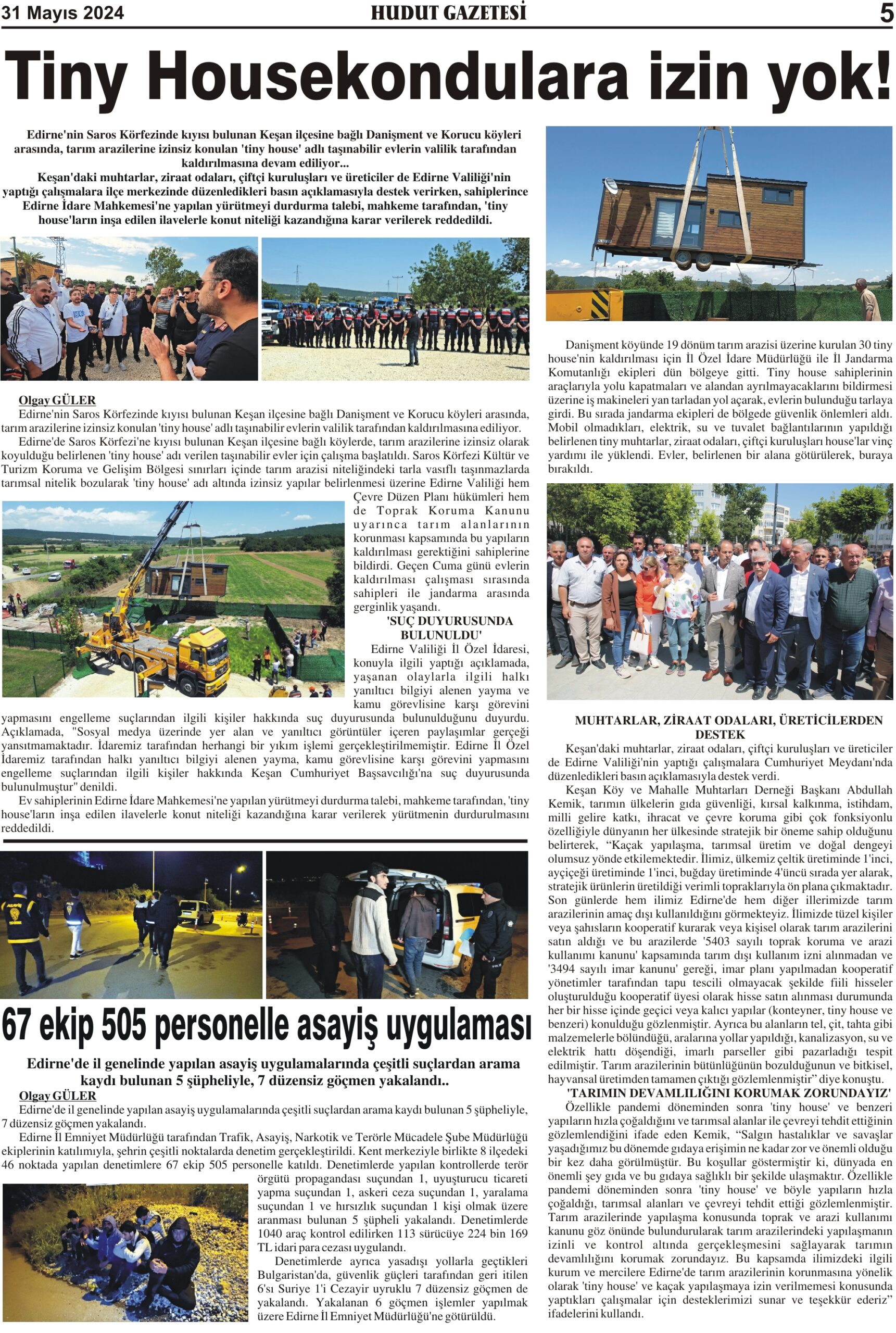 31 Mayıs 2024 Cuma Hudut Gazetesi