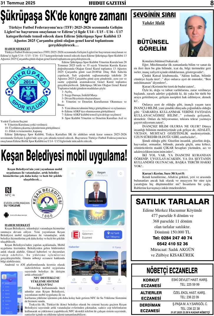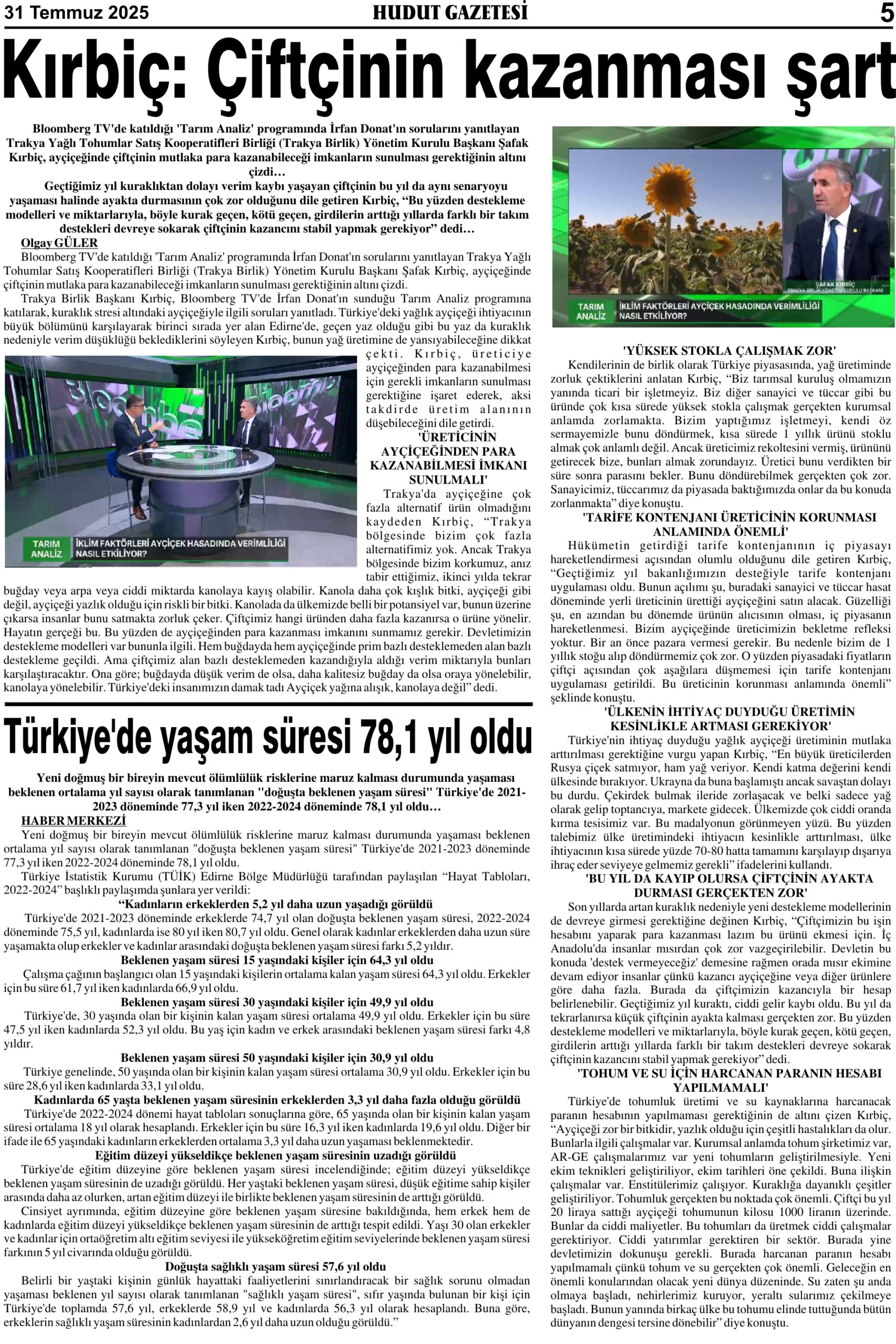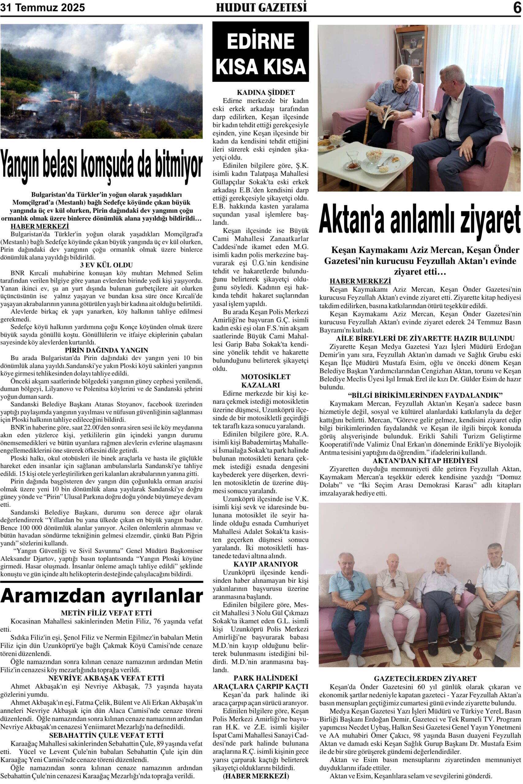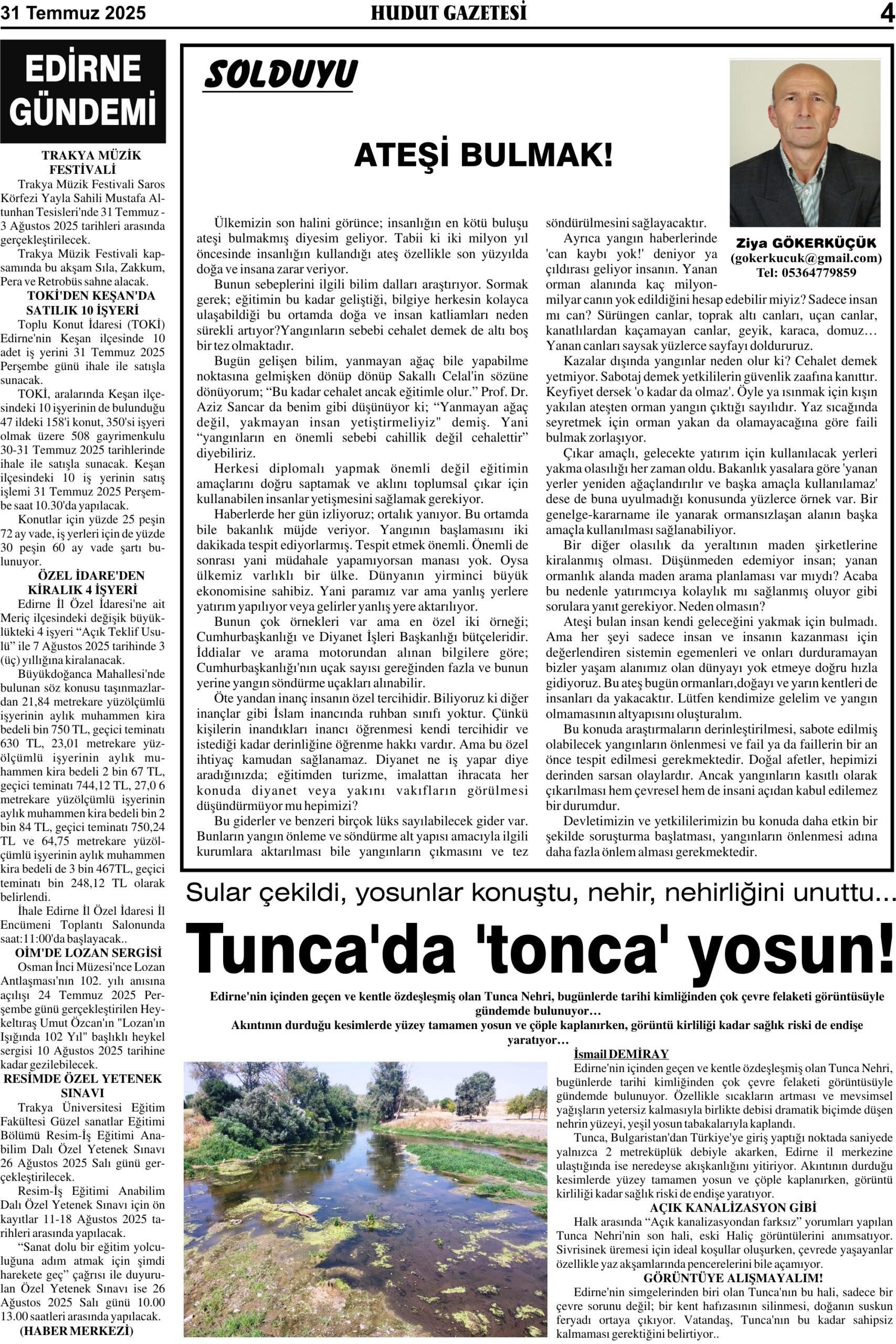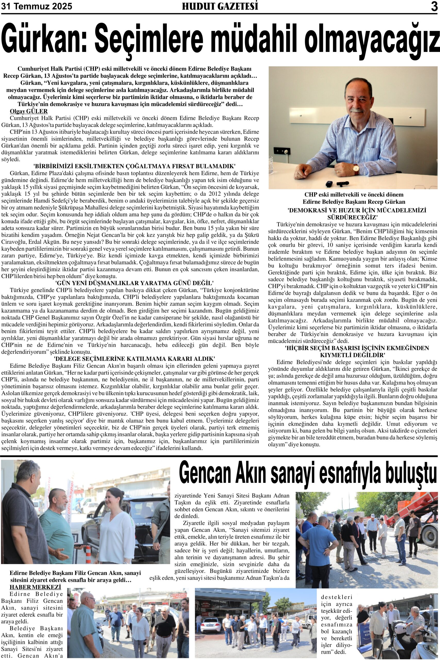 31 Temmuz 2025 Perşembe Hudut Gazetesi