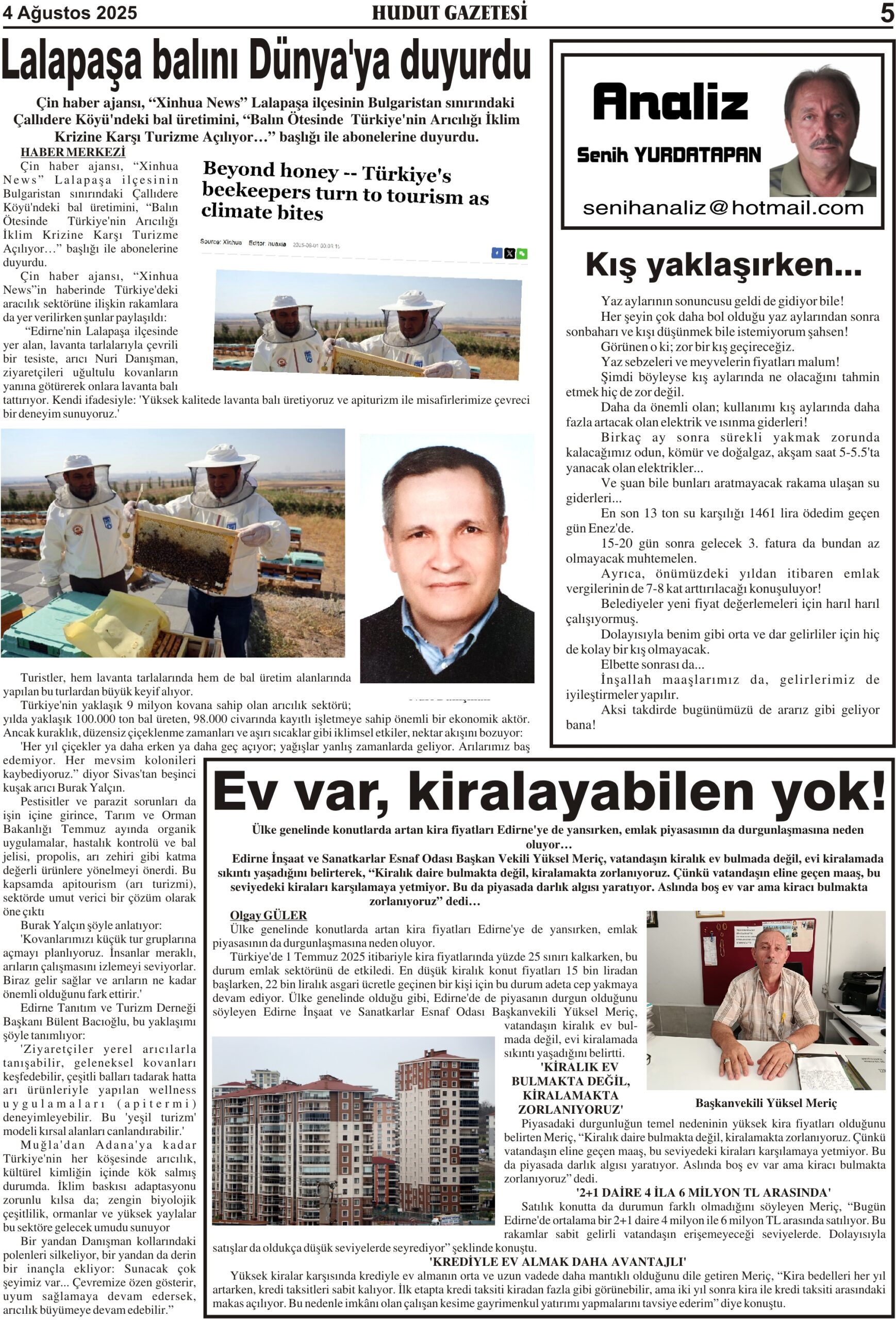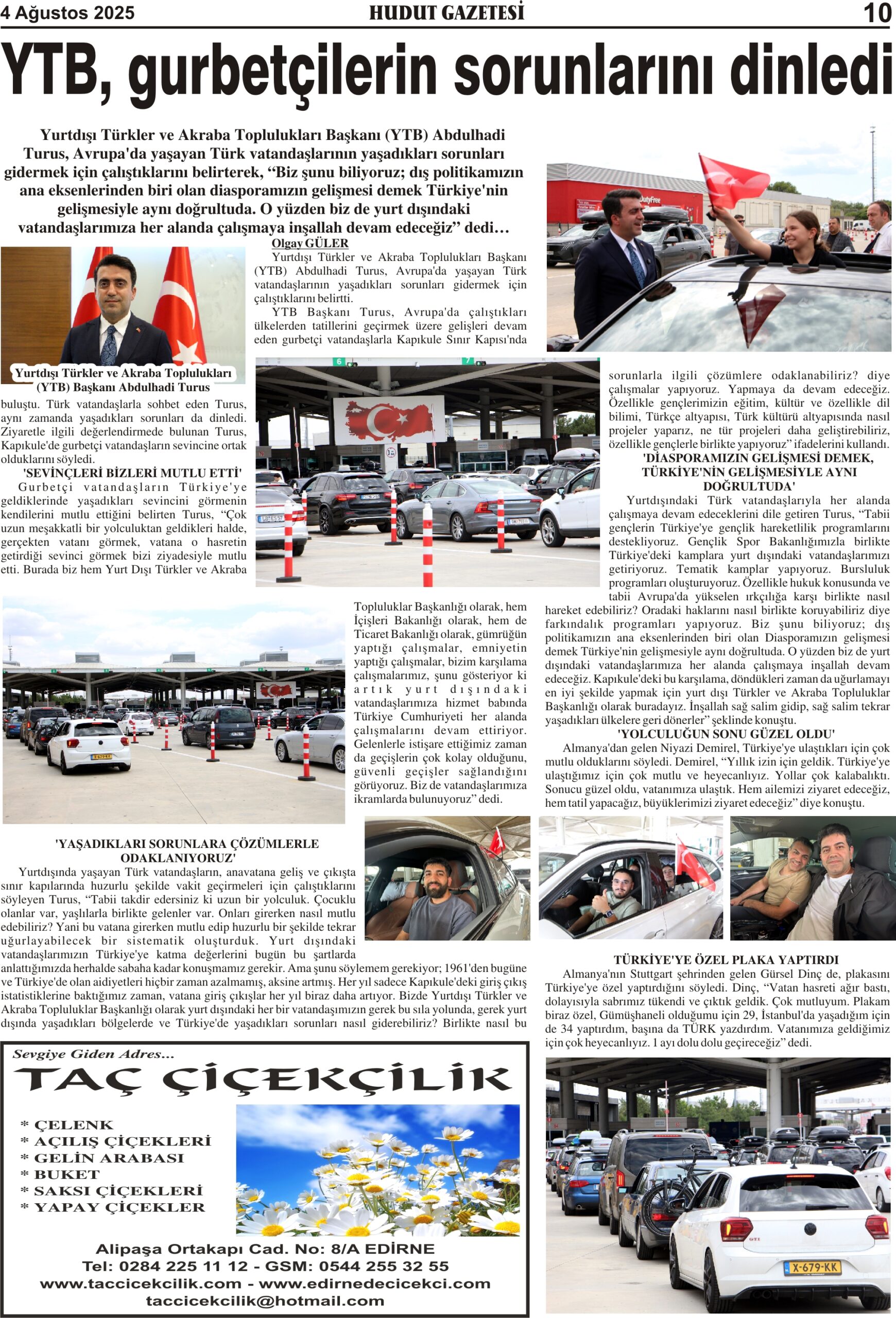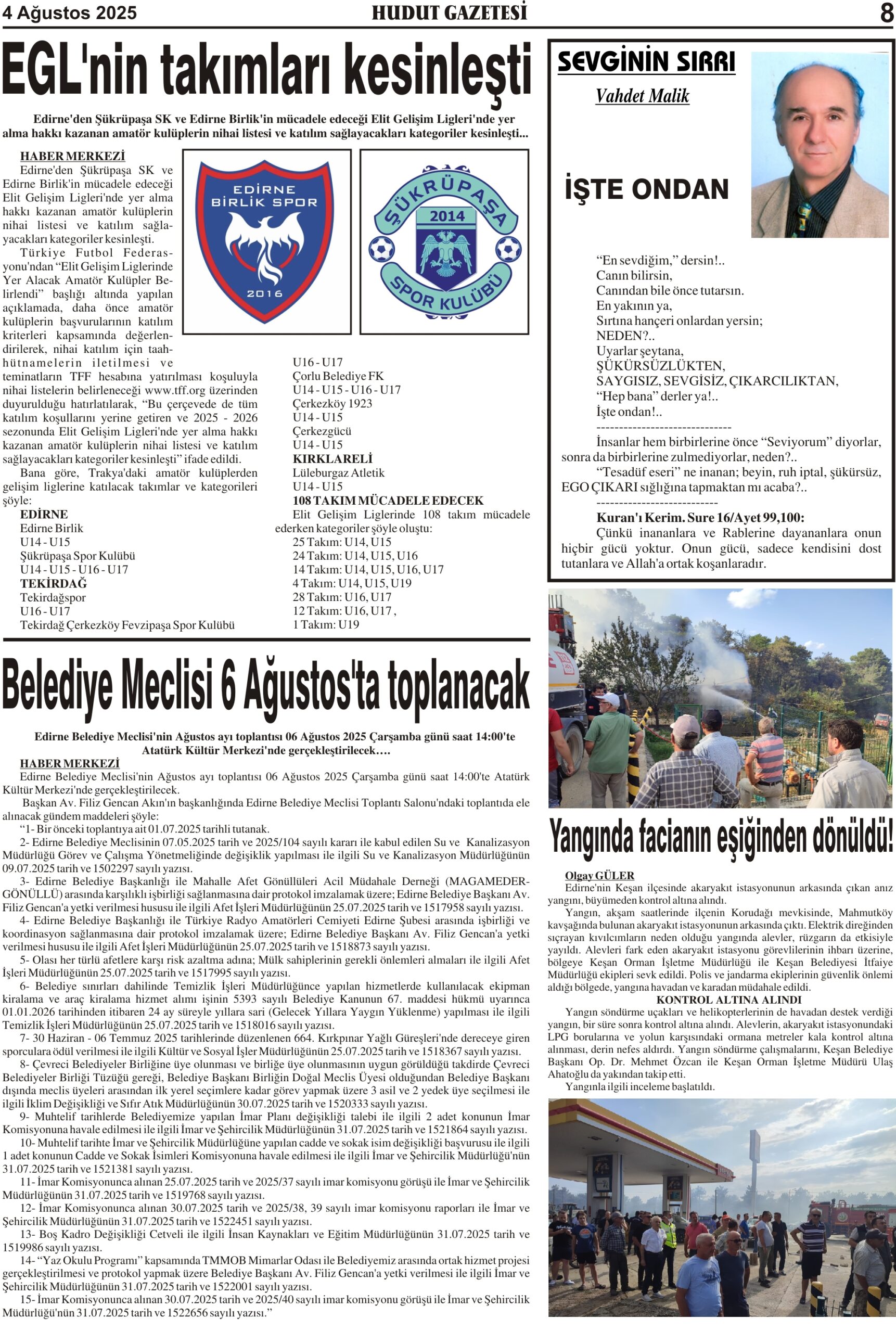 4 Ağustos 2025 Pazartesi Hudut Gazetesi