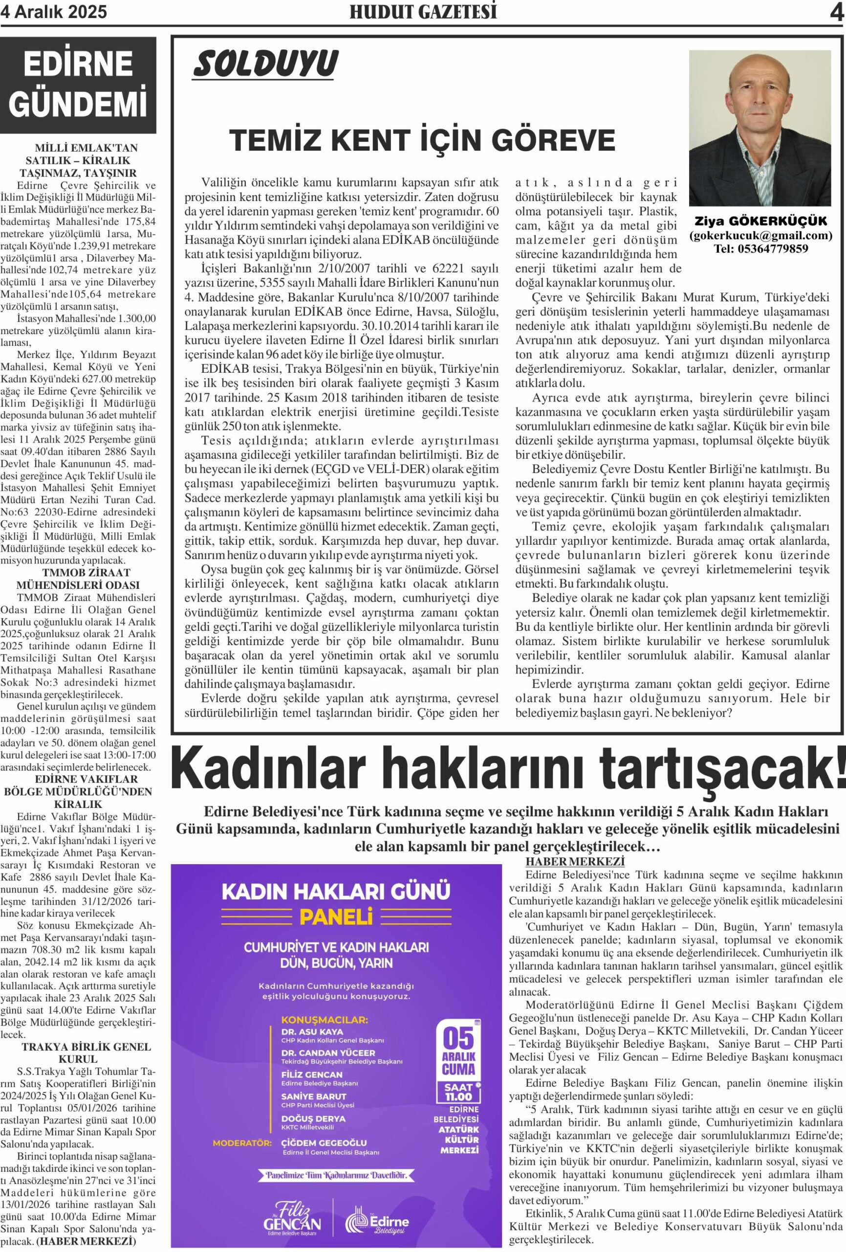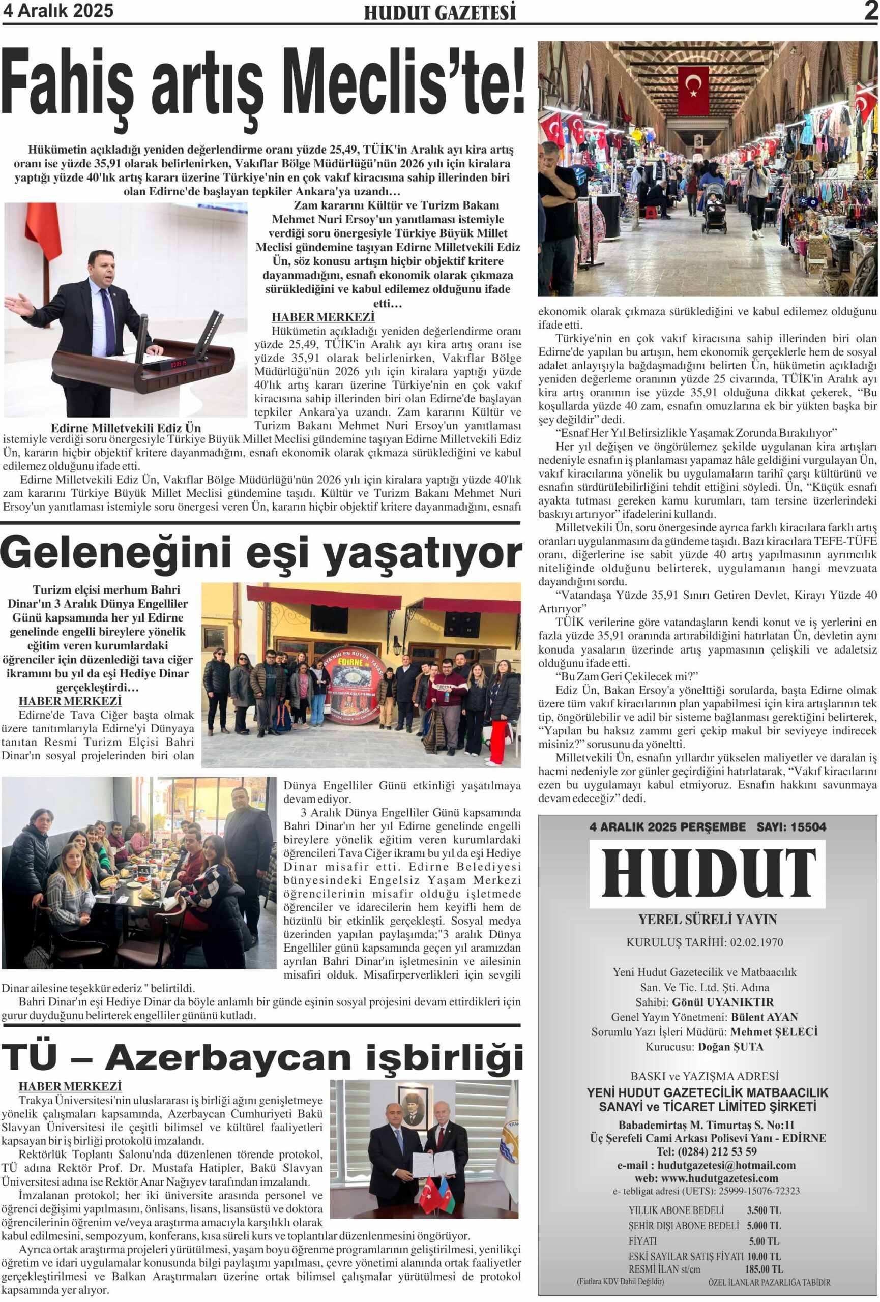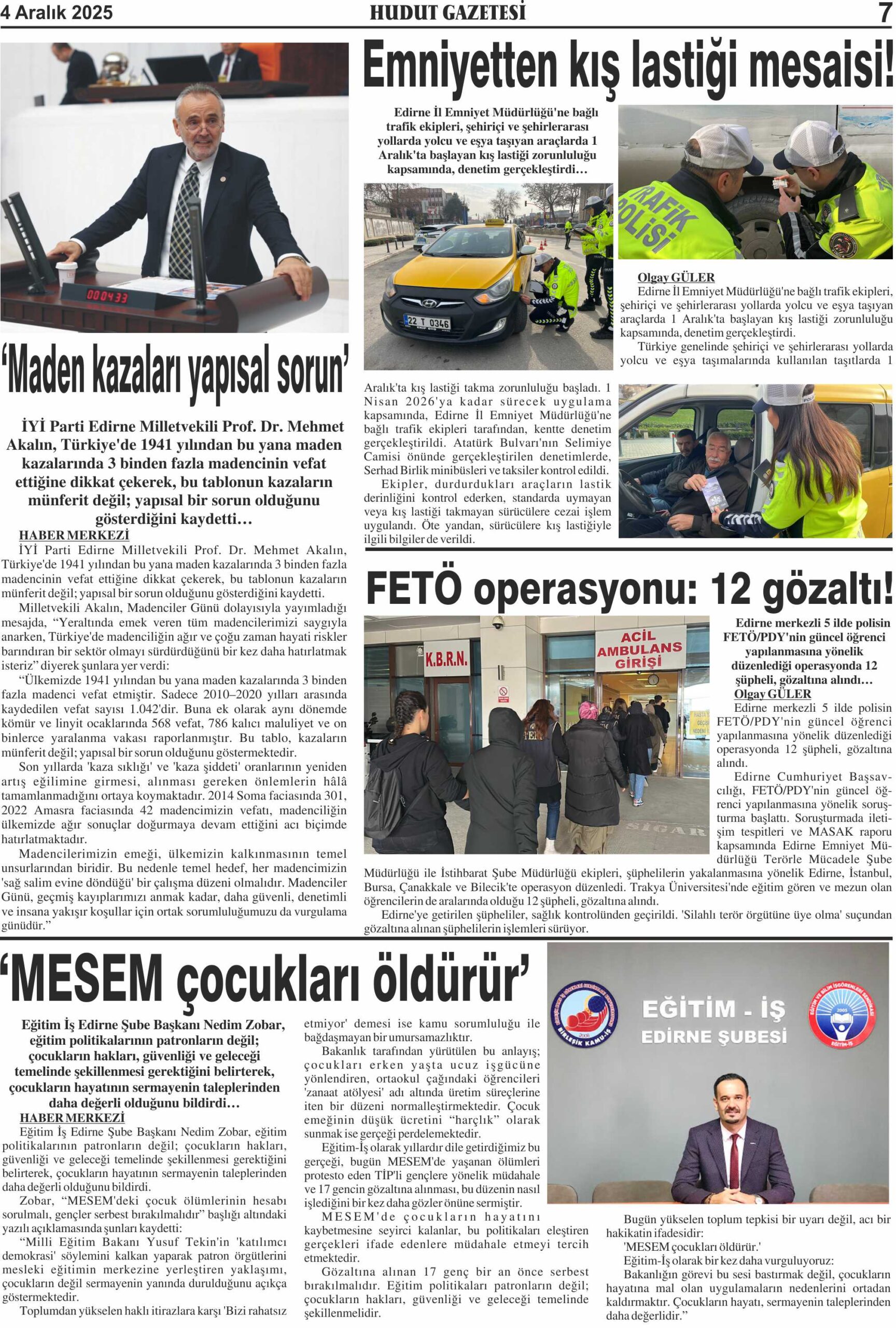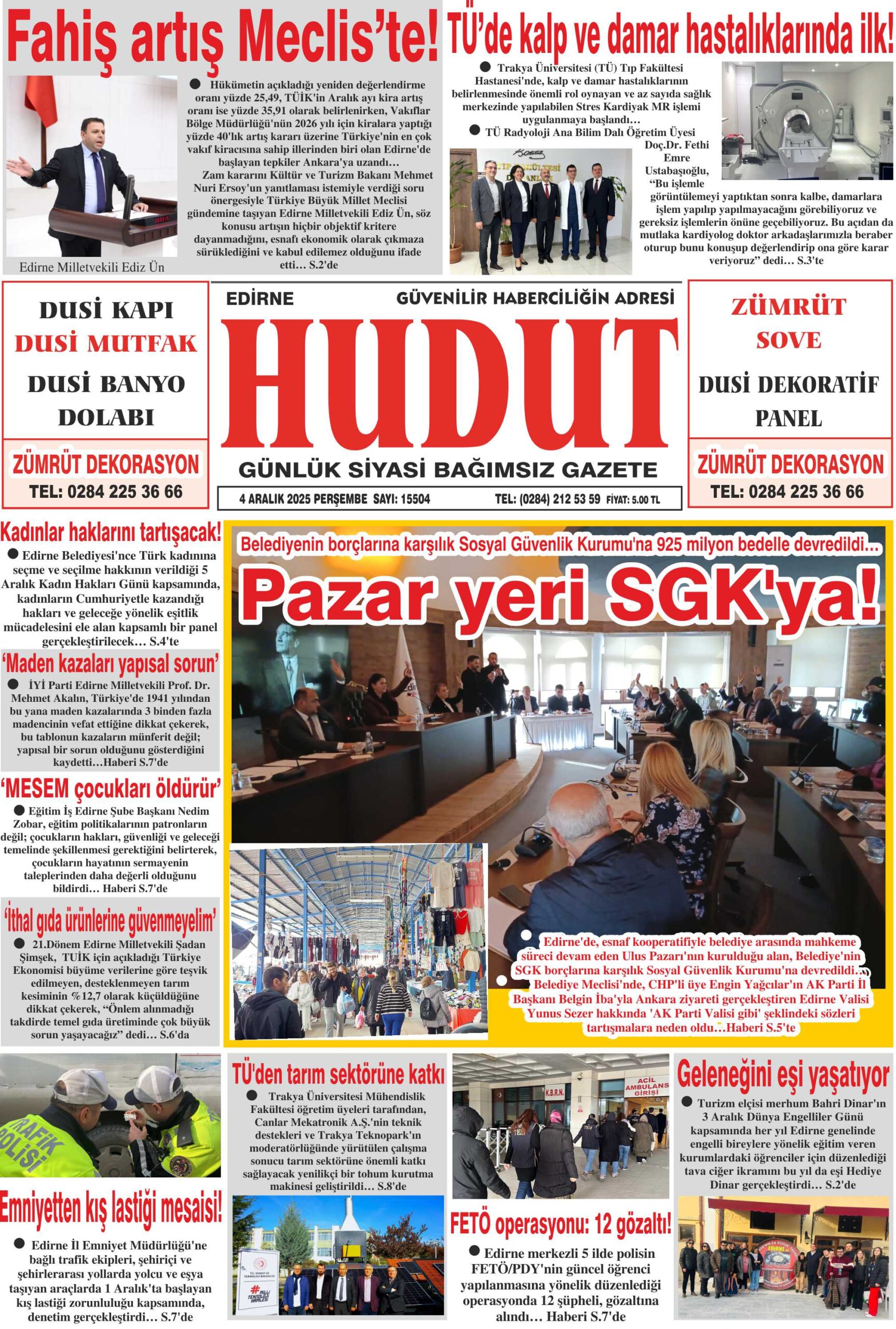 4 Aralık 2025 Perşembe Hudut Gazetesi
