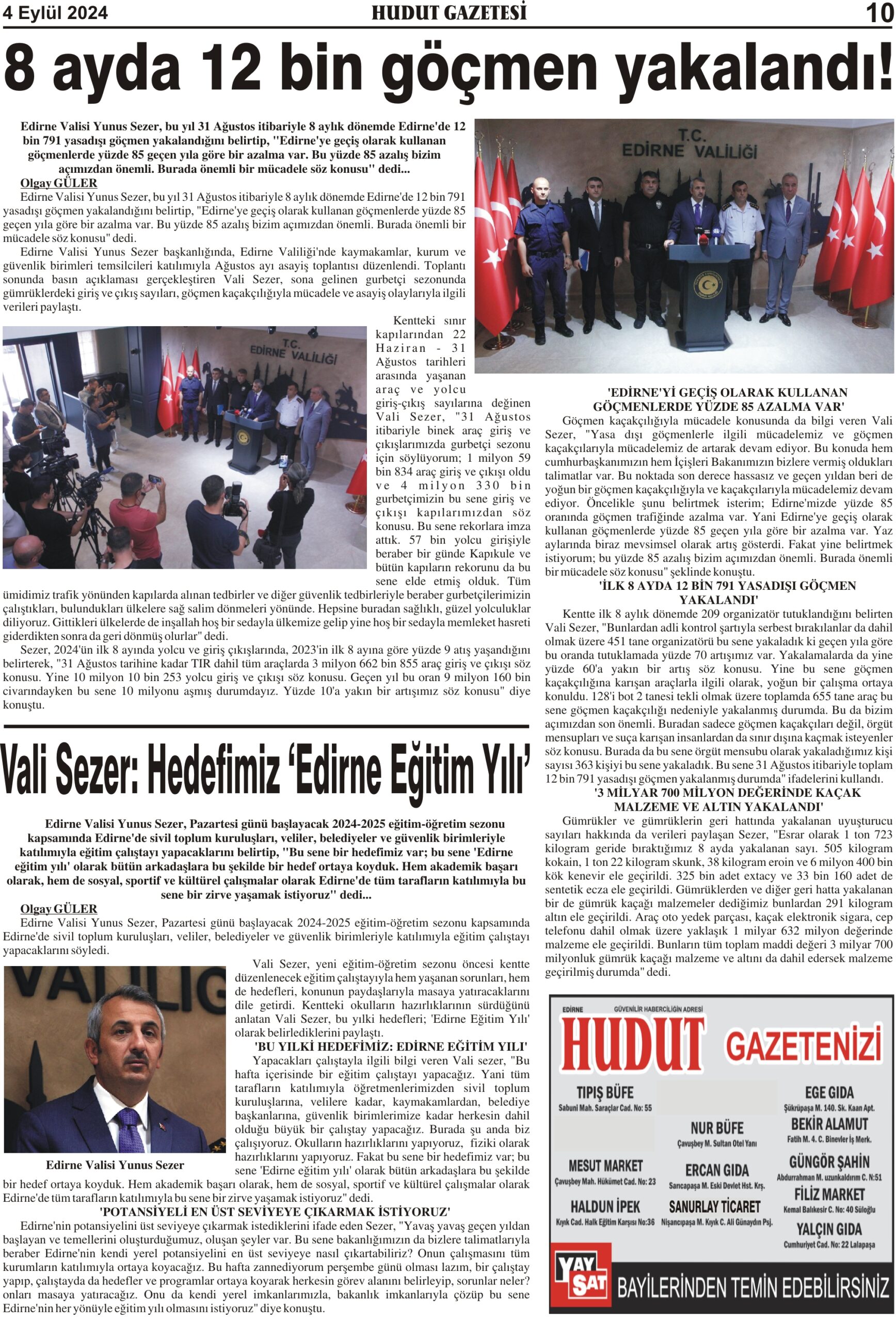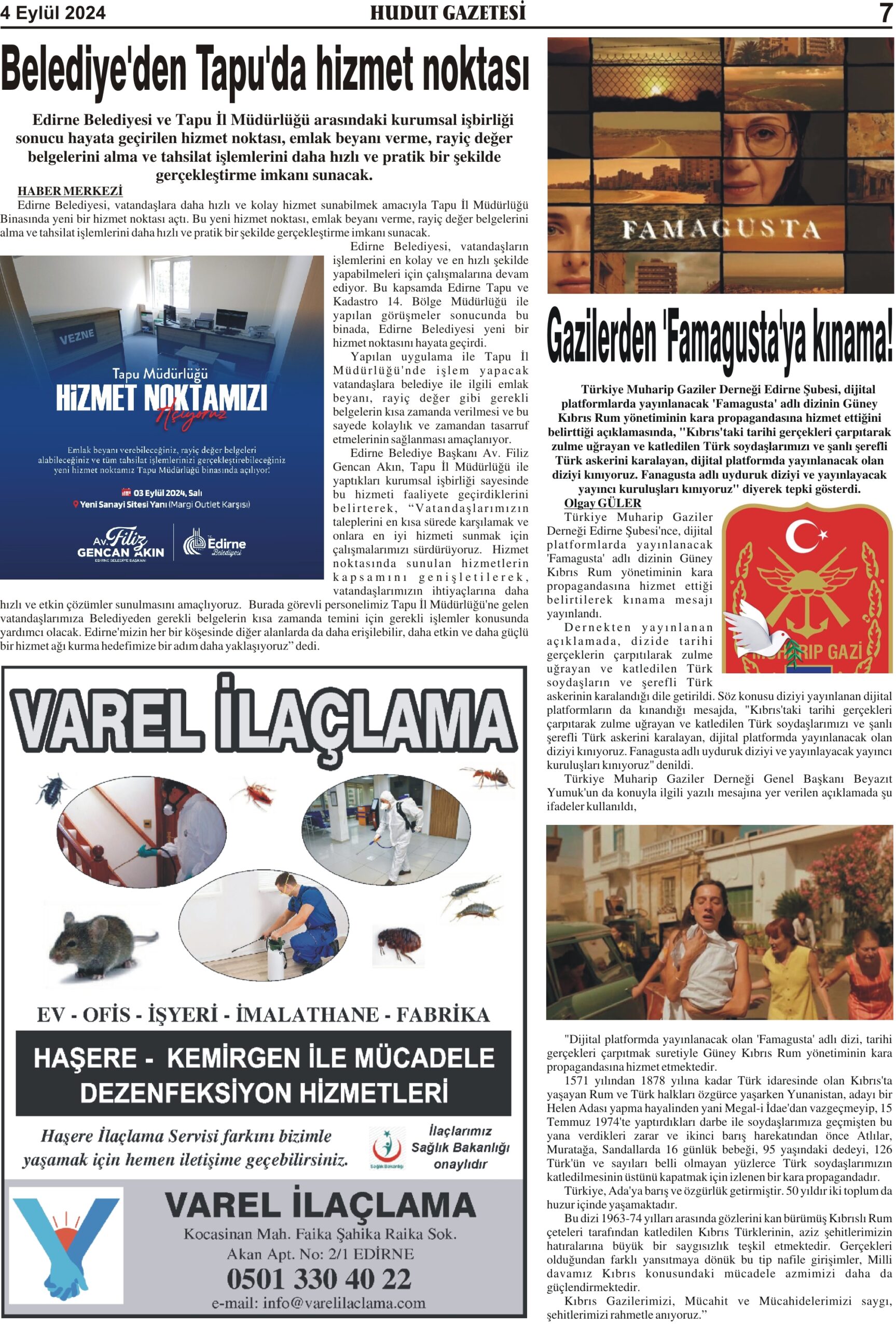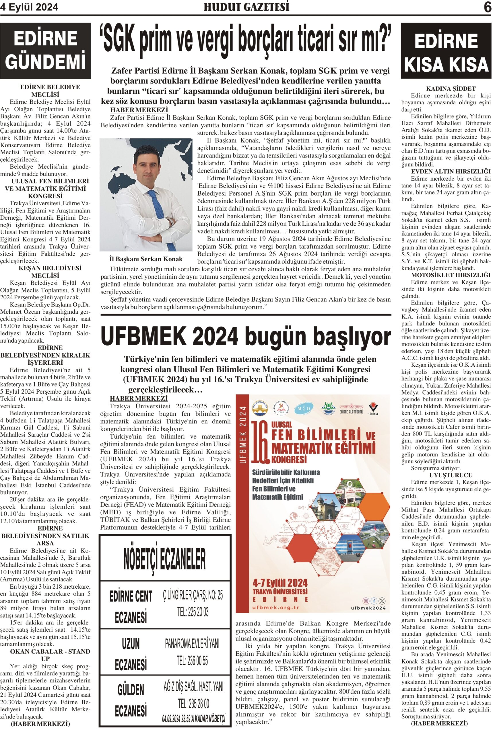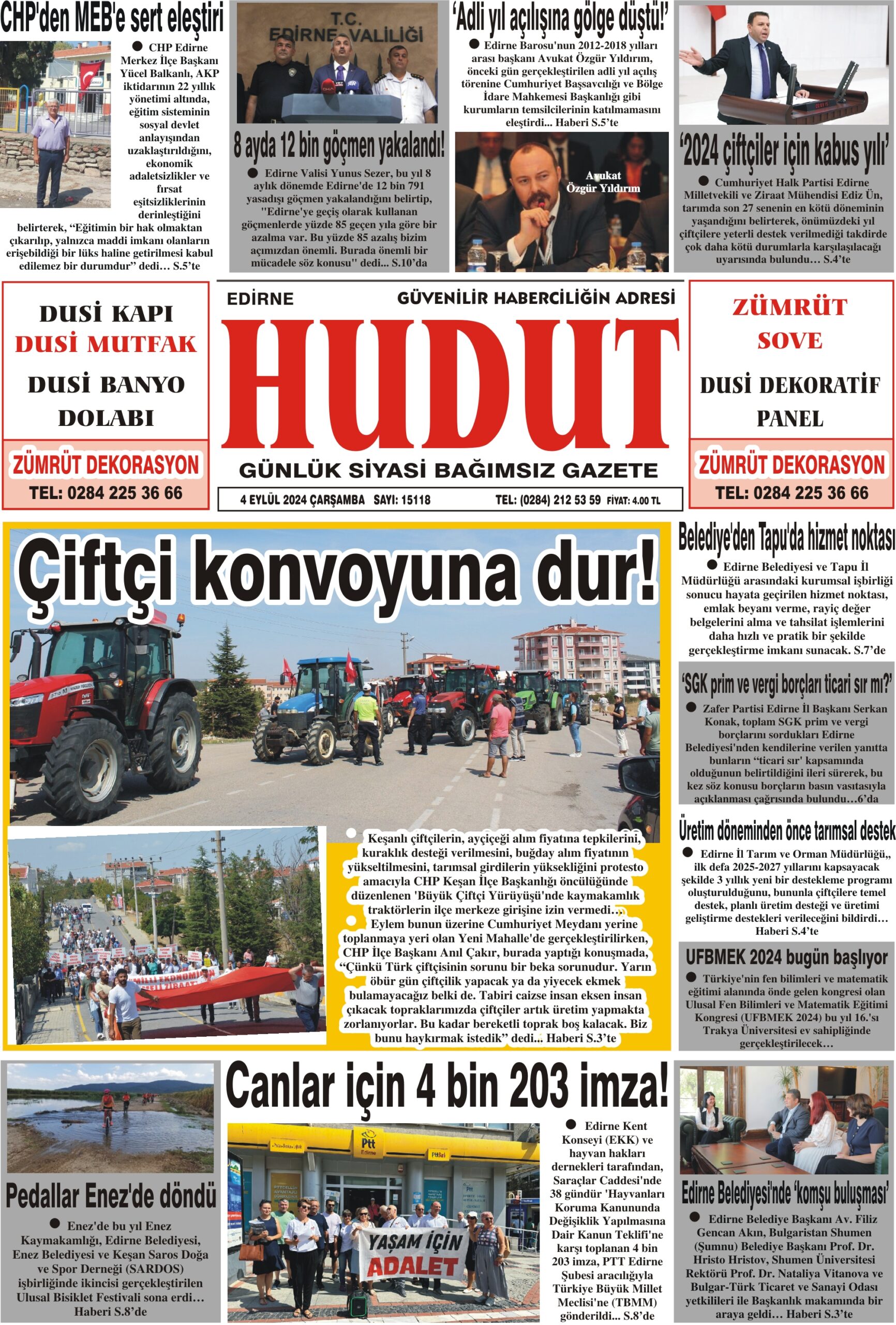 4 Eylül 2024 Çarşamba Hudut Gazetesi