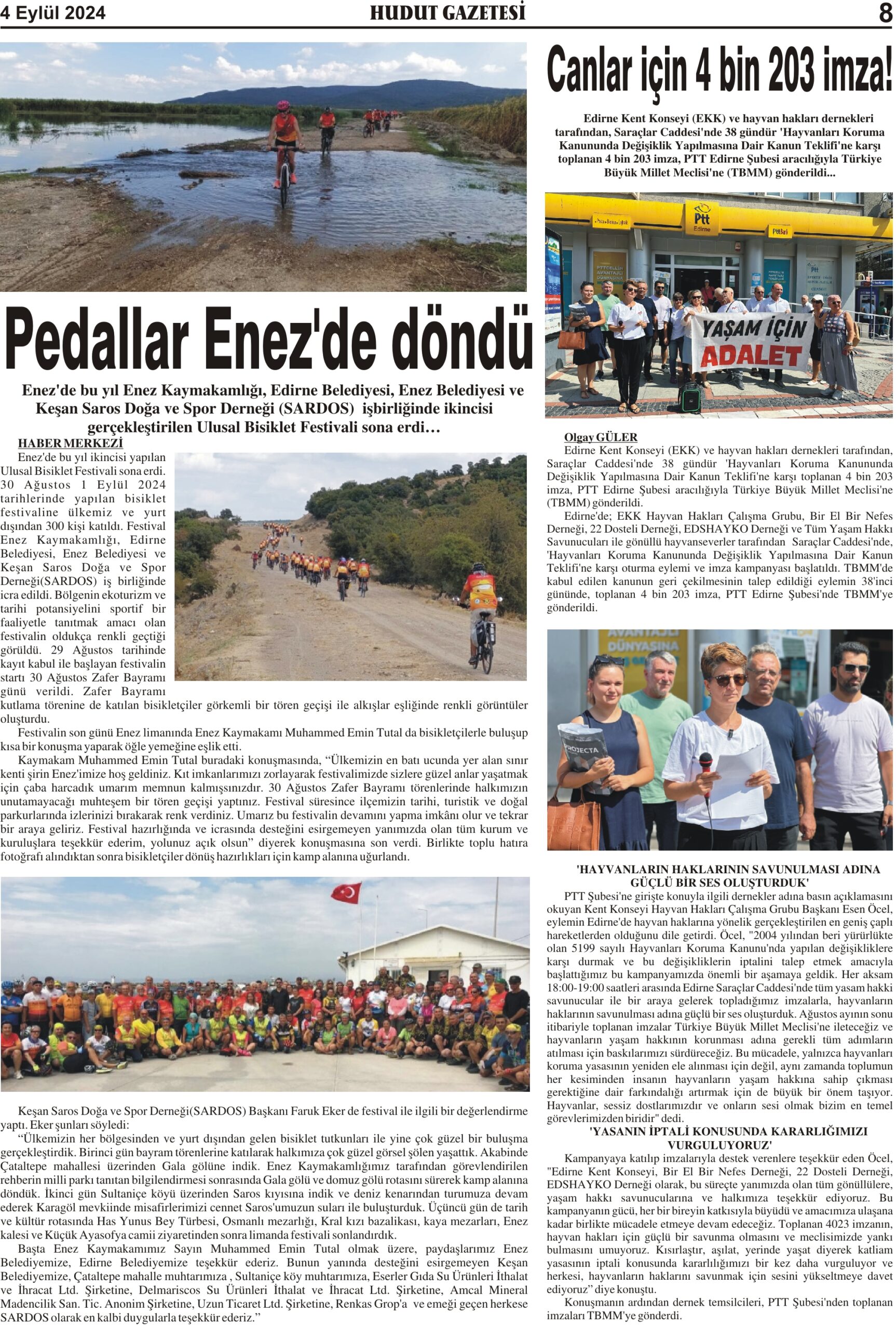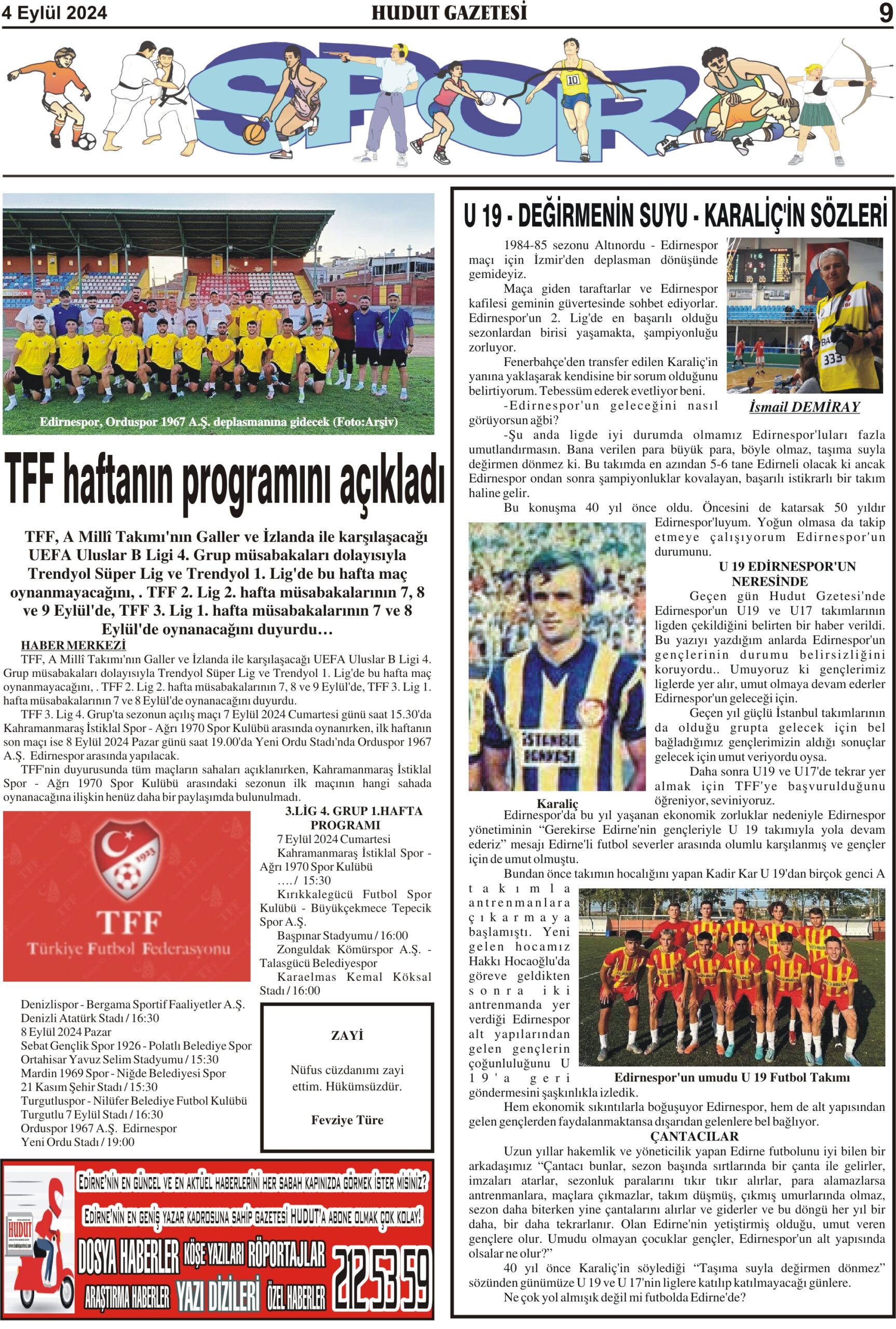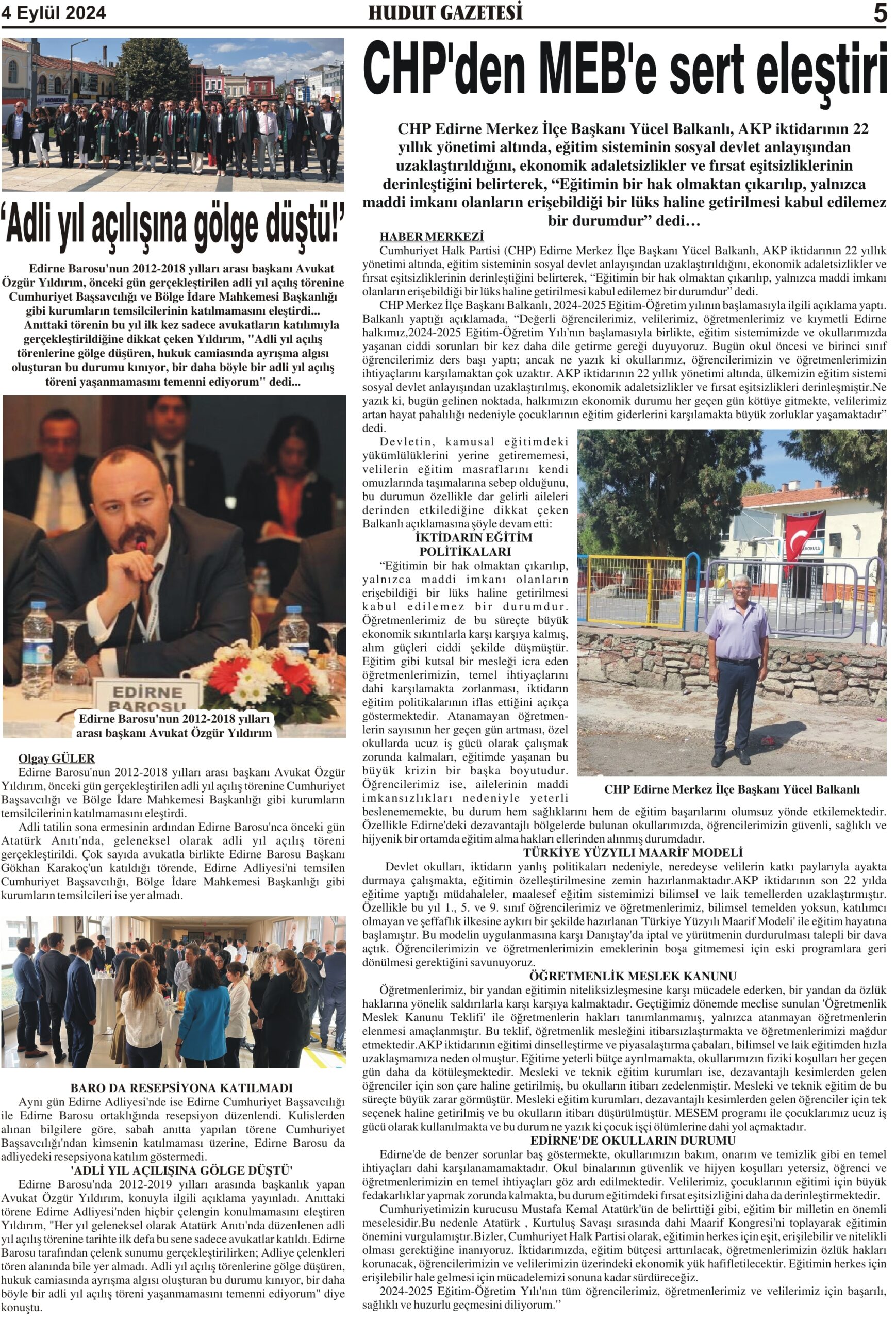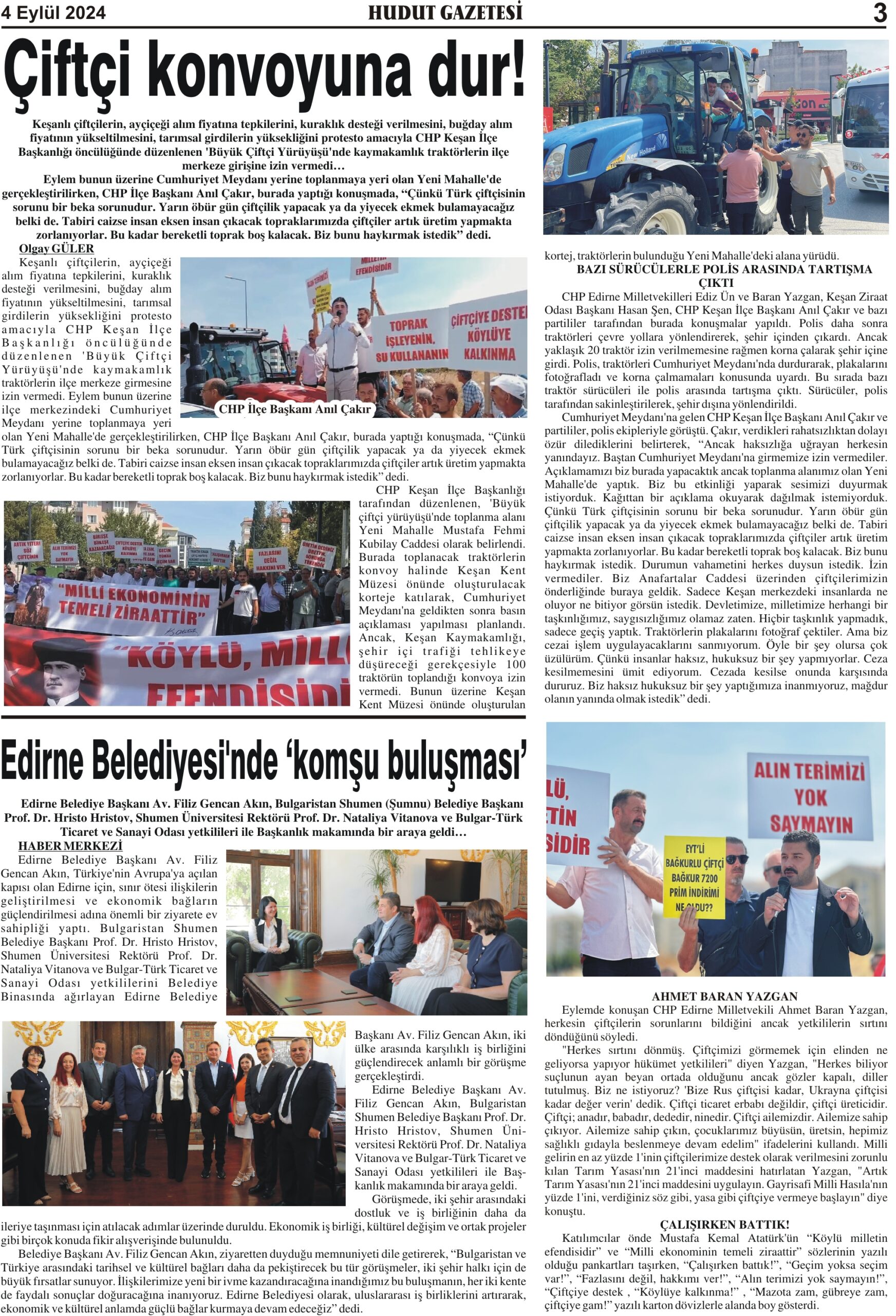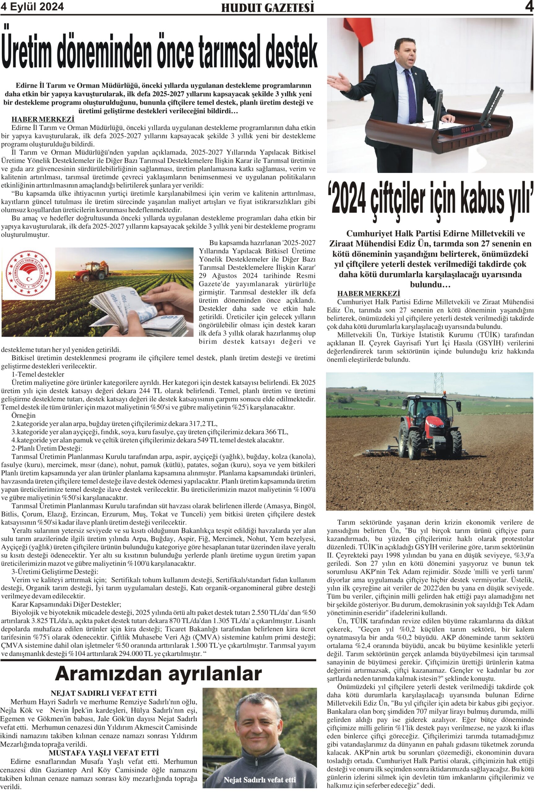 4 Eylül 2024 Çarşamba Hudut Gazetesi