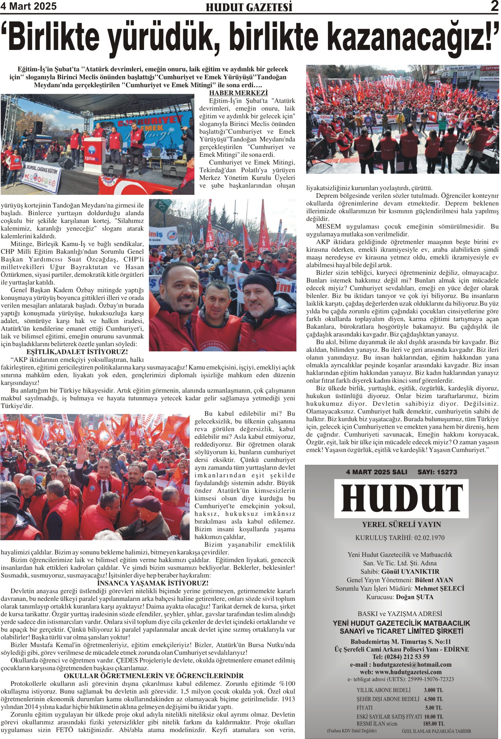 4 Mart 2025 Salı Hudut Gazetesi