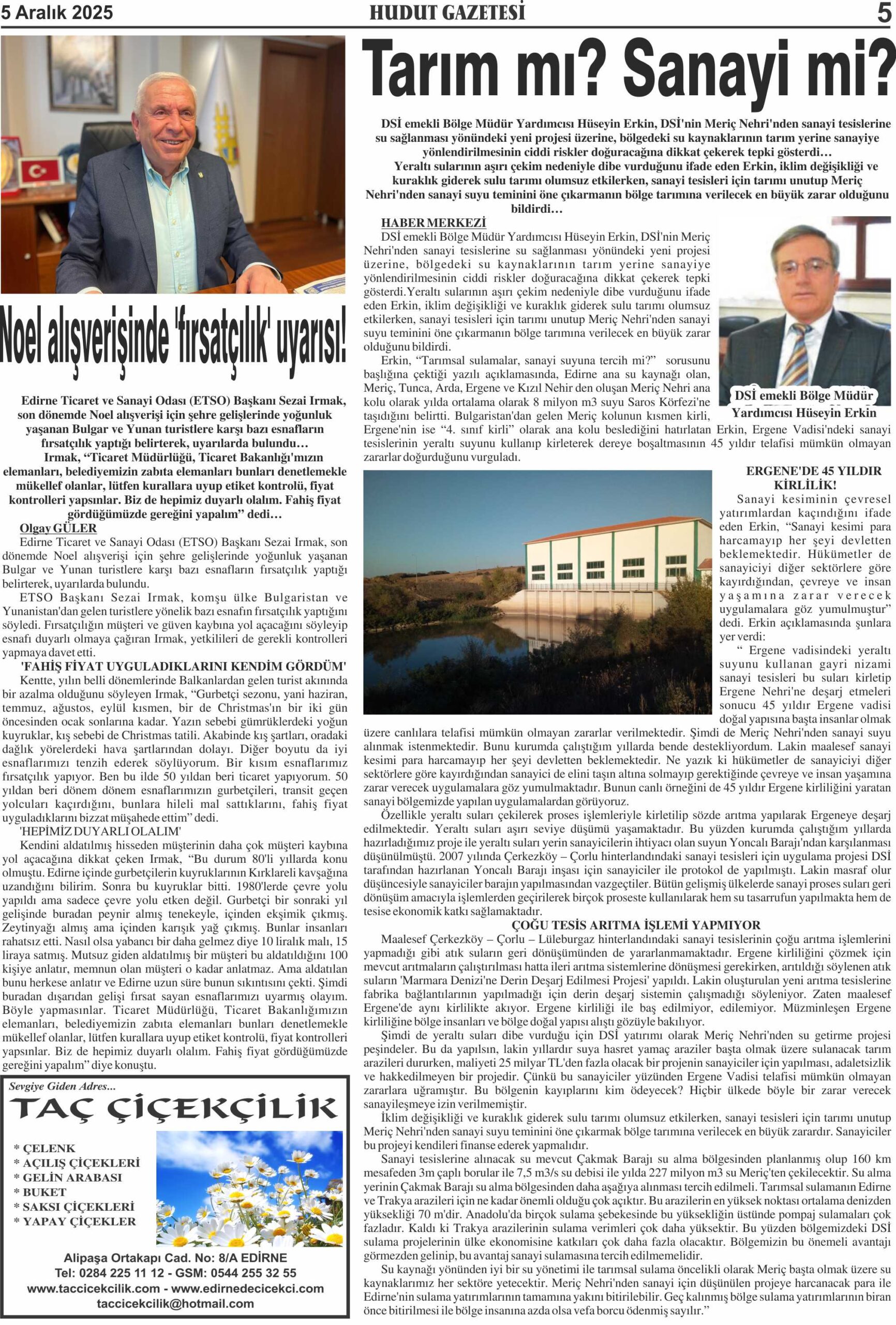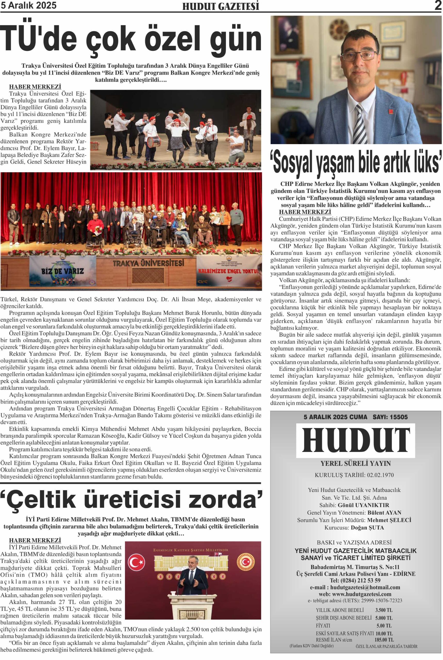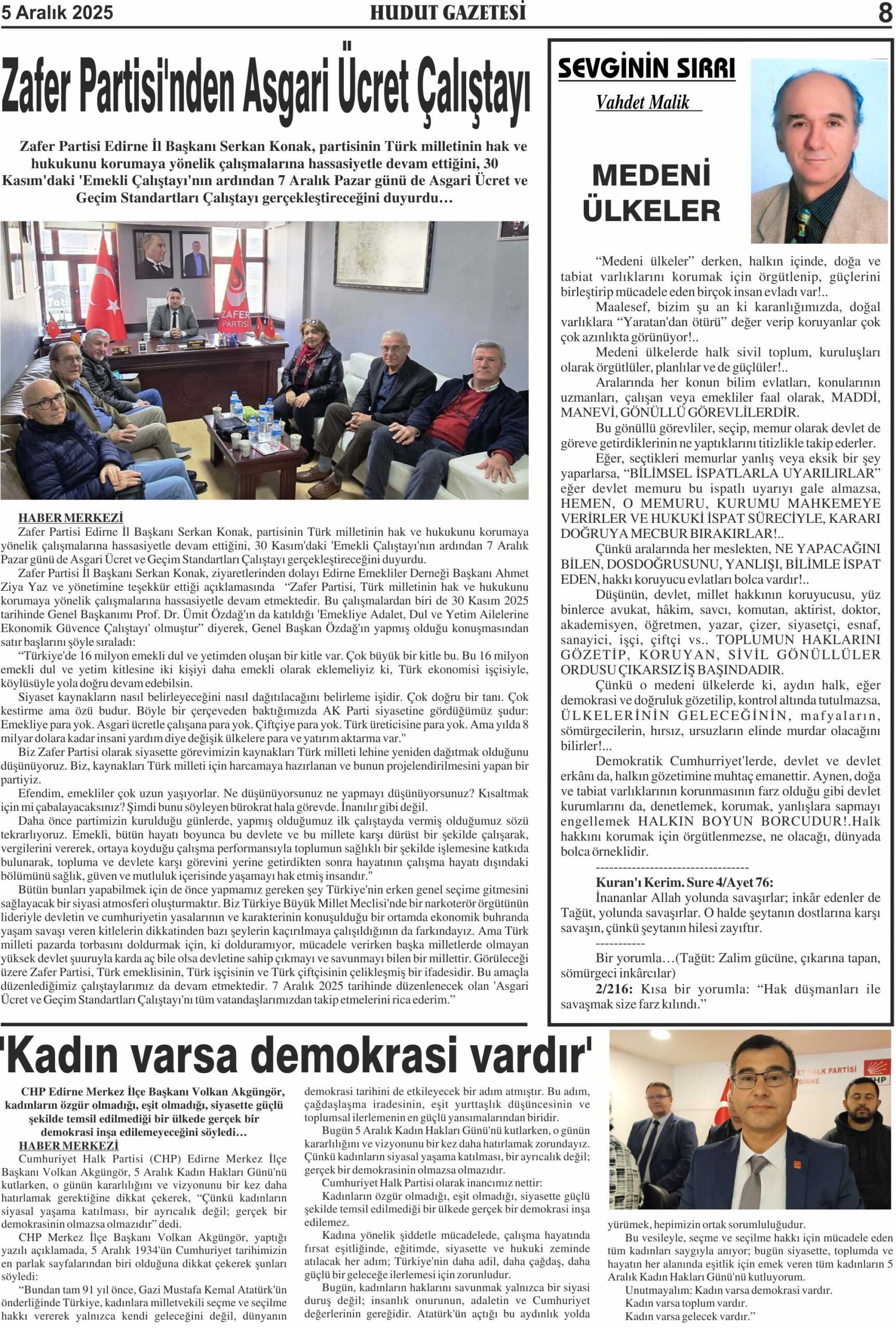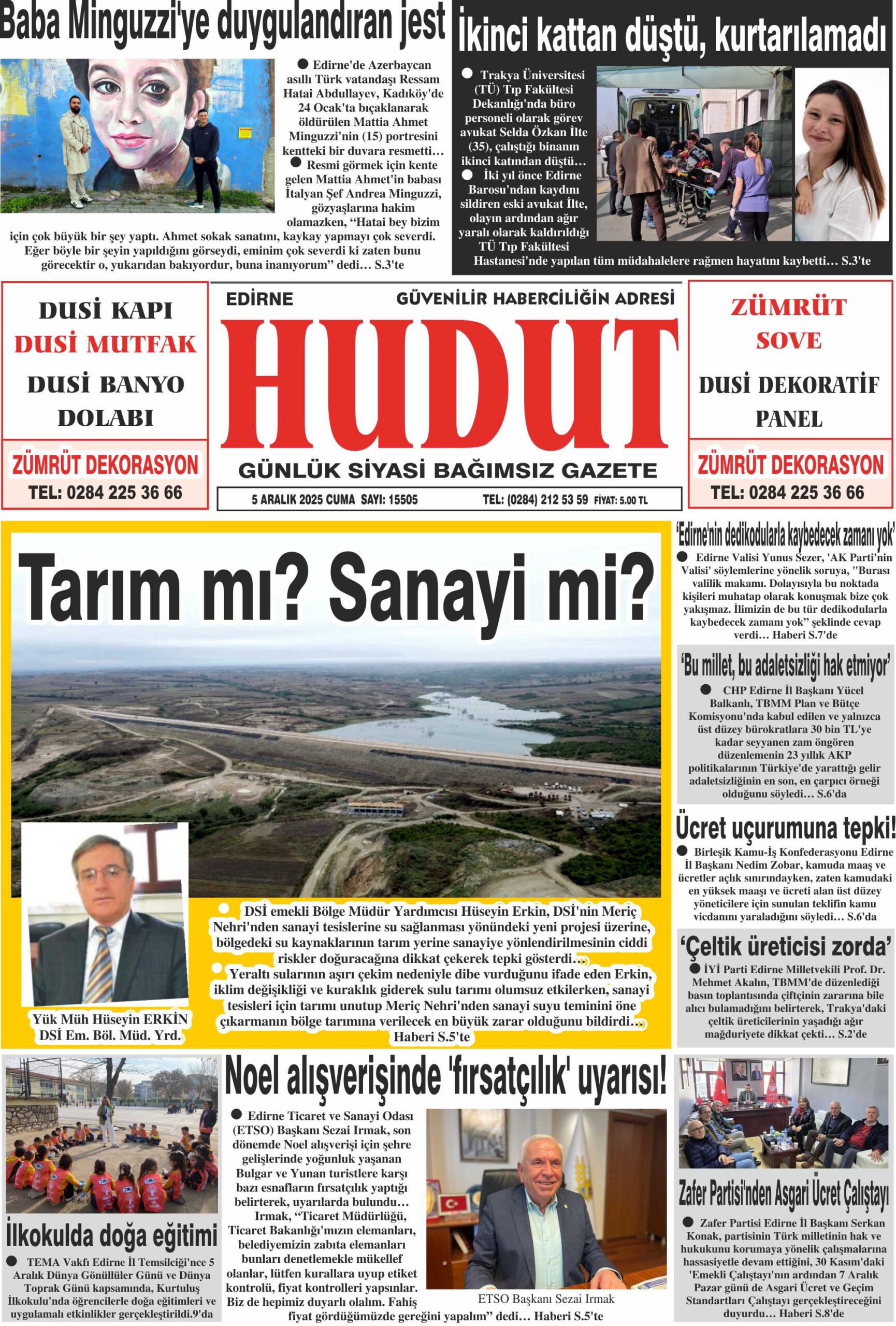 5 Aralık 2025 Cuma Hudut Gazetesi