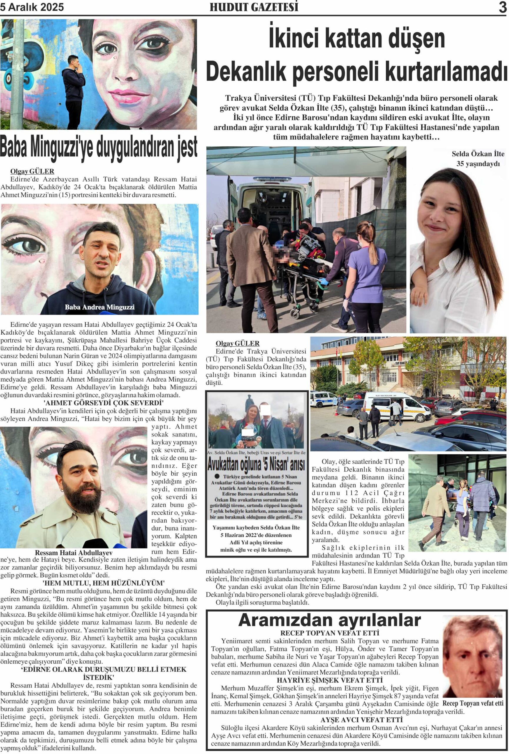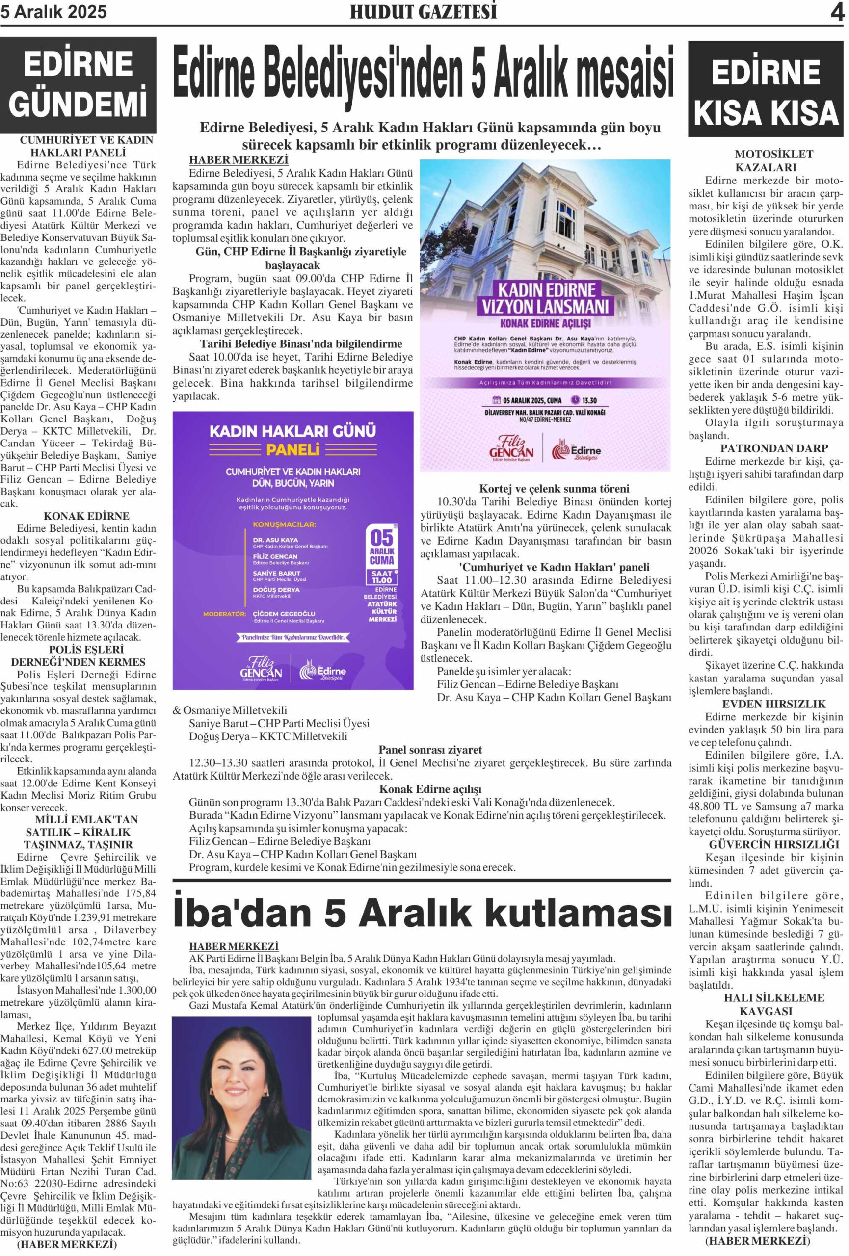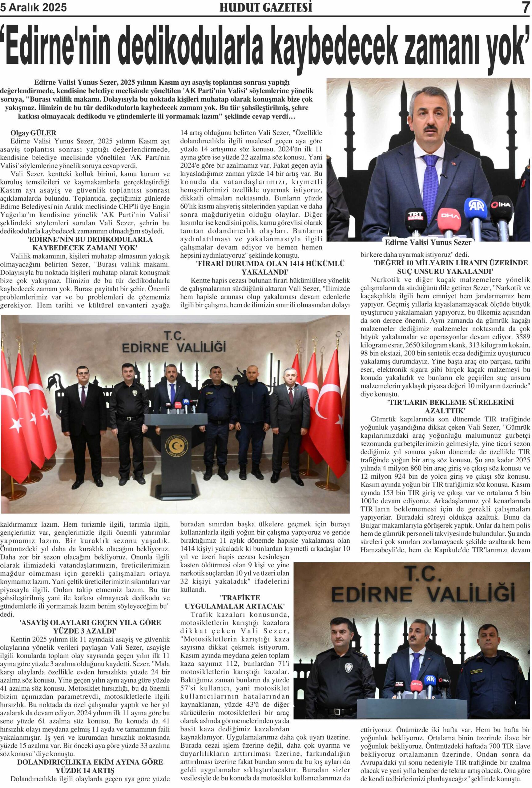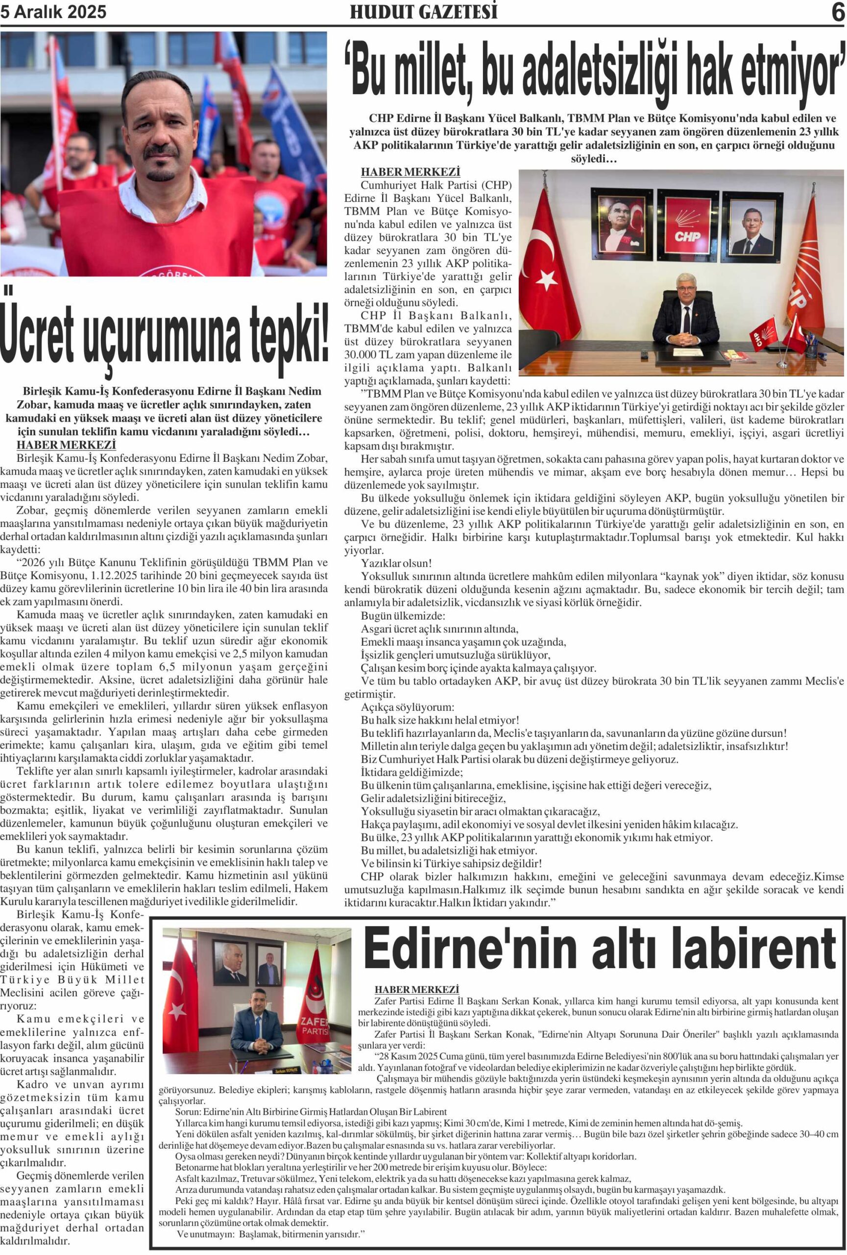 5 Aralık 2025 Cuma Hudut Gazetesi