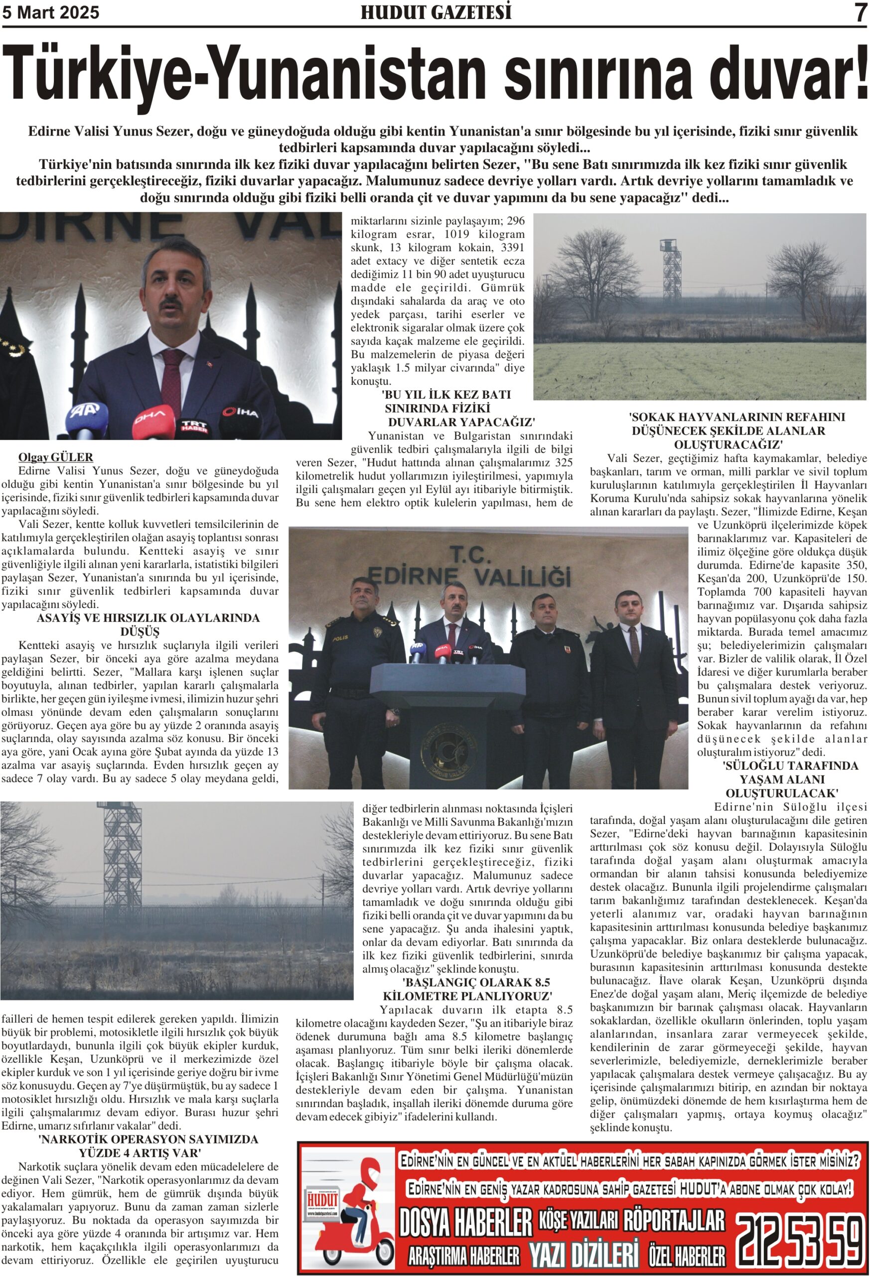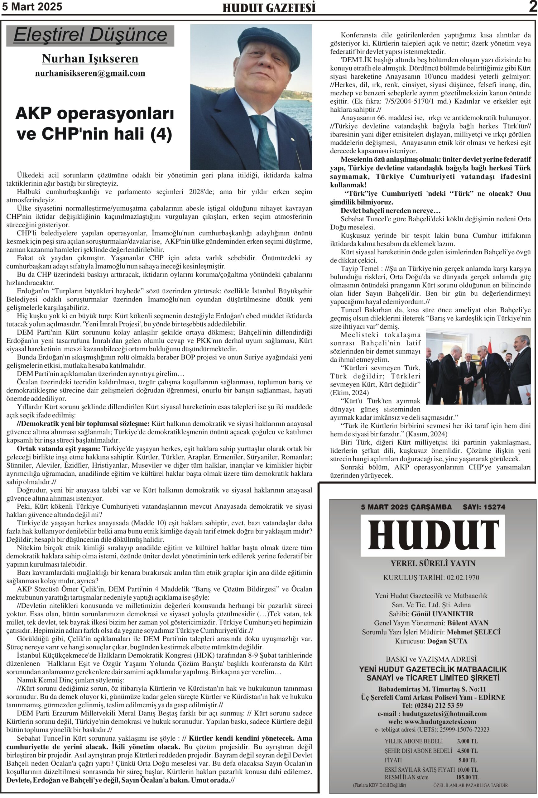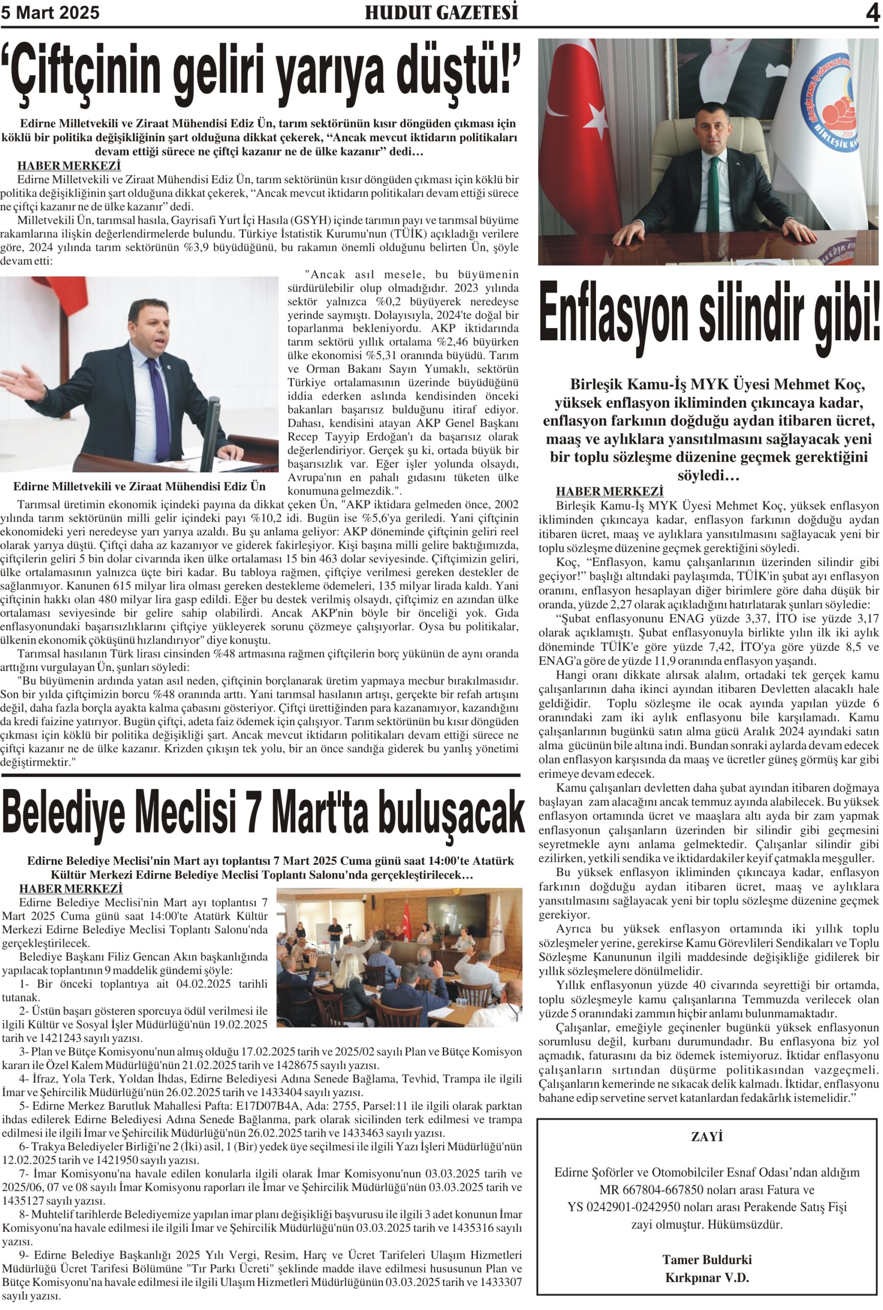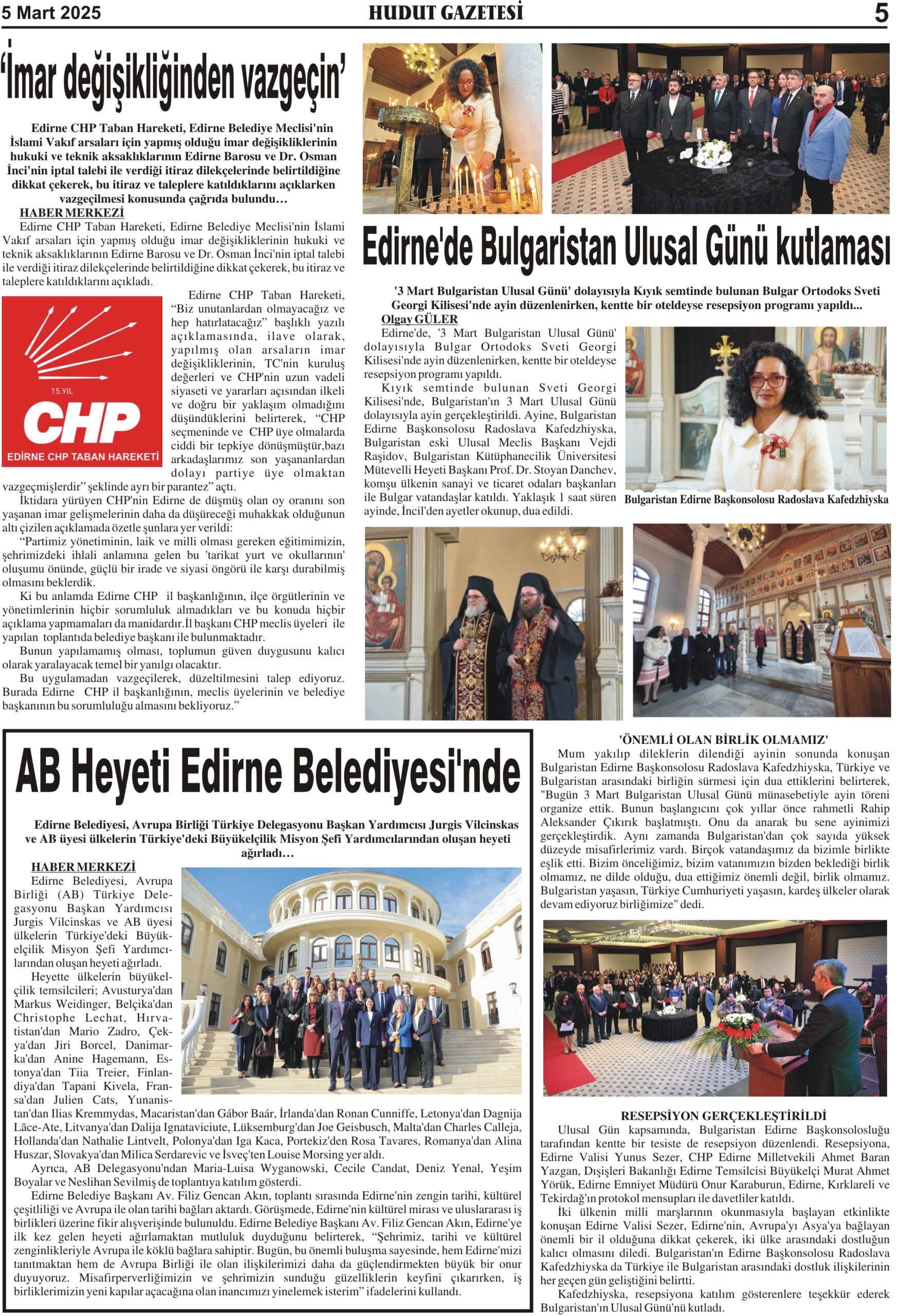 5 Mart 2025 Çarşamba Hudut Gazetesi