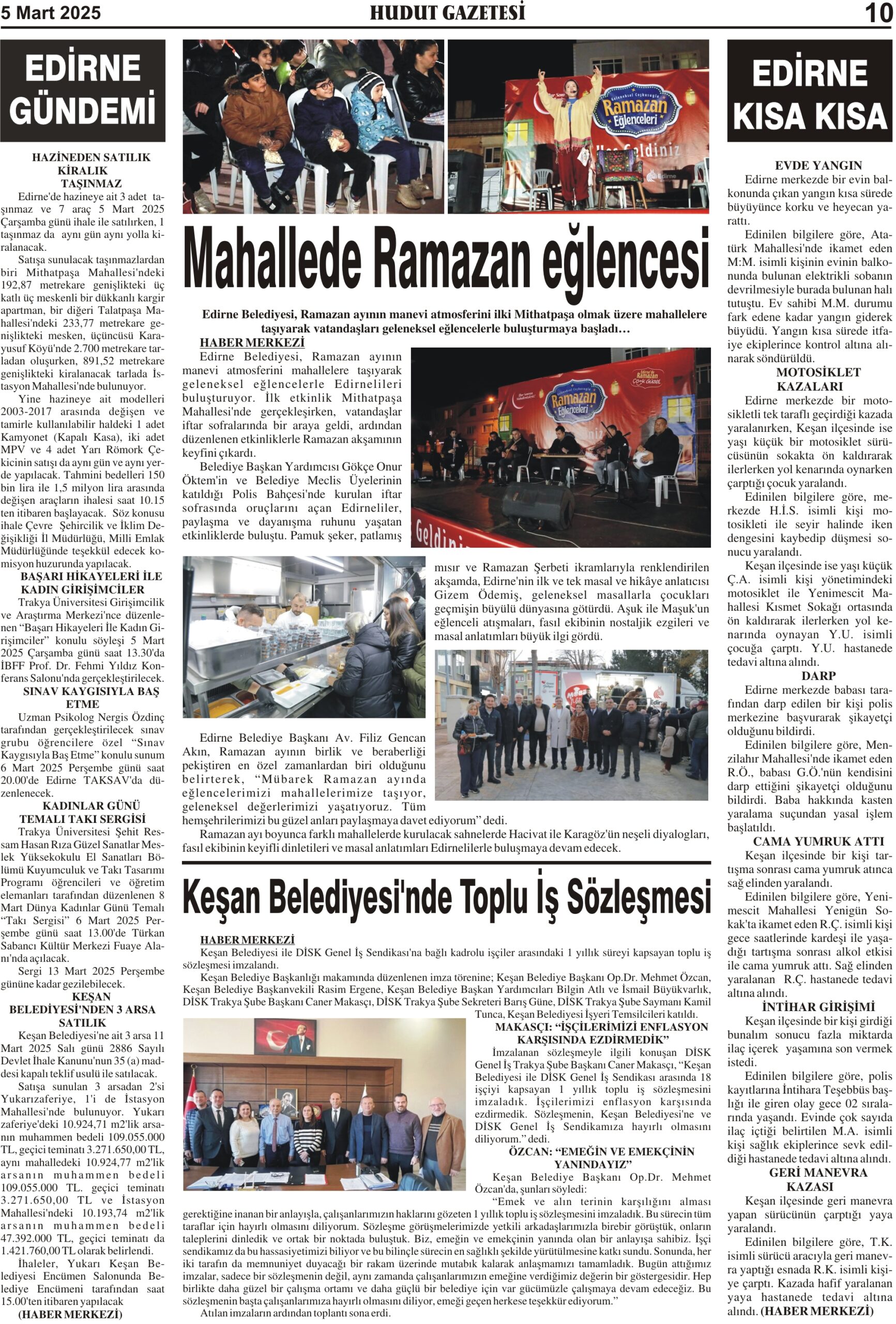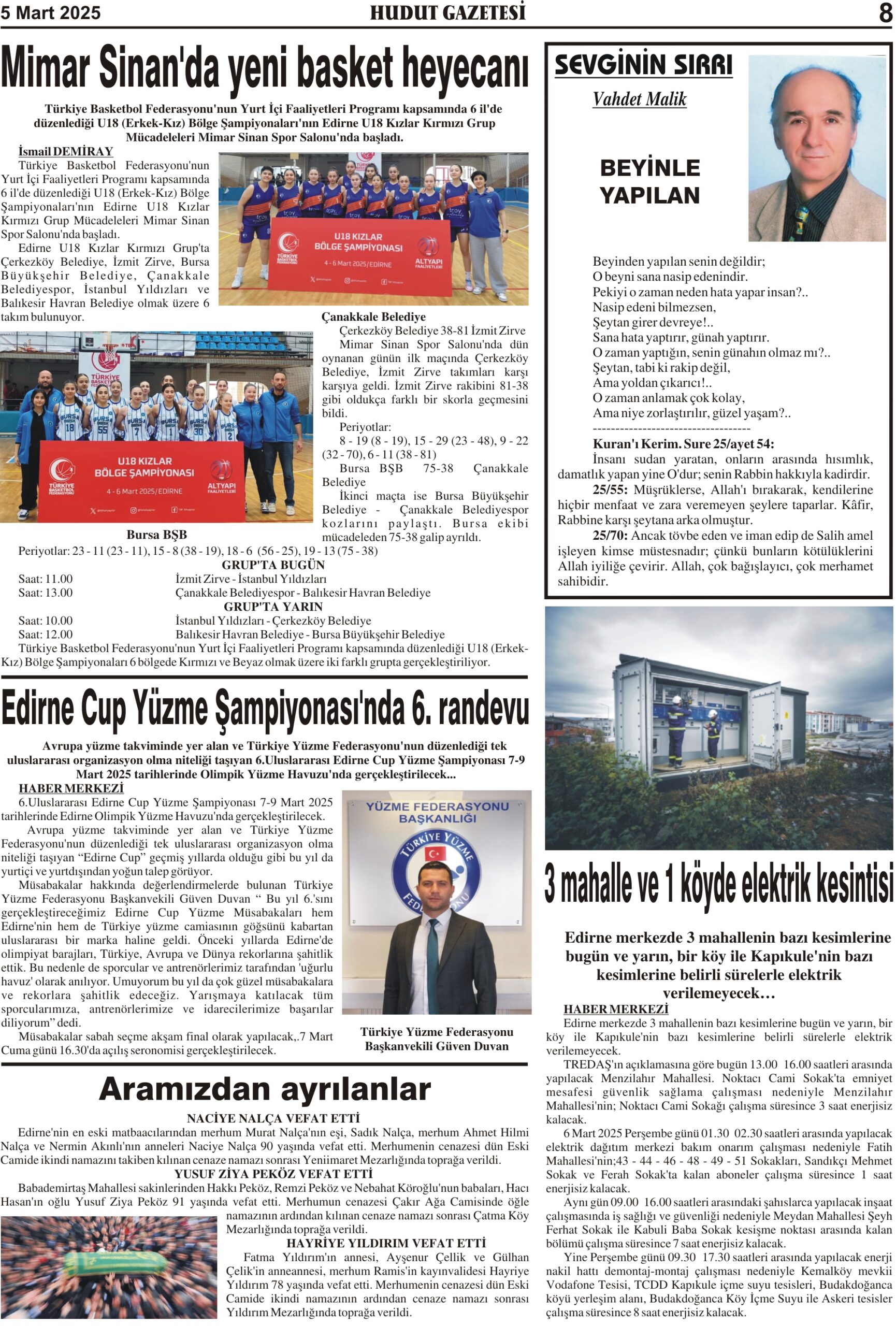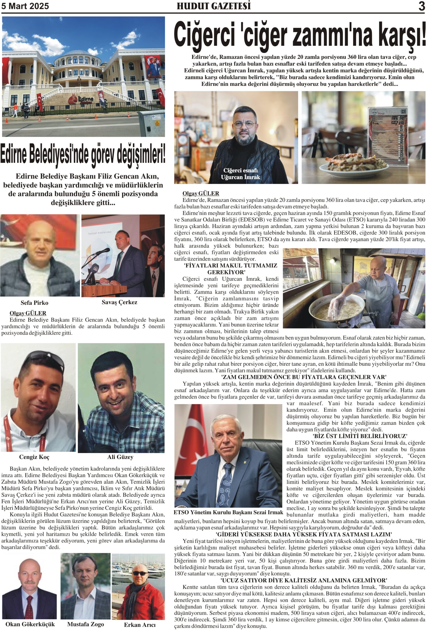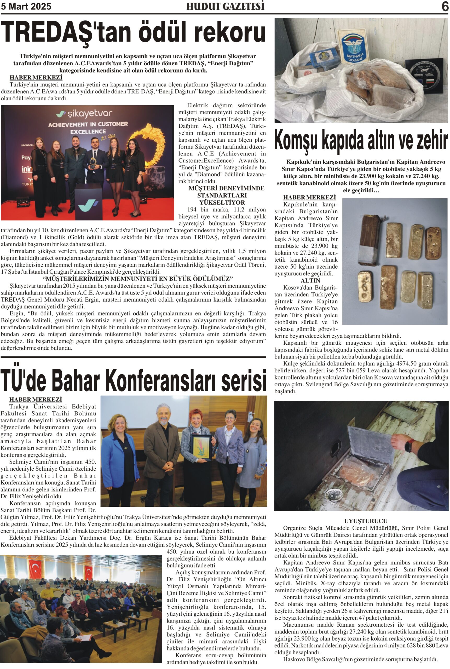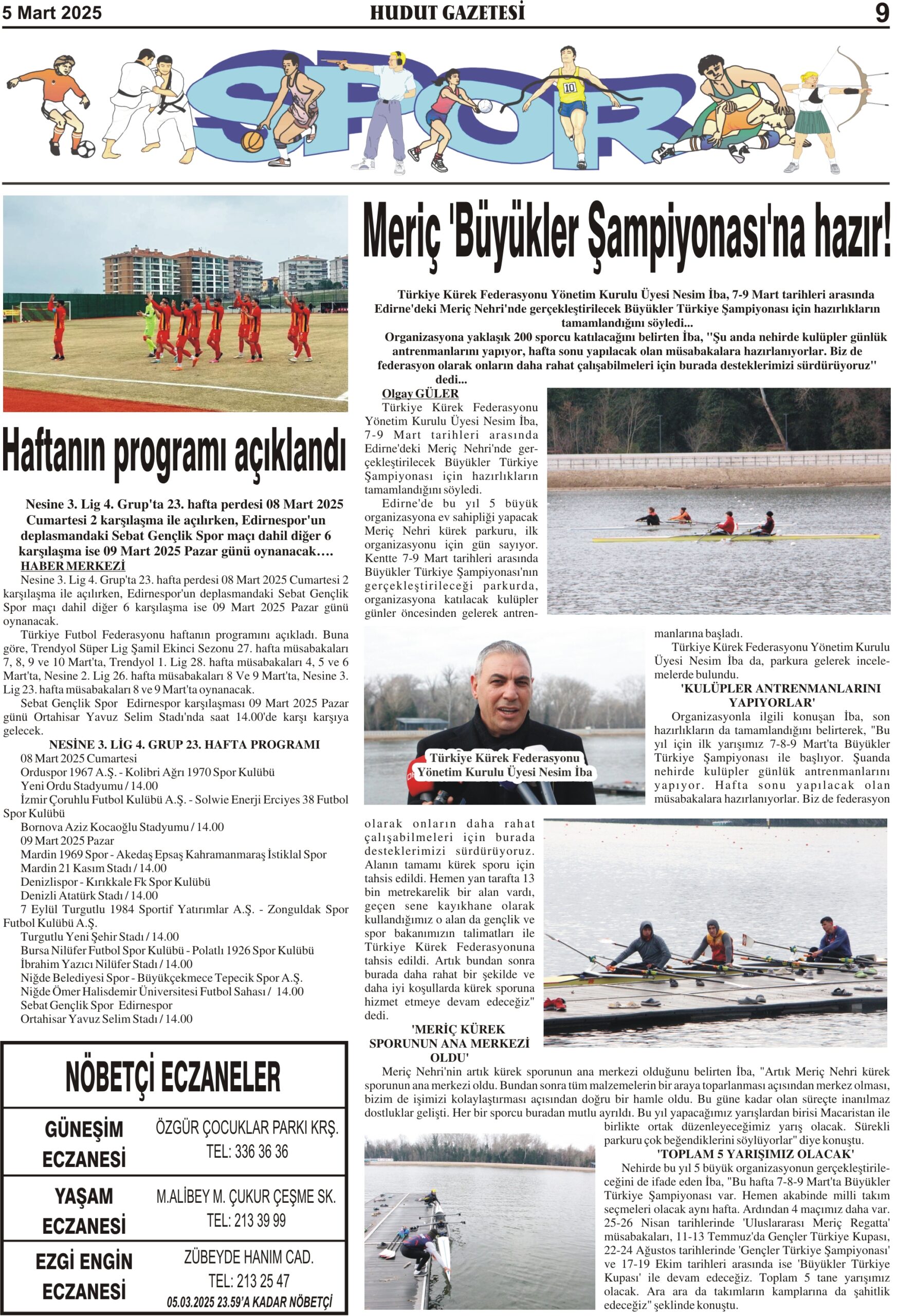 5 Mart 2025 Çarşamba Hudut Gazetesi