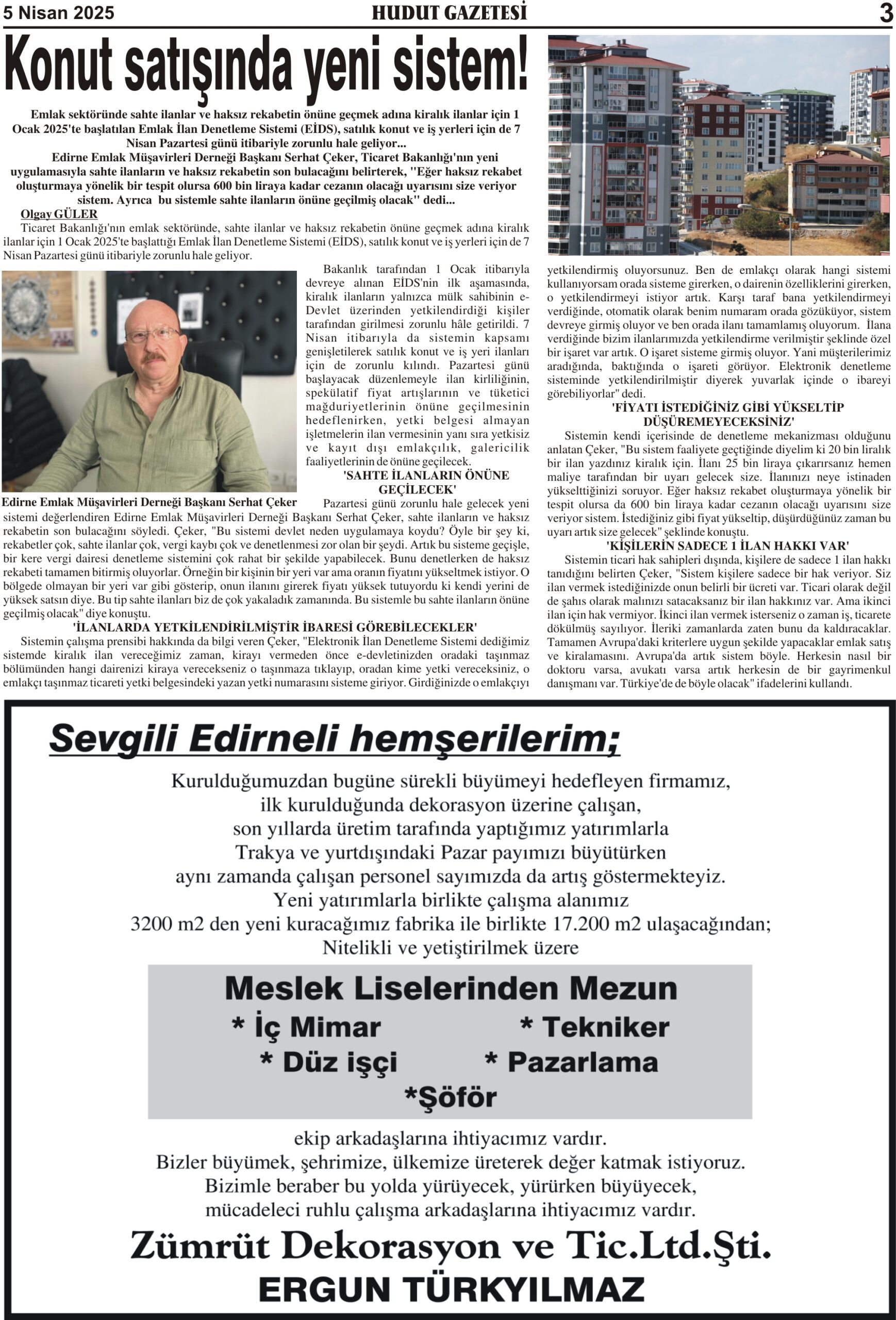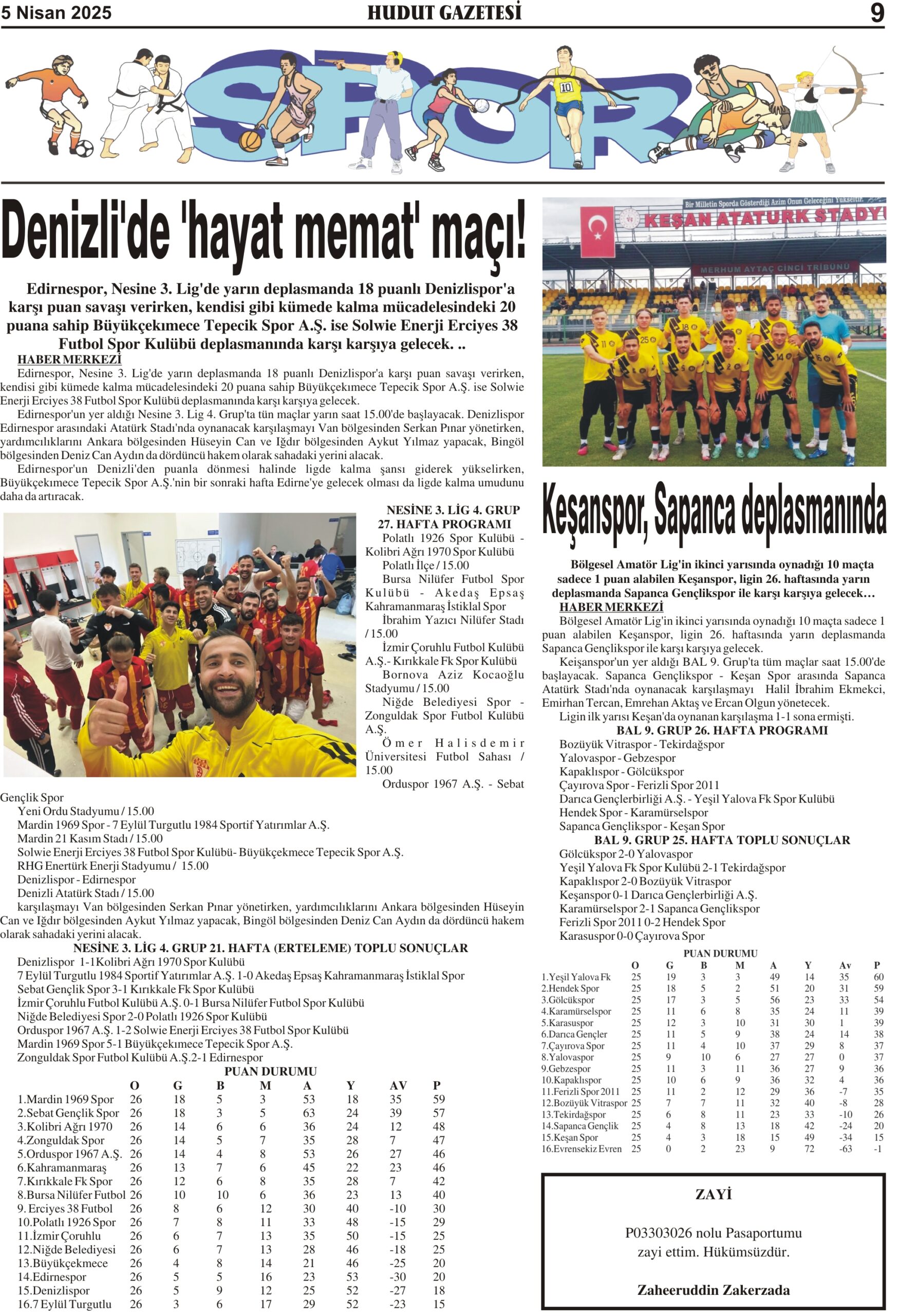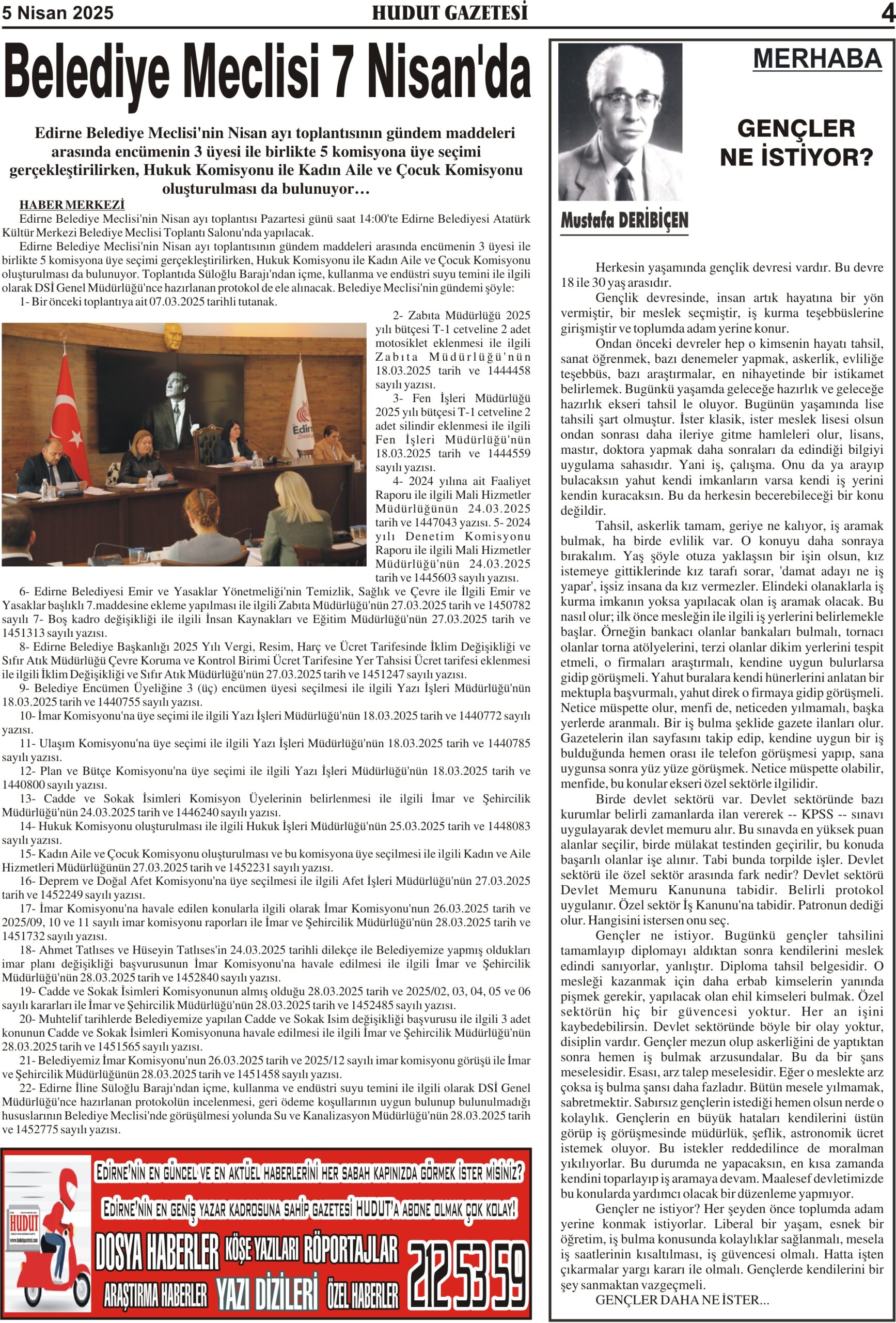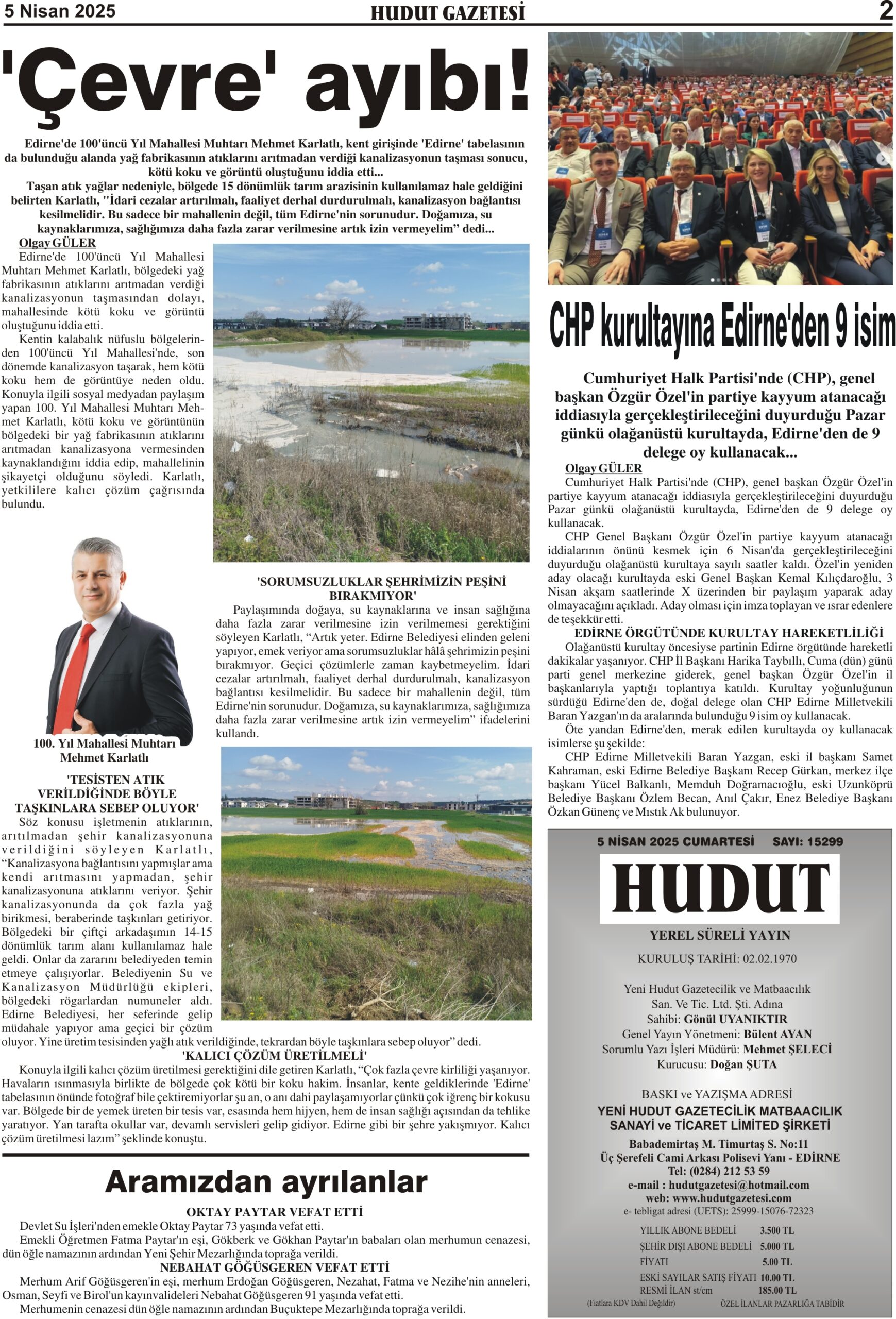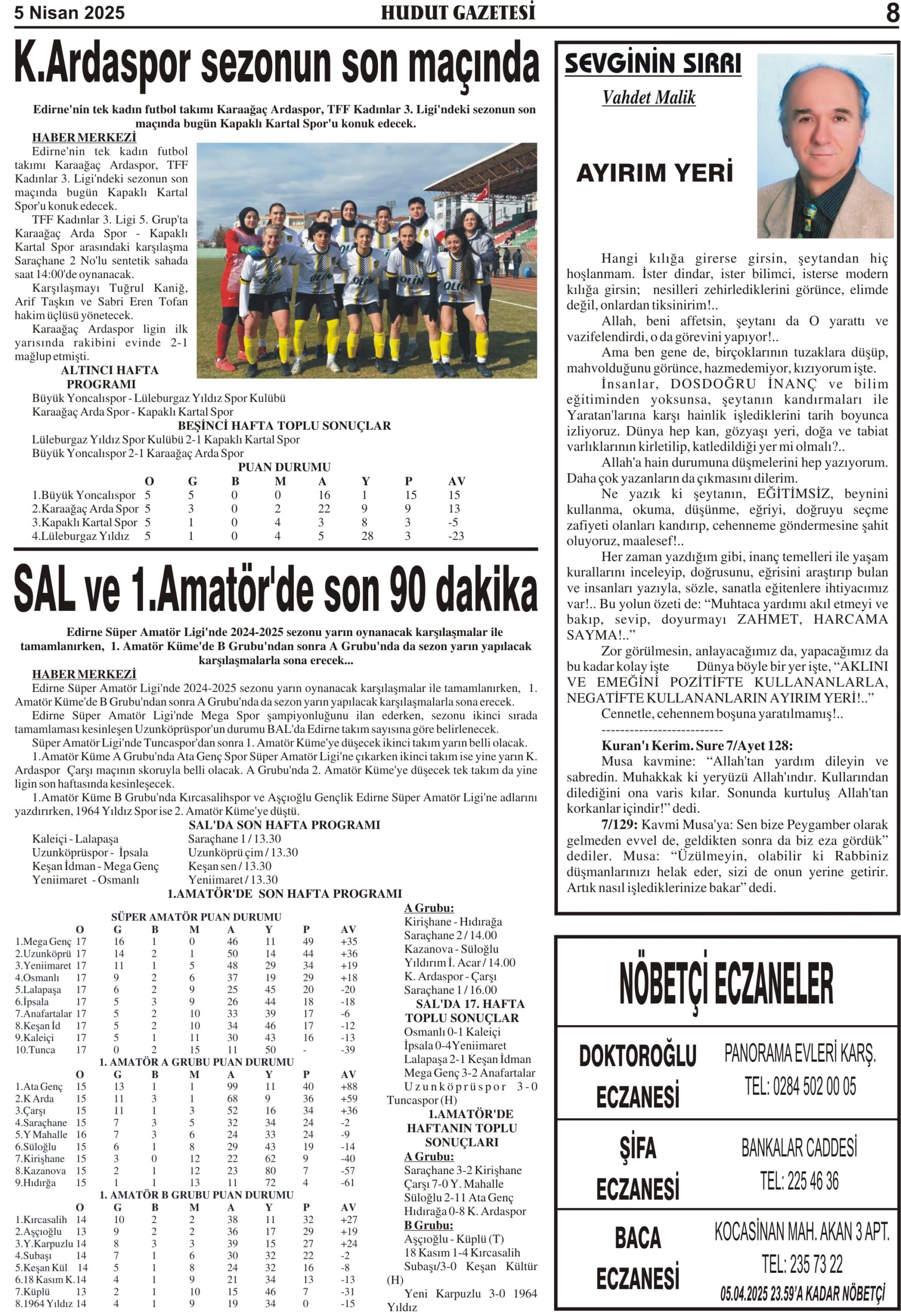 5 Nisan 2025 Cumartesi Hudut Gazetesi