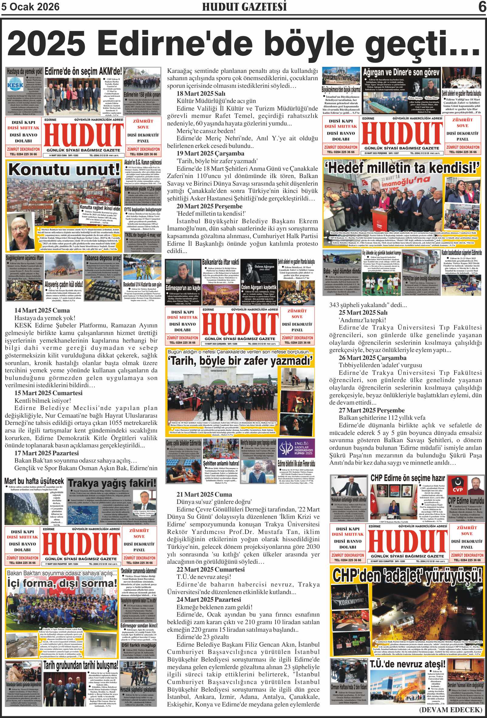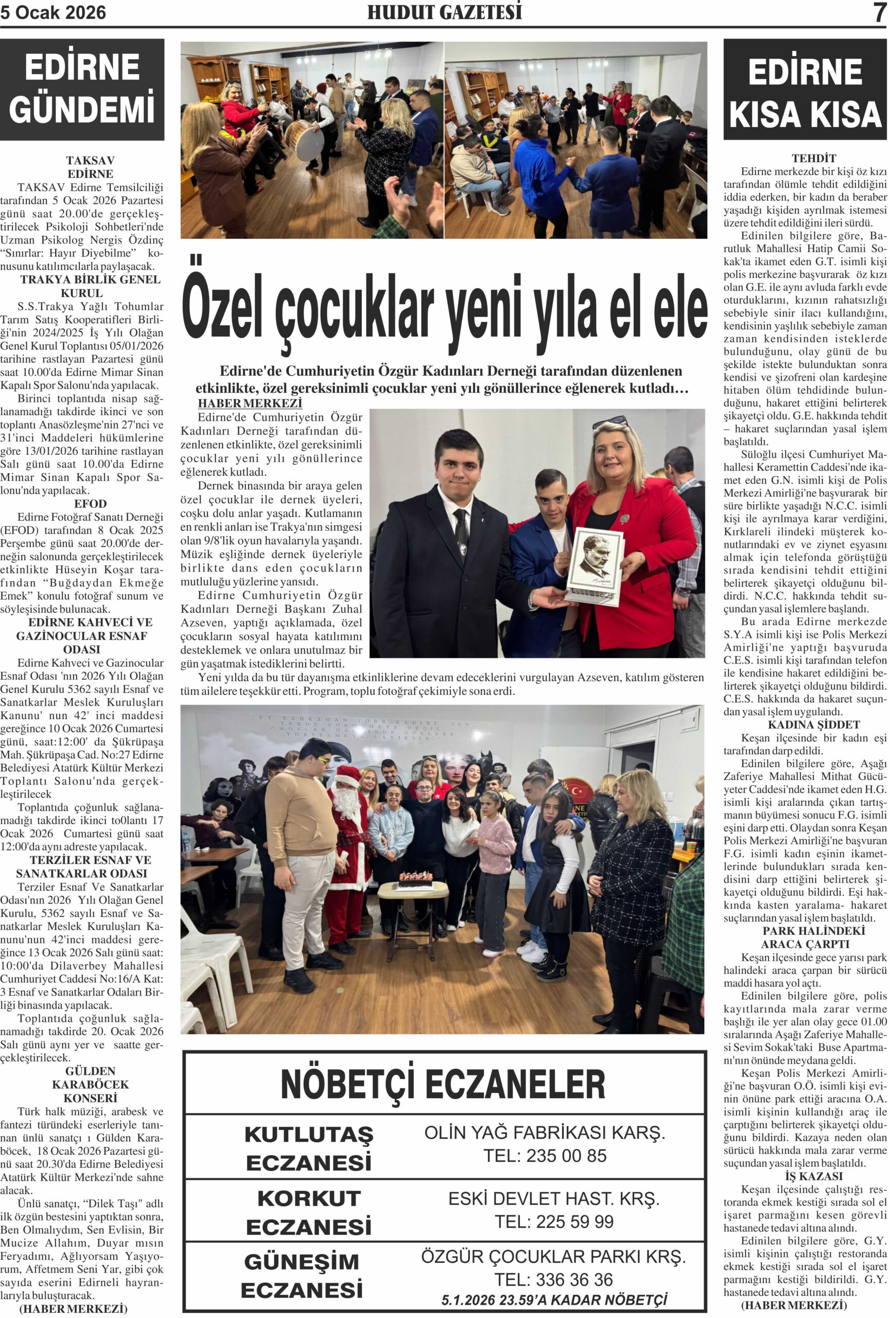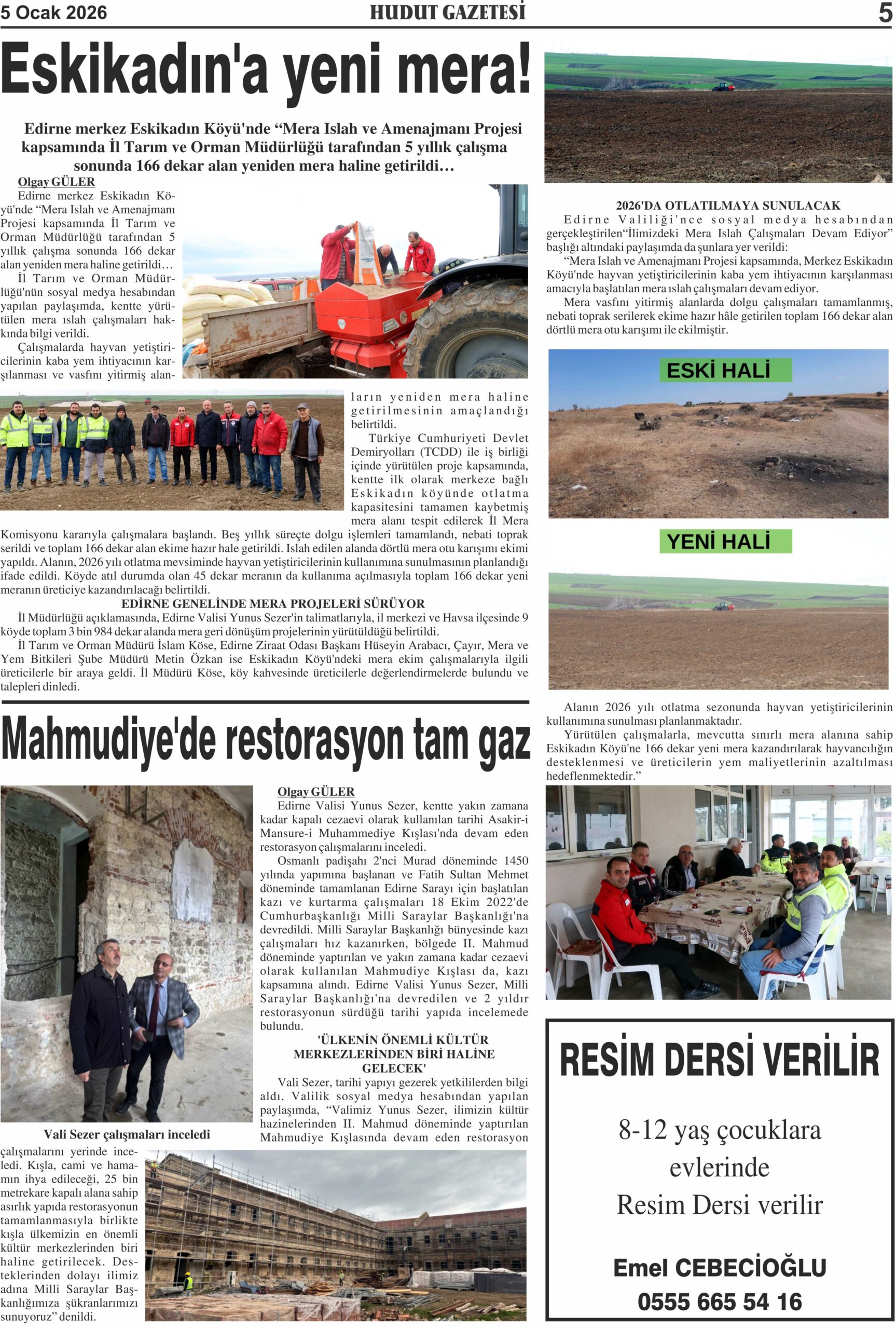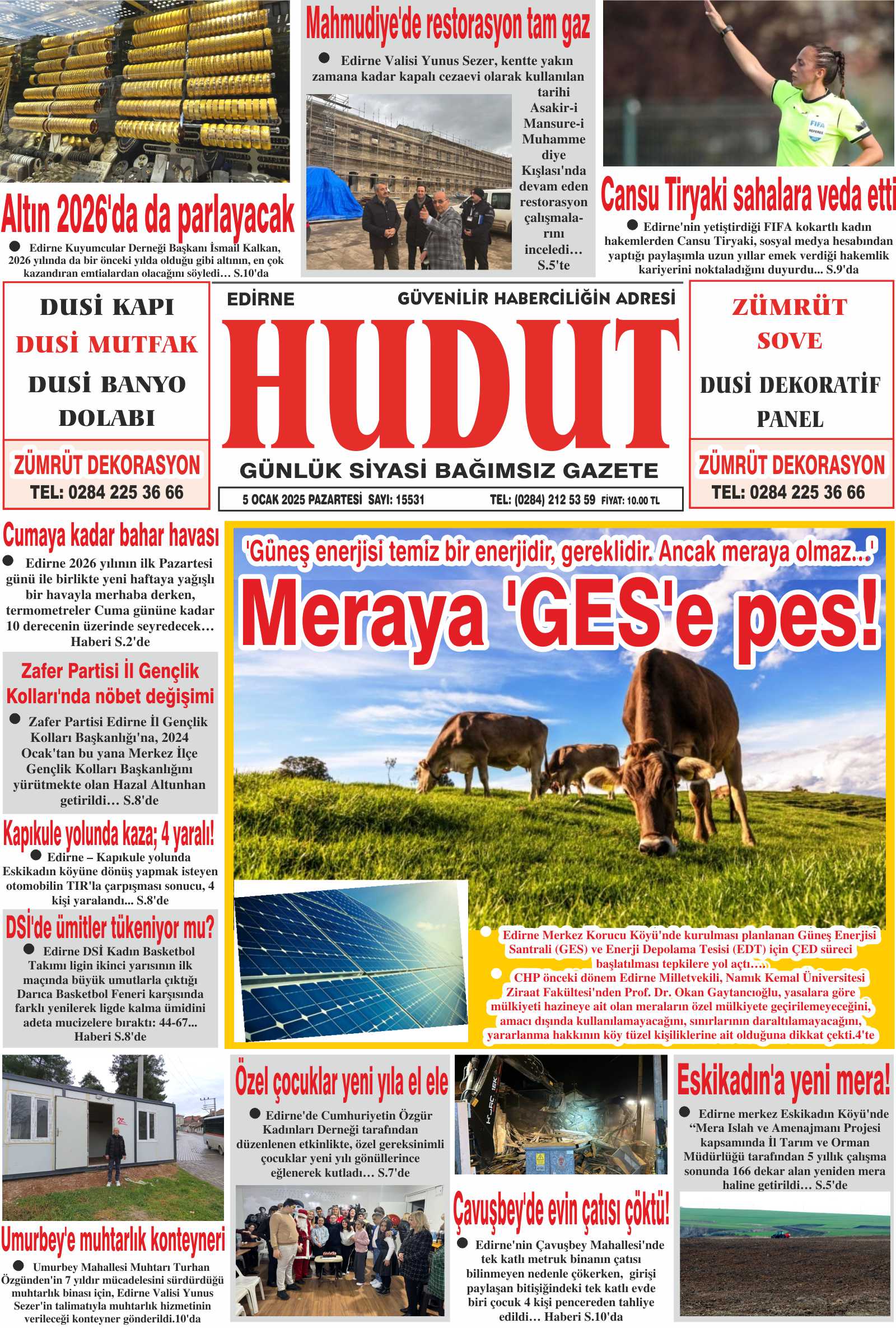 5 Ocak 2026 Pazartesi Hudut Gazetesi