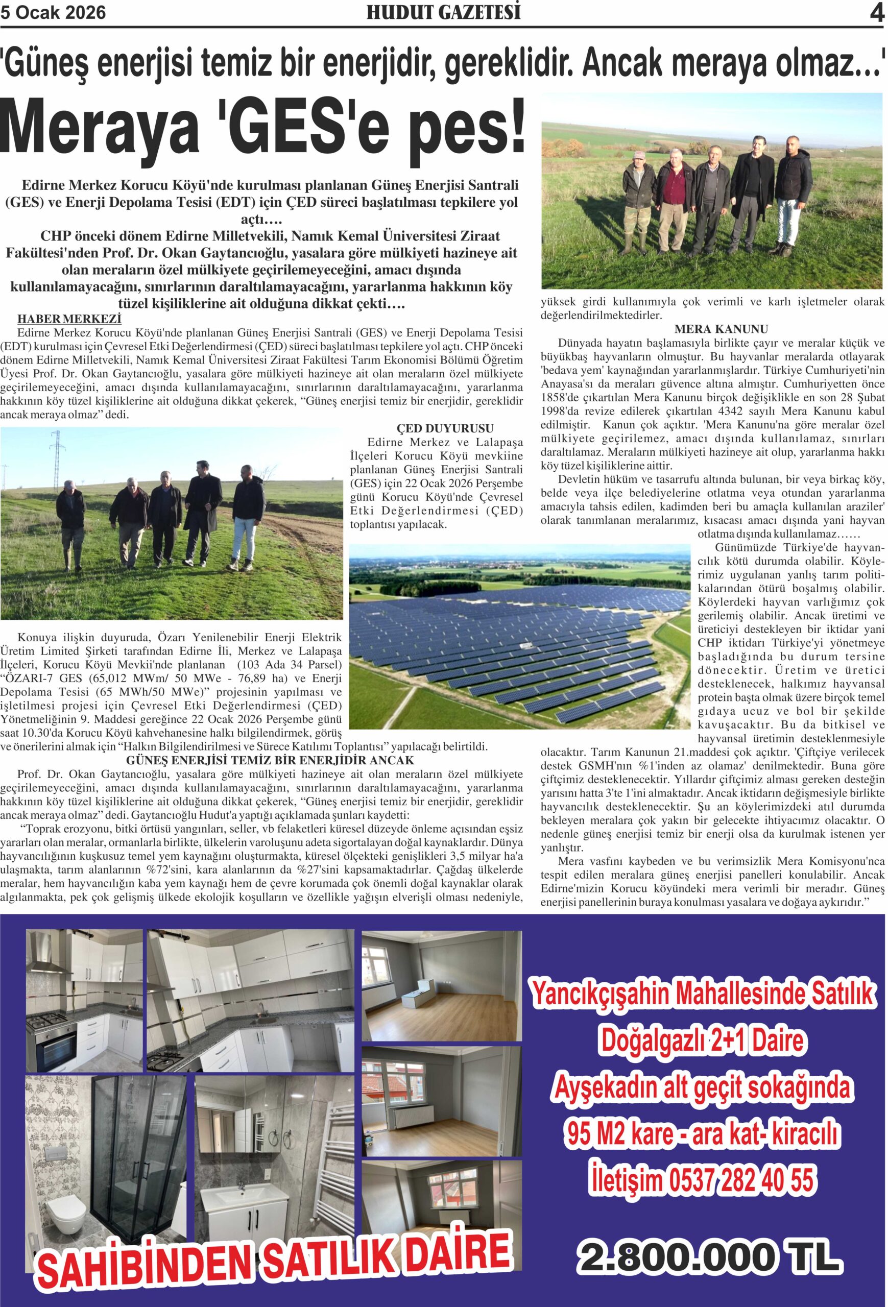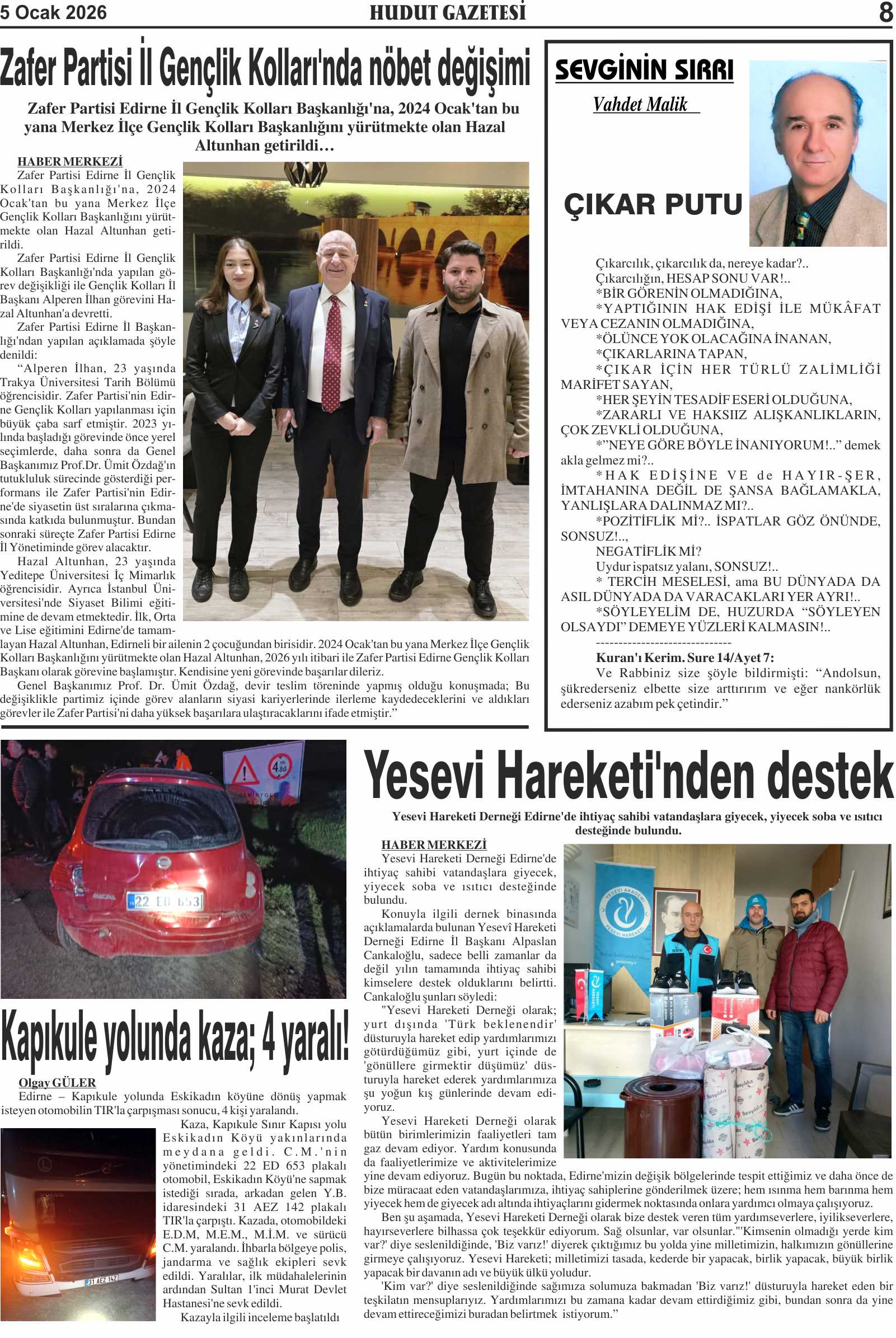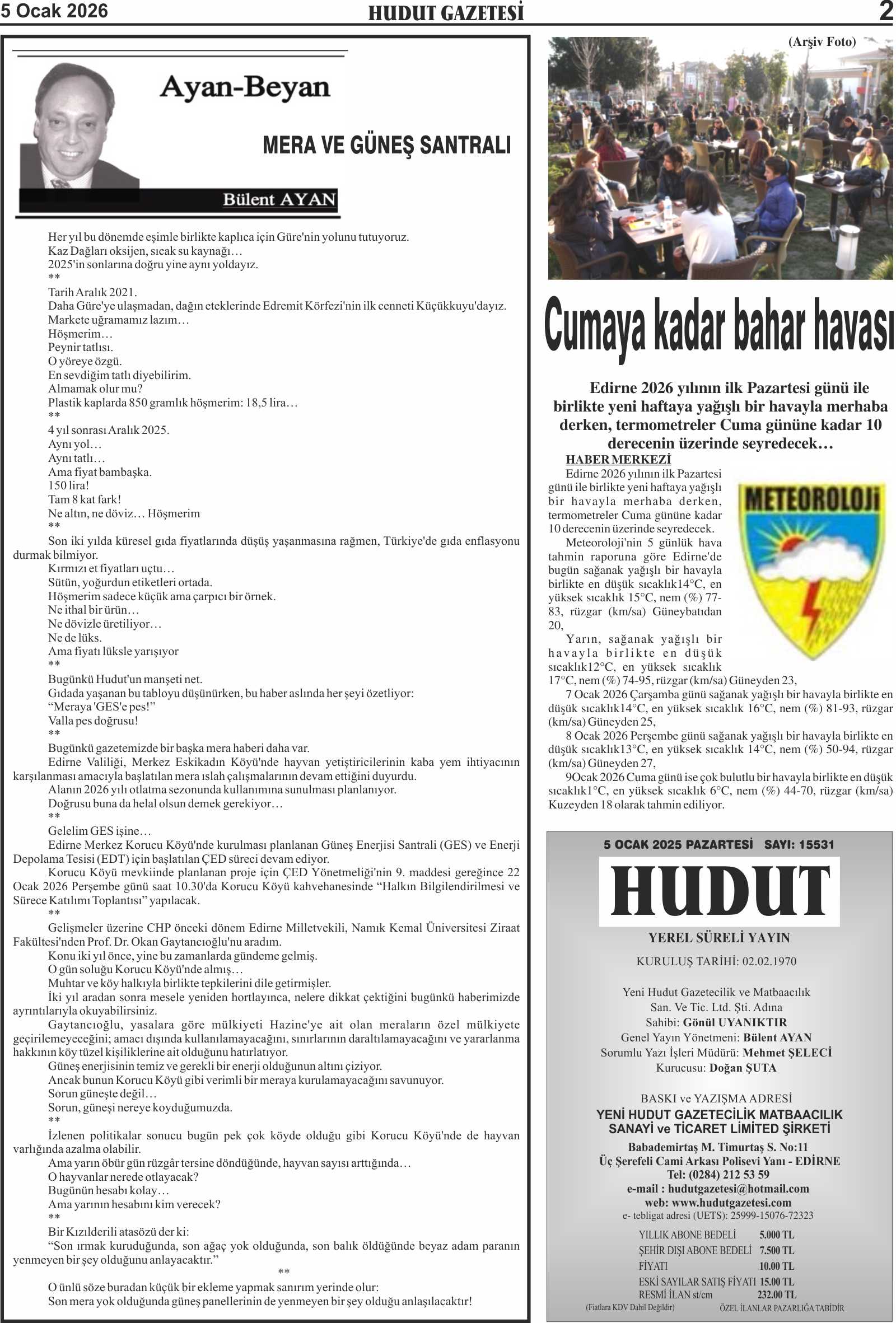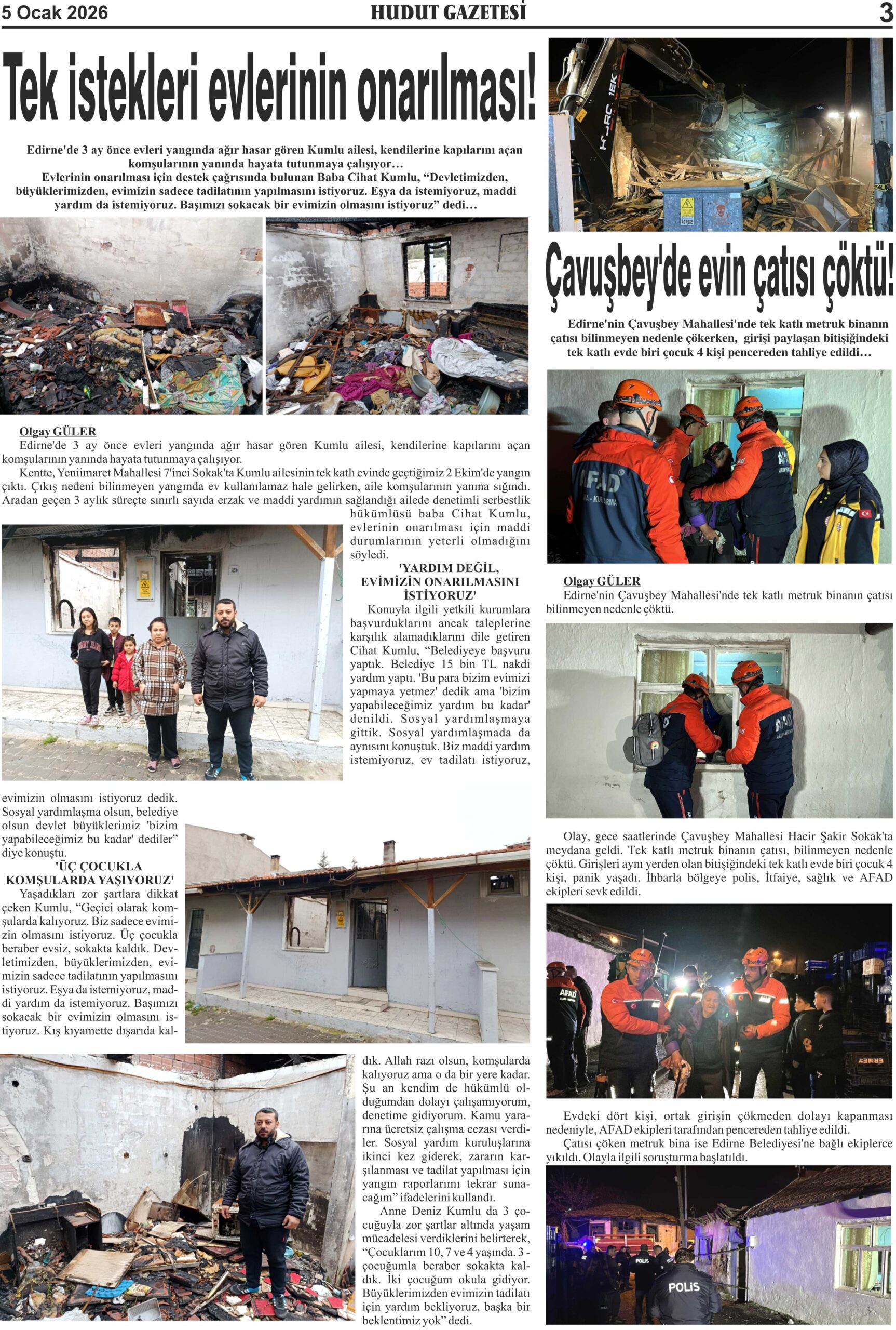 5 Ocak 2026 Pazartesi Hudut Gazetesi