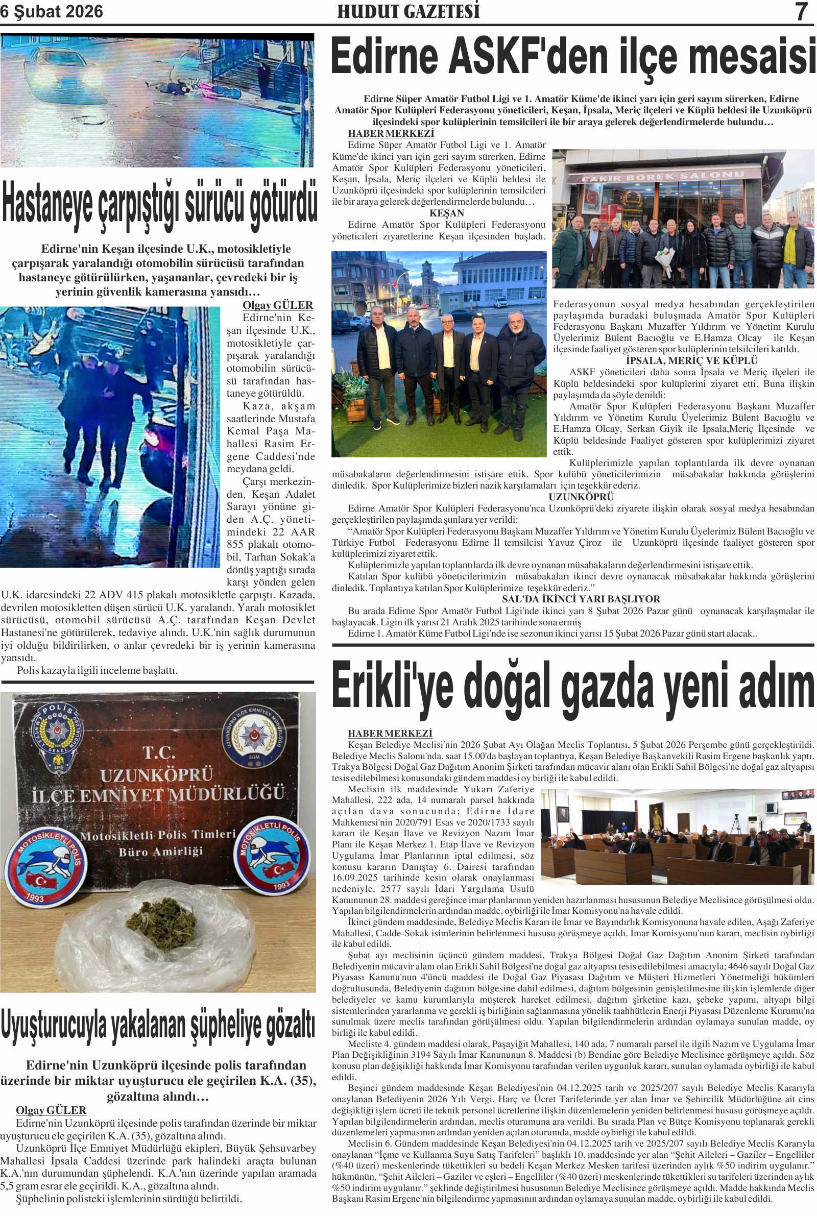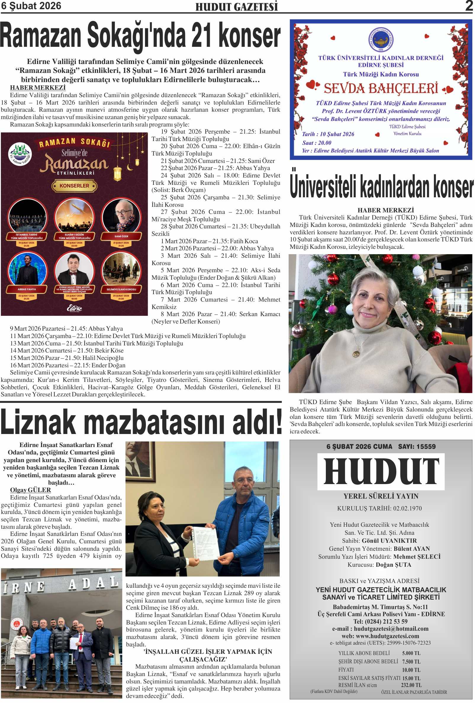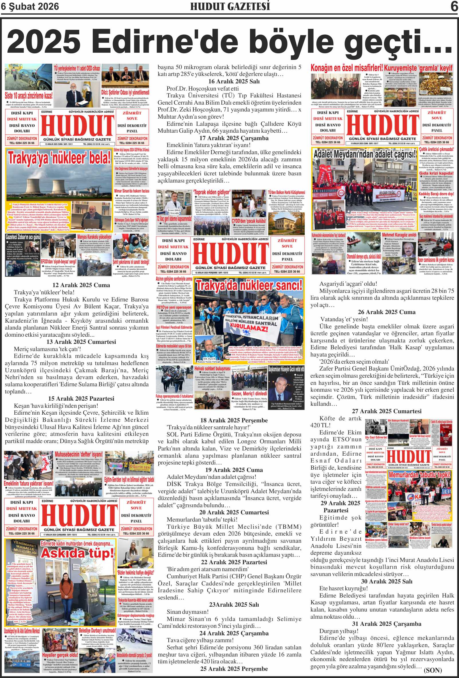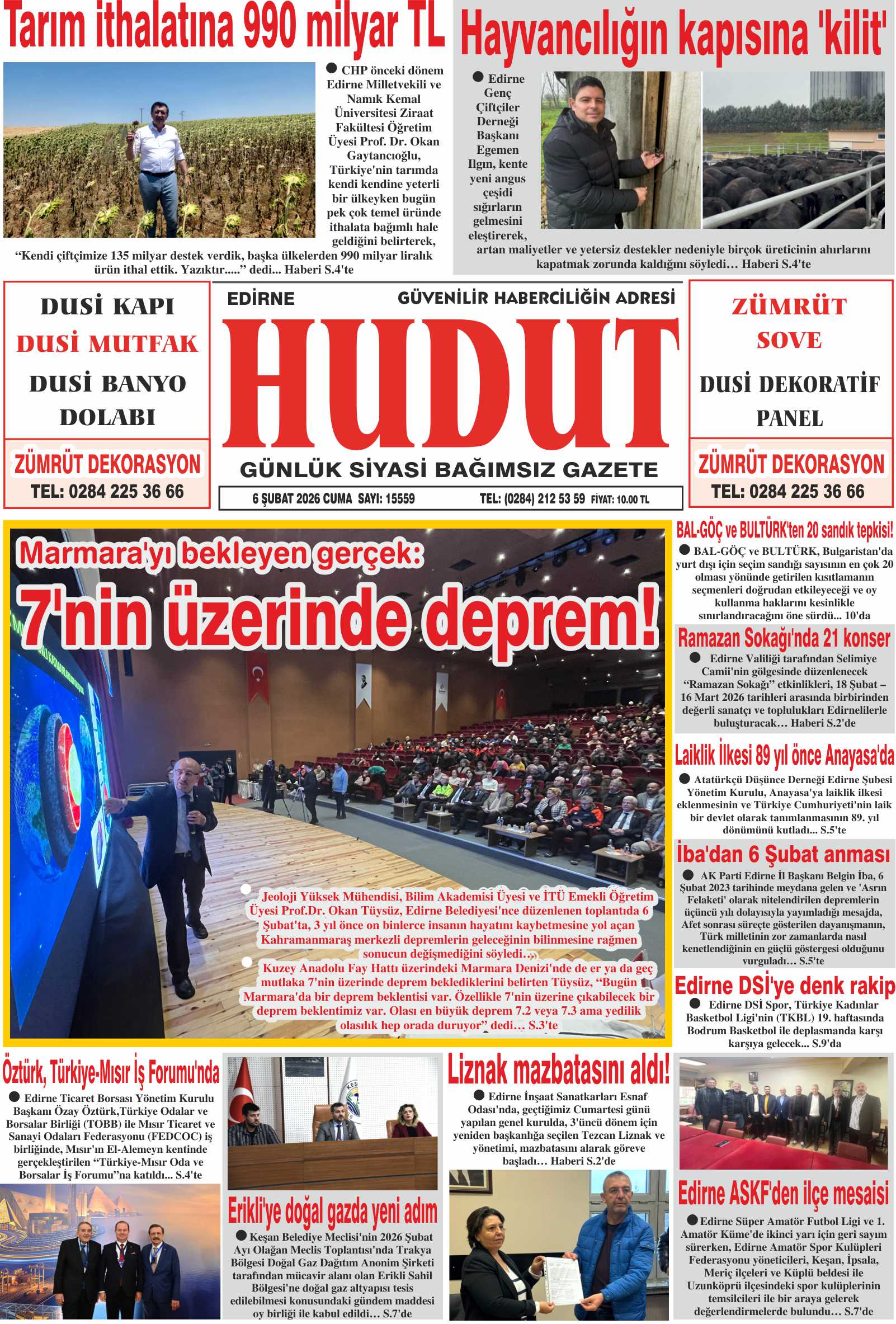 6 Şubat 2026 Cuma Hudut Gazetesi