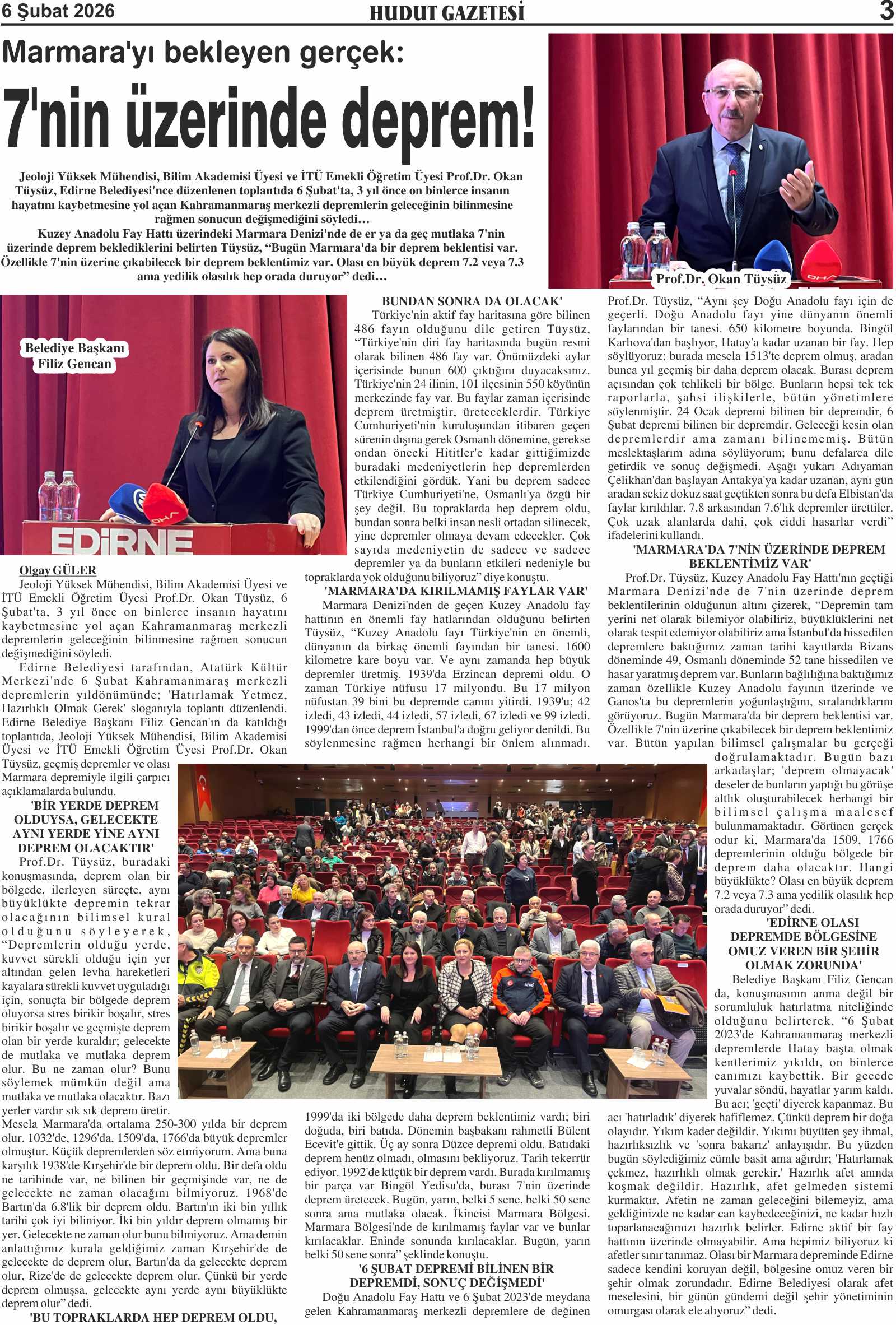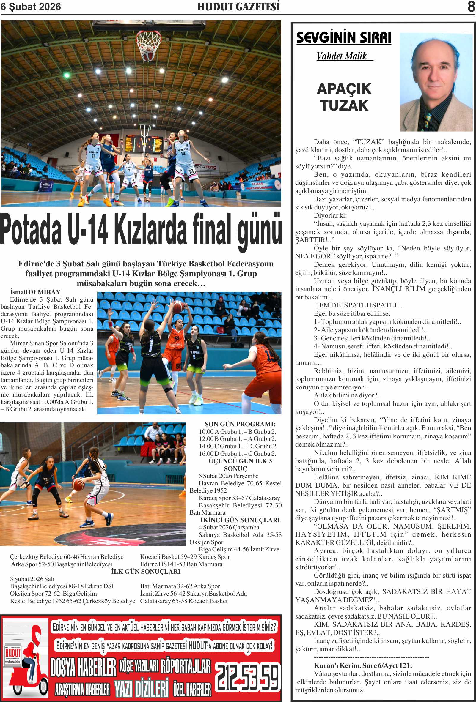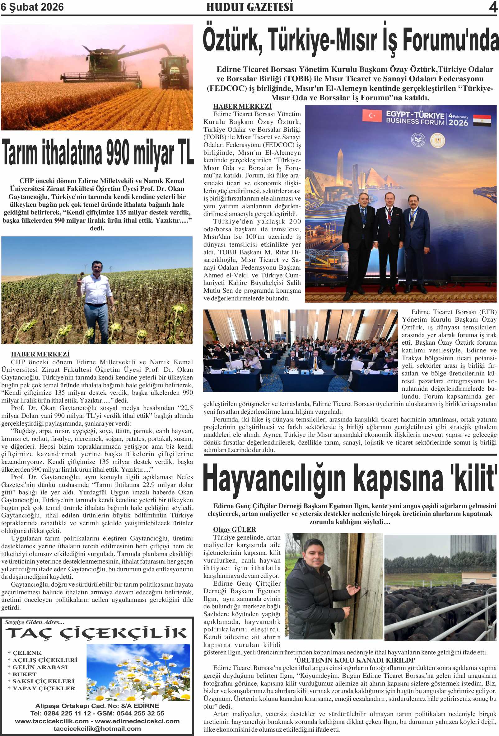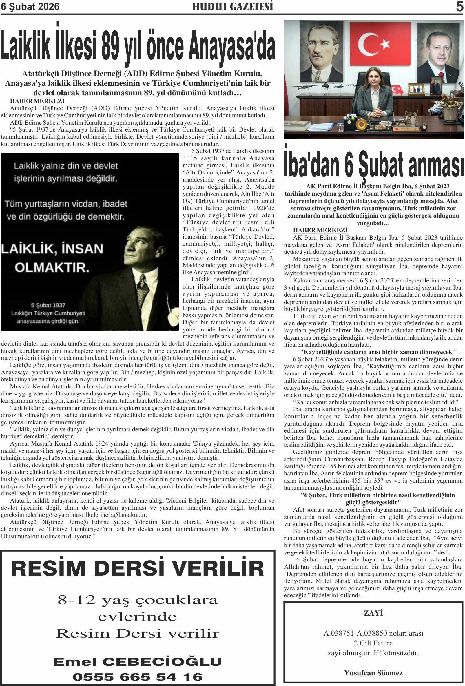 6 Şubat 2026 Cuma Hudut Gazetesi