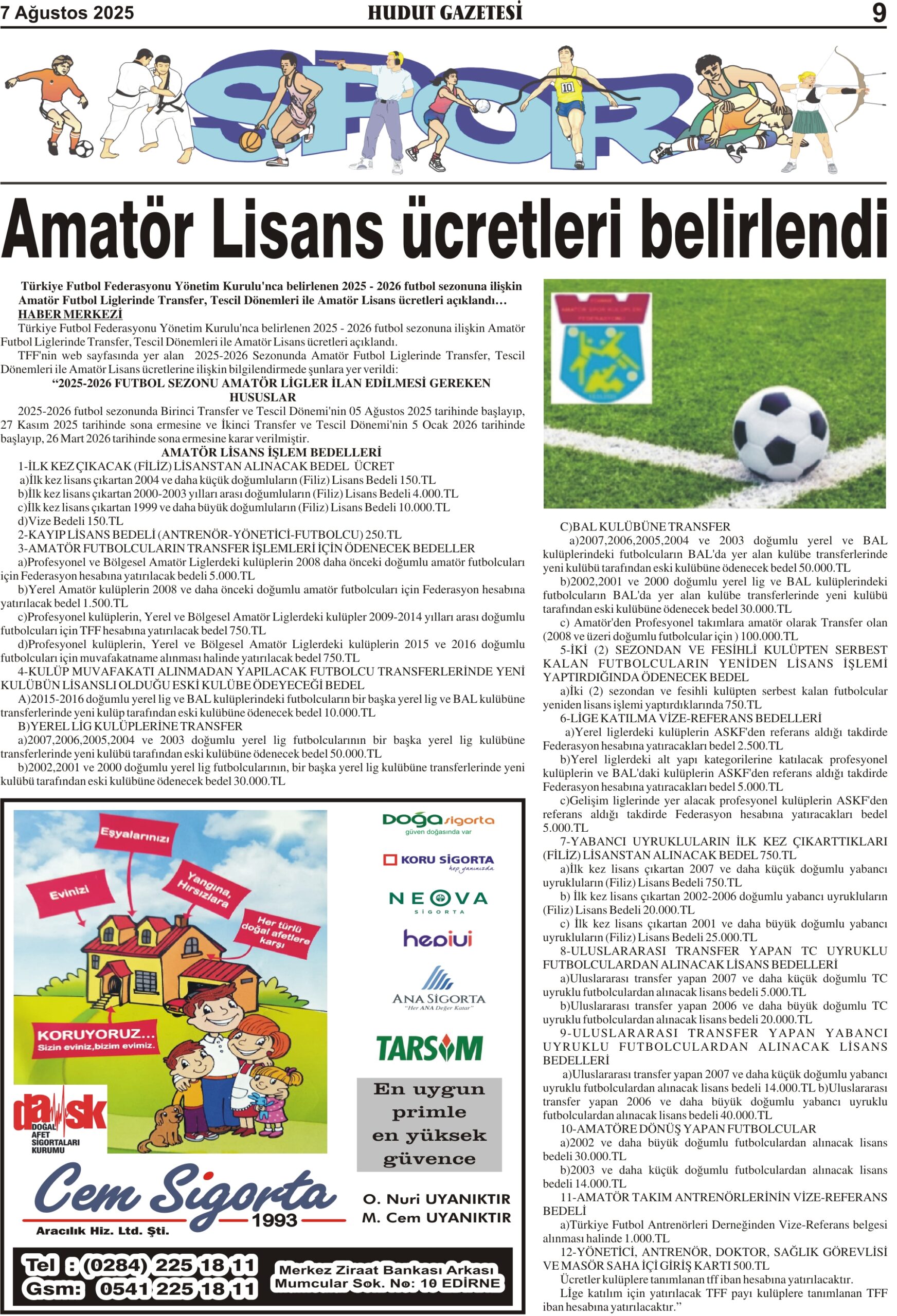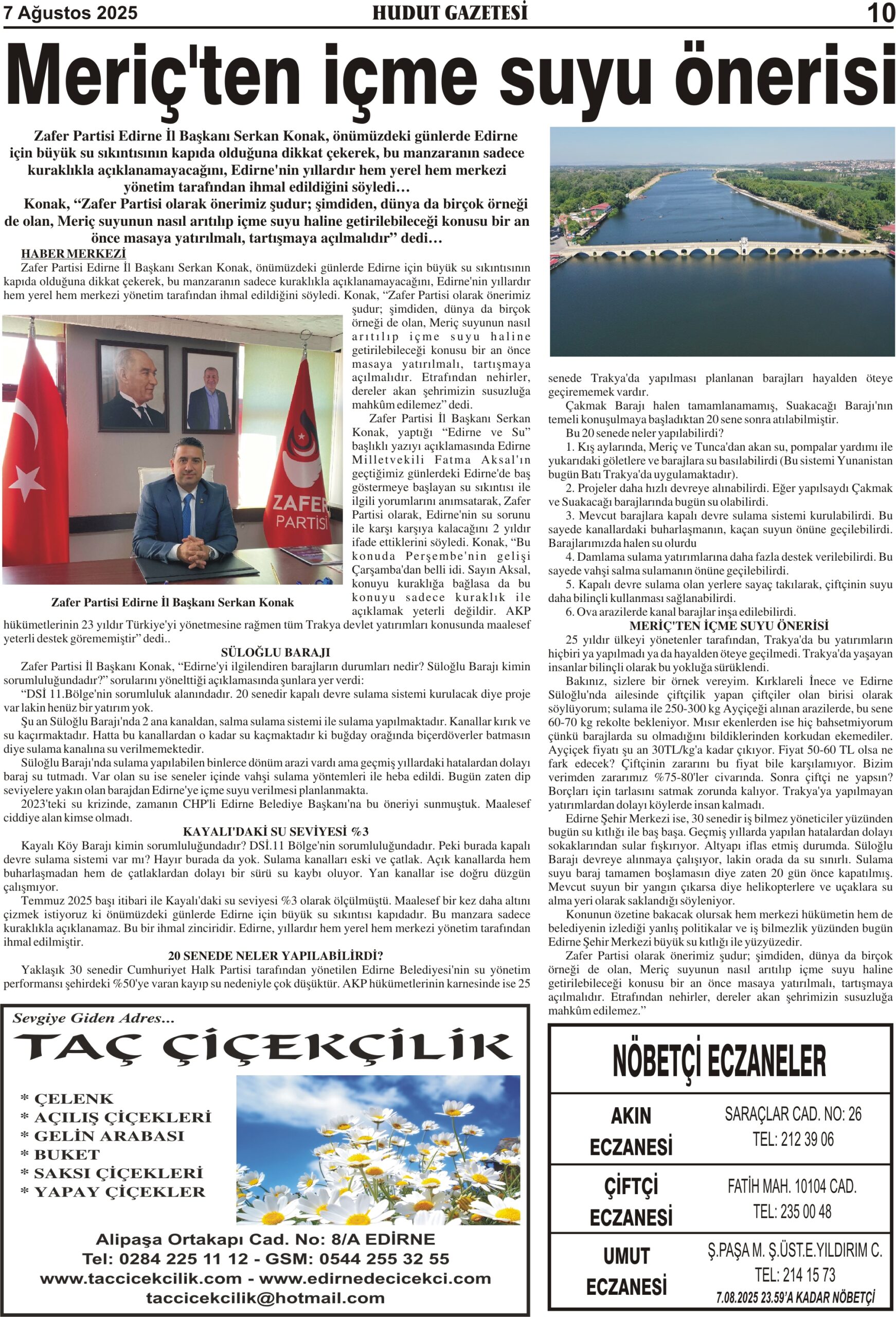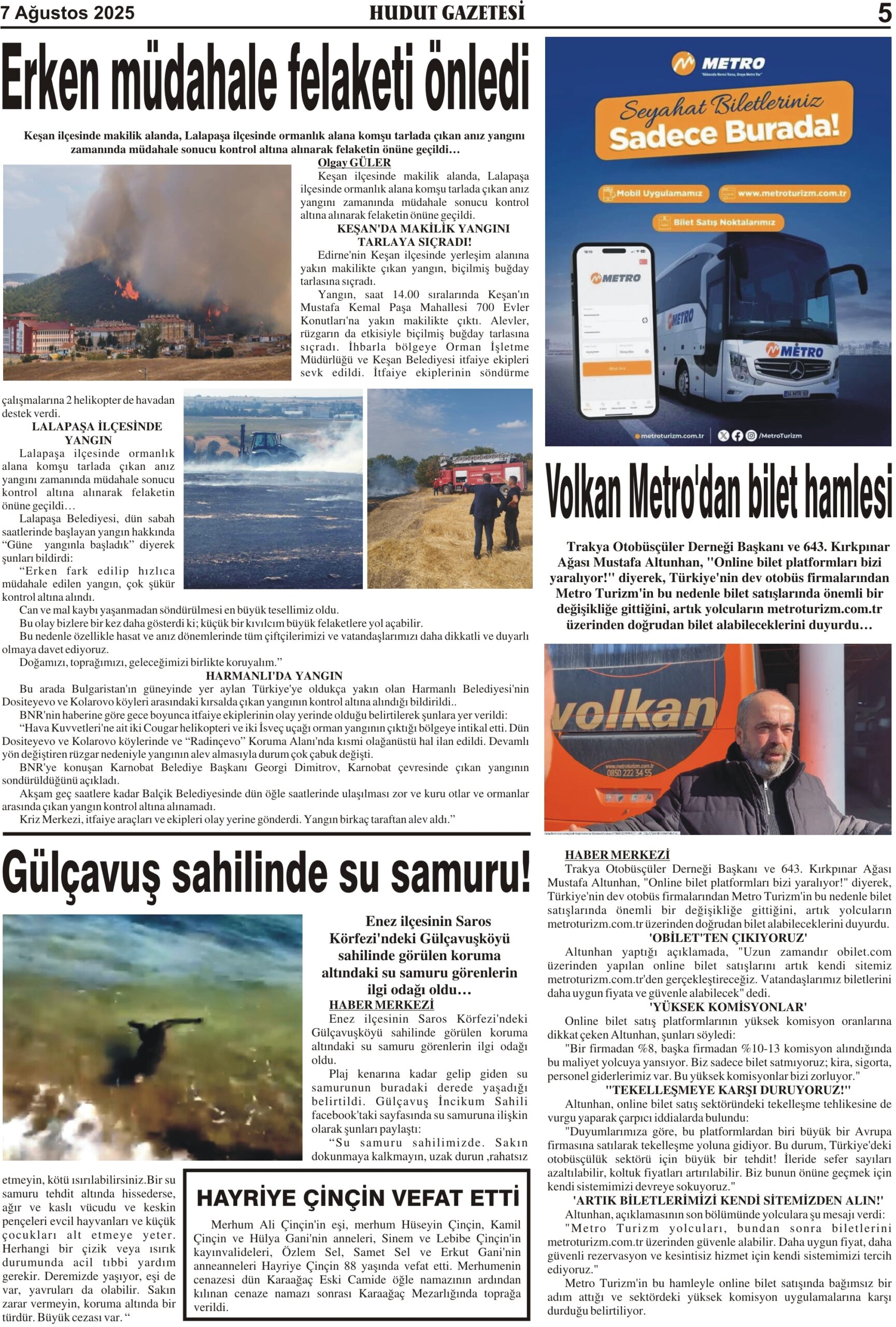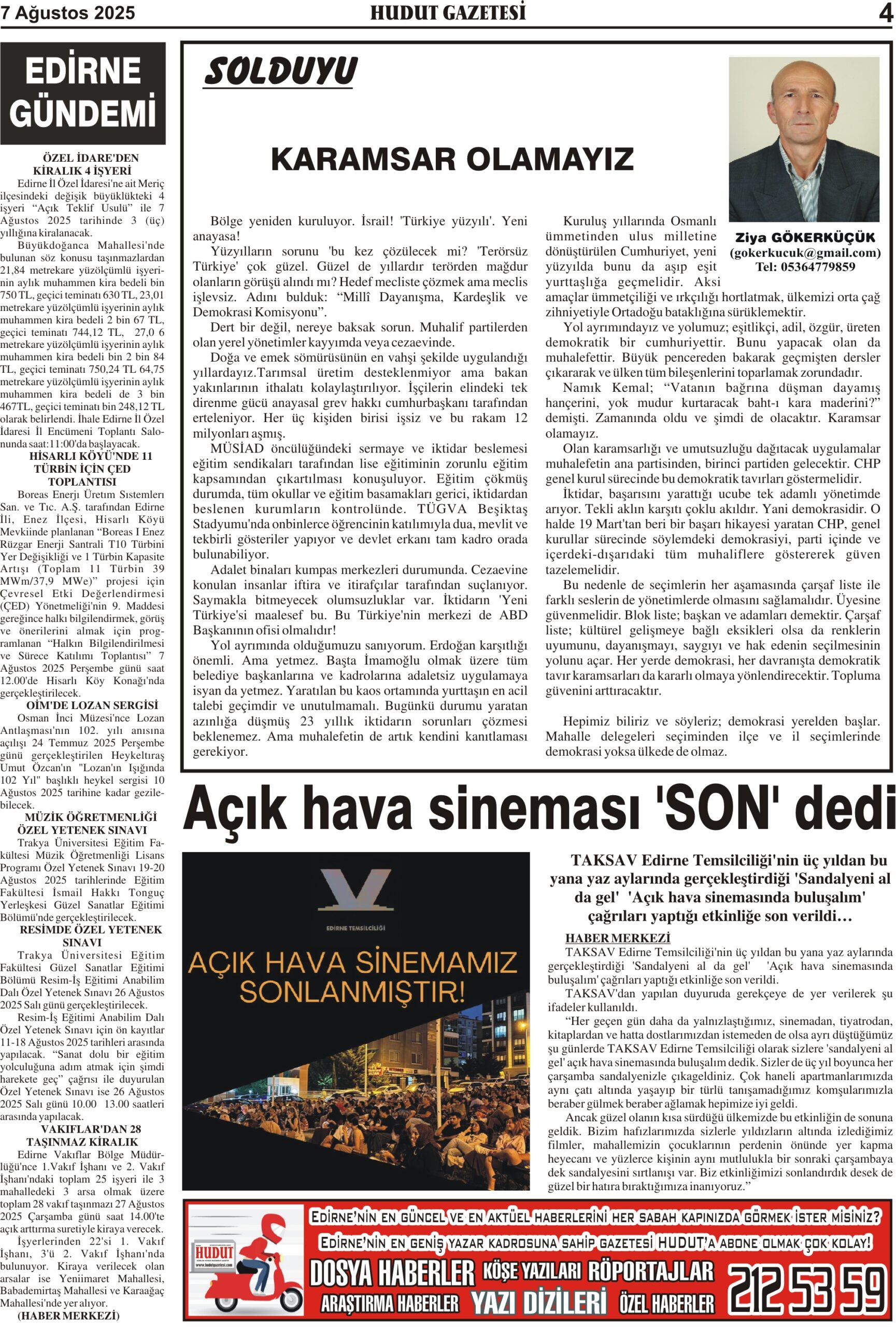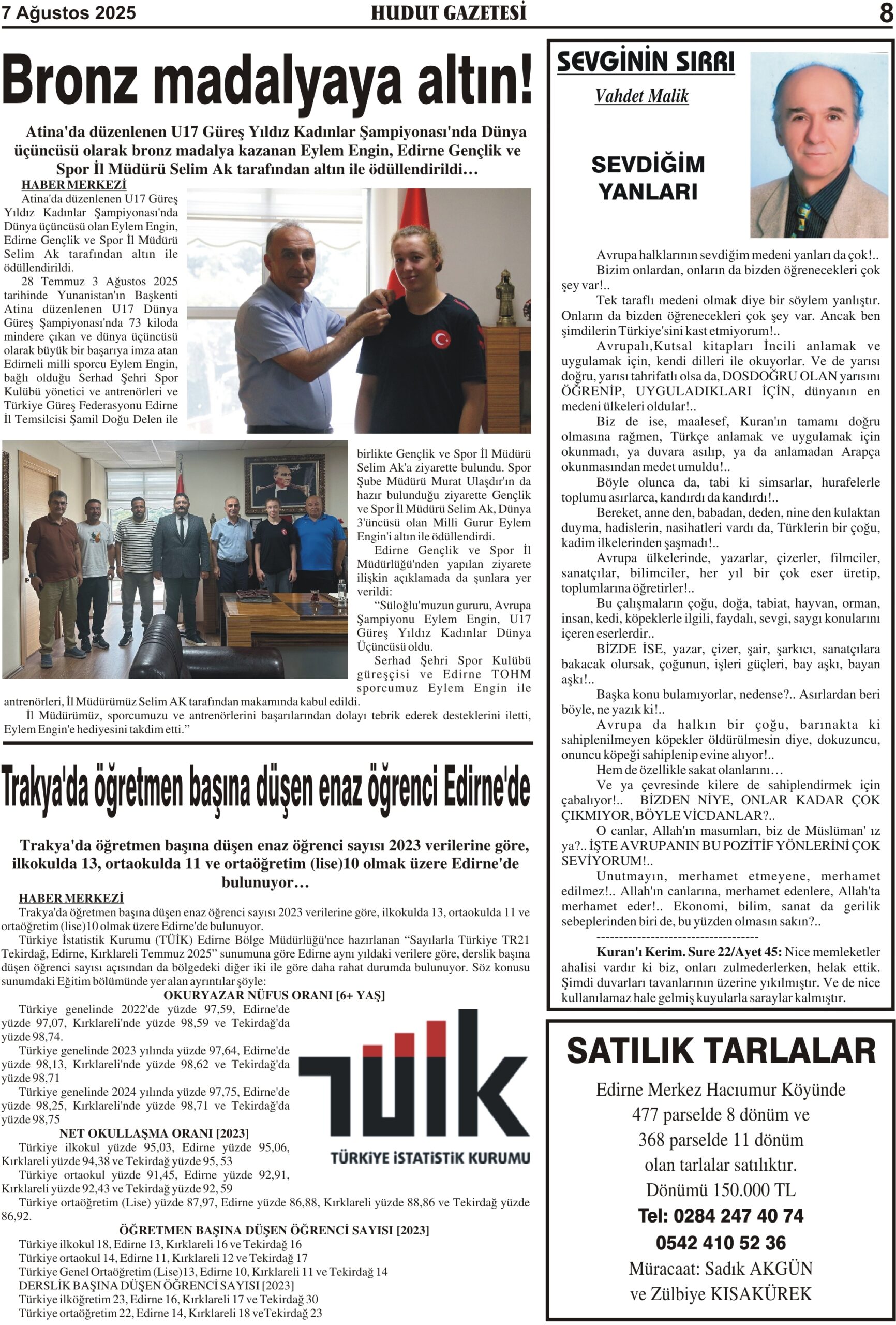 7 Ağustos 2025 Perşembe Hudut Gazetesi