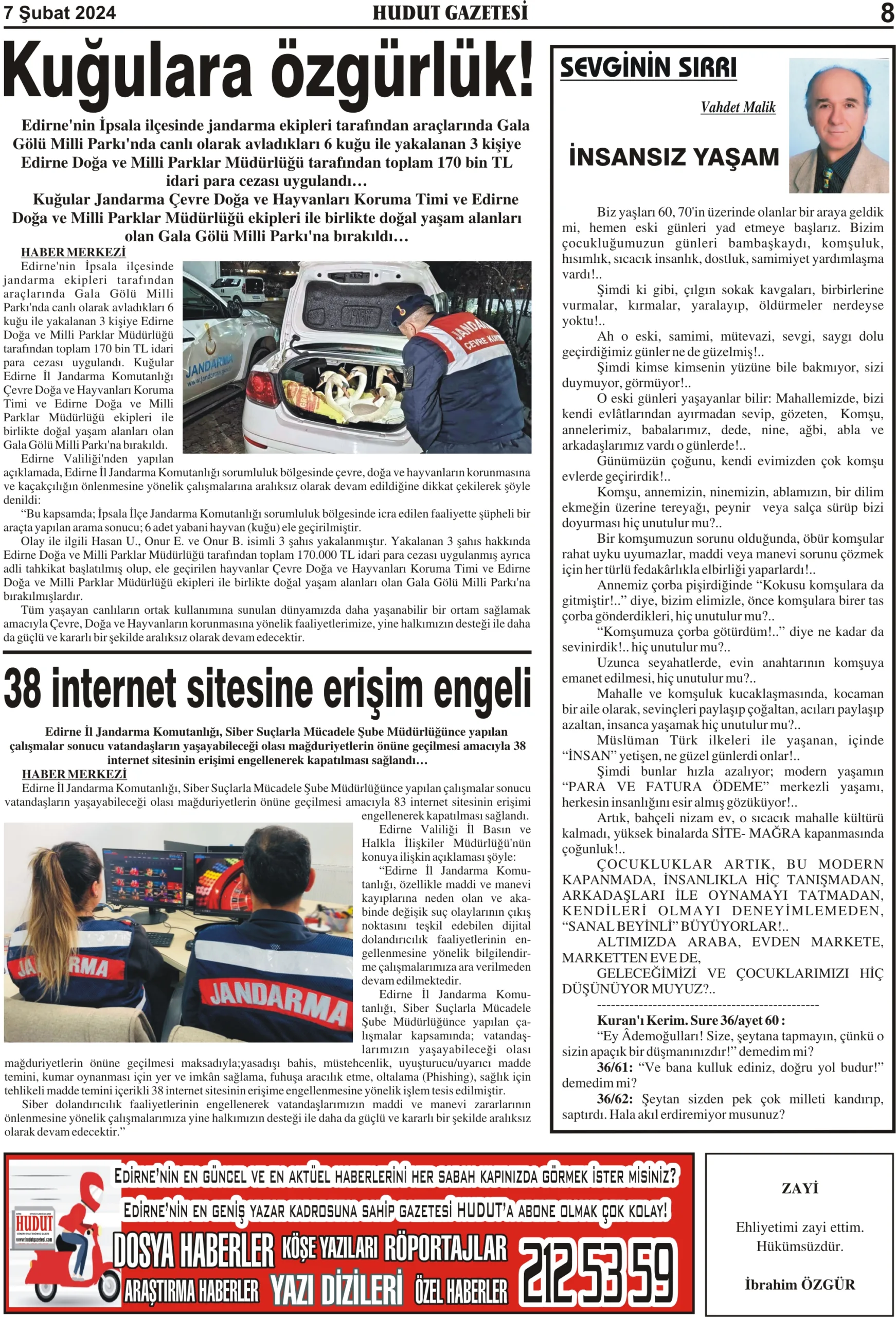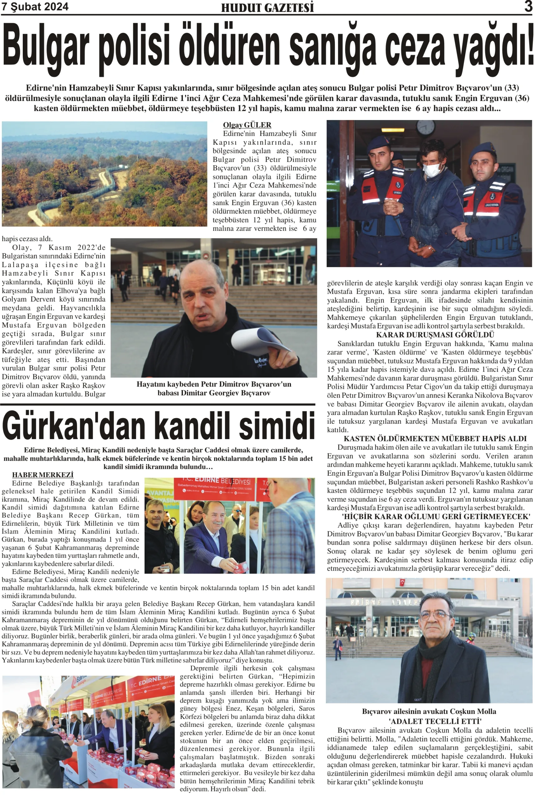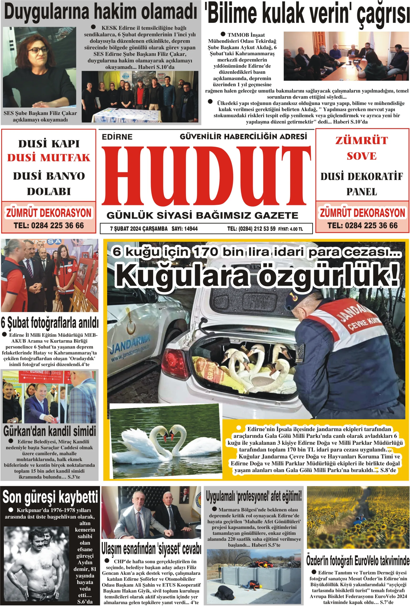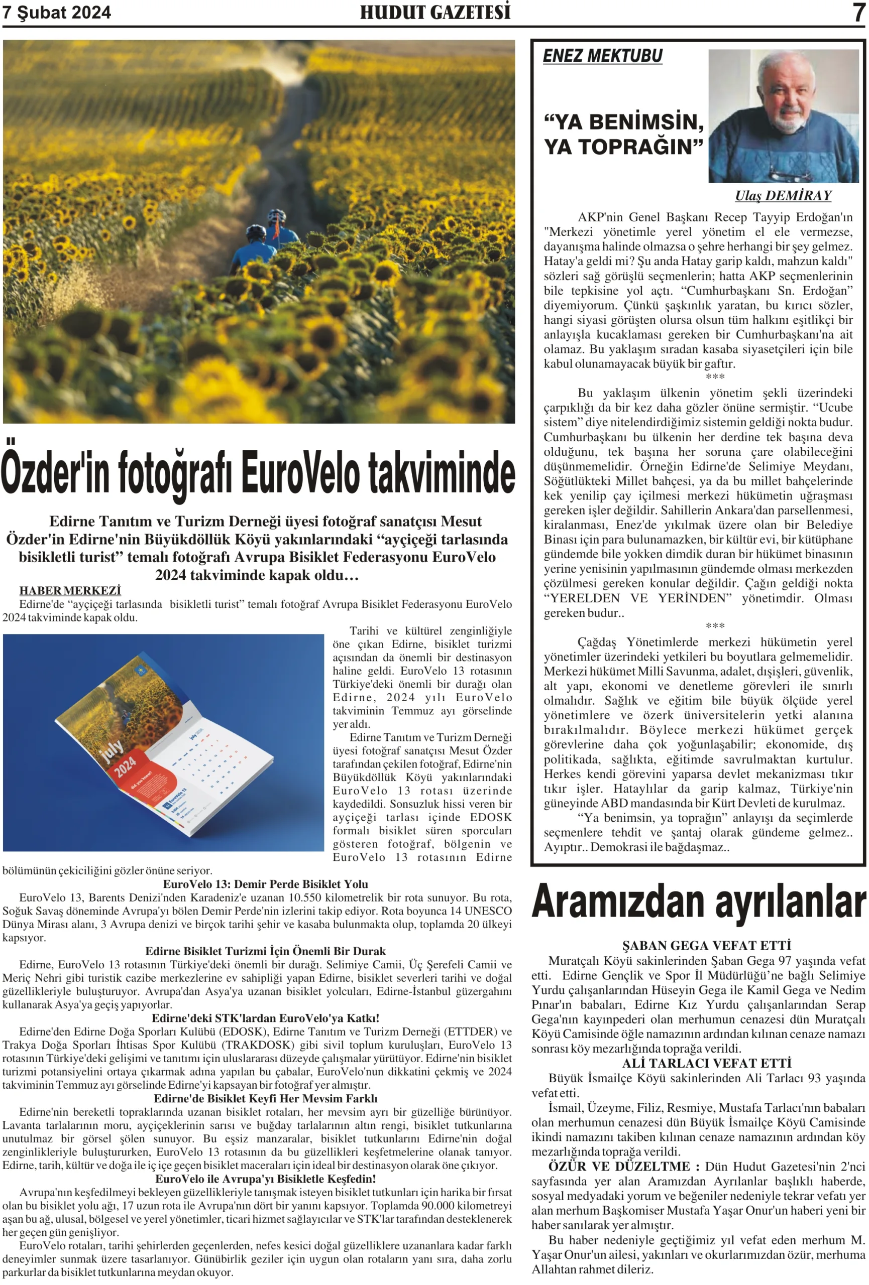 7 Şubat 2024 Çarşamba Hudut Gazetesi
