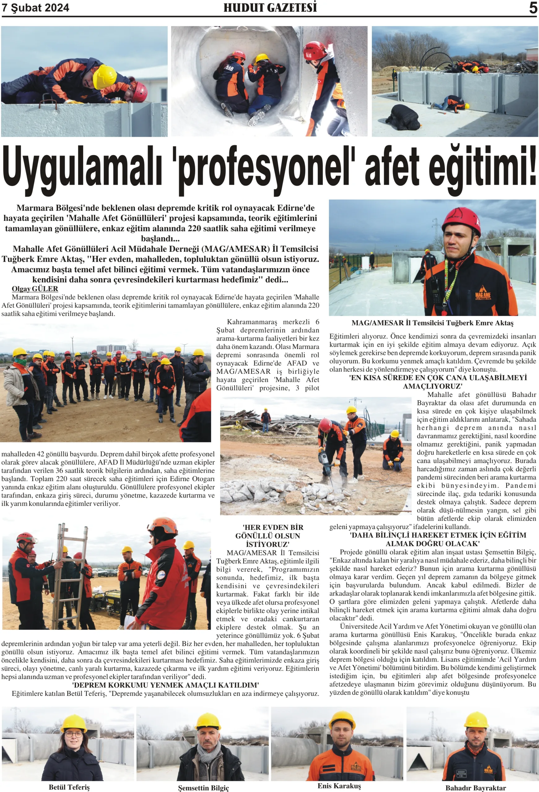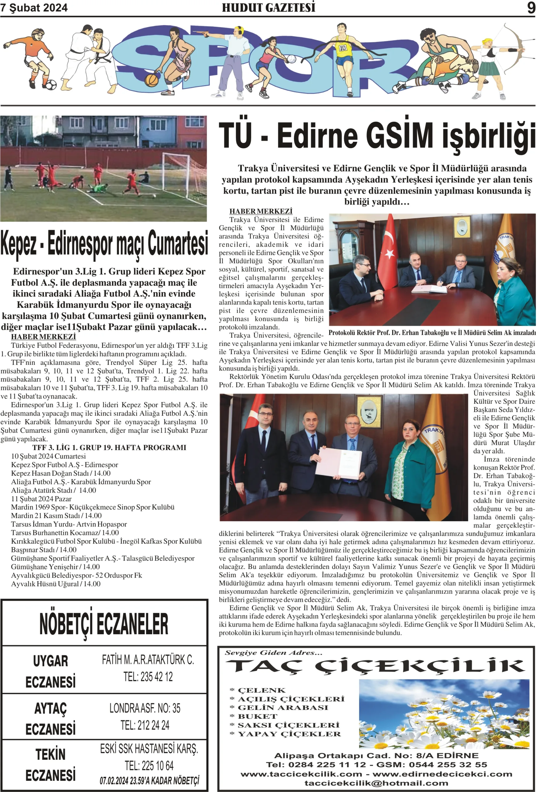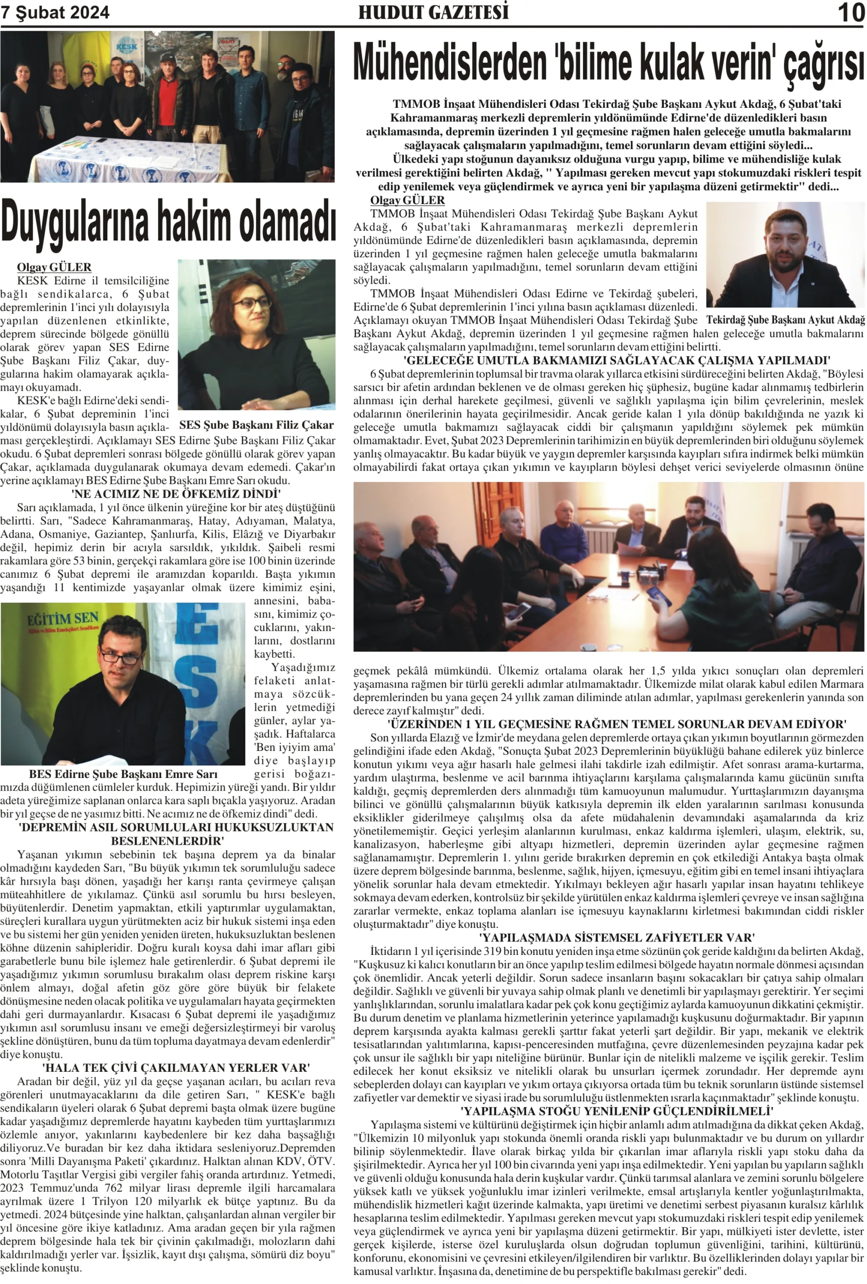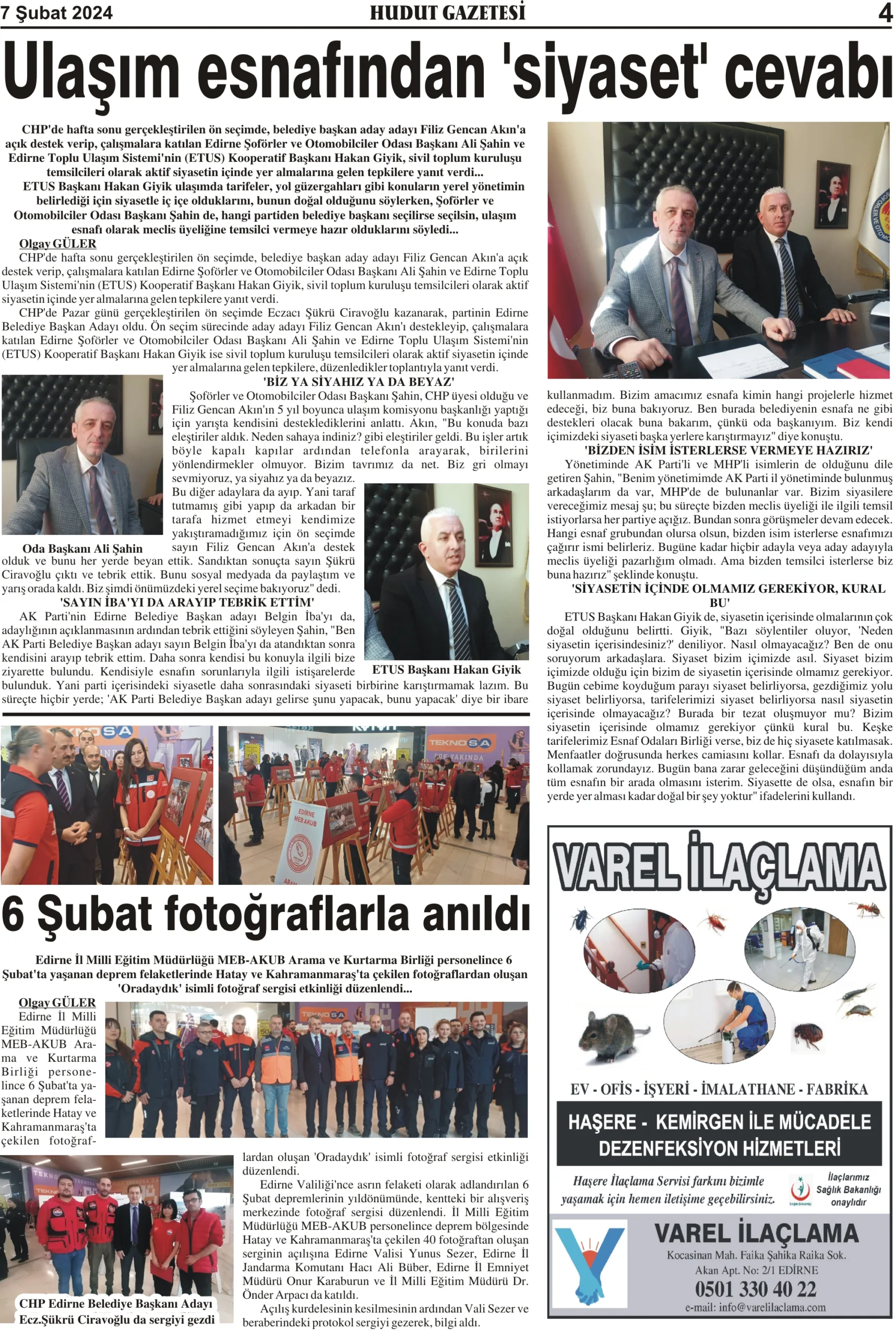7 Şubat 2024 Çarşamba Hudut Gazetesi