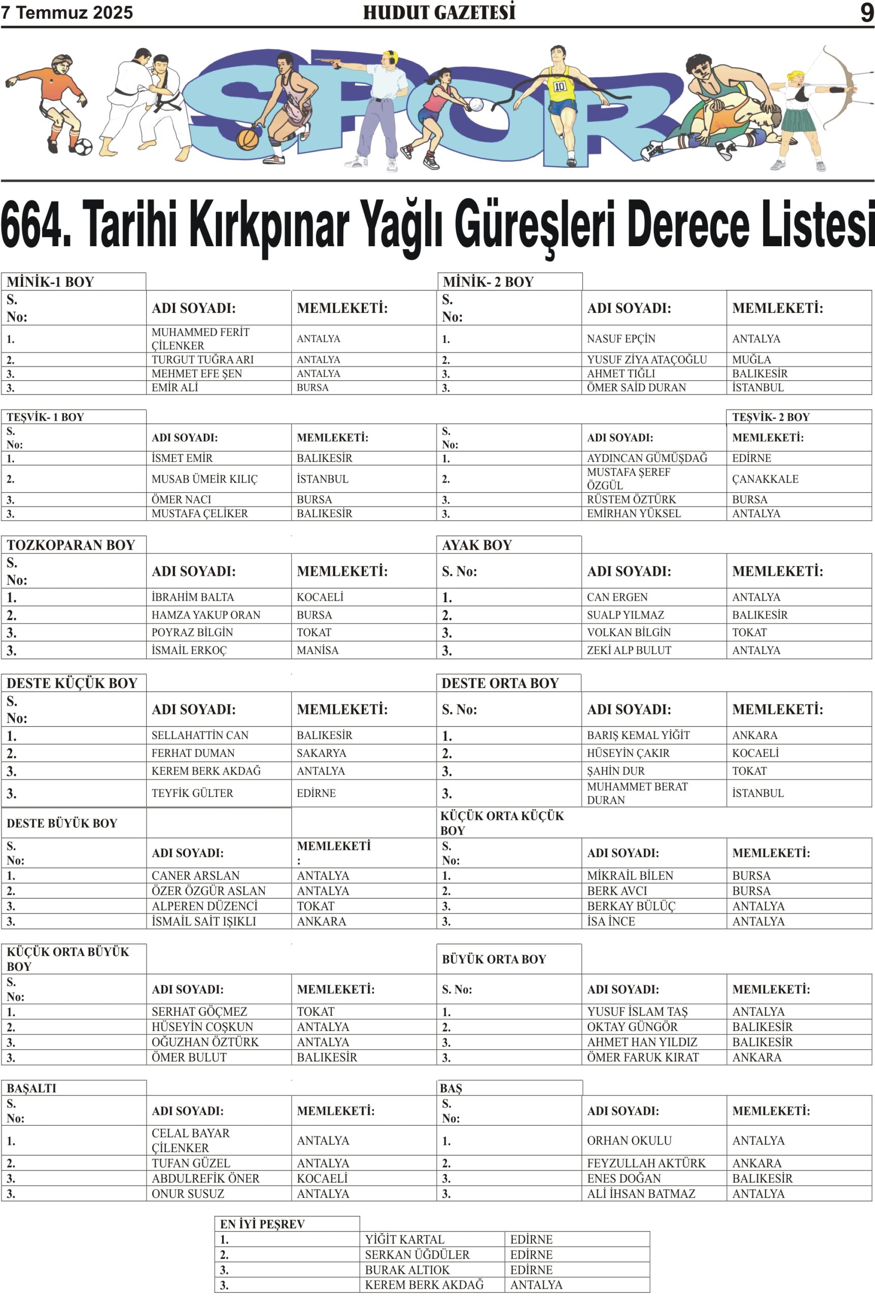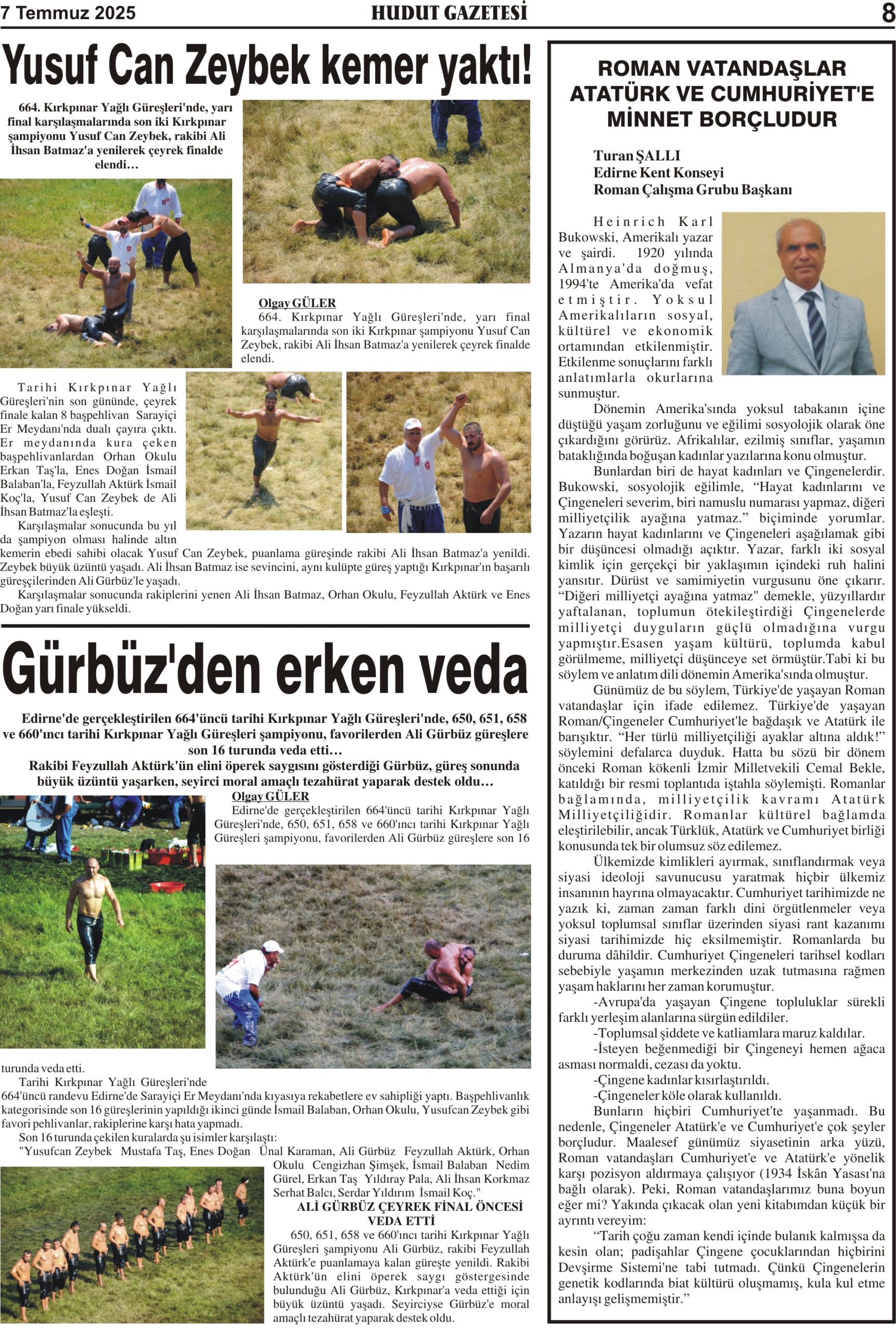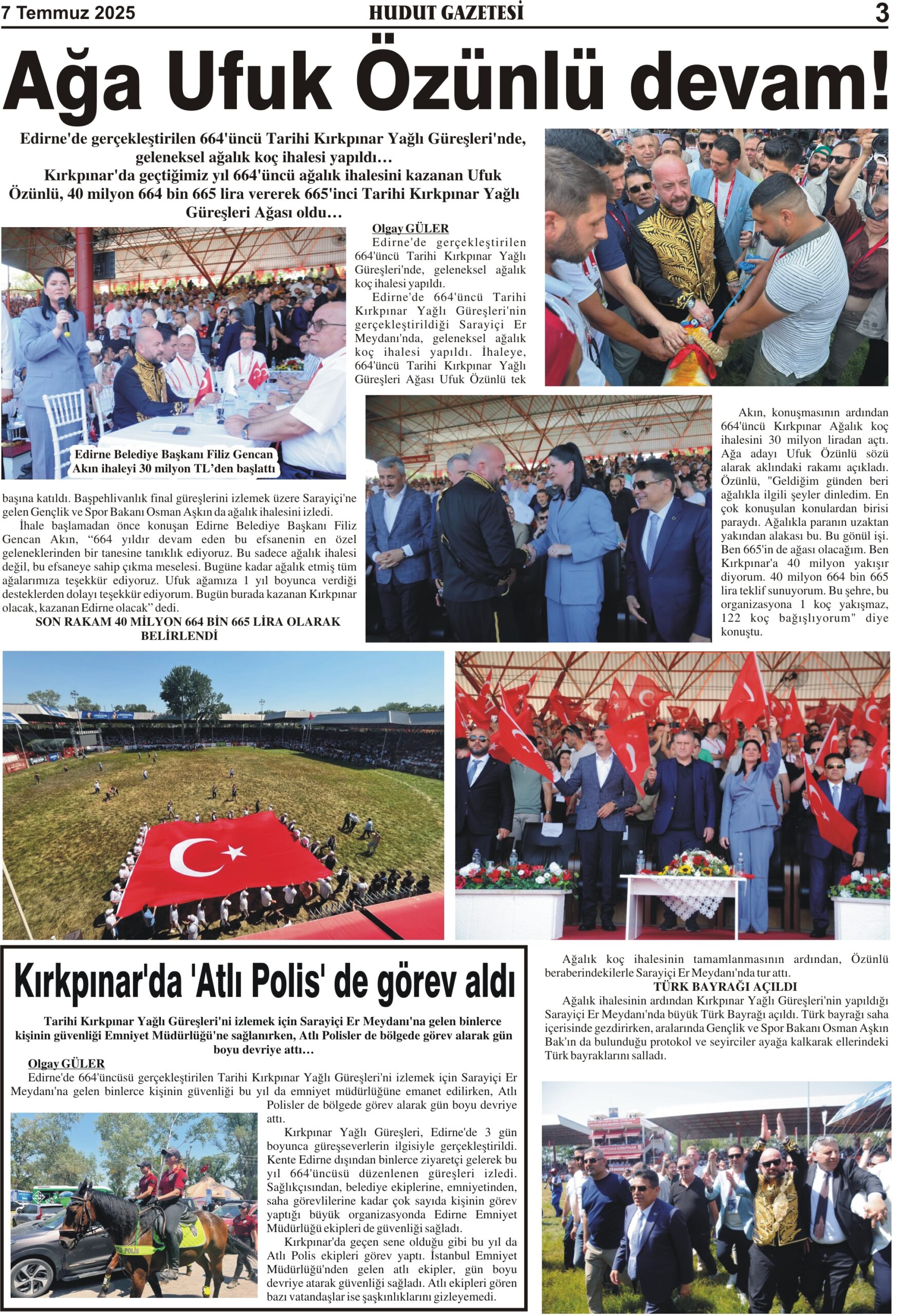7 Temmuz 2025 Pazartesi Hudut Gazetesi