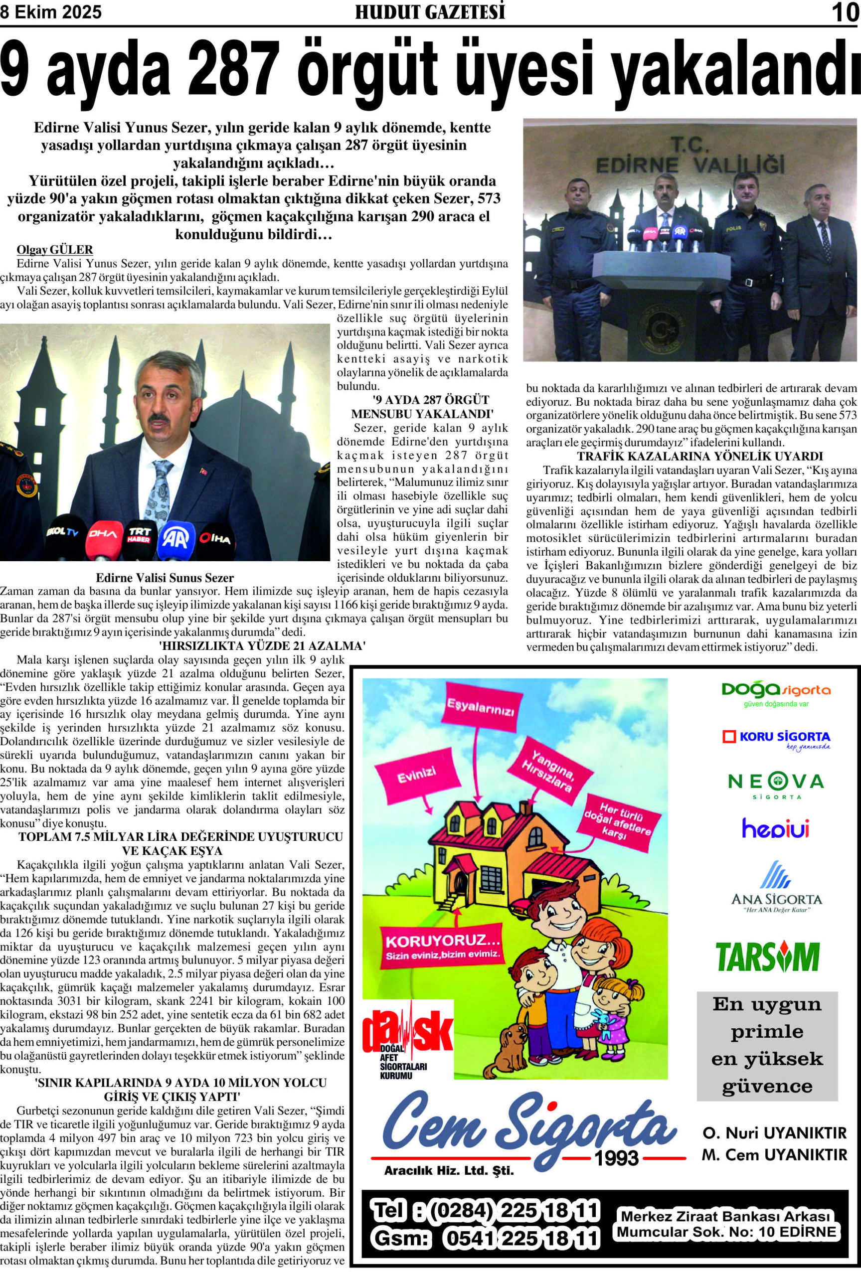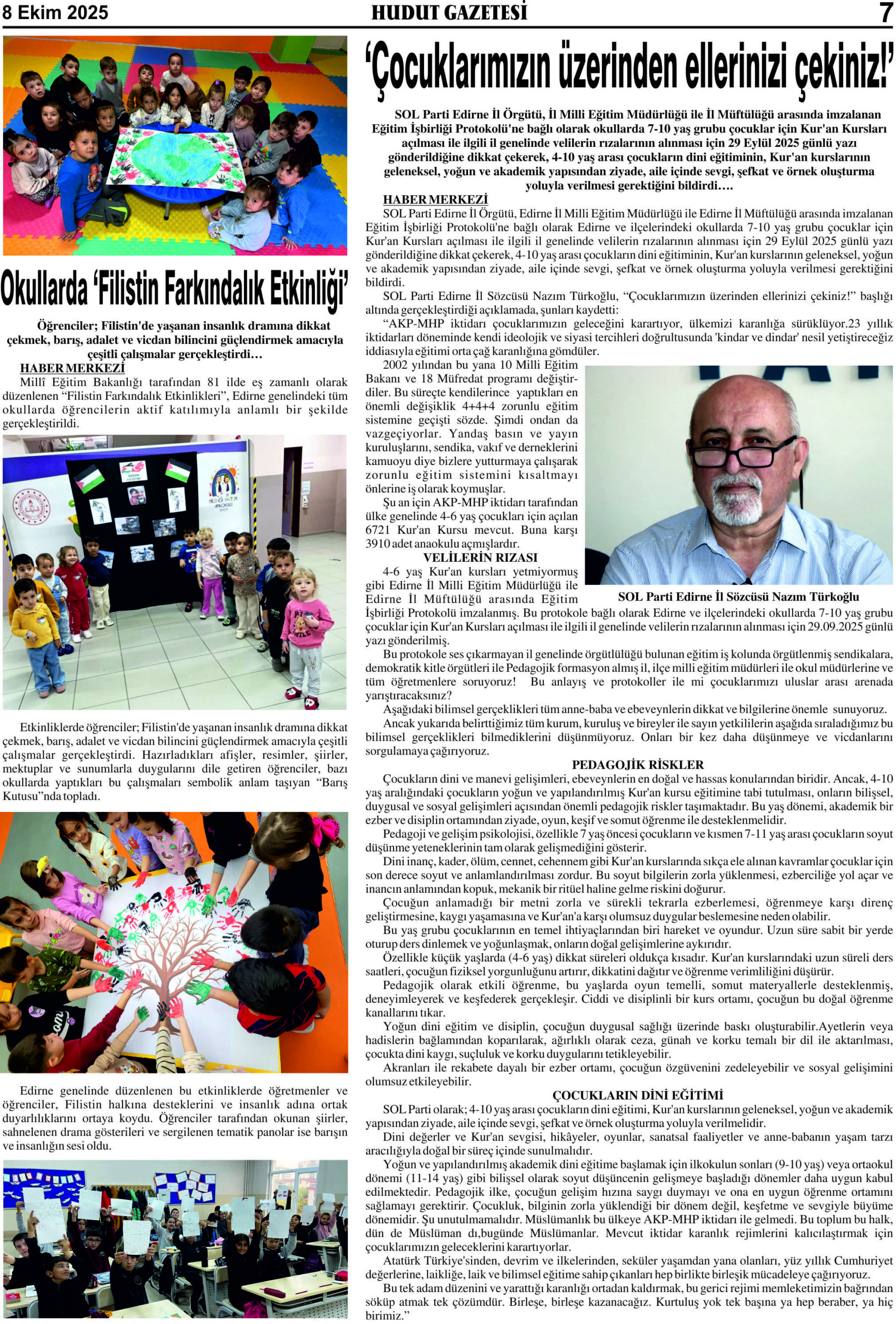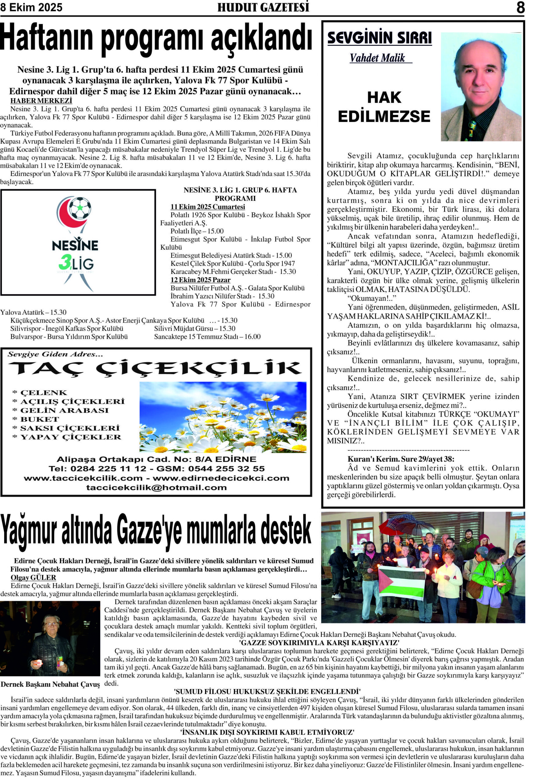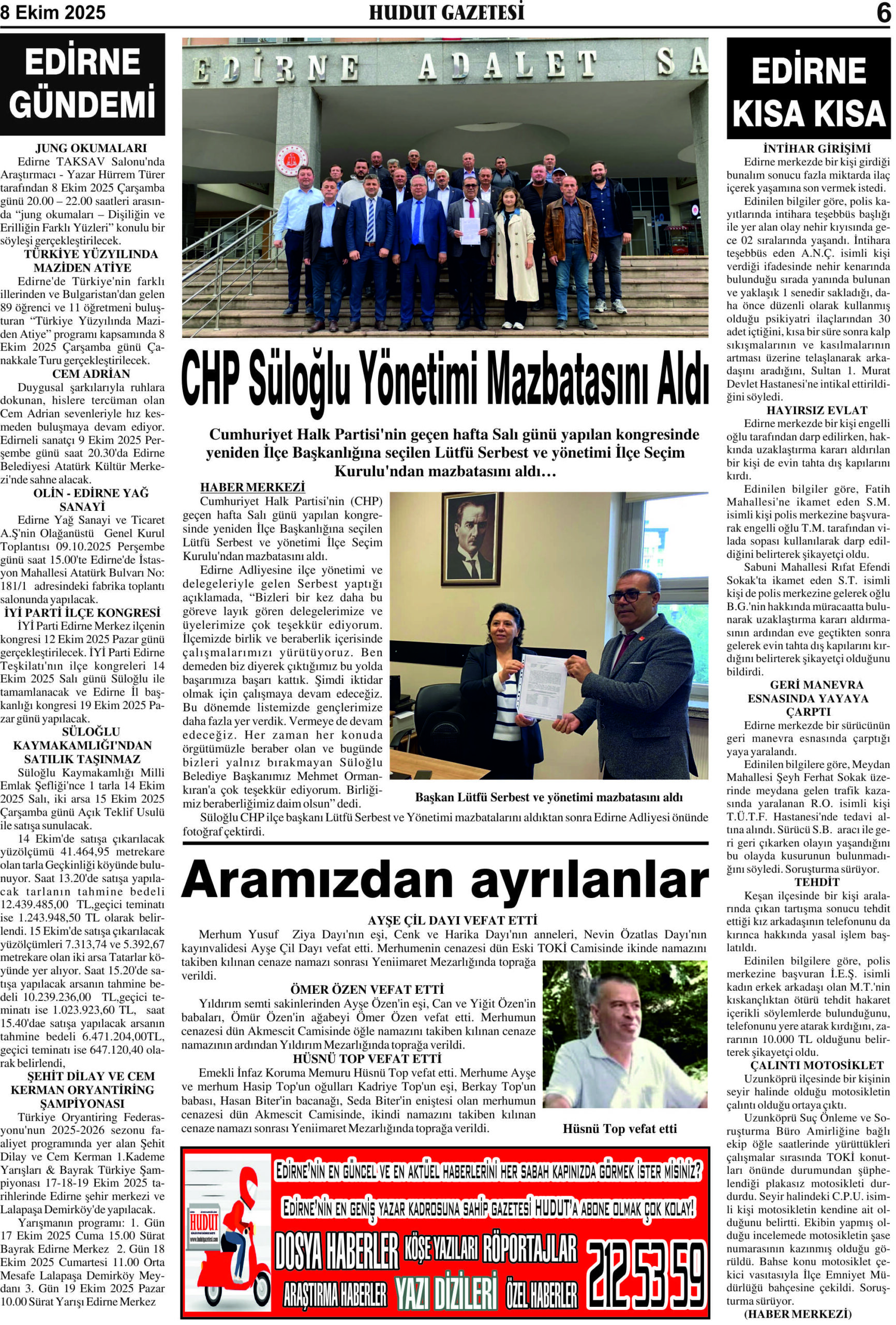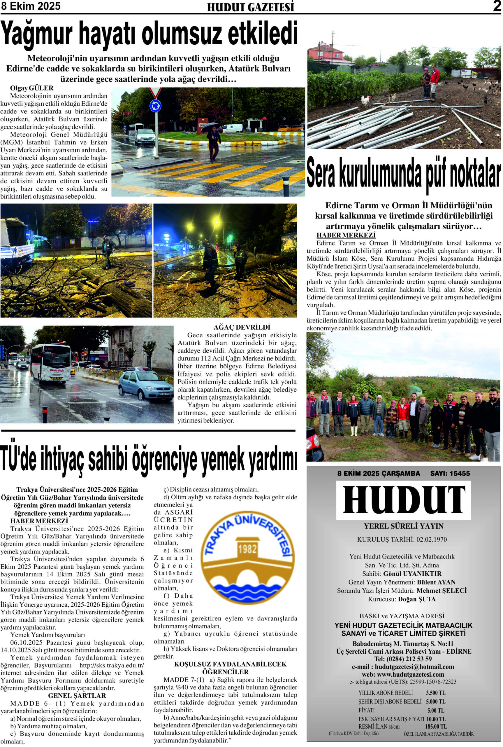 8 Ekim 2025 Çarşamba Hudut Gazetesi