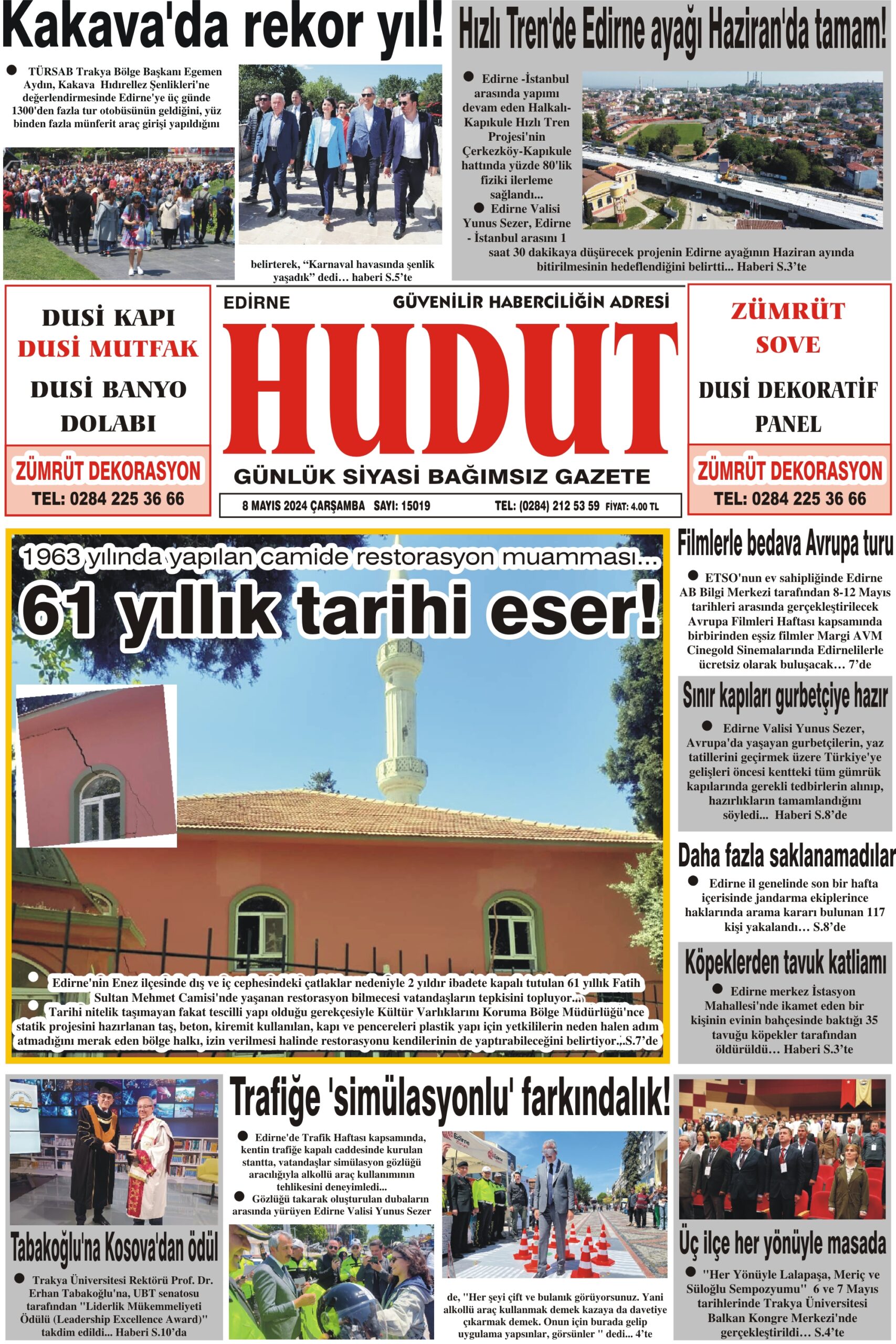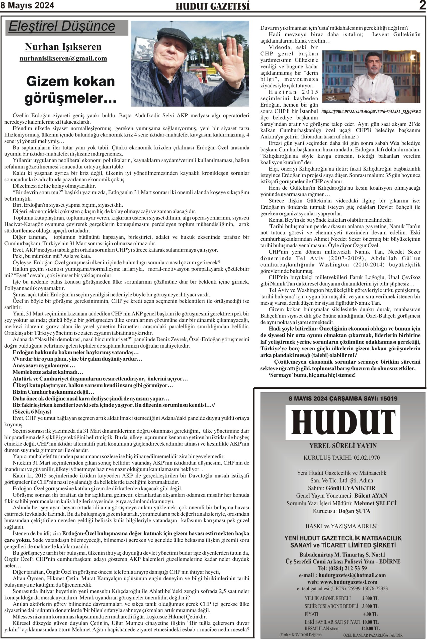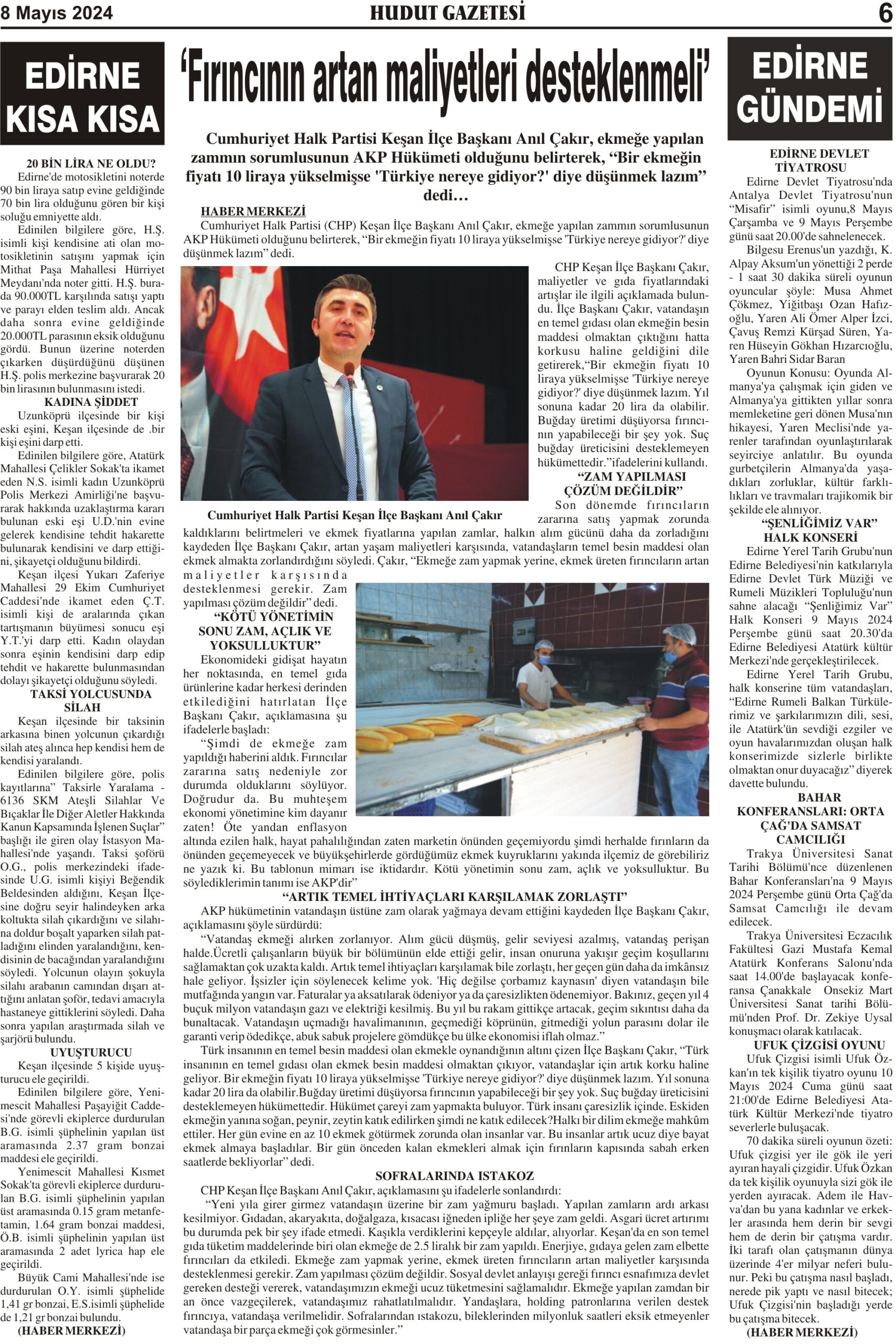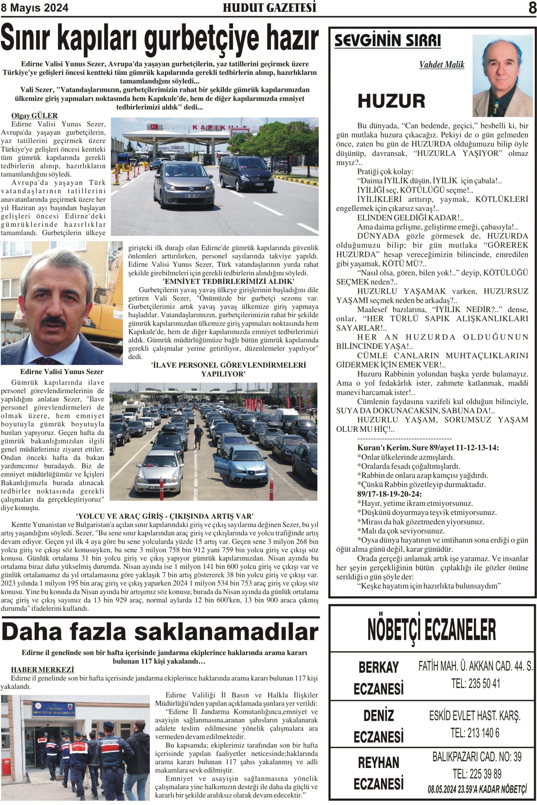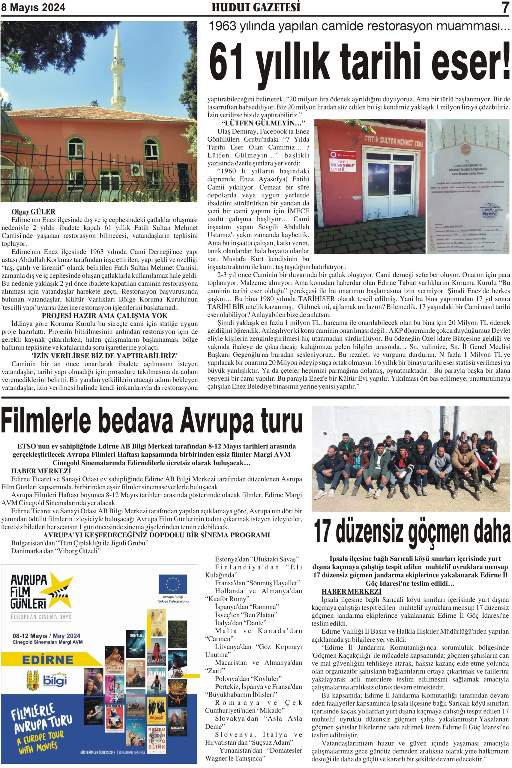 8 Mayıs 2024 Çarşamba Hudut Gazetesi