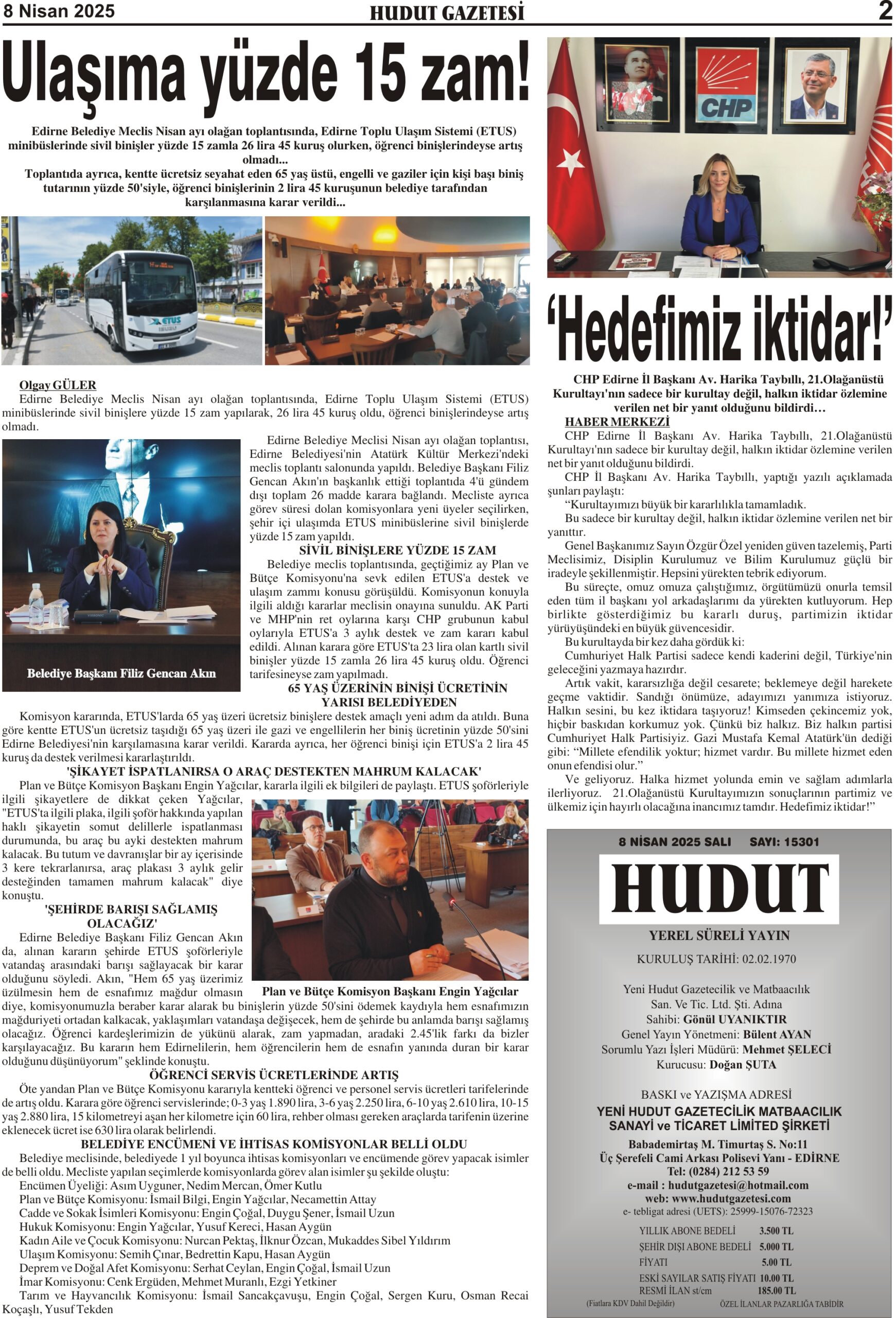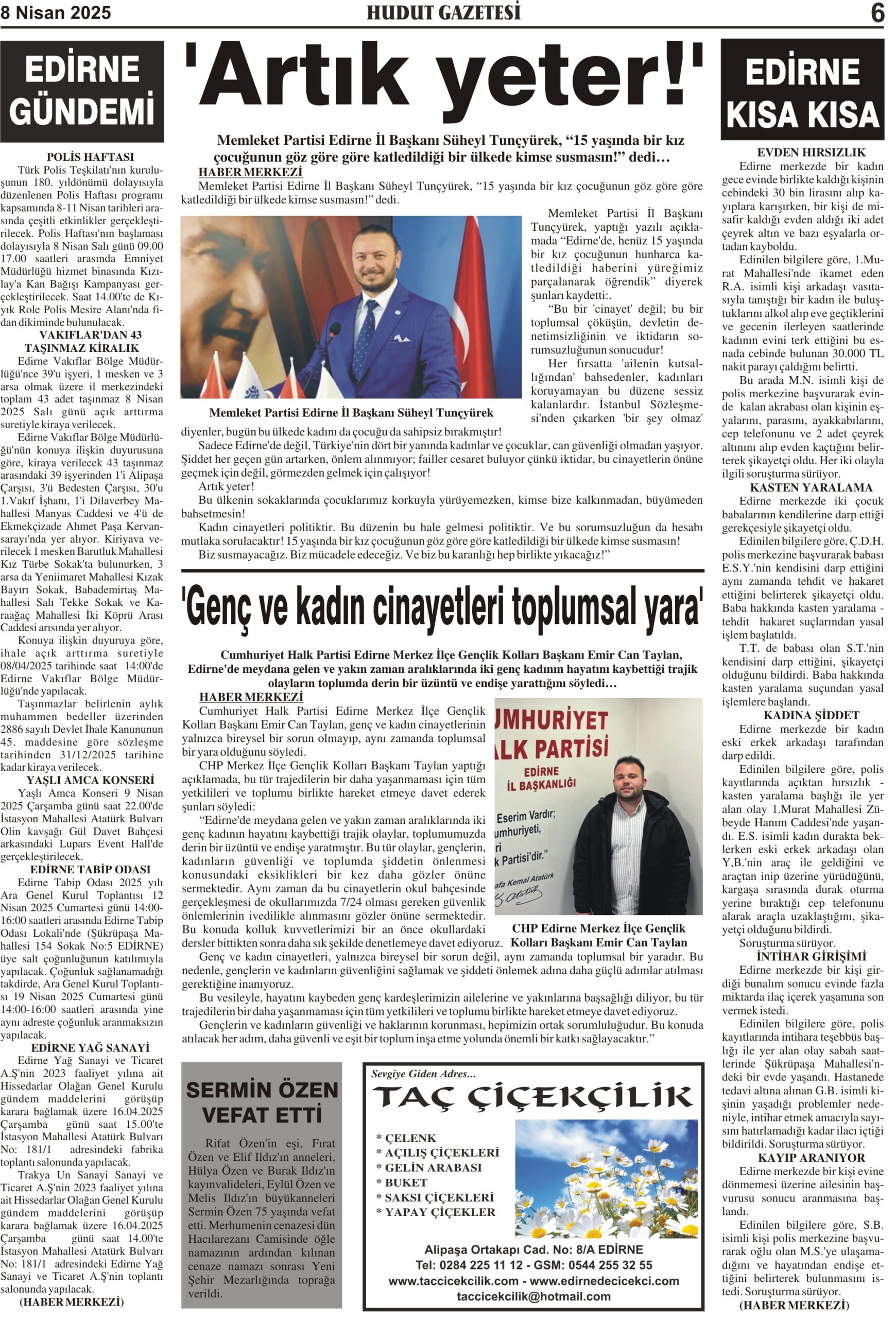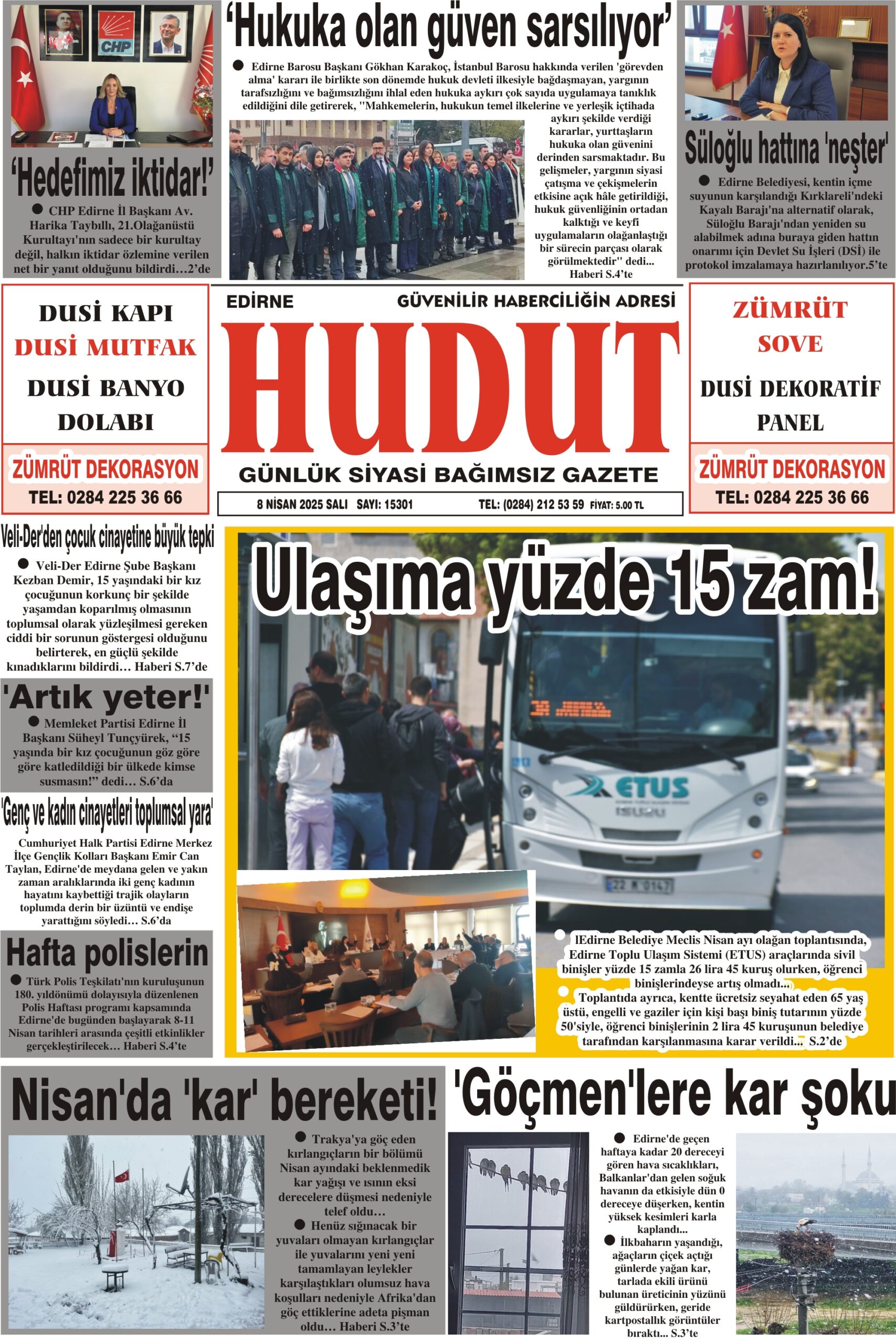 8 Nisan 2025 Salı Hudut Gazetesi