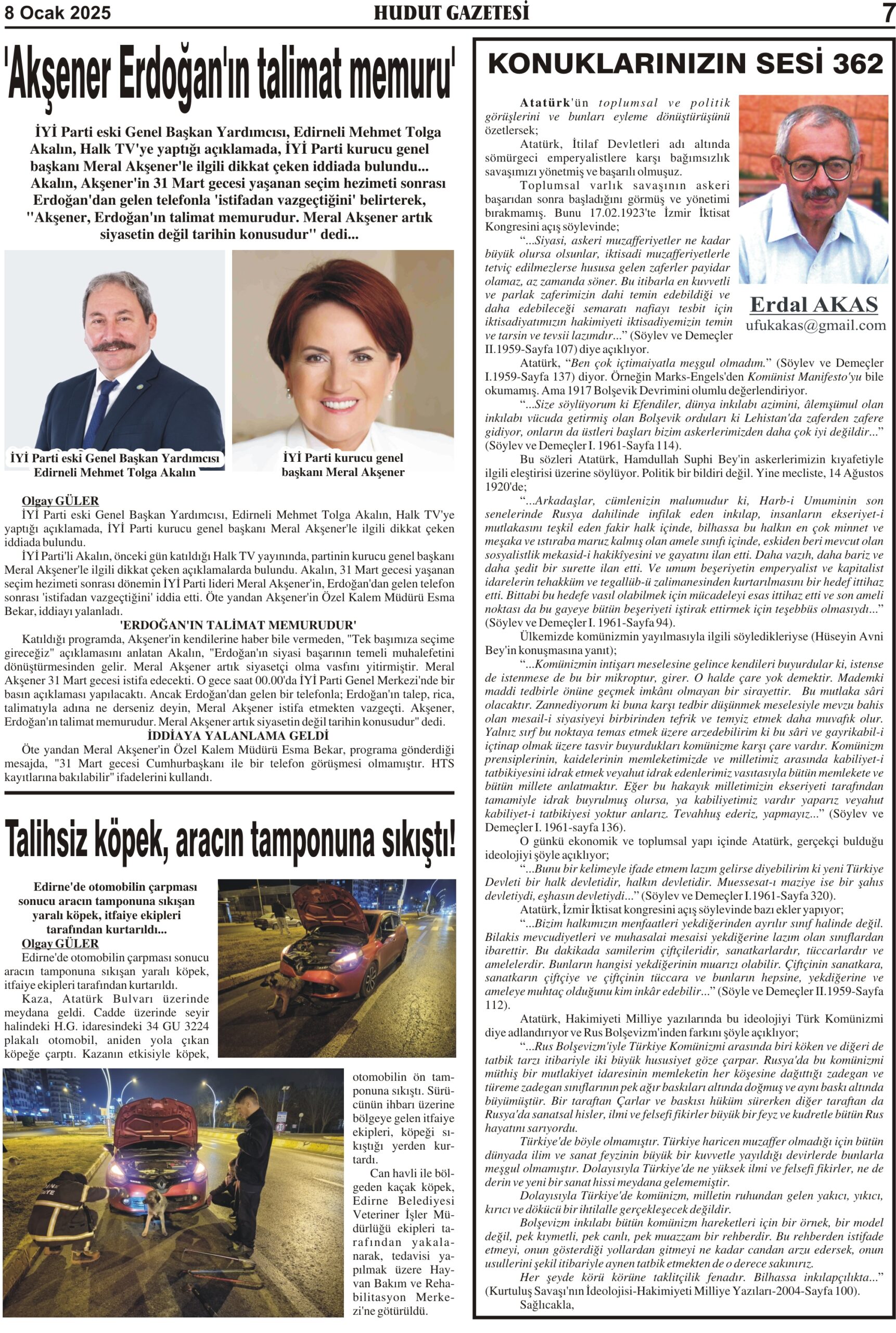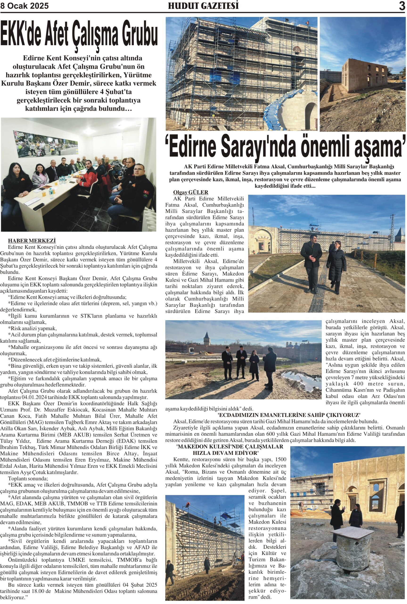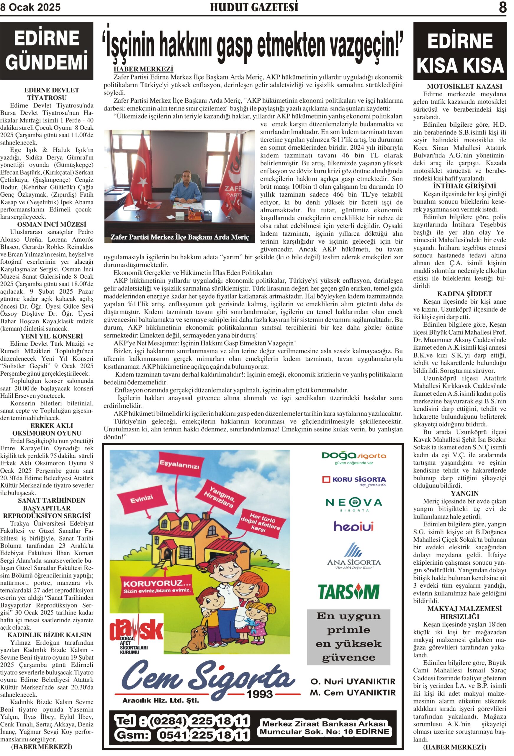 8 Ocak 2024 Çarşamba Hudut Gazetesi