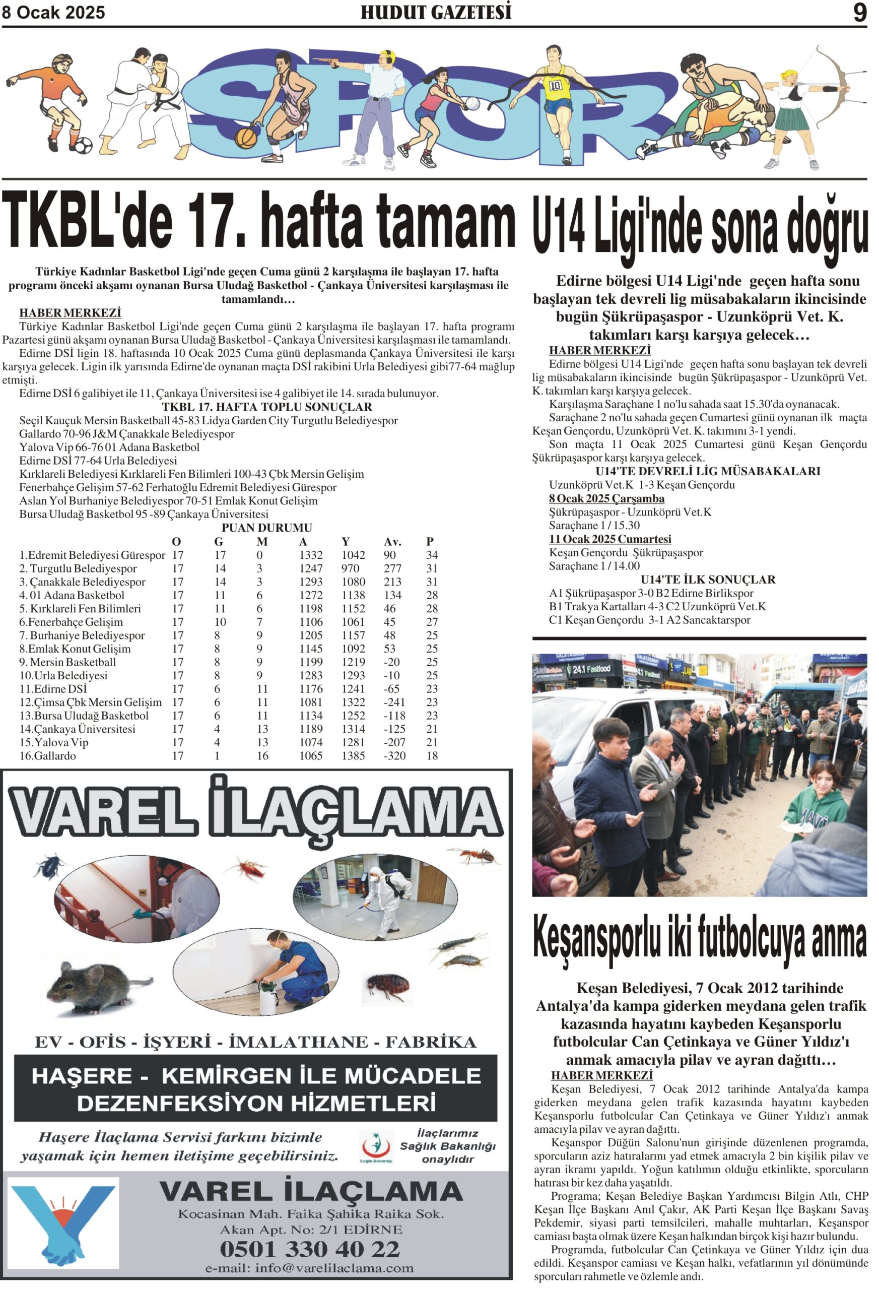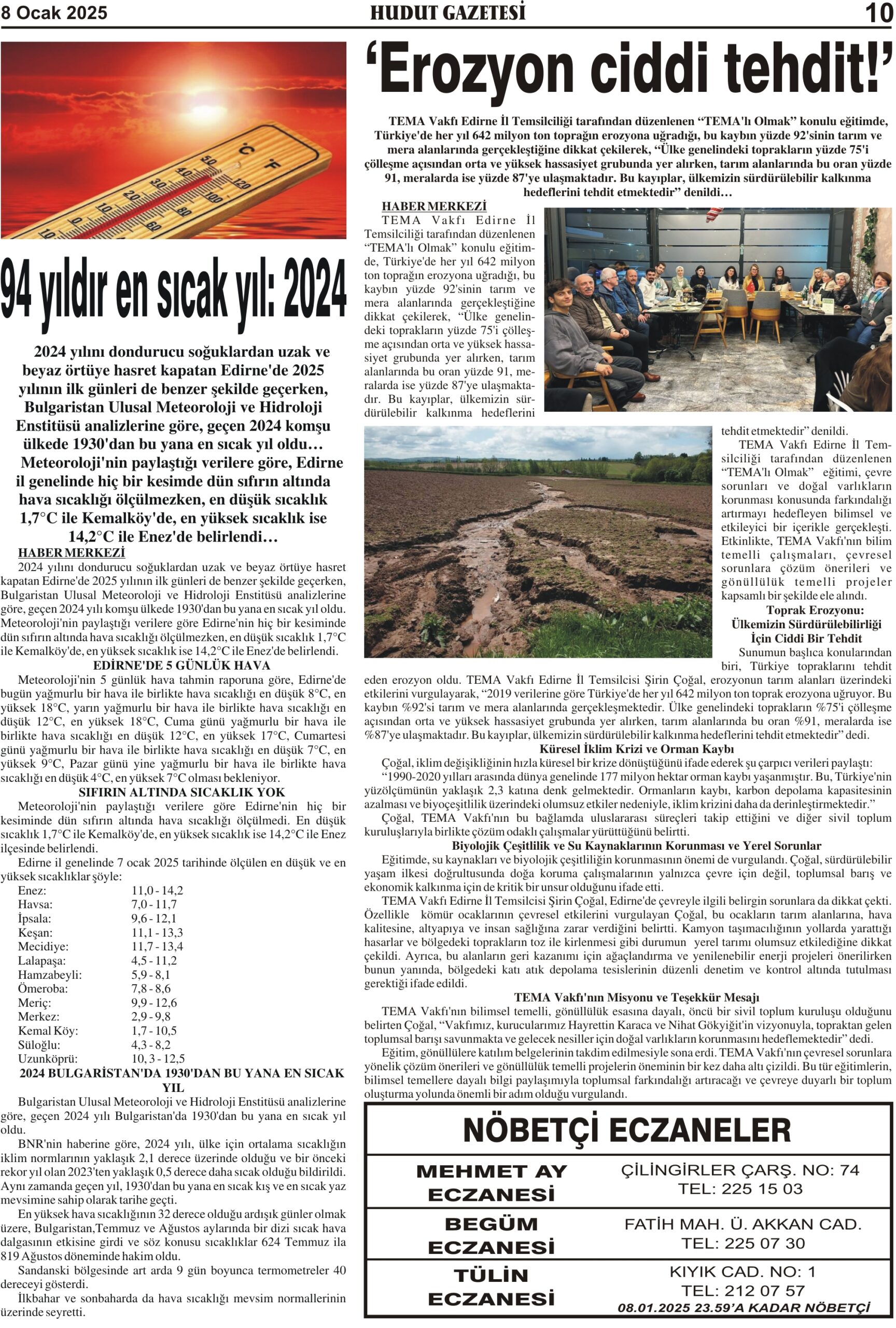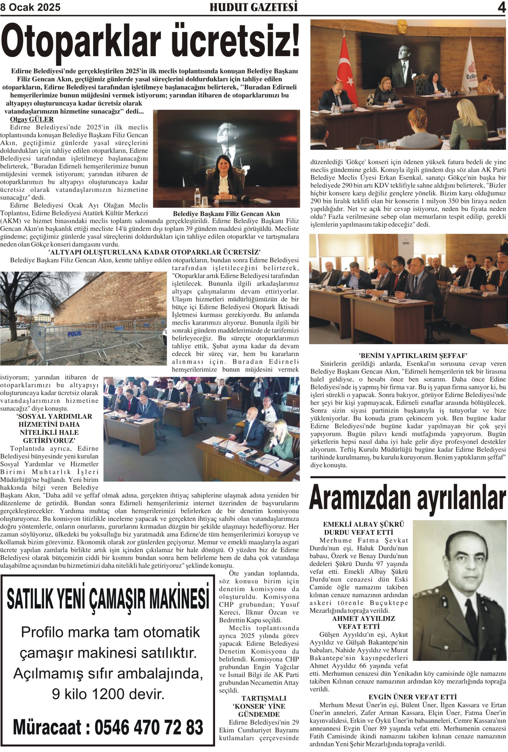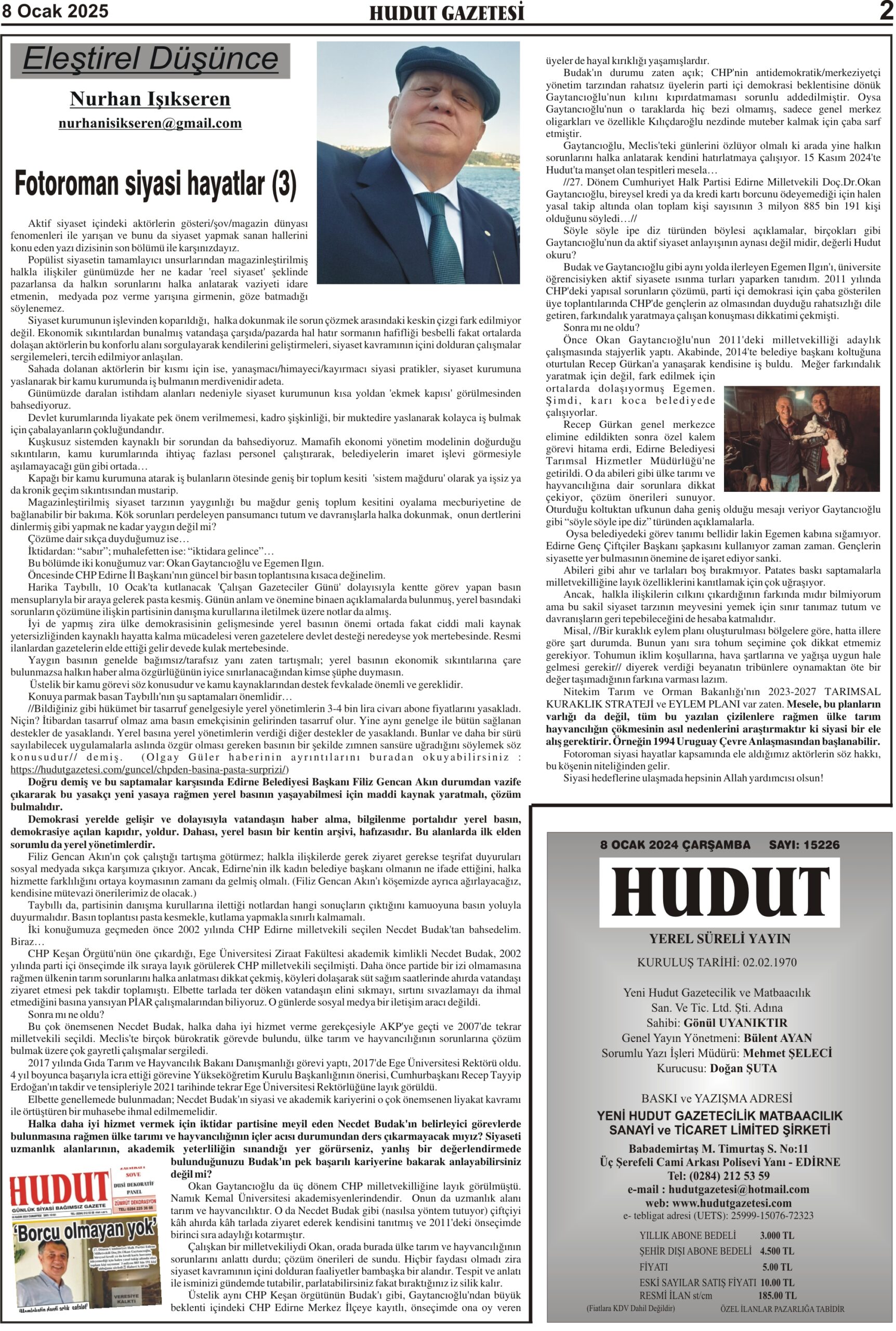 8 Ocak 2024 Çarşamba Hudut Gazetesi