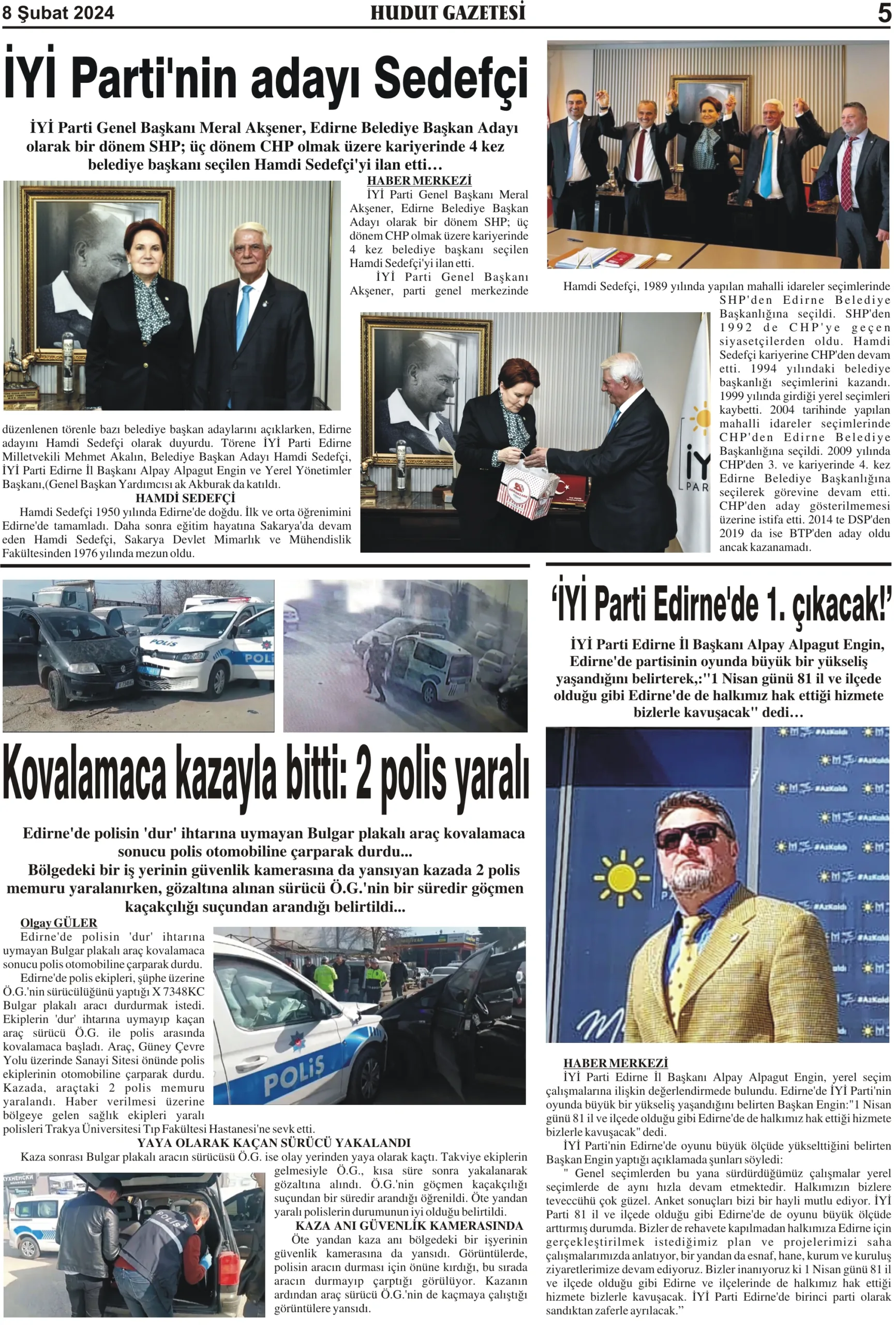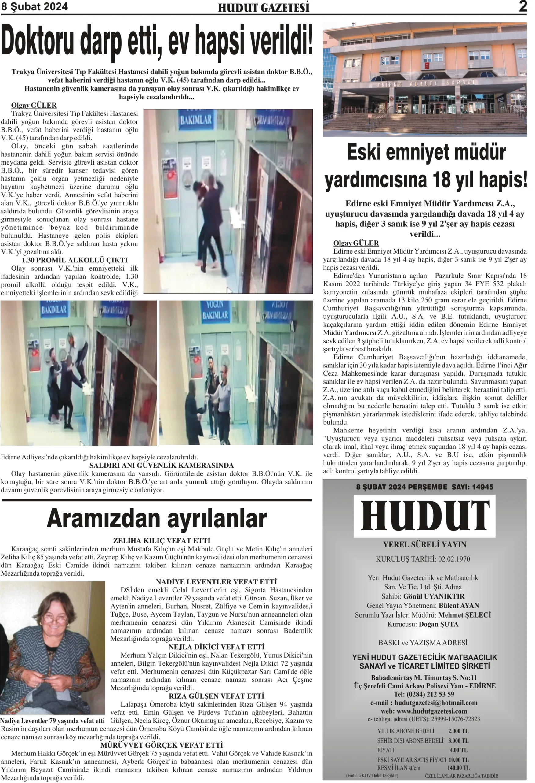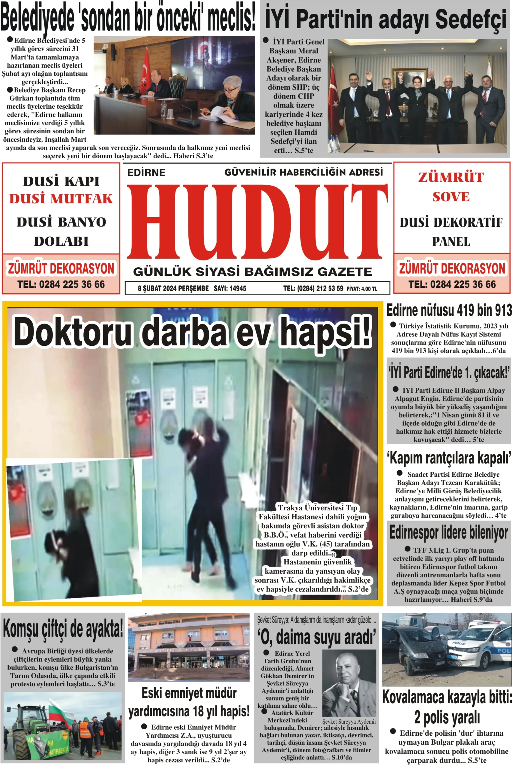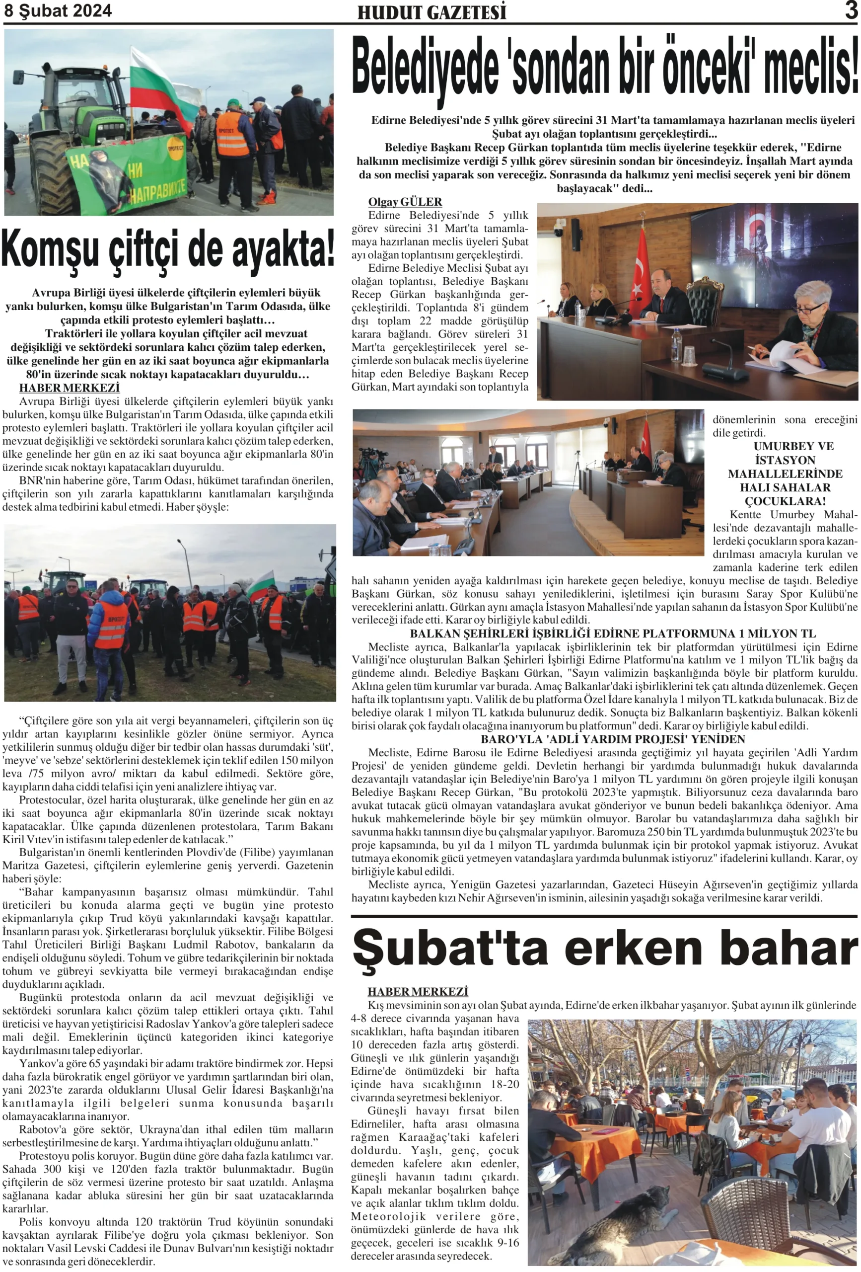 8 Şubat 2024 Perşembe Hudut Gazetesi