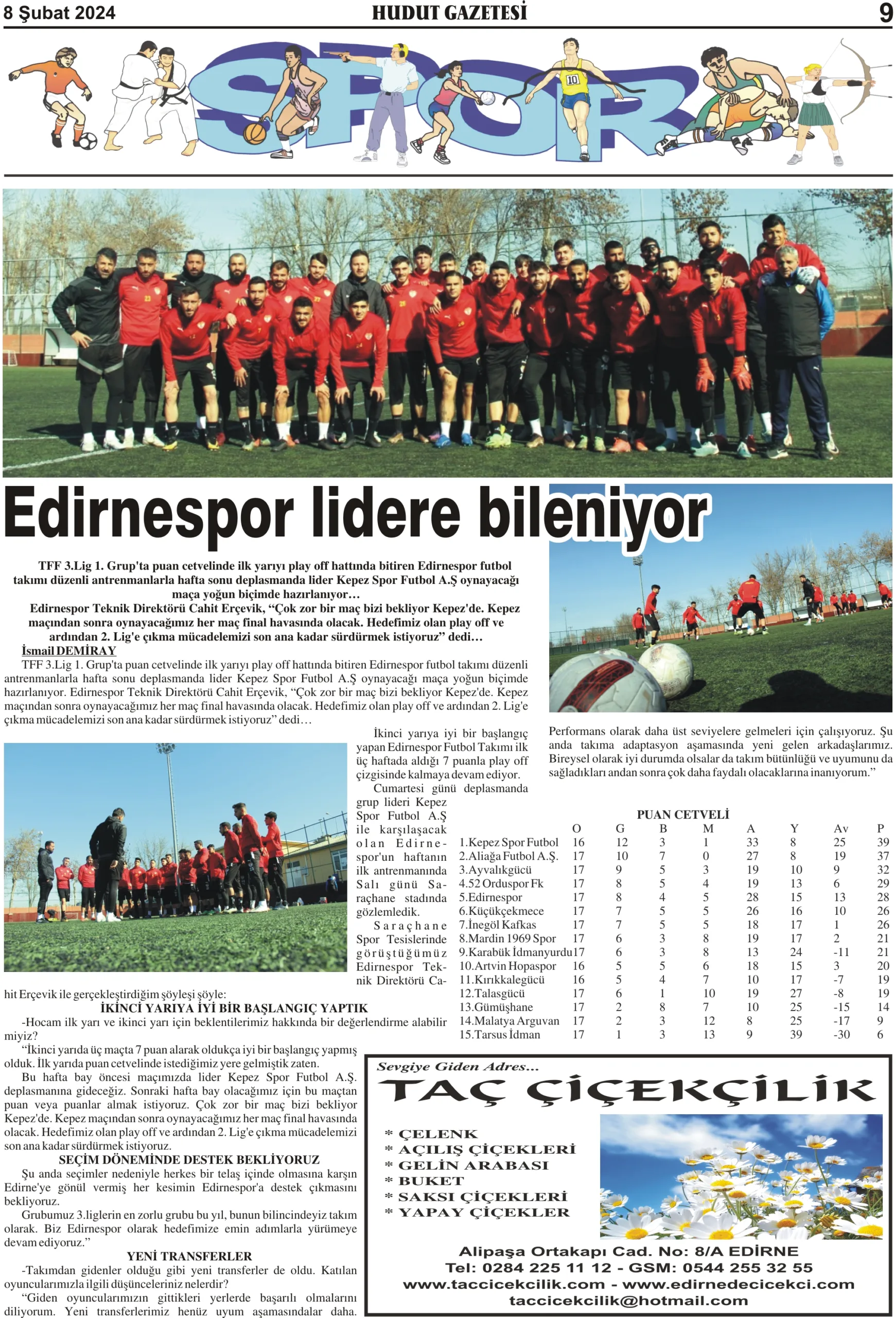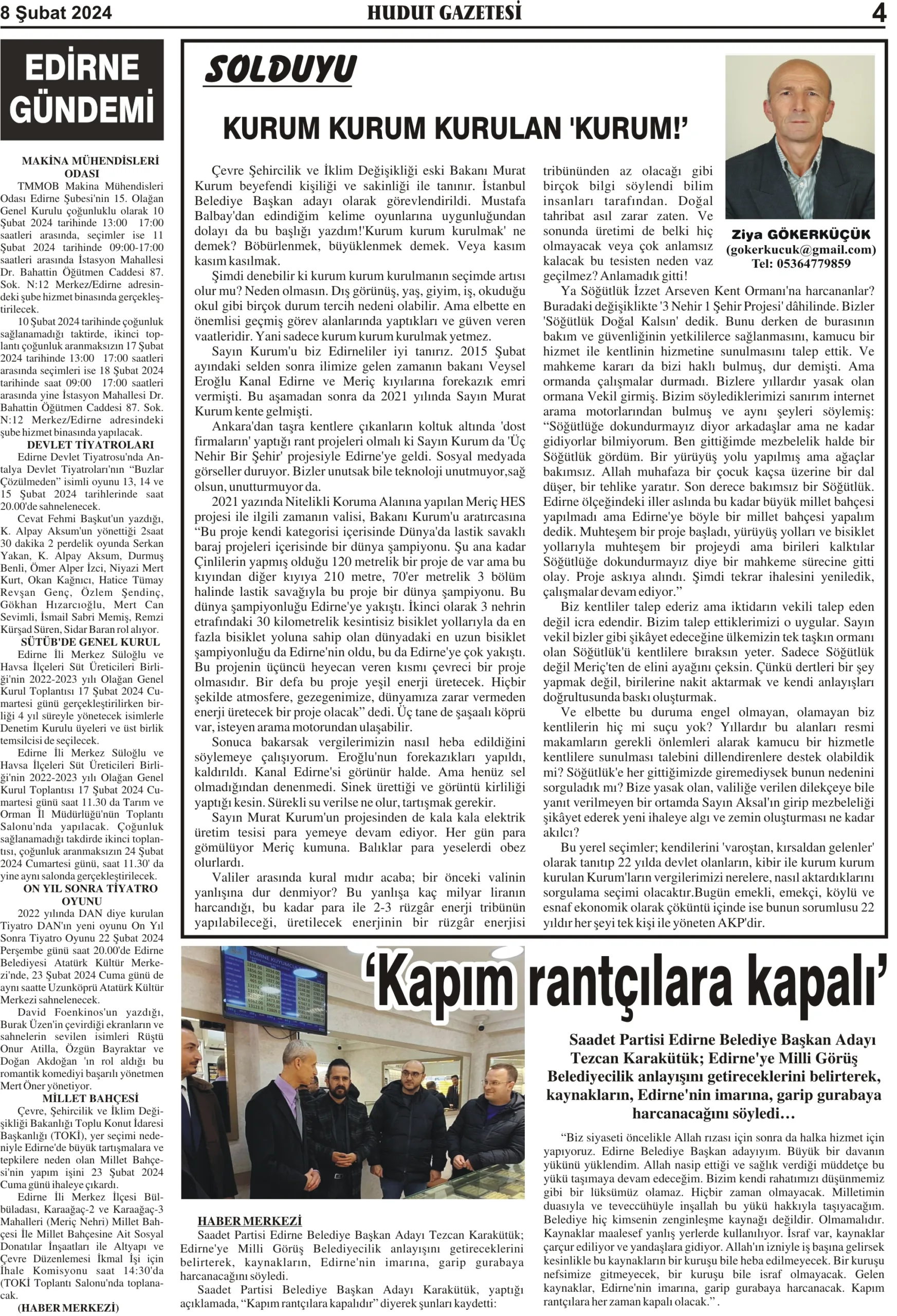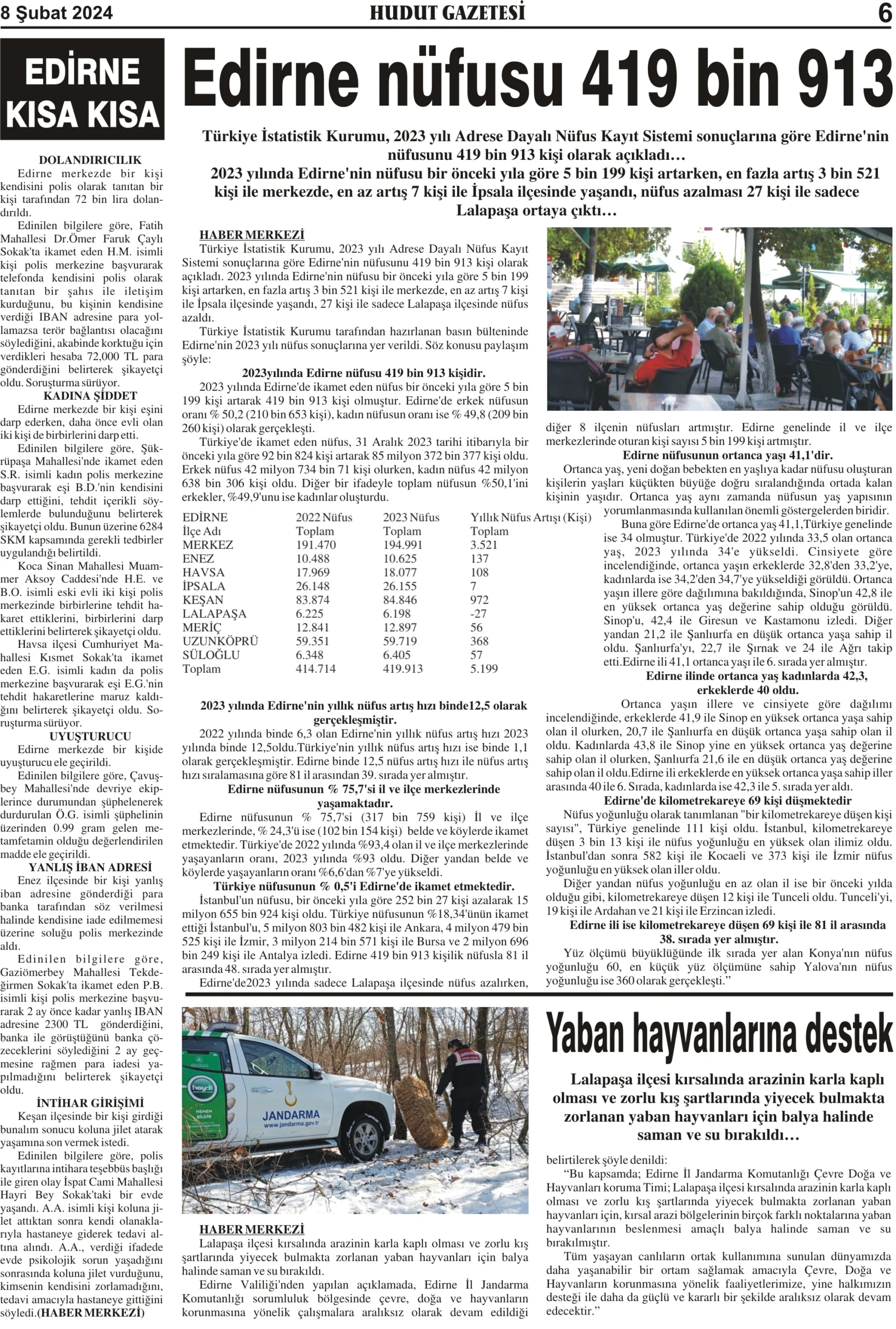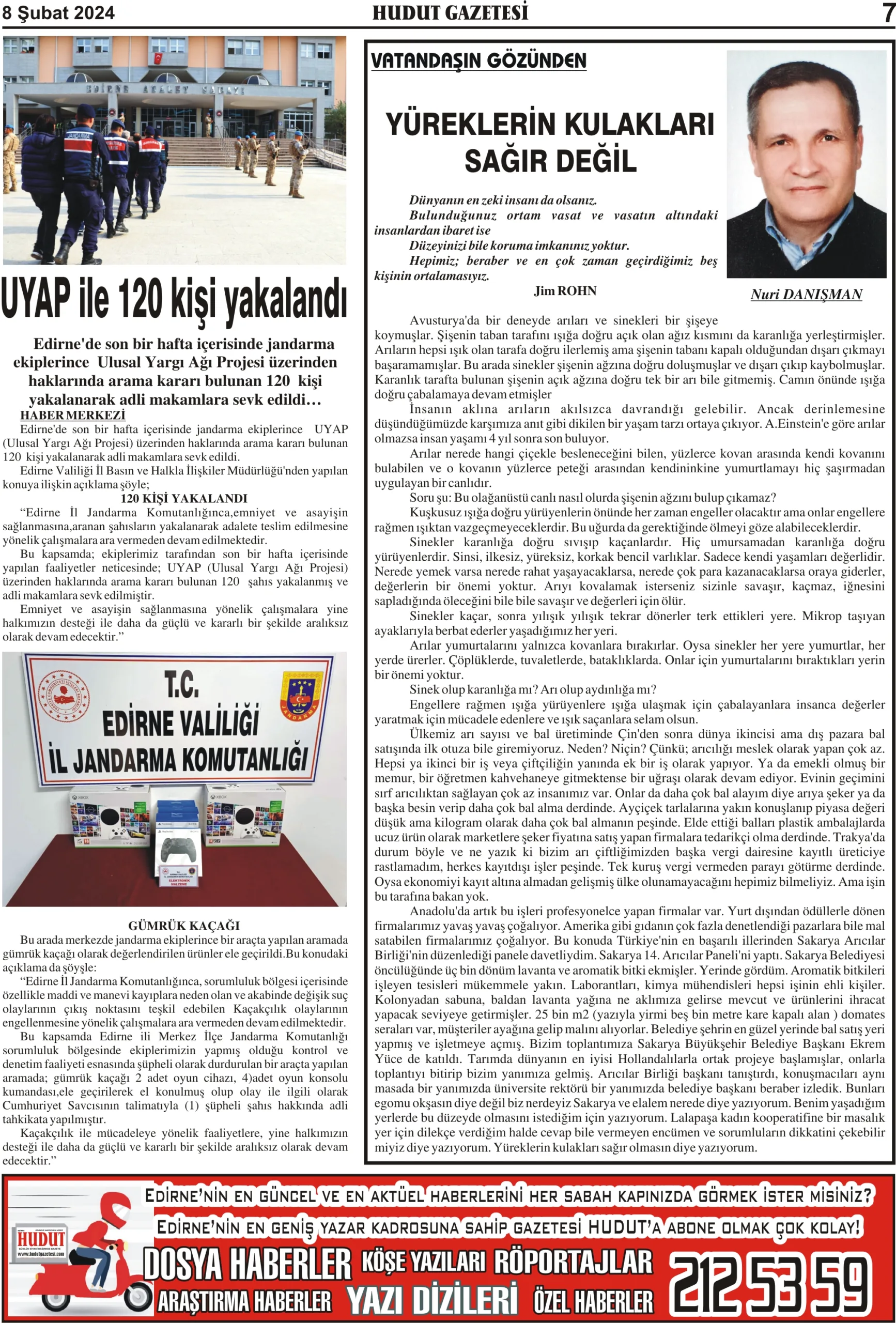 8 Şubat 2024 Perşembe Hudut Gazetesi