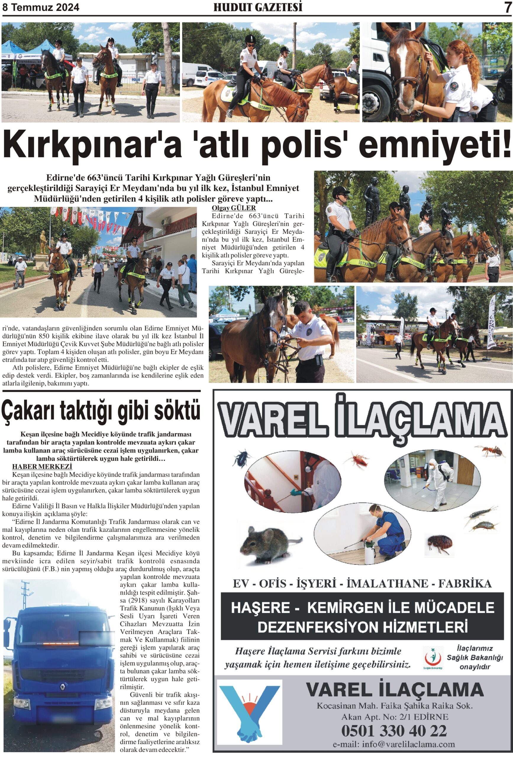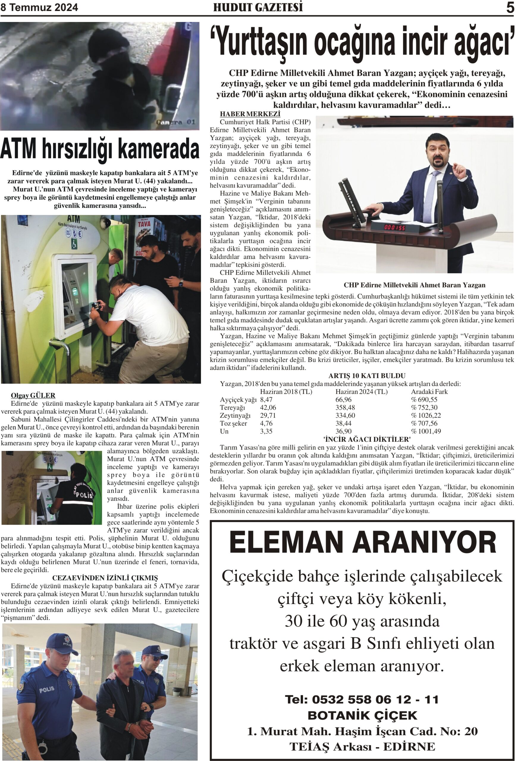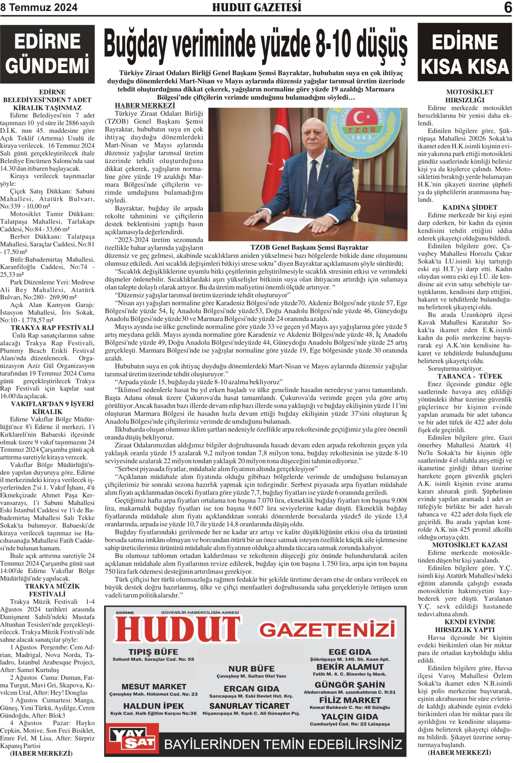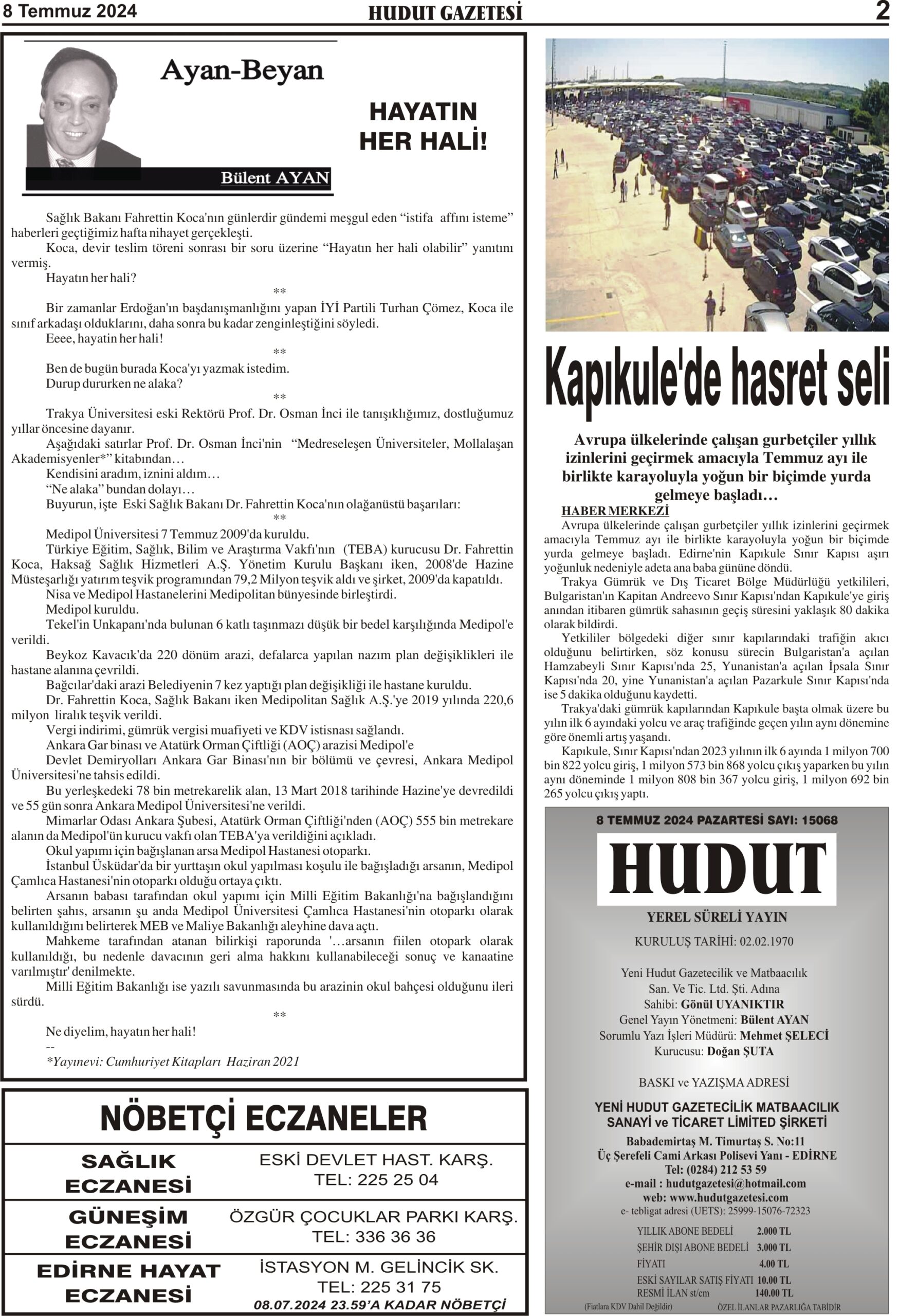 8 Temmuz 2024 Pazartesi Hudut Gazetesi